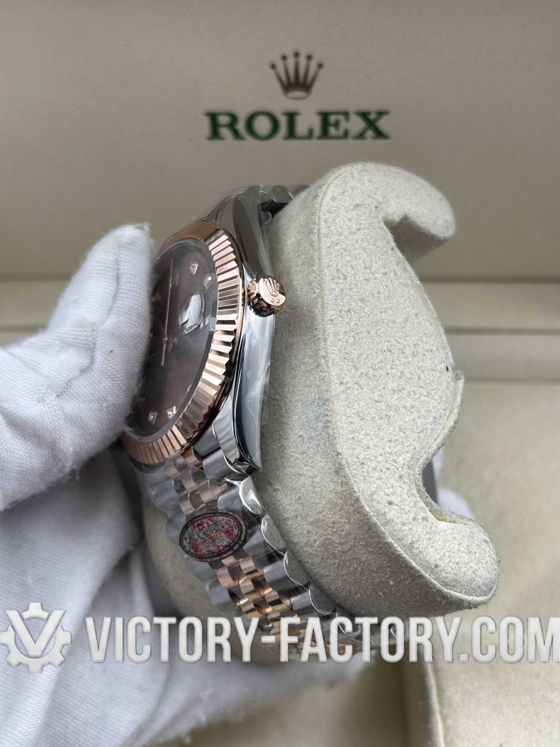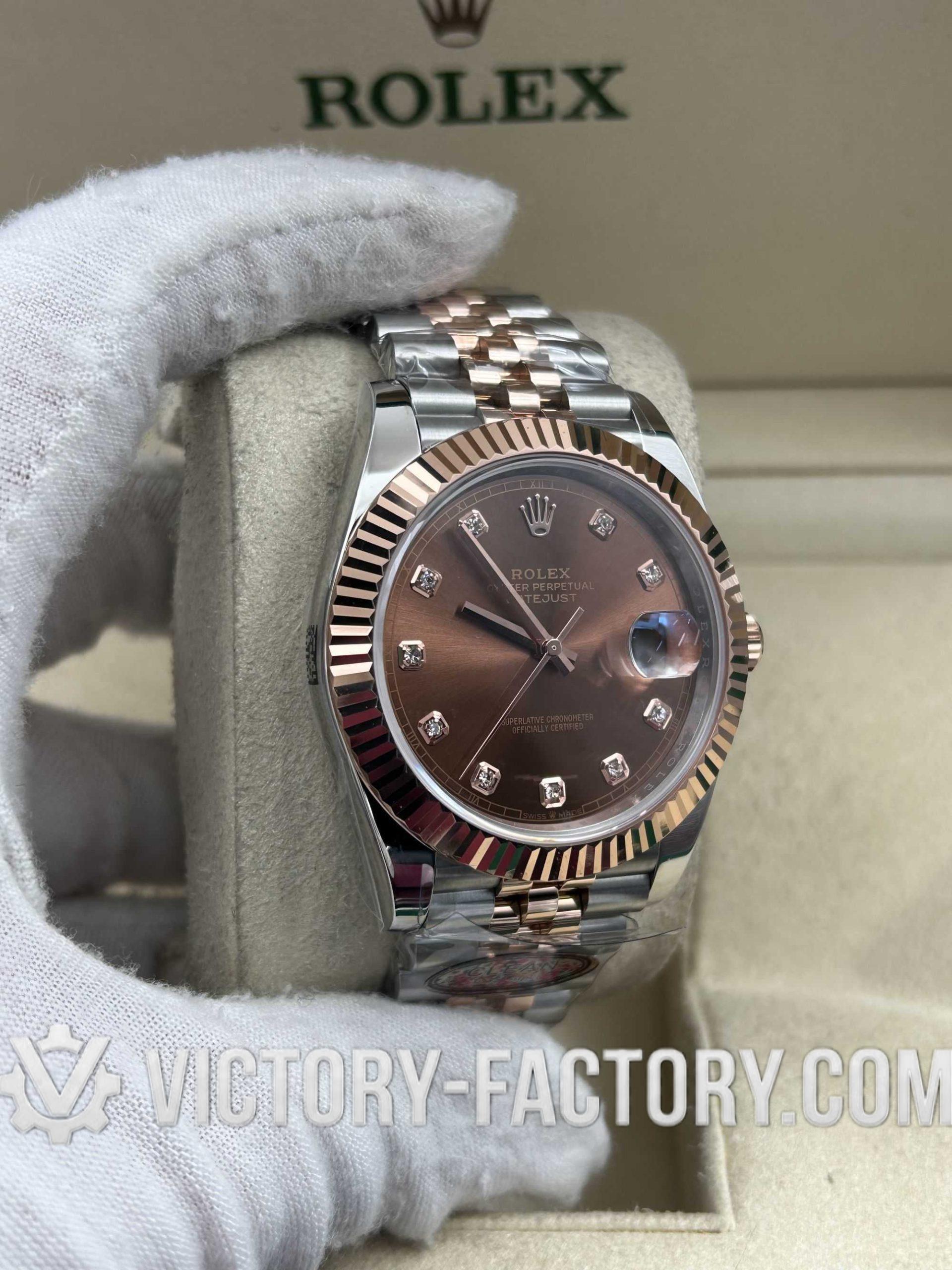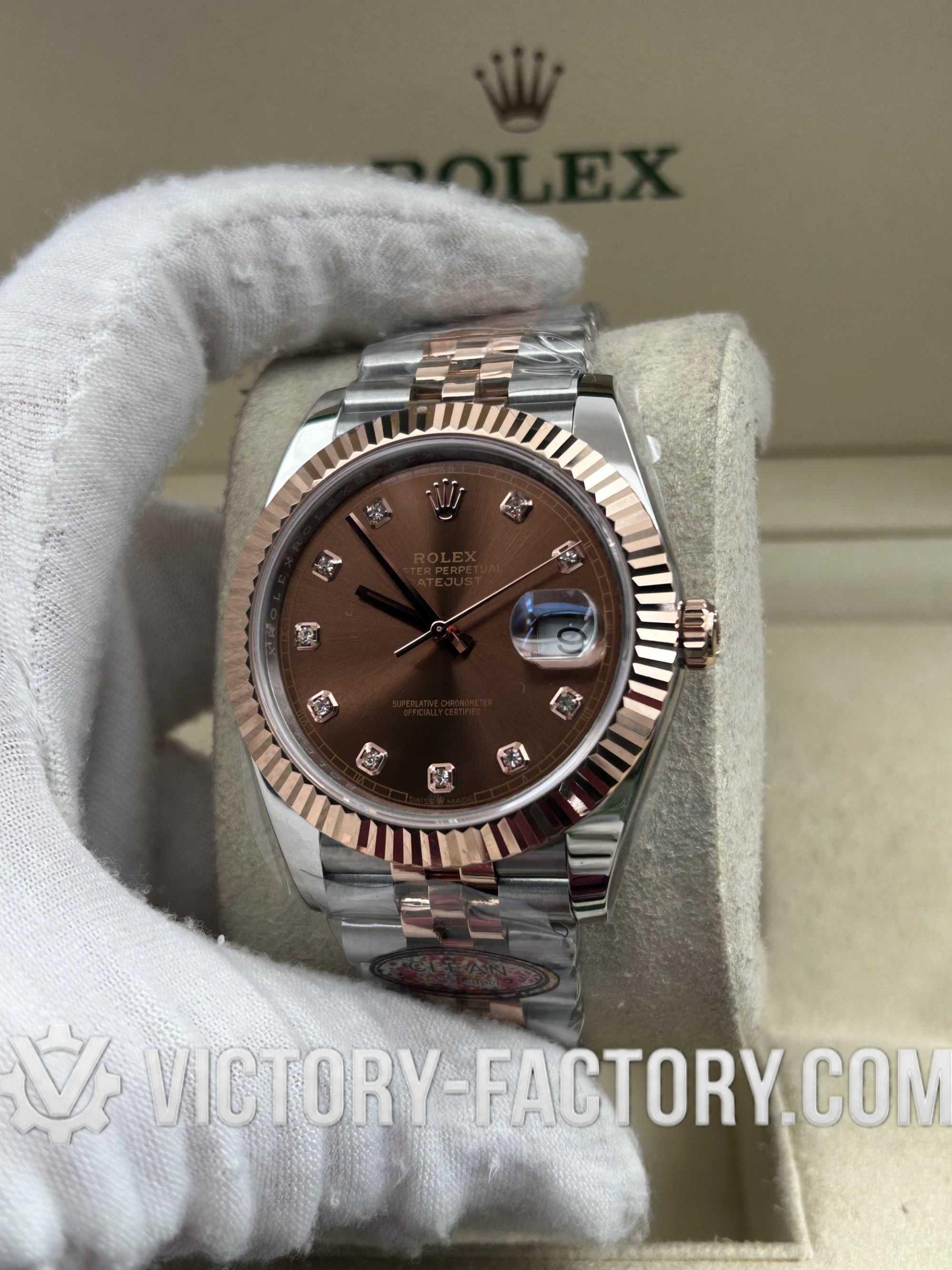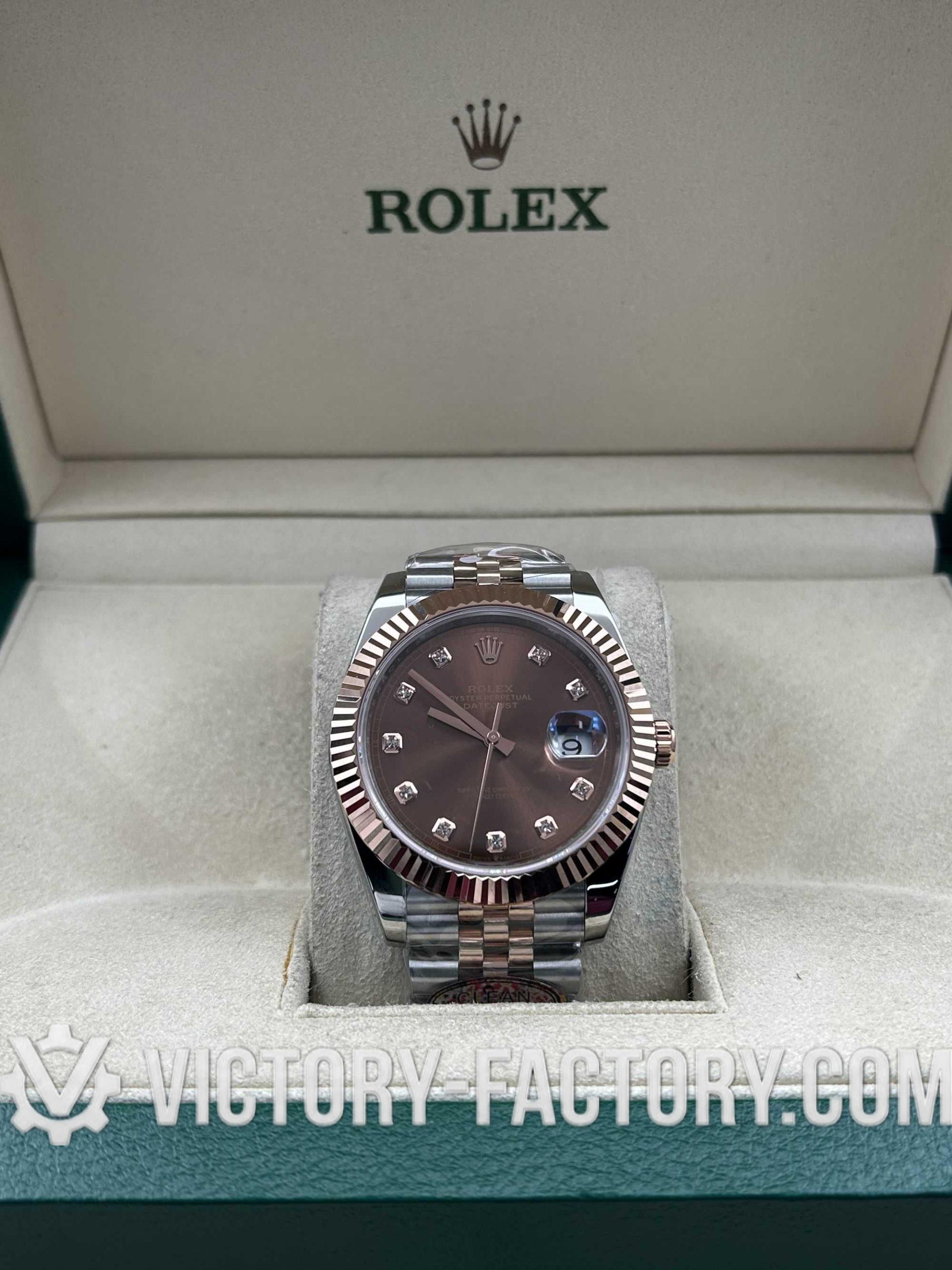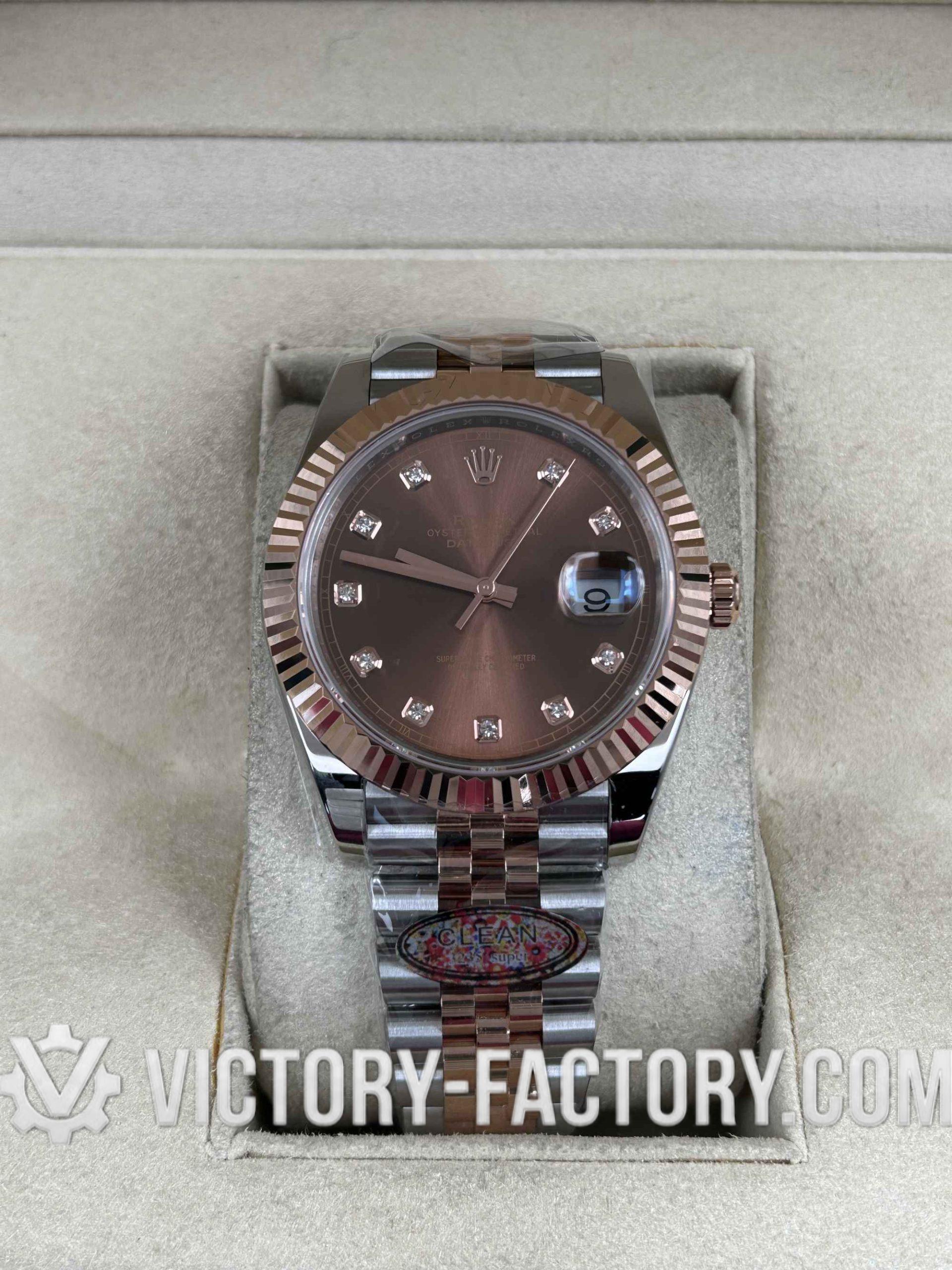 Victory Factory (VF) Rolex Datejust 41mm 126331 – Chocolate Diamond Dial – 18k Rose Gold Jubilee – Clean Factory Parts & Dandong 3235 Movement