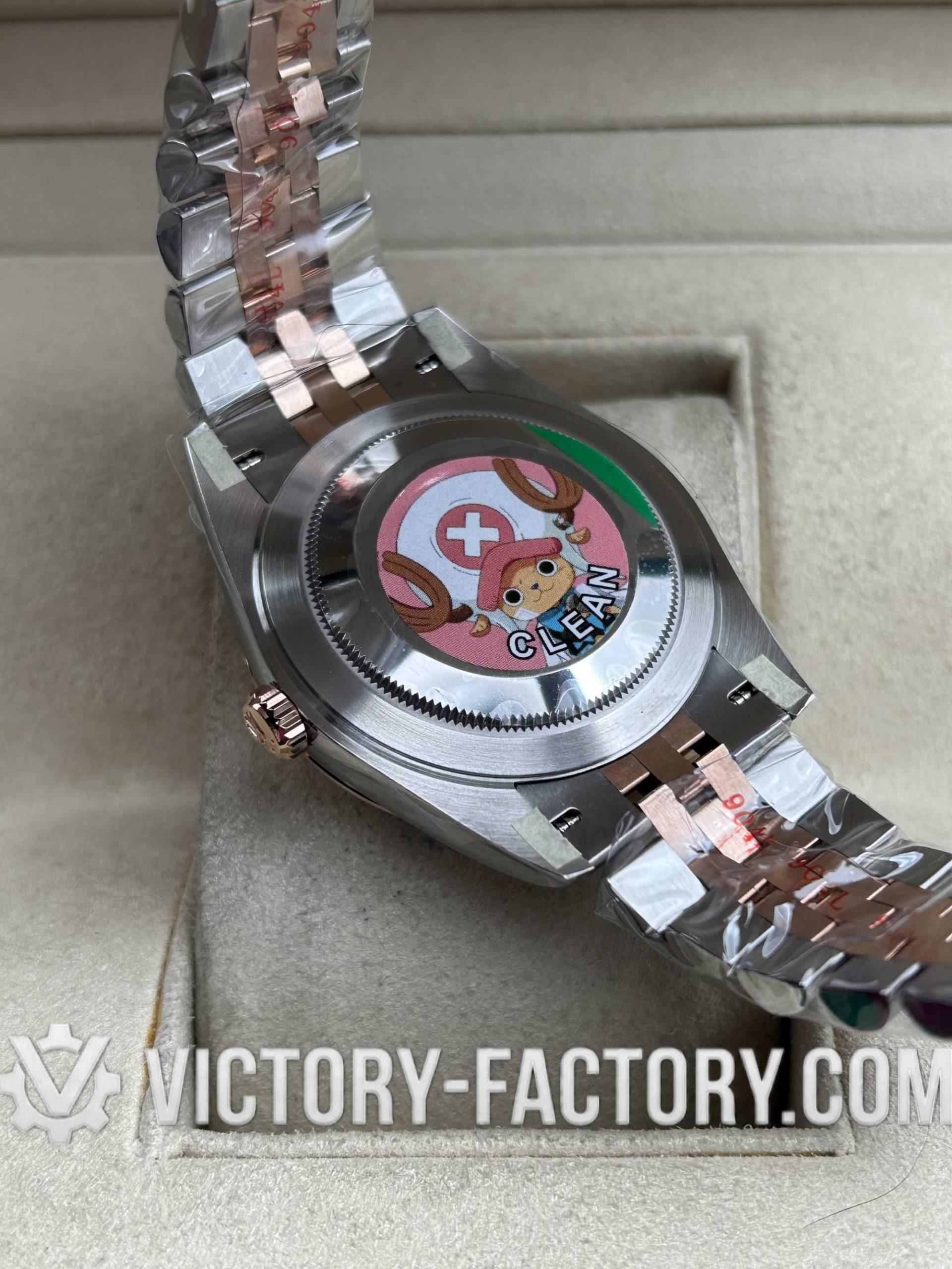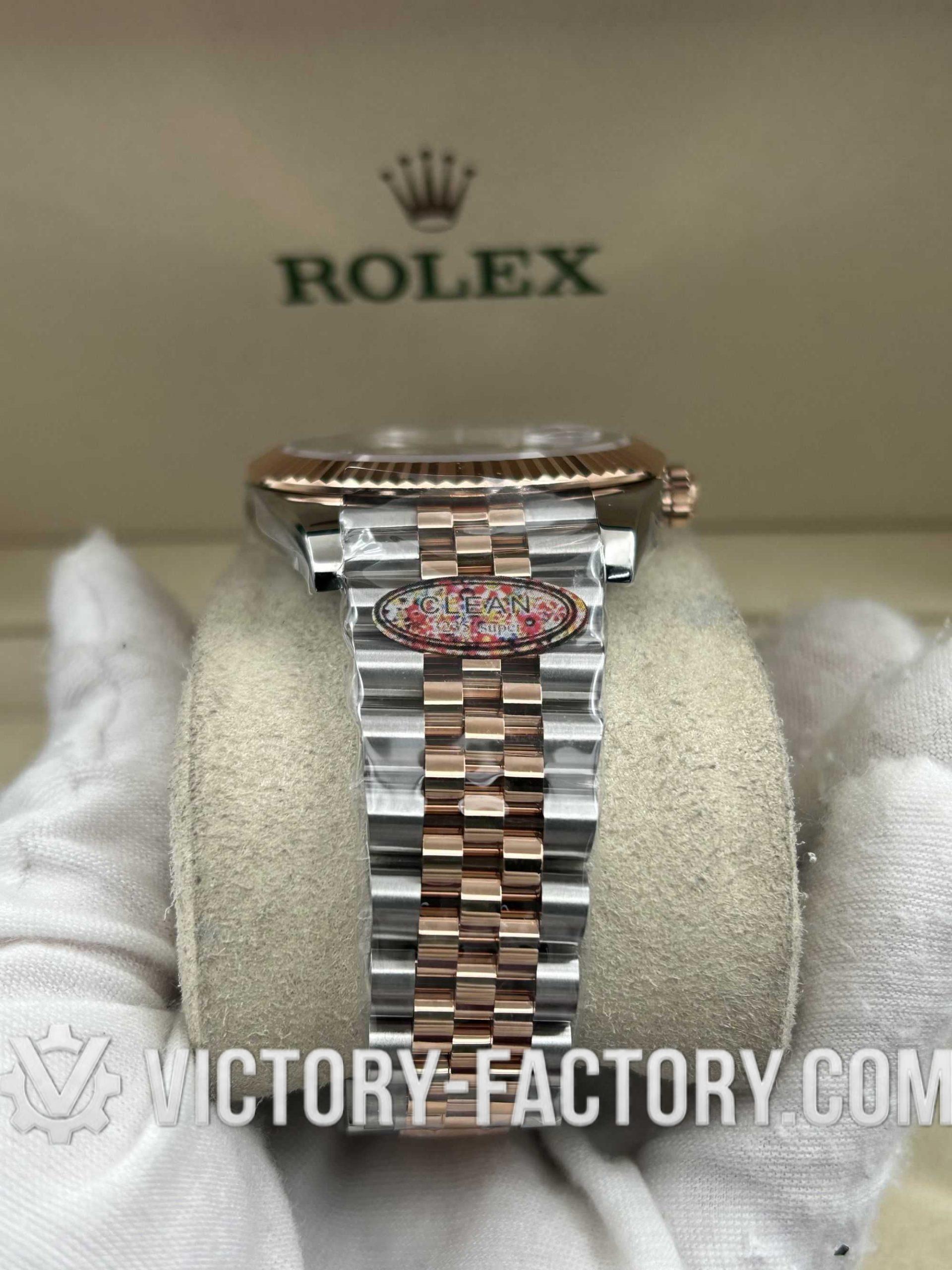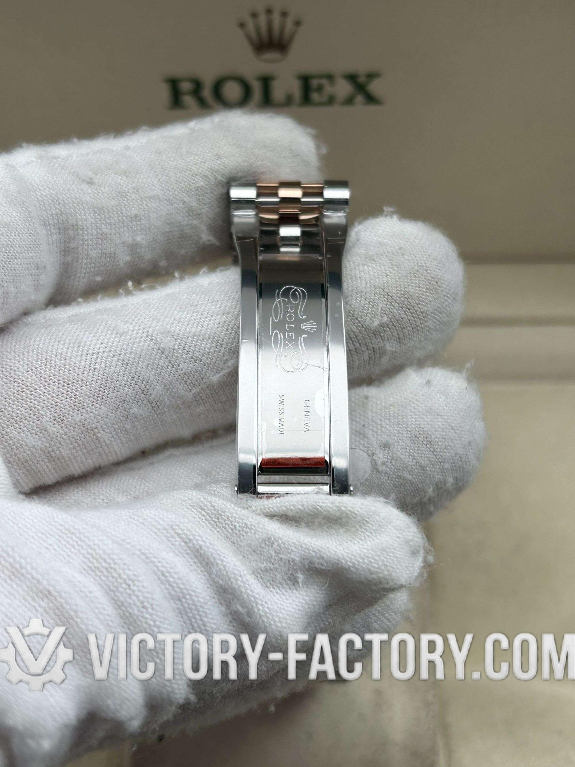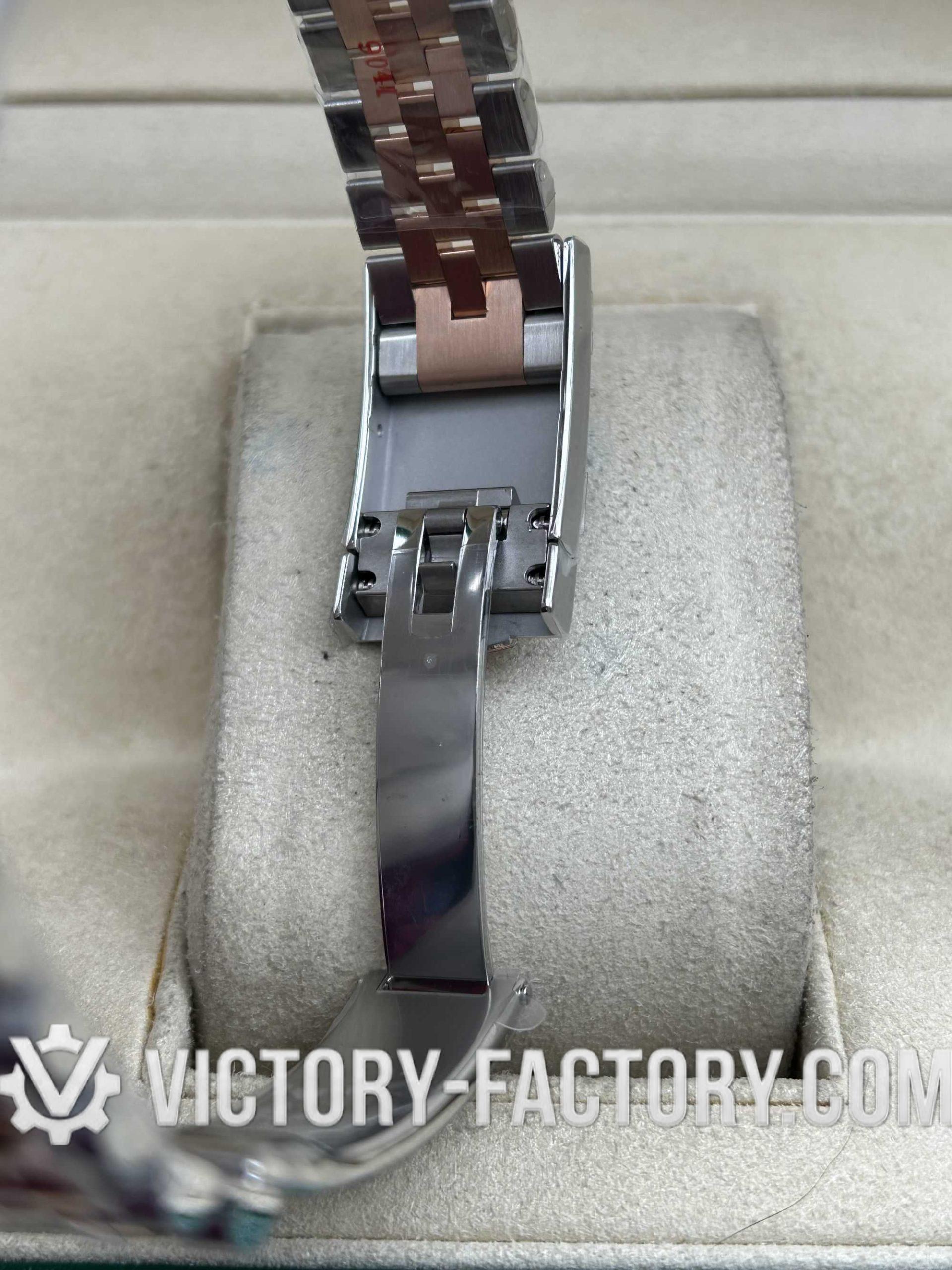 • CASE: Victory Factory features a 41mm two-tone 18k Rose Gold wrapped solid 904L stainless steel case, engineered to be 100% identical in dimensions and weight to the original. It includes a screw-down case-back and the Twinlock double waterproofness system for genuine-tier durability. The Rehaut ring is precisely laser-etched with the Rolex crown, all protected by a DLC scratch-resistant coating.