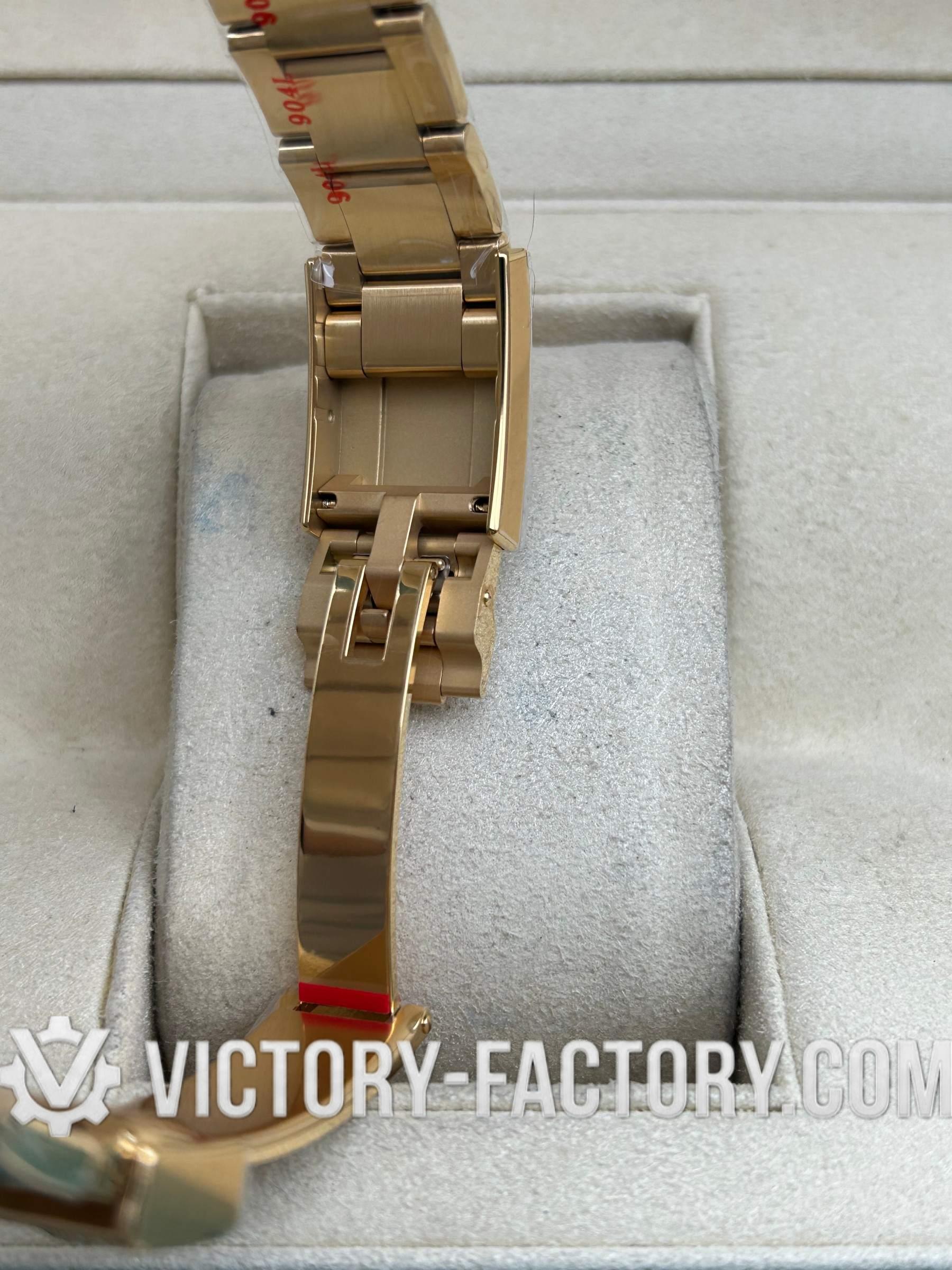 Bezel: The Clean Factory bezel is fixed, crafted from 18k Yellow gold wrap solid 904L stainless steel, with black coated numerals and graduations. This design is a perfect replica of the original Rolex, ensuring authenticity in every detail.