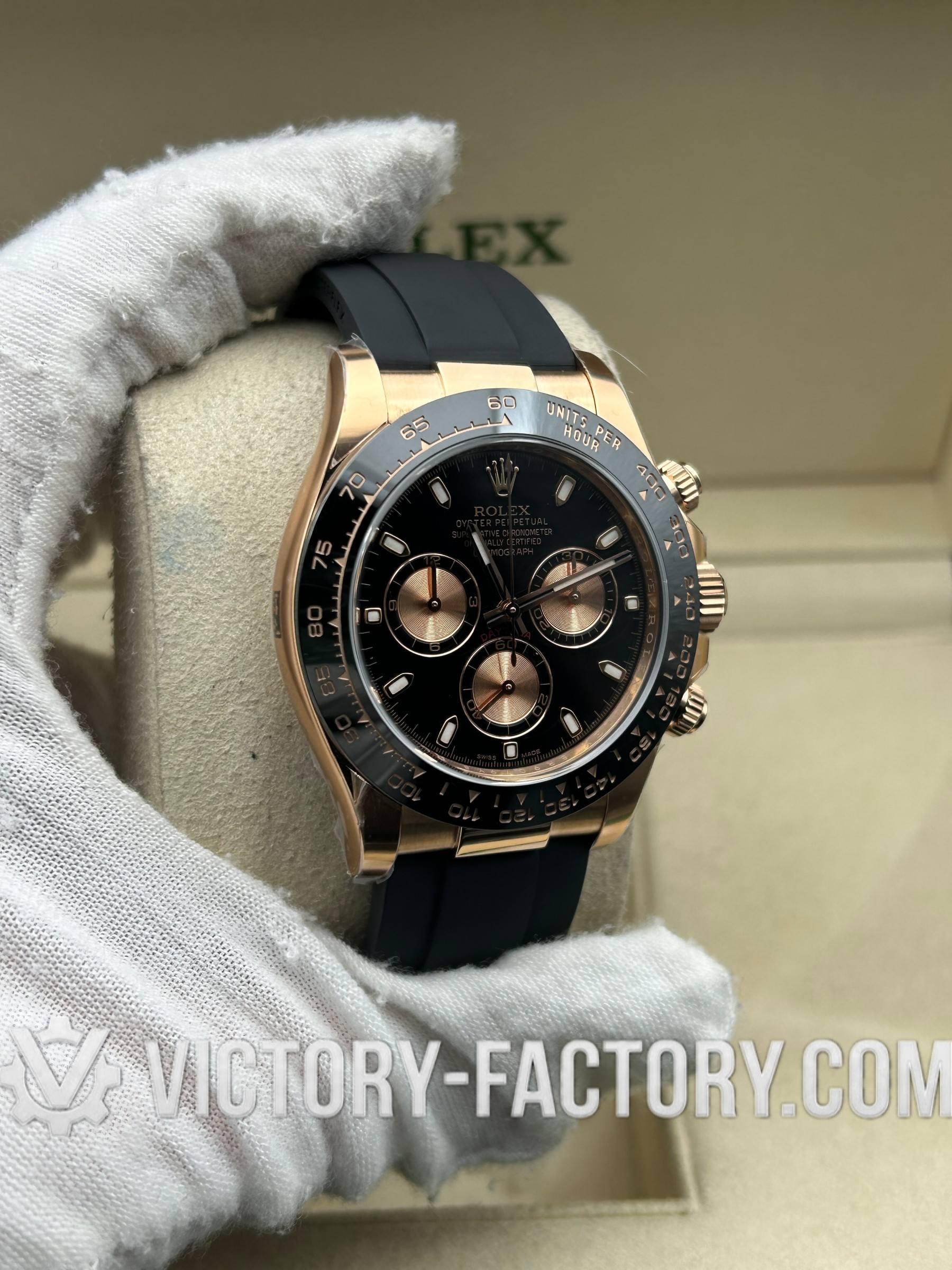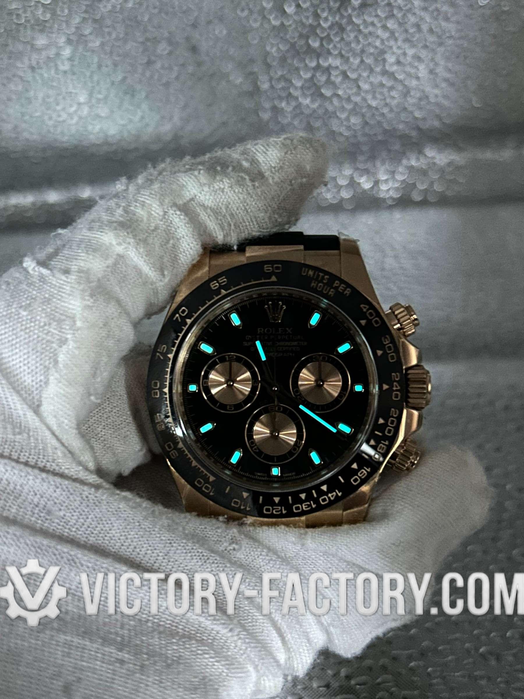 Victory Factory (VF) proudly presents the Rolex Cosmograph Daytona 18k Rose Gold Black Panda Super Replica Watch, a symbol of luxury and precision engineering. This timepiece is expertly crafted to match the original Rolex Cosmograph Daytona in every aspect, from design to functionality.