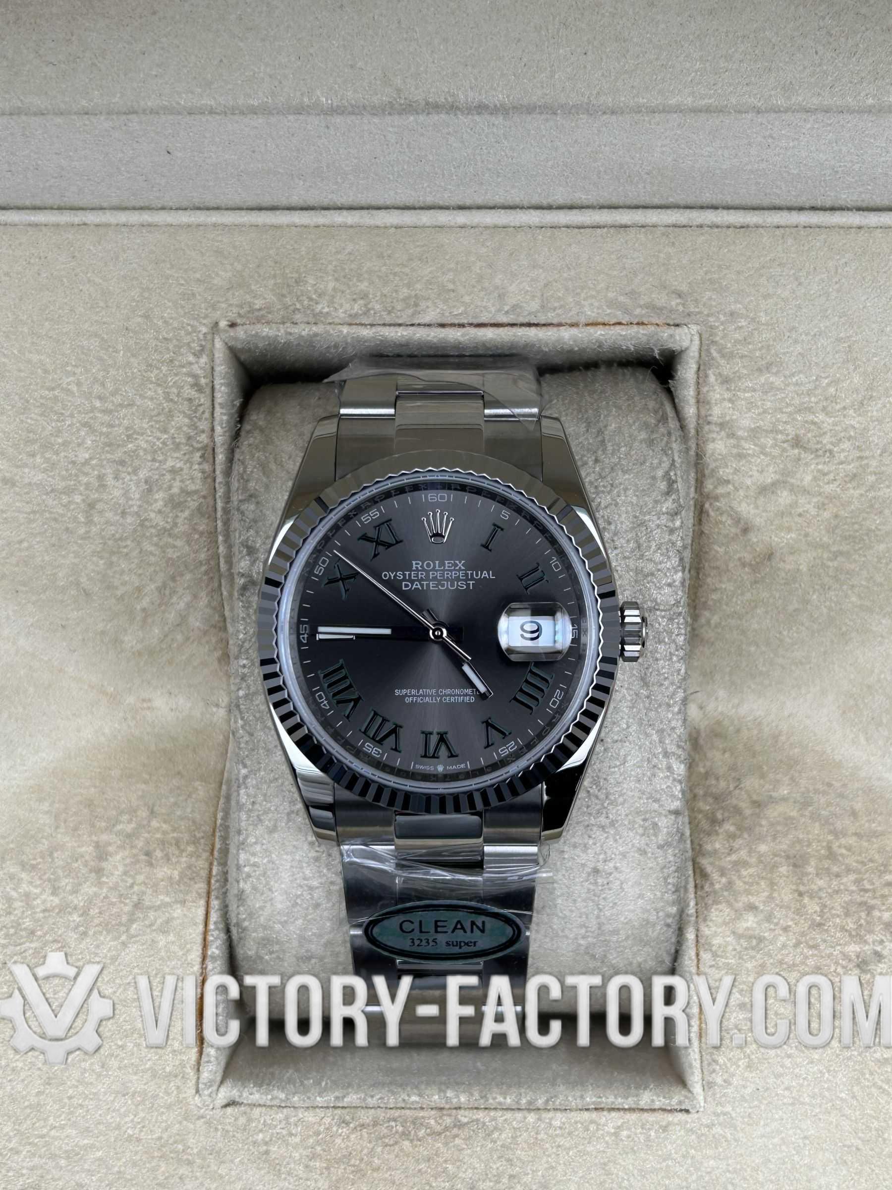 The Evolution of the Super Clone: Victory Factory (VF) presents the definitive version of the Datejust 36mm 126234 with the iconic “Wimbledon” Slate Grey dial. This masterpiece represents the pinnacle of the replica industry, perfectly inheriting Clean Factory’s world-class exterior components and upgrading the heart of the watch to the legendary Dandong 3235 Super Clone Movement. For collectors who demand the flawless finish of Clean Factory with the industry’s most stable movement, Victory Factory is the undisputed choice.