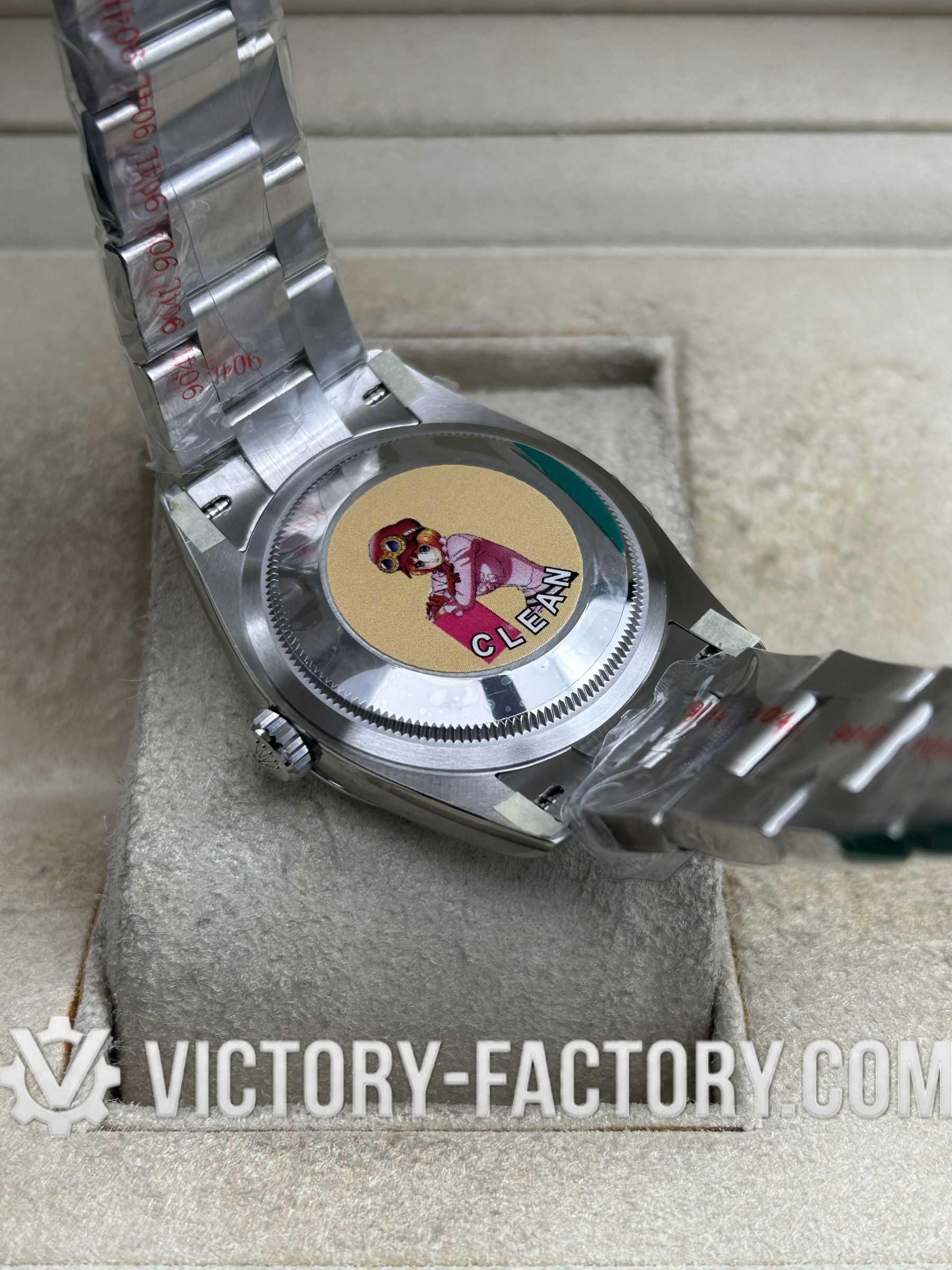 The 36mm case is meticulously crafted from solid 904L stainless steel, ensuring an exact match to the weight and brilliance of the genuine model.