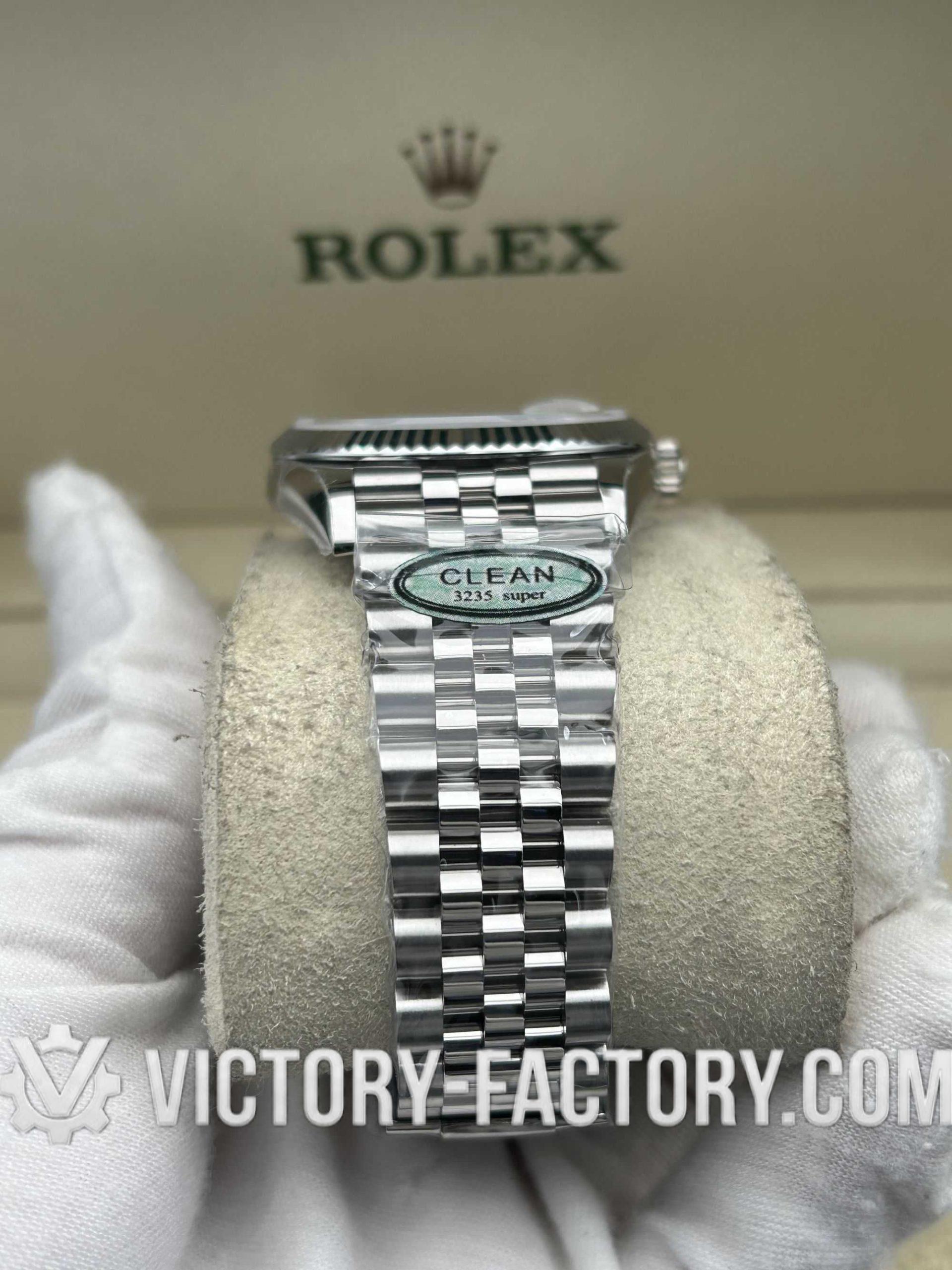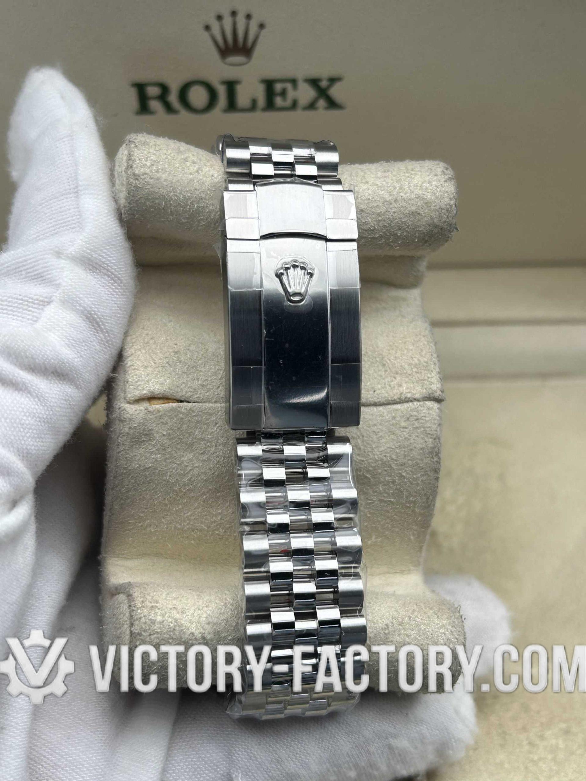 CASE: Our Victory Factory Super Clone watches feature a 36mm solid 904L stainless steel construction, ensuring an exact match to Genuine Rolex 904L steel. It includes a screw-down case-back and a Twinlock double waterproofness system screw-down winding crown for superior water resistance. The ROLEX laser engraving on the Rehaut ring adds authenticity, while a DLC scratch-protection coating ensures durability. Every detail, including dimensions and weight, is faithfully replicated to be 100% identical to genuine Rolex watches, allowing for seamless part interchangeability.