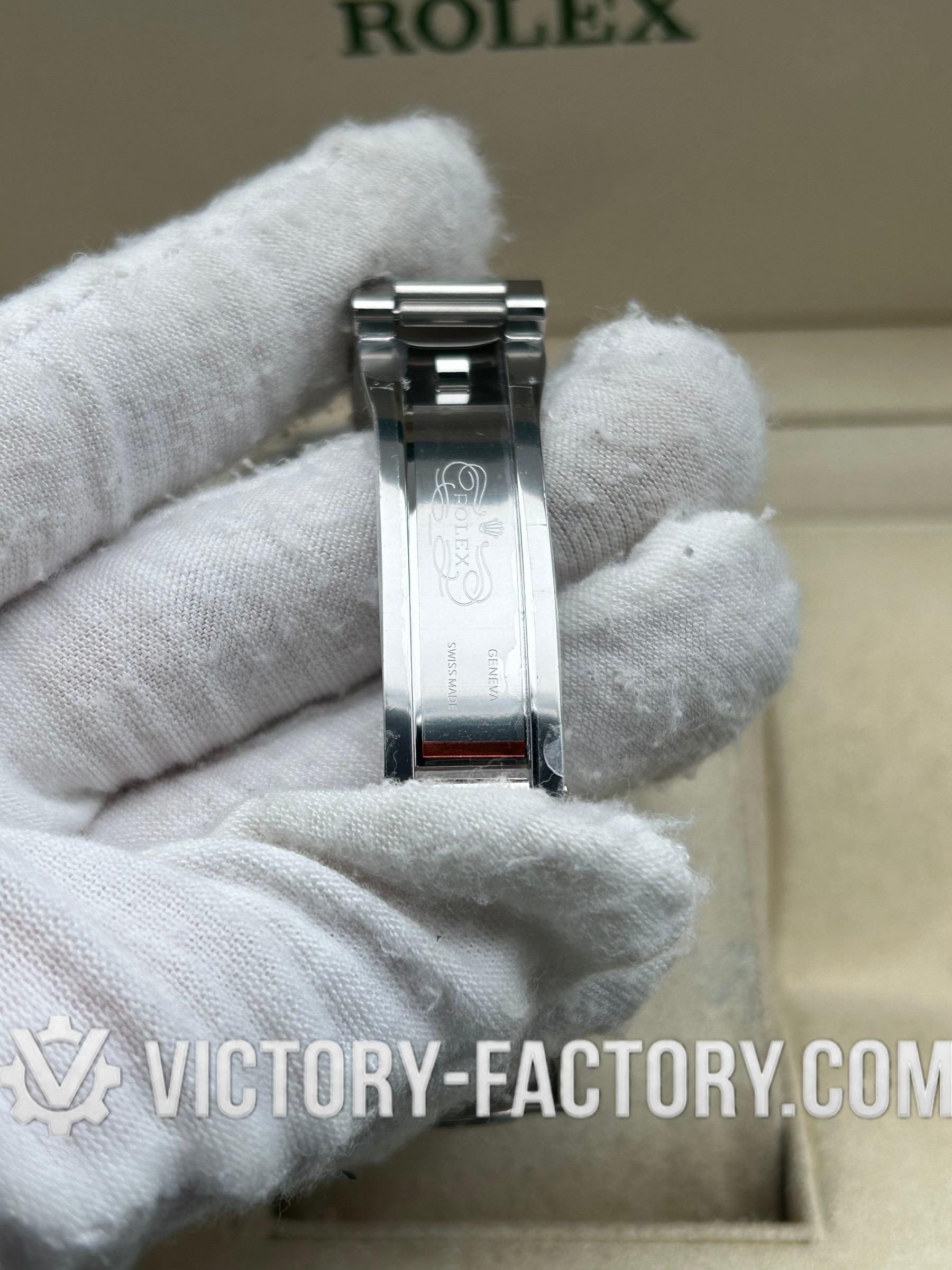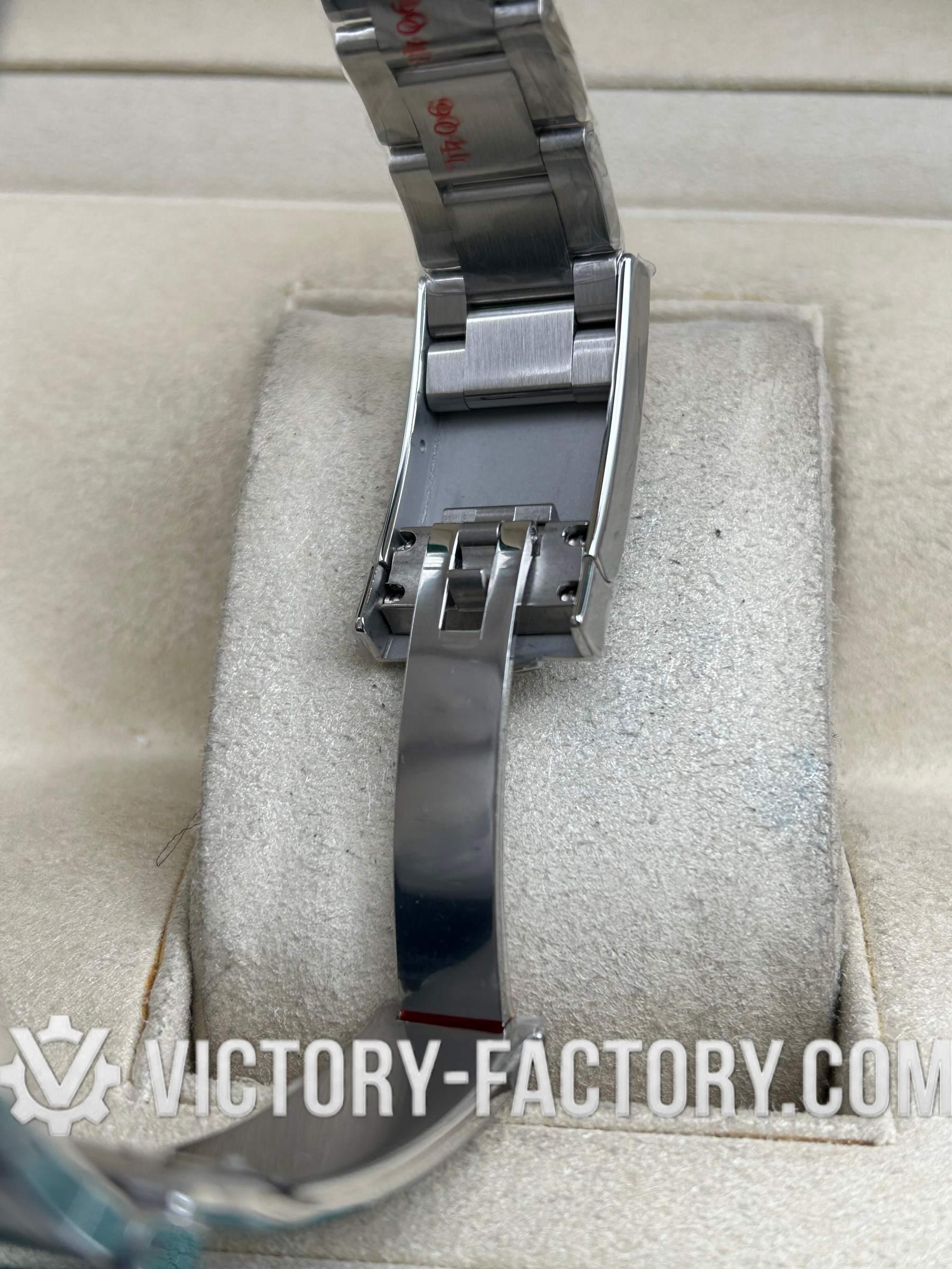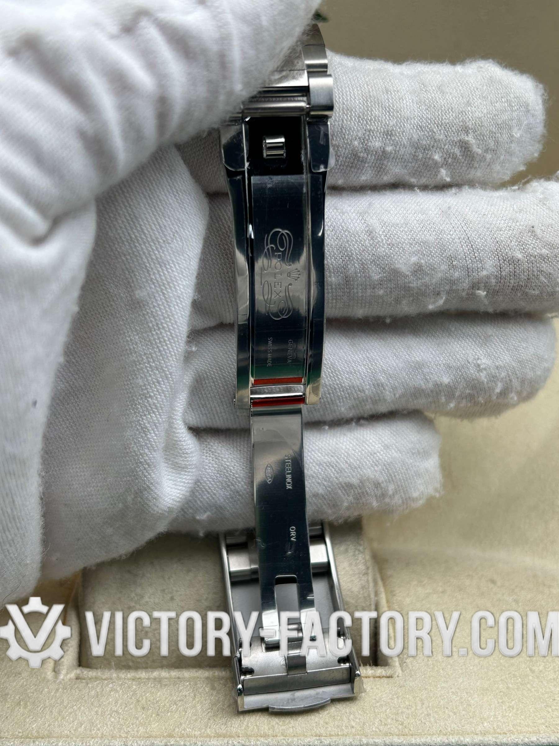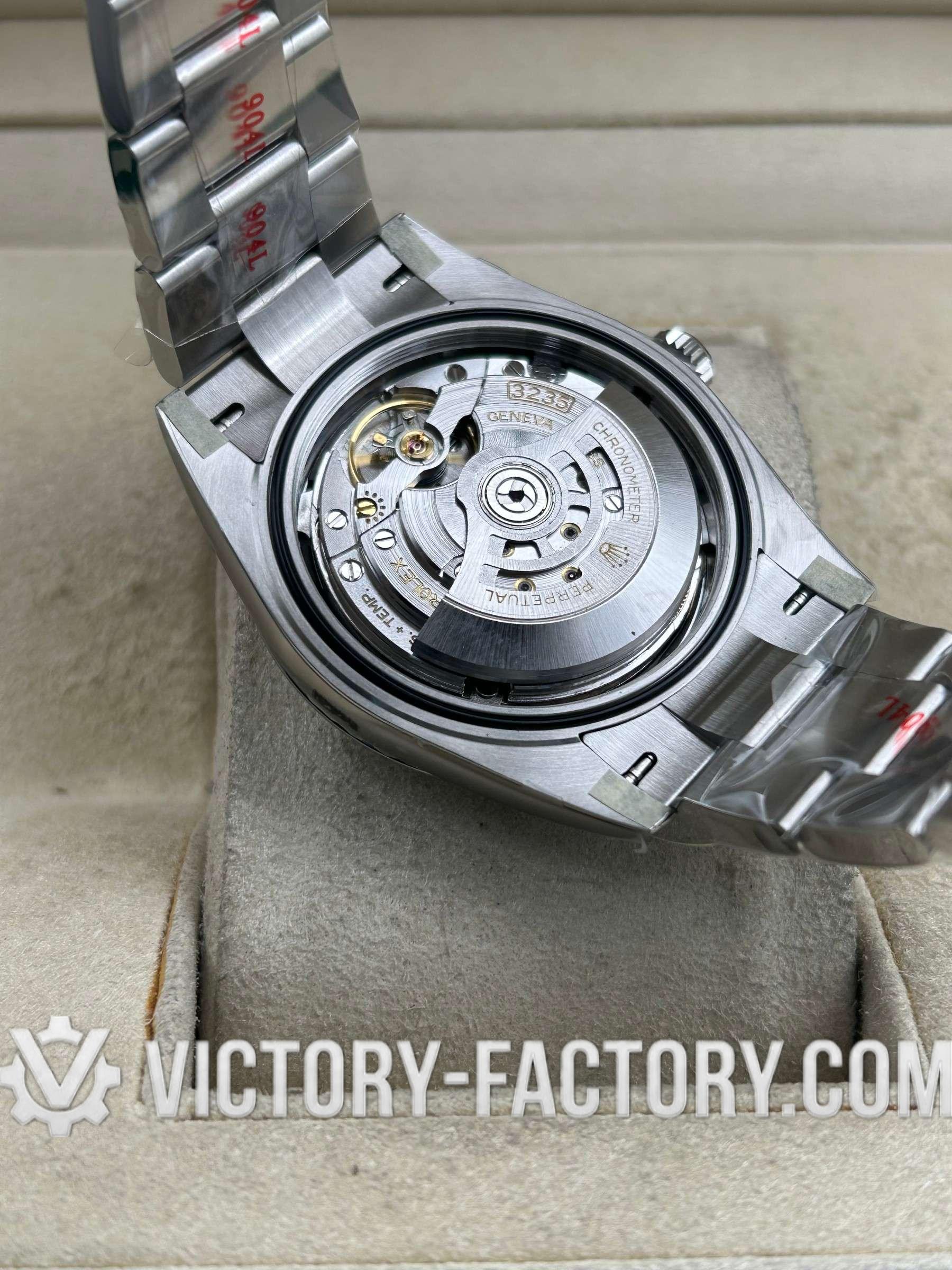 CASE: Our Victory Factory Super Clone features a 41mm solid 904L stainless steel construction, ensuring an exact match to the weight and sheen of genuine Rolex steel. It includes a screw-down case-back and a Twinlock double waterproofness system for superior water resistance. Every detail, from the laser-etched Rehaut to the 1:1 dimensions, allows for seamless part interchangeability with the original.