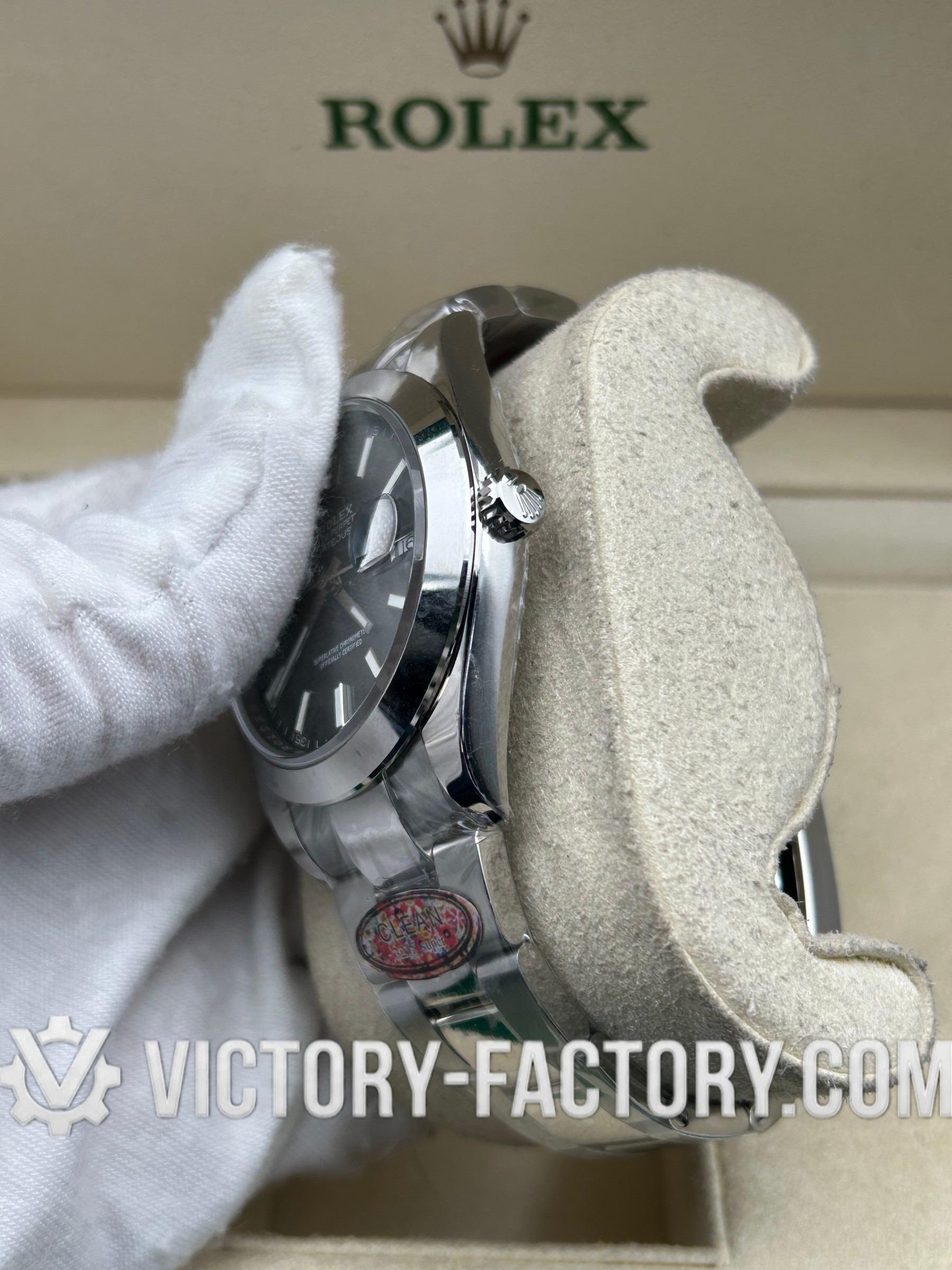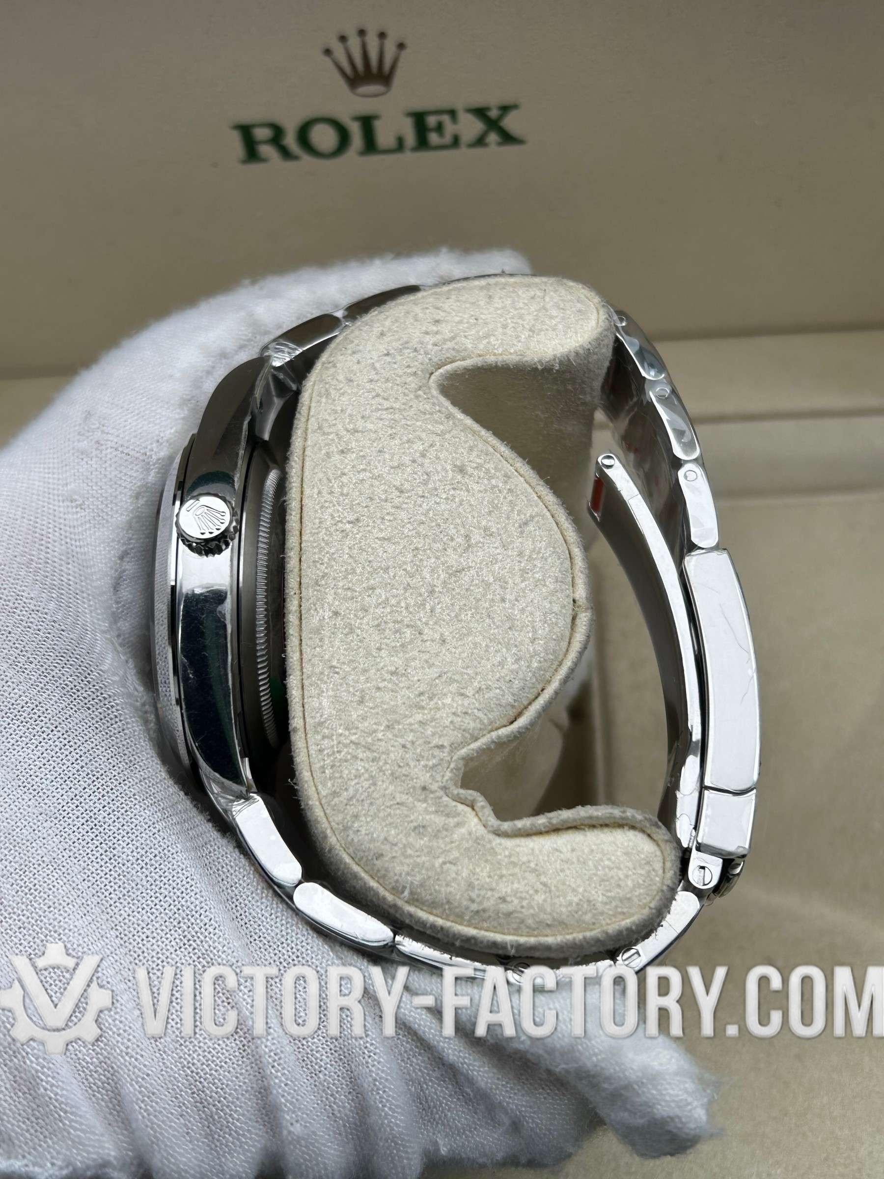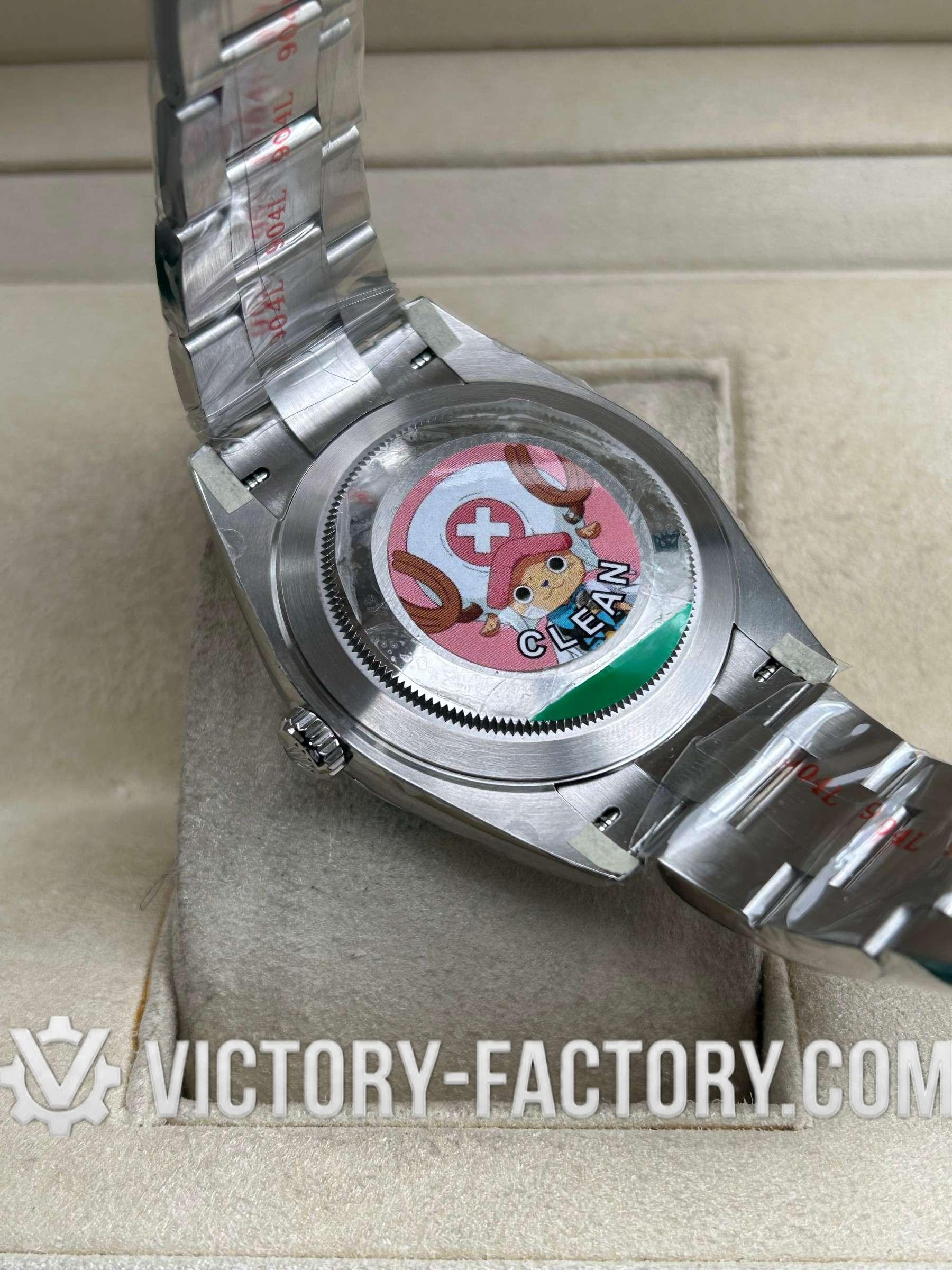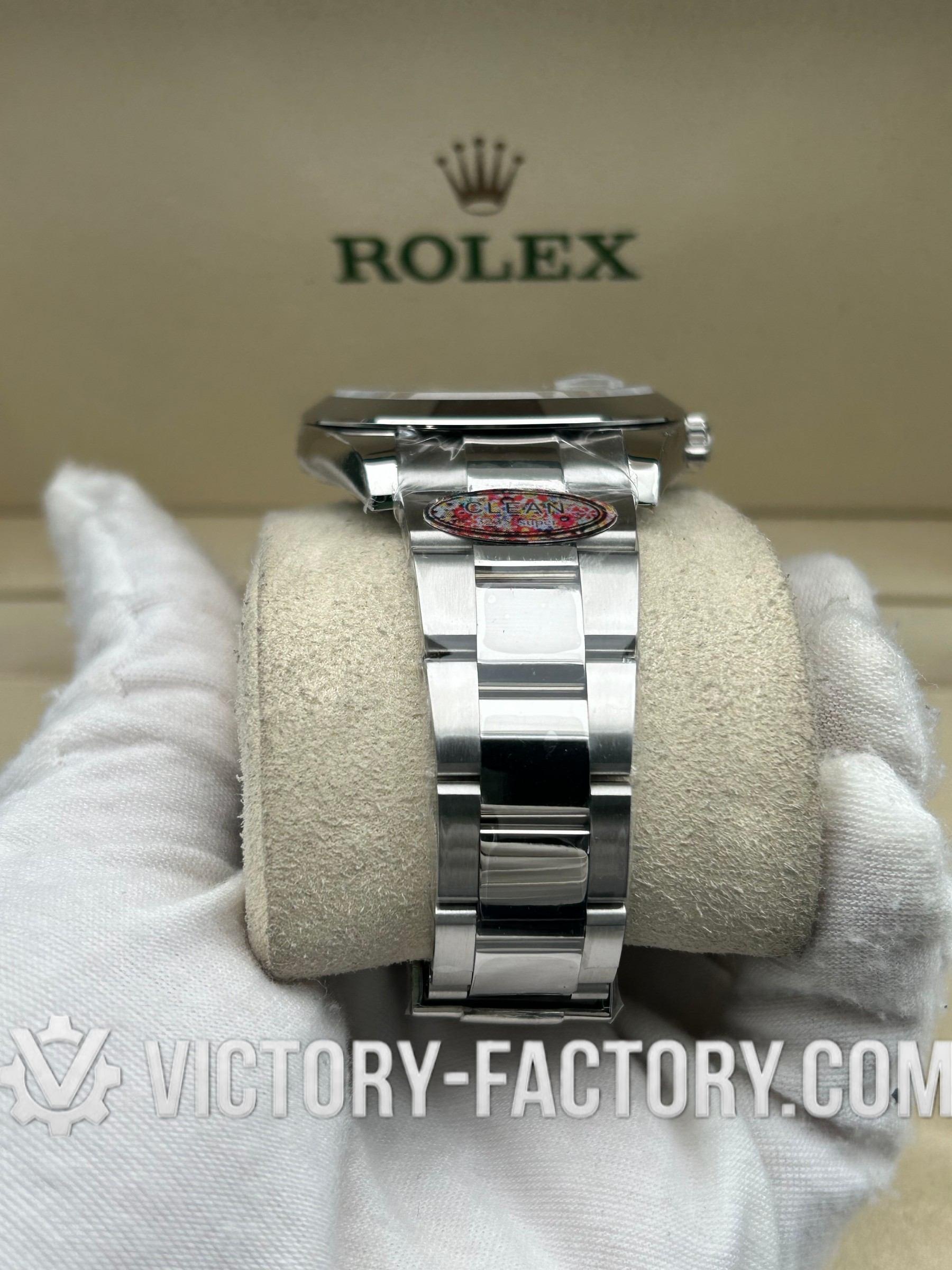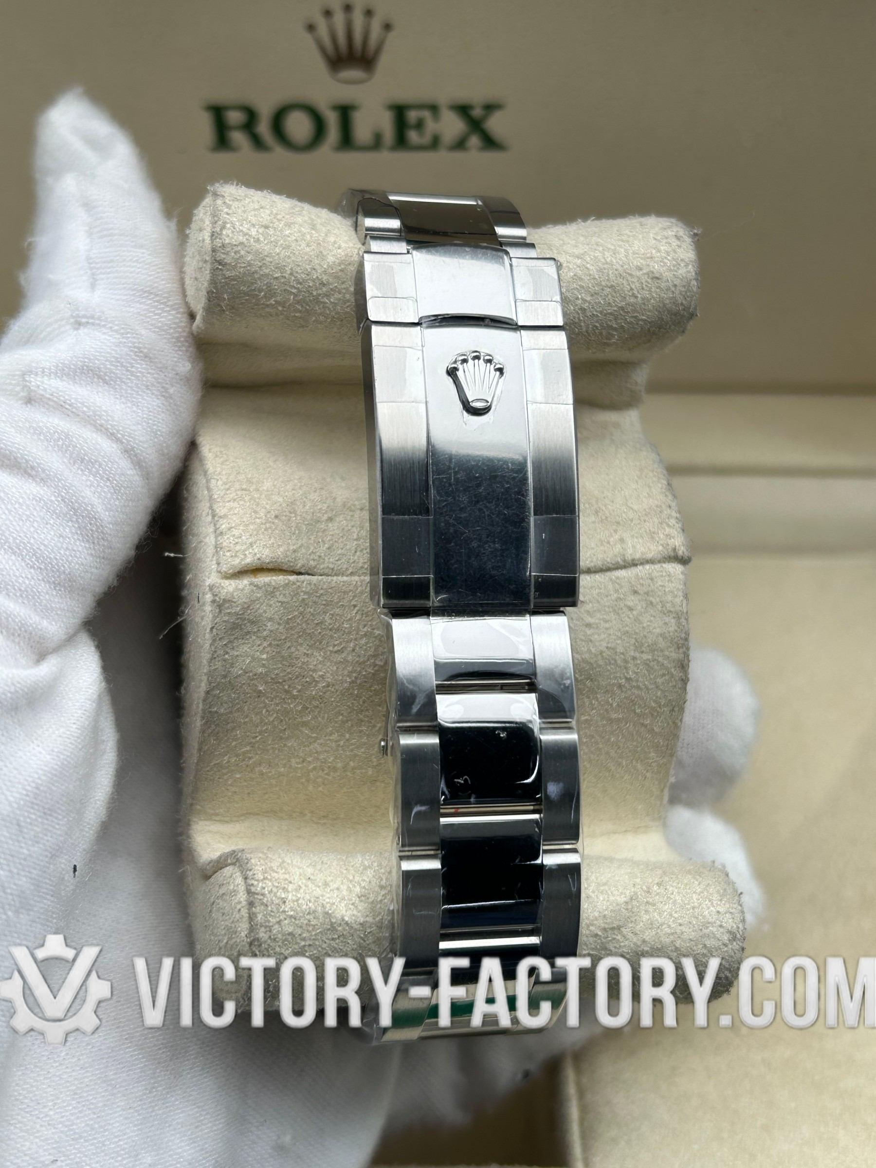 CASE: Our Victory Factory Super Clone features a 41mm solid 904L stainless steel construction, ensuring an exact match to the weight and sheen of genuine Rolex steel. It includes a screw-down case-back and a Twinlock double waterproofness system for superior water resistance. Every detail, from the laser-etched Rehaut to the 1:1 dimensions, allows for seamless part interchangeability with the original.