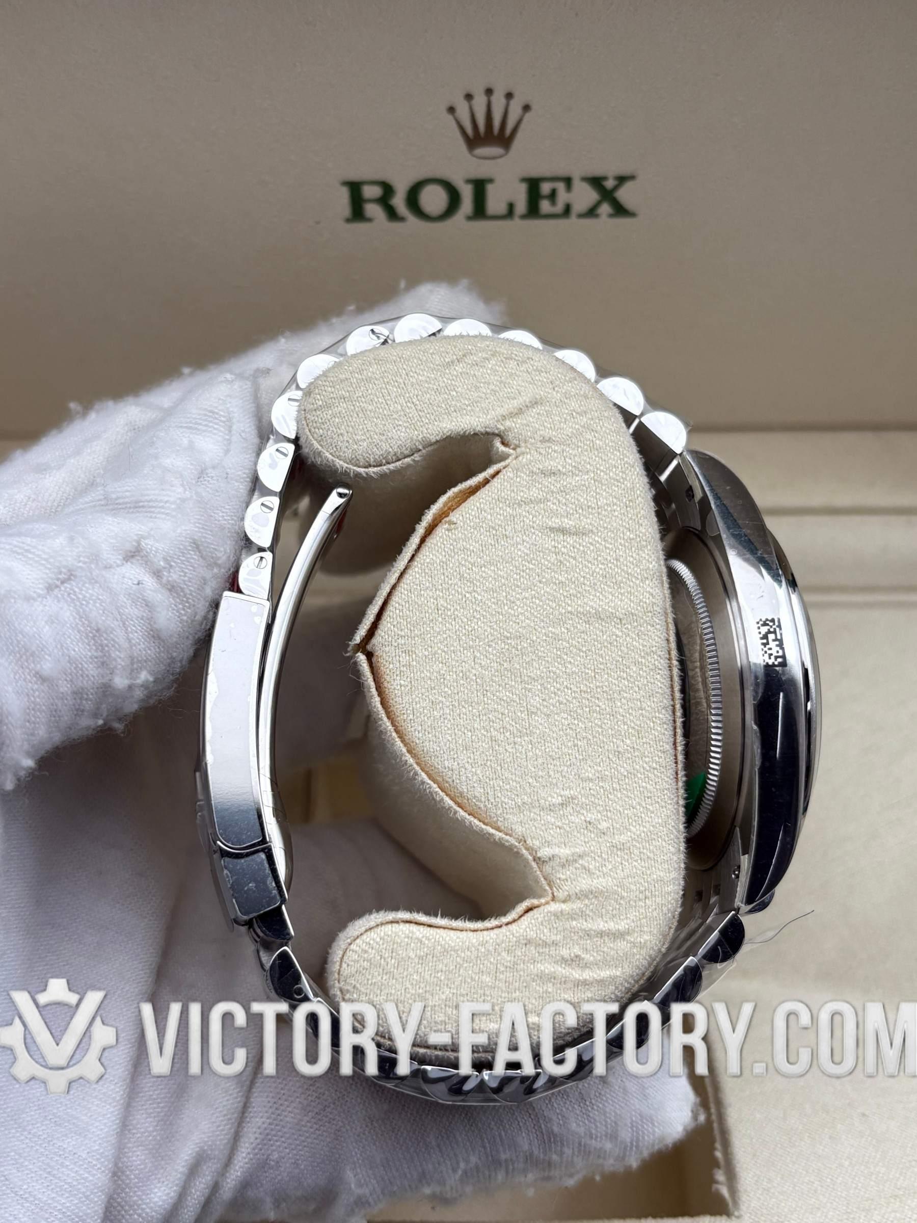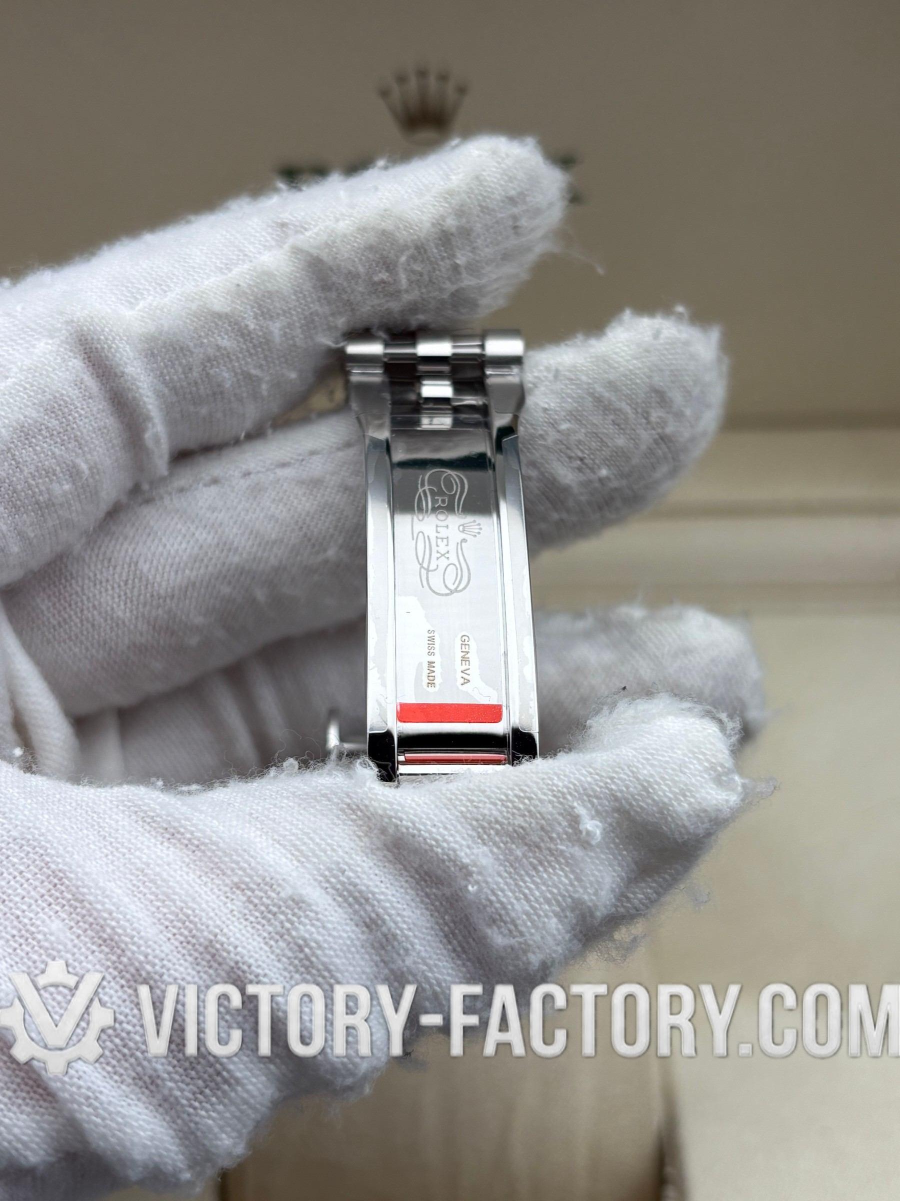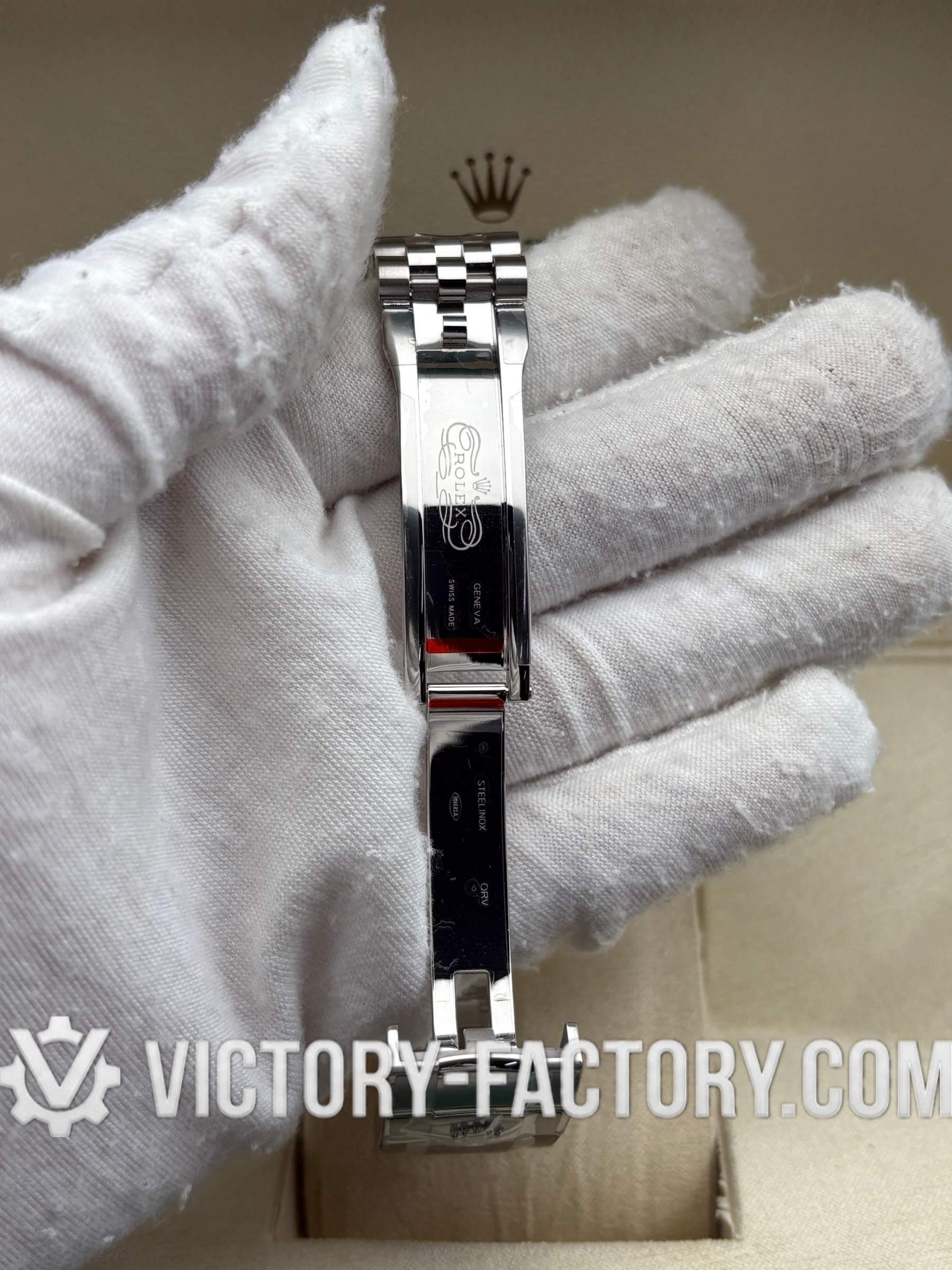 CASE: Our Victory Factory Super Clone features a 41mm solid 904L stainless steel construction, ensuring an exact match to genuine Rolex 904L steel. It includes a screw-down case-back and a Twinlock double waterproofness system winding crown for superior water resistance. Every detail, including the ROLEX laser engraving on the Rehaut ring and a DLC scratch-protection coating, is faithfully replicated for 100% part interchangeability.