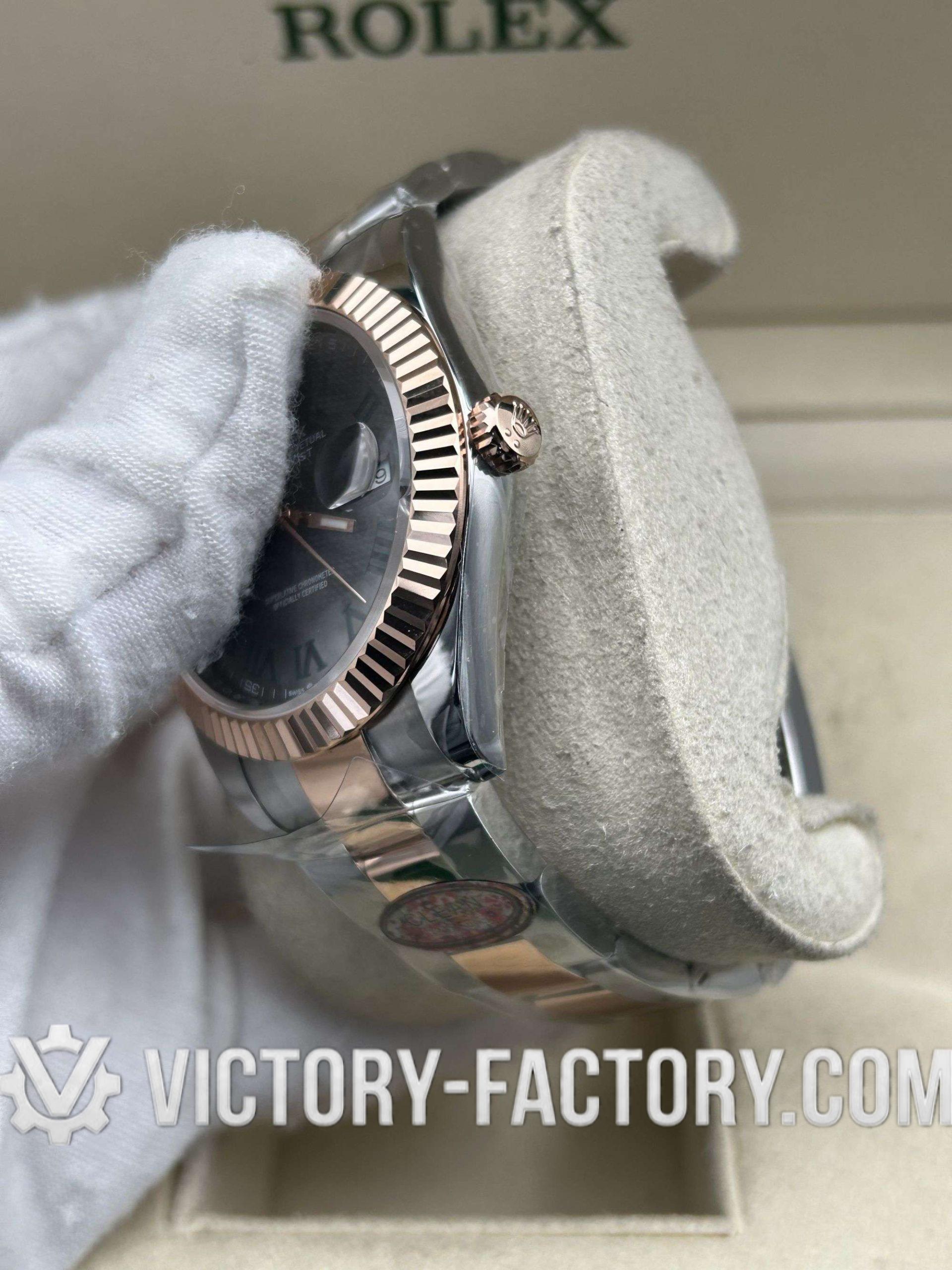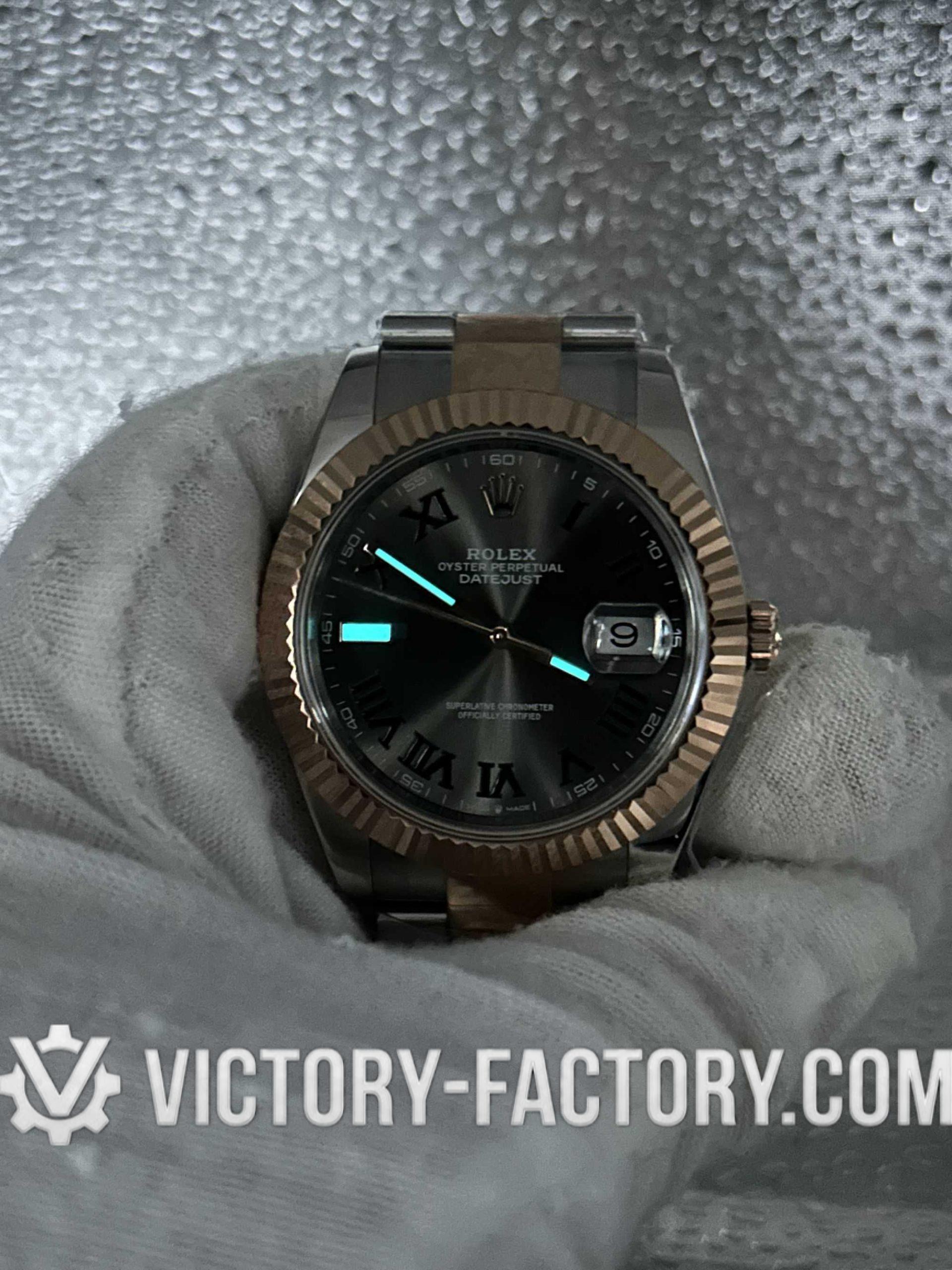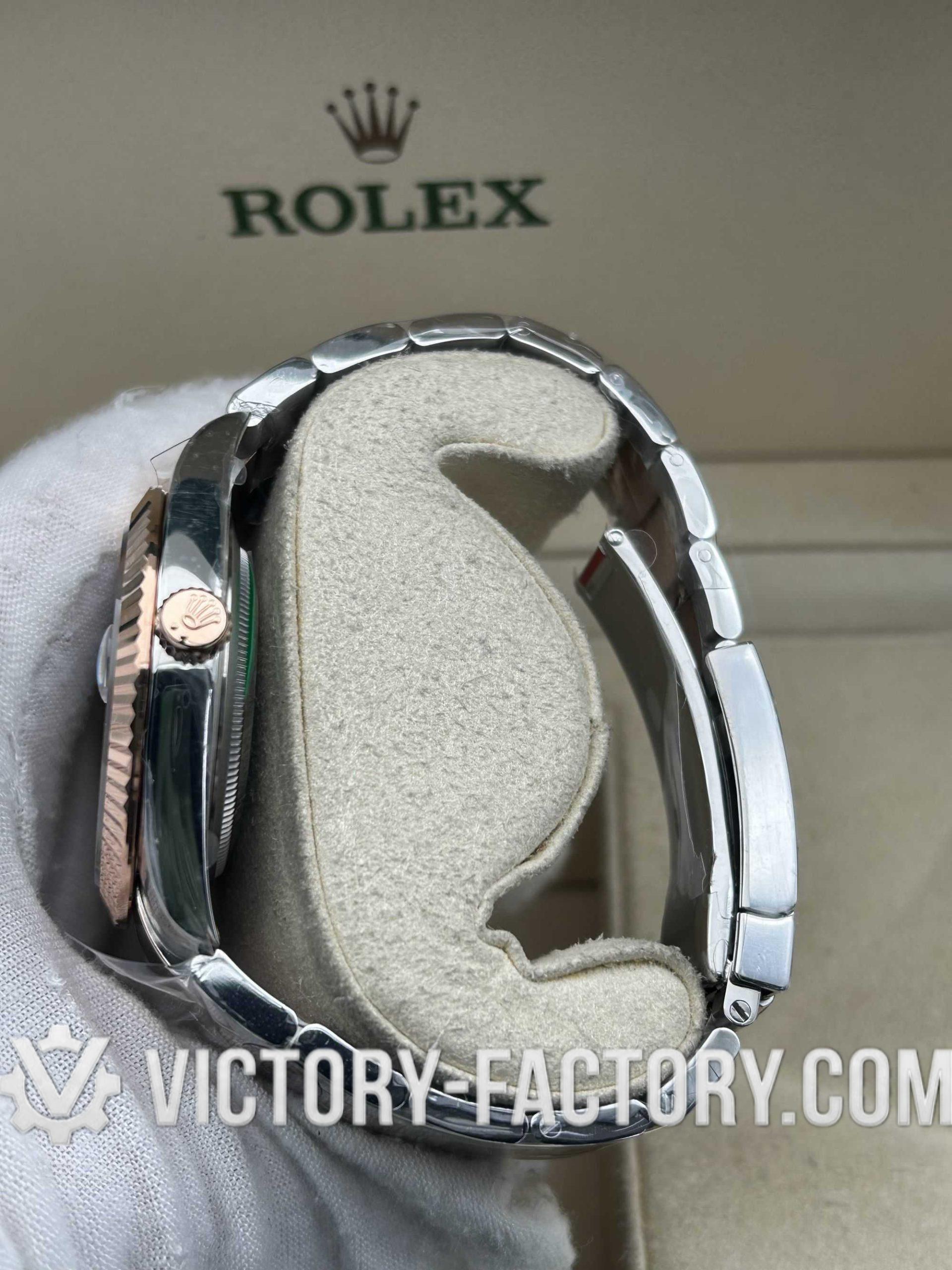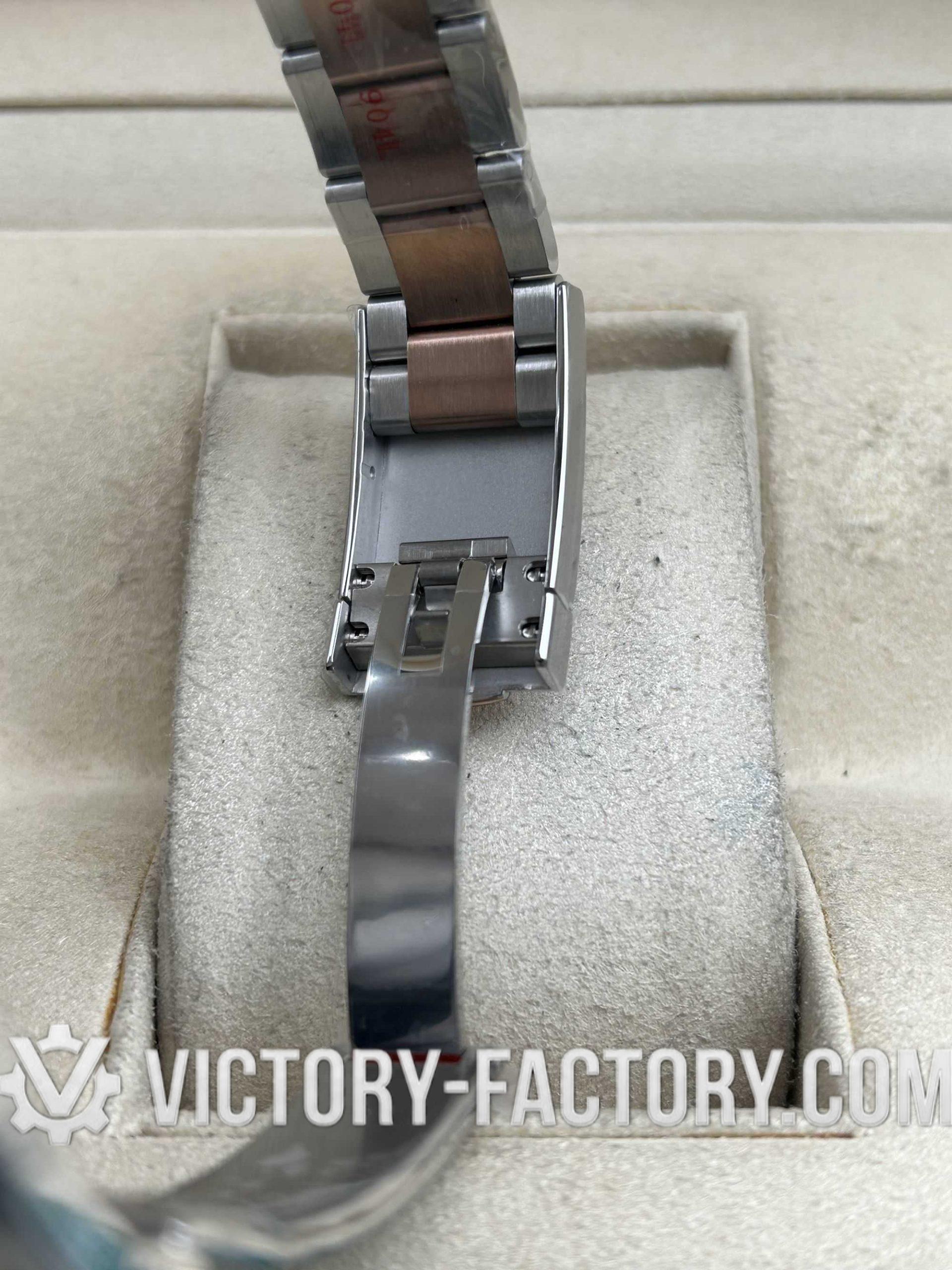 CASE: Our VF replica features a luxurious 41mm two-tone design with 18k Rose Gold wrapping over solid 904L stainless steel. The monobloc construction mirrors the genuine Rolex 904L steel, ensuring authenticity in every detail, weight, and dimension. All parts are fully interchangeable with an original Rolex.