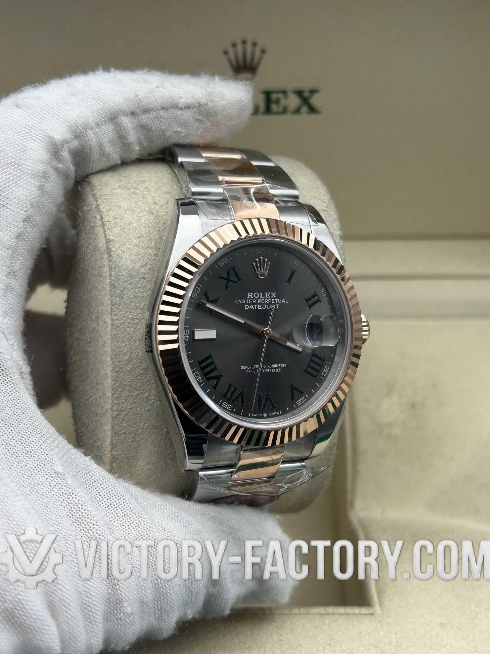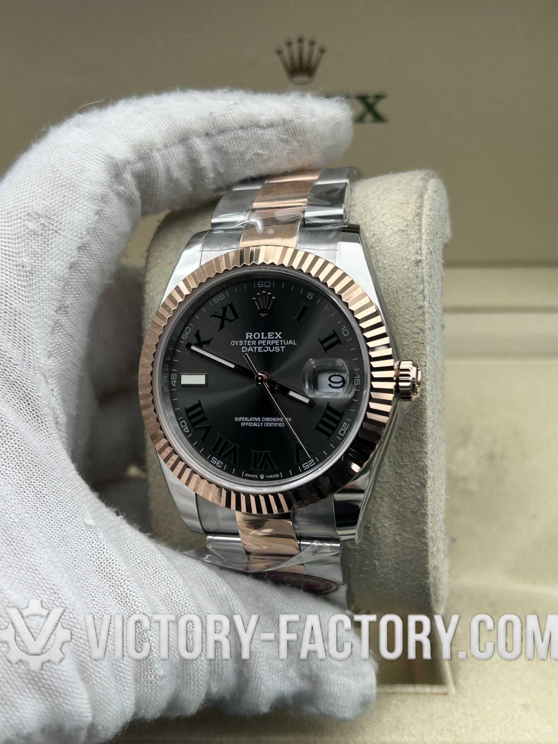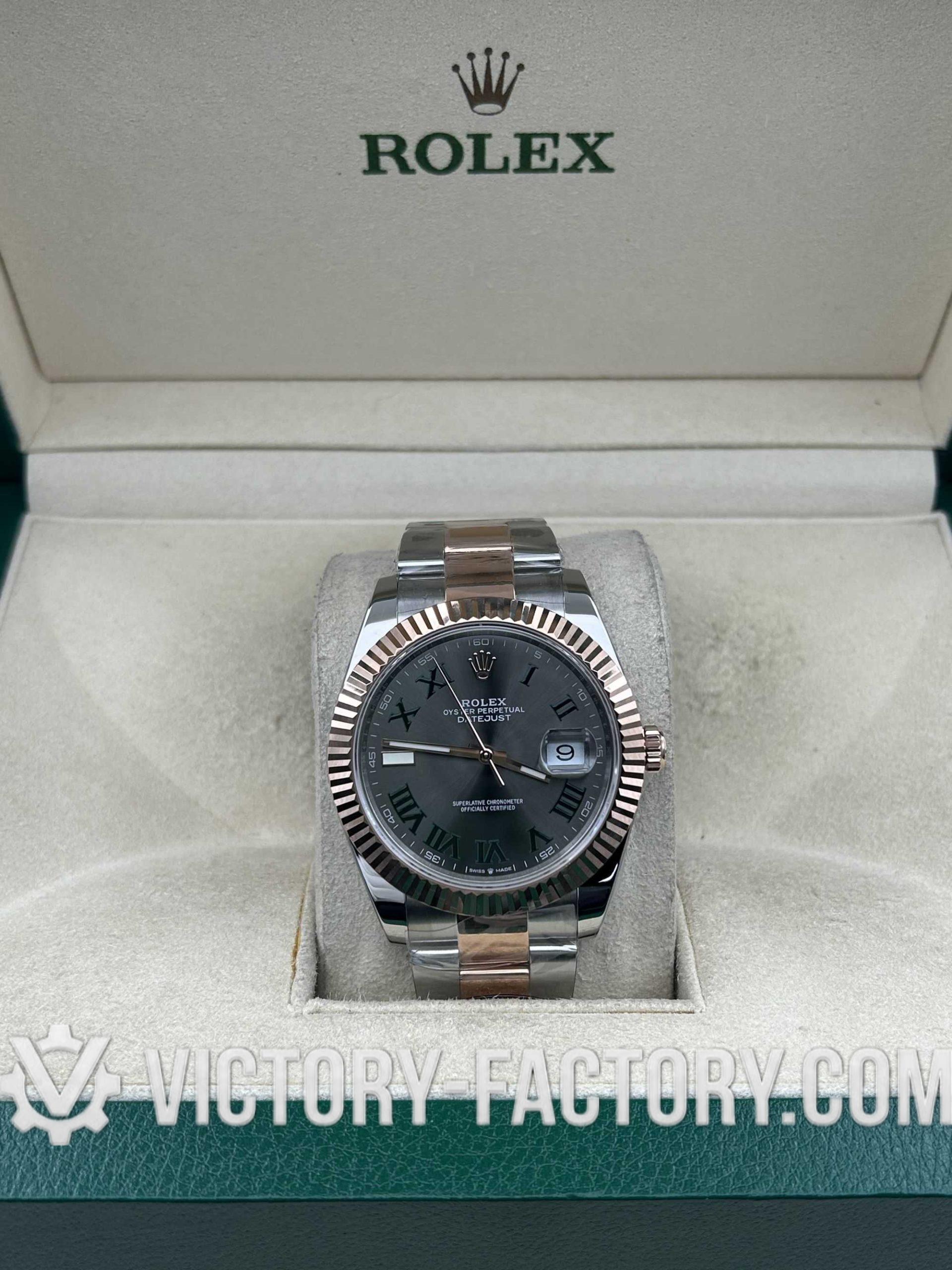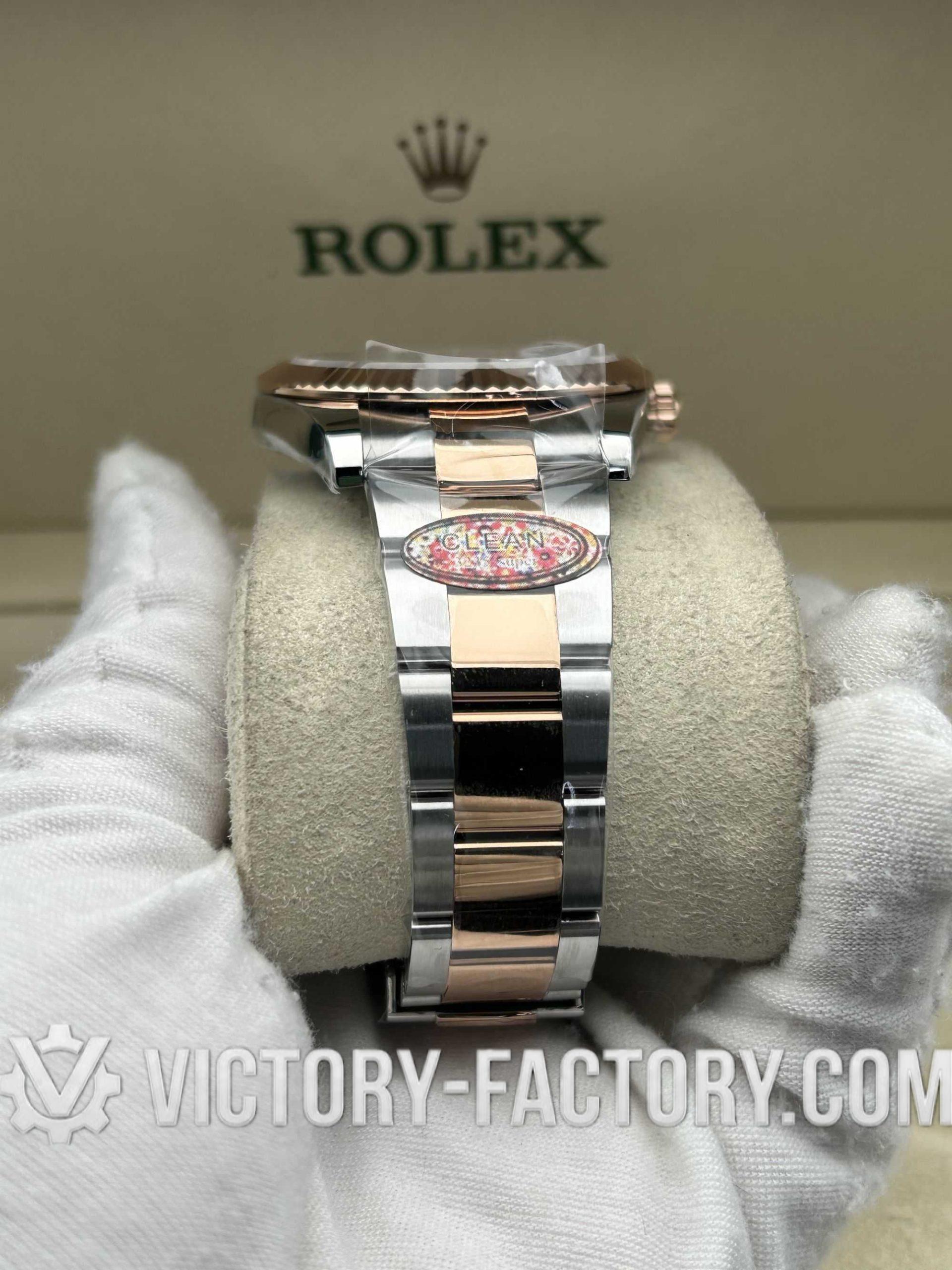 CASE: Our VF replica features a luxurious 41mm two-tone design with 18k Rose Gold wrapping over solid 904L stainless steel. The monobloc construction mirrors the genuine Rolex 904L steel, ensuring authenticity in every detail, weight, and dimension. All parts are fully interchangeable with an original Rolex.