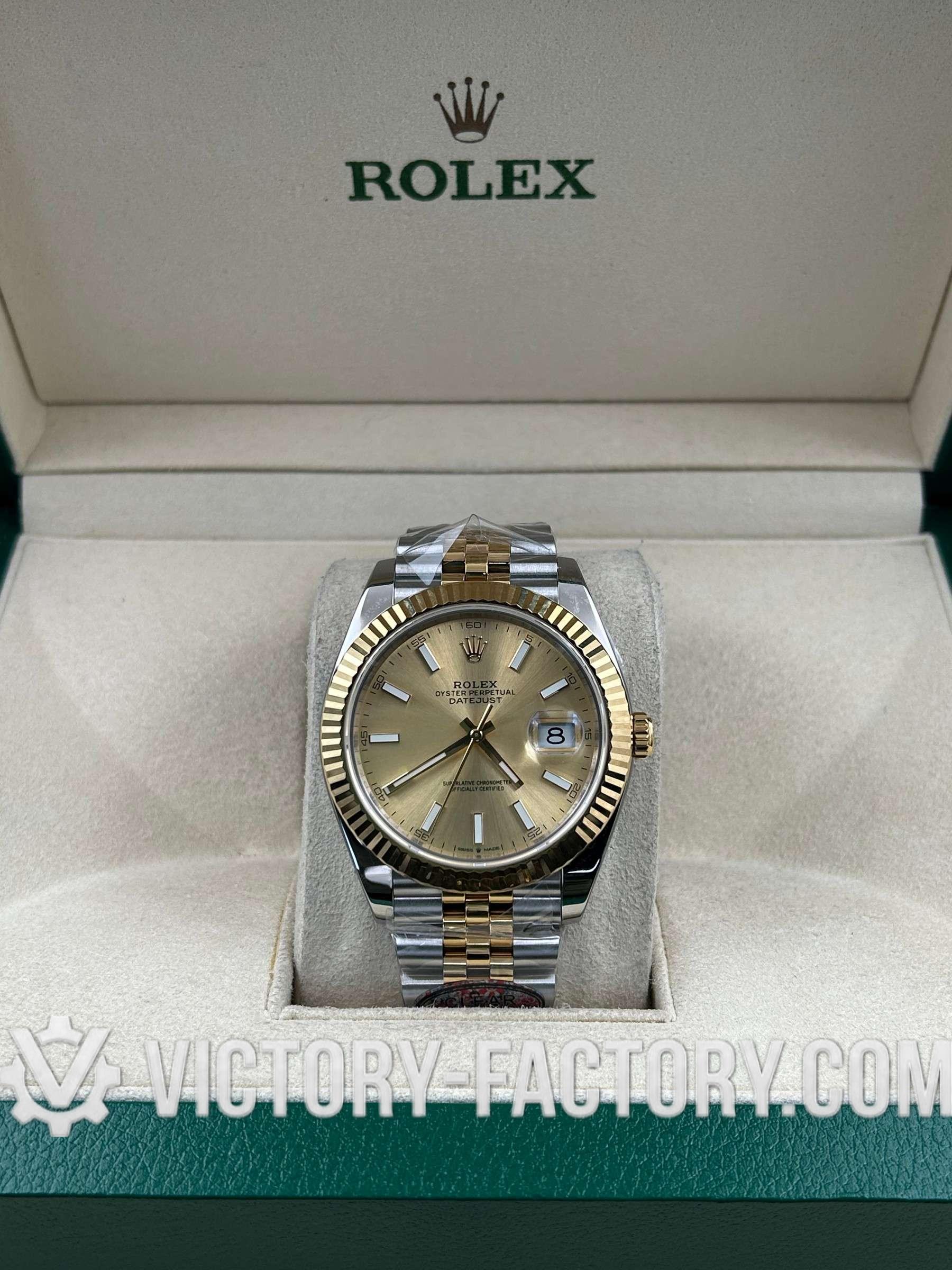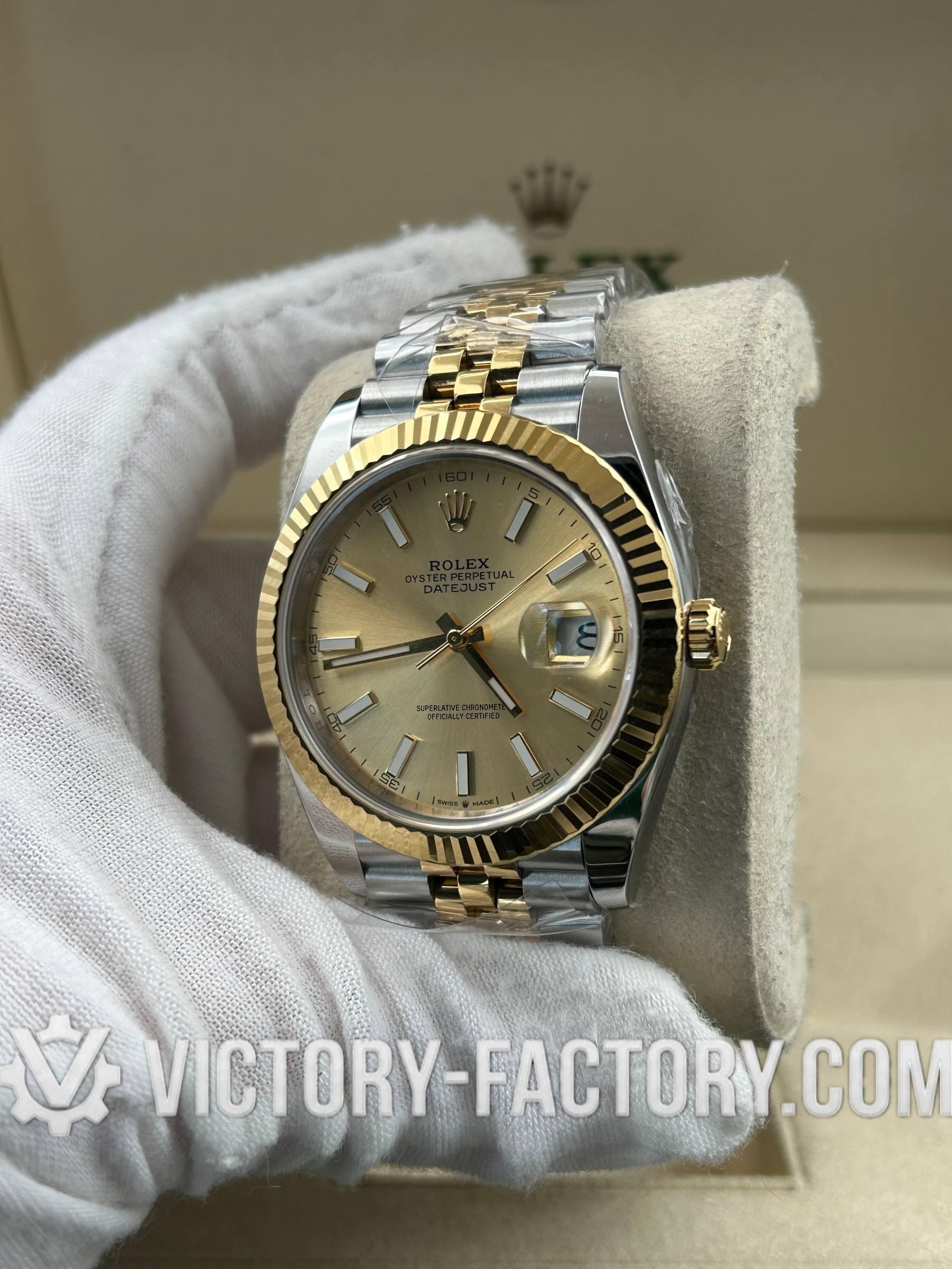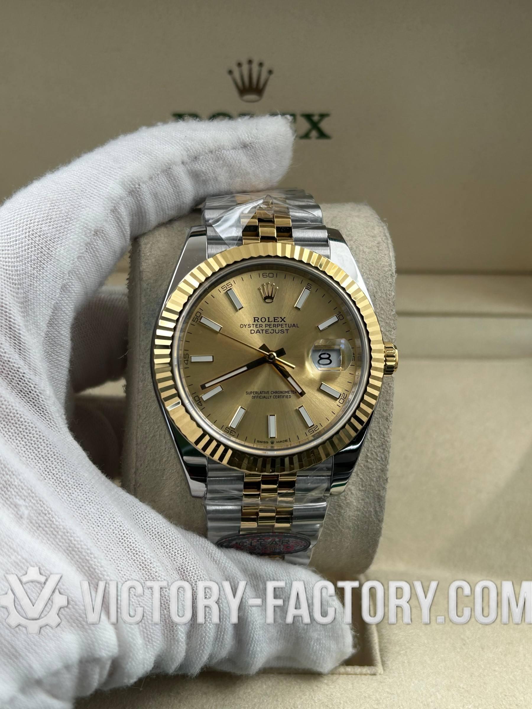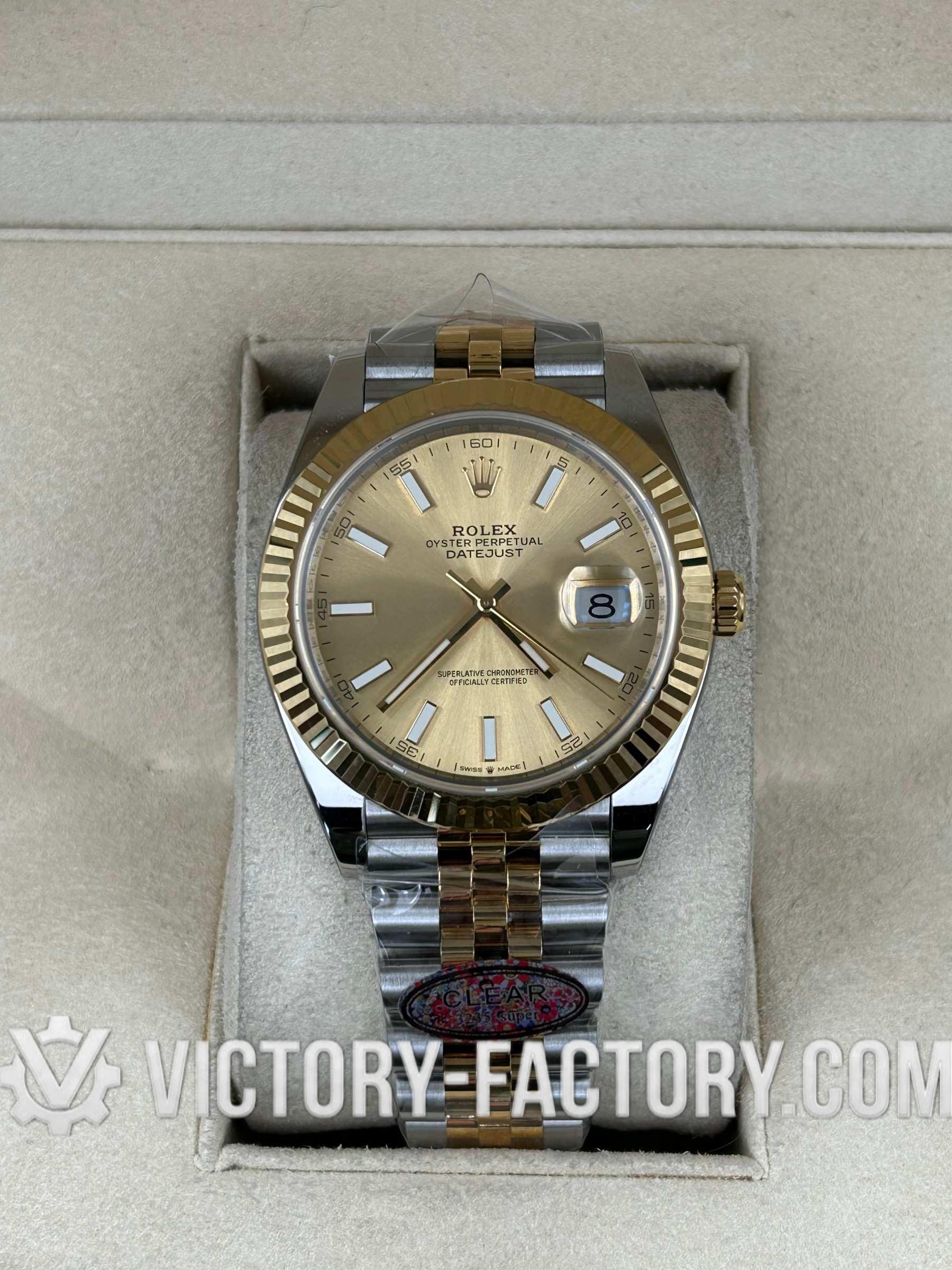Victory Factory (VF) Rolex Datejust 41mm 126333 Two-Tone Champagne Dial Oyster – Clean Factory Parts & Dandong 3235 Movement