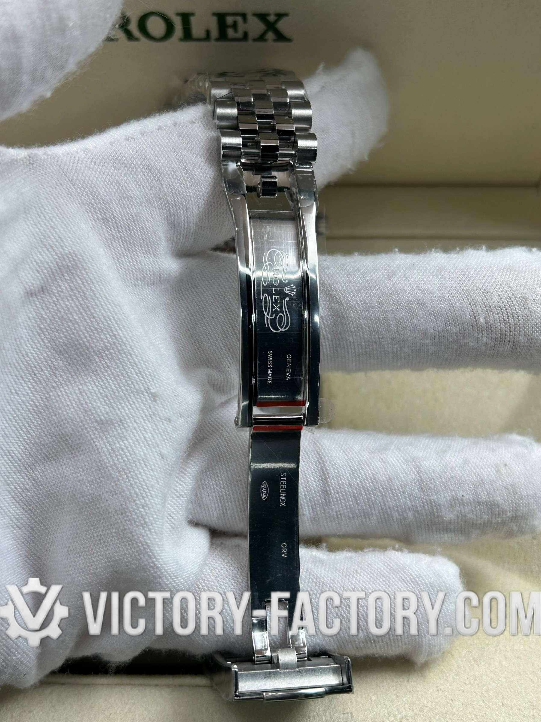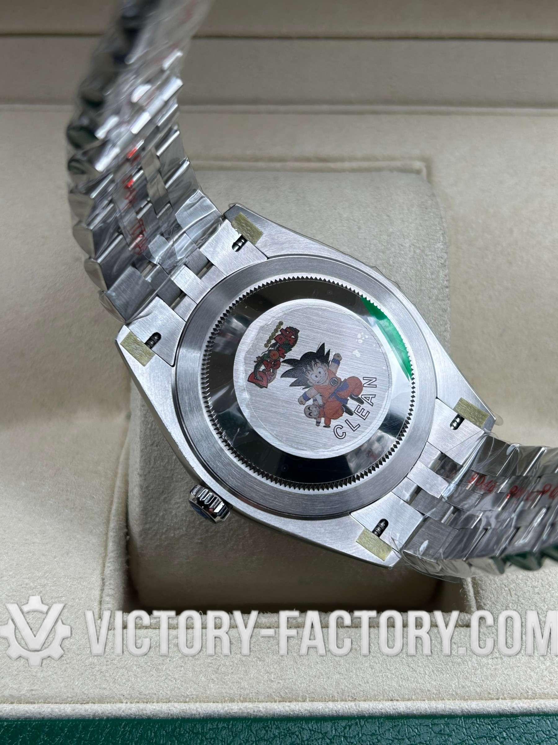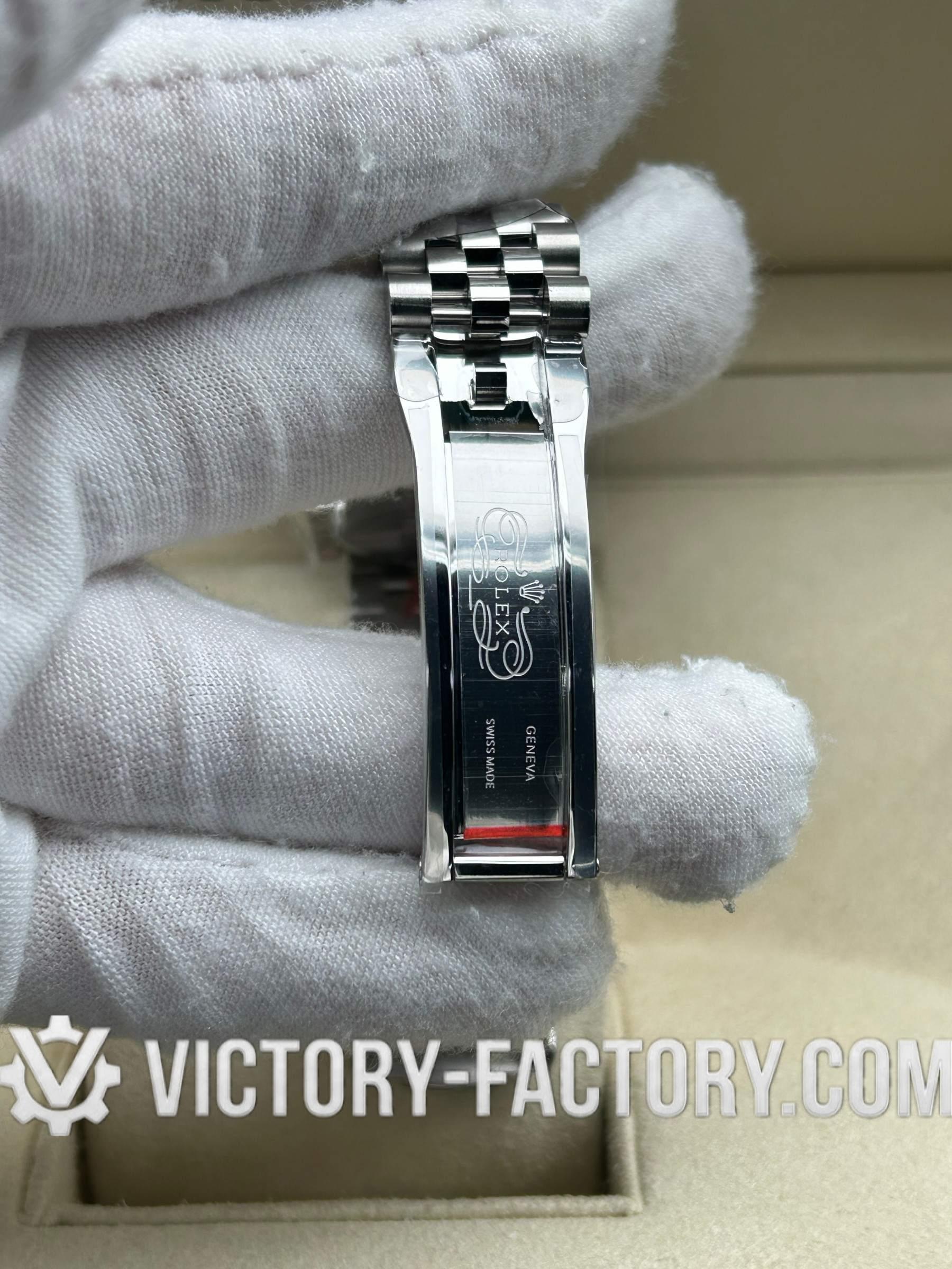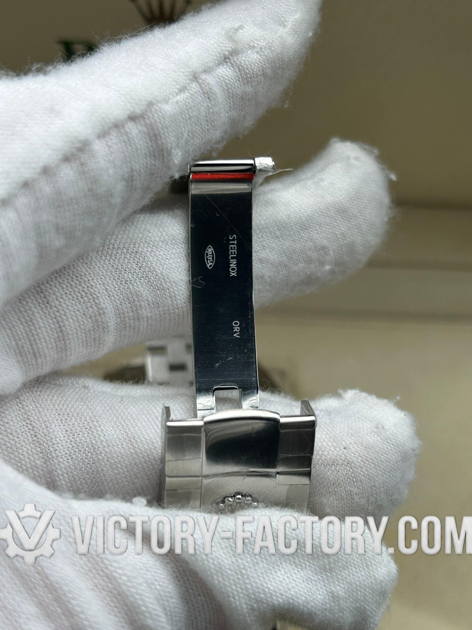 CASE: Our Victory Factory Super Clone features a 41mm solid 904L stainless steel construction, ensuring an exact match to Genuine Rolex 904L steel. It includes a screw-down case-back and a Twinlock double waterproofness system screw-down winding crown for superior water resistance. Every detail, from the ROLEX laser engraving on the Rehaut ring to the DLC scratch-protection coating, is faithfully replicated for 100% part interchangeability.