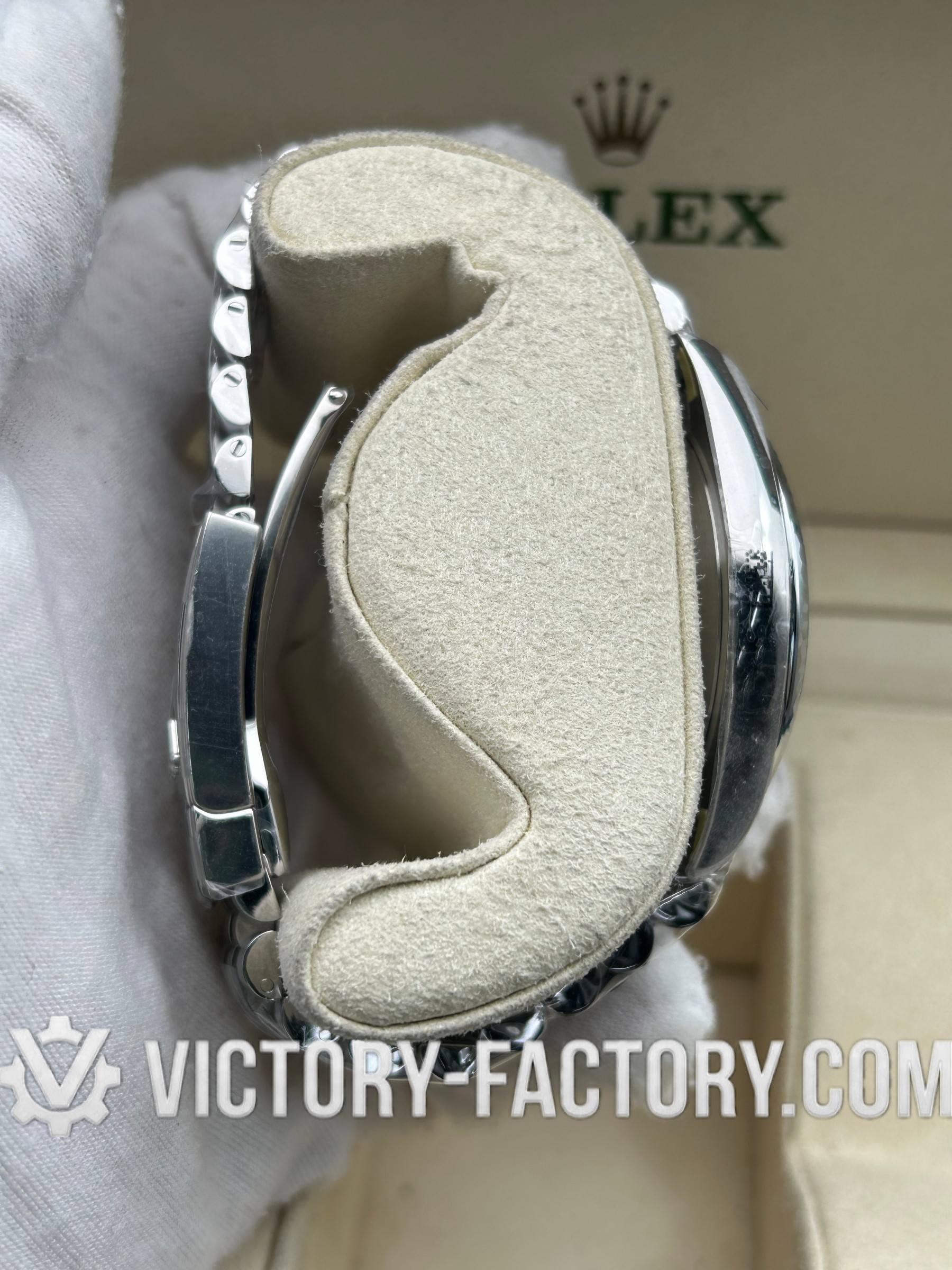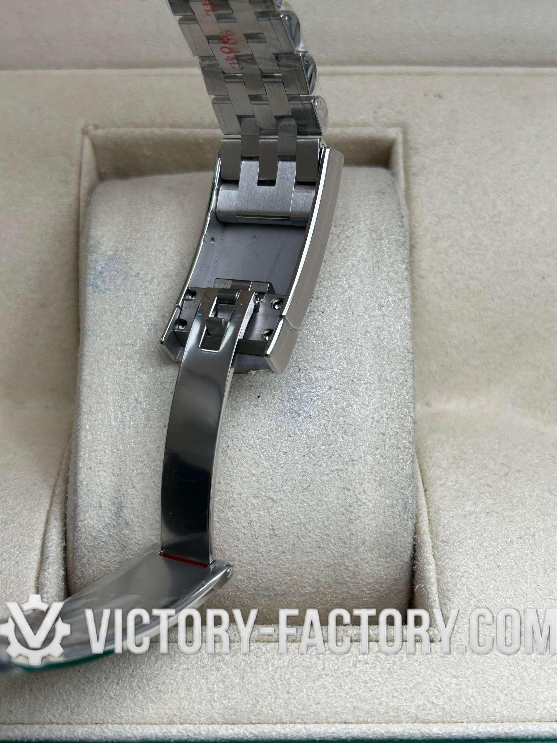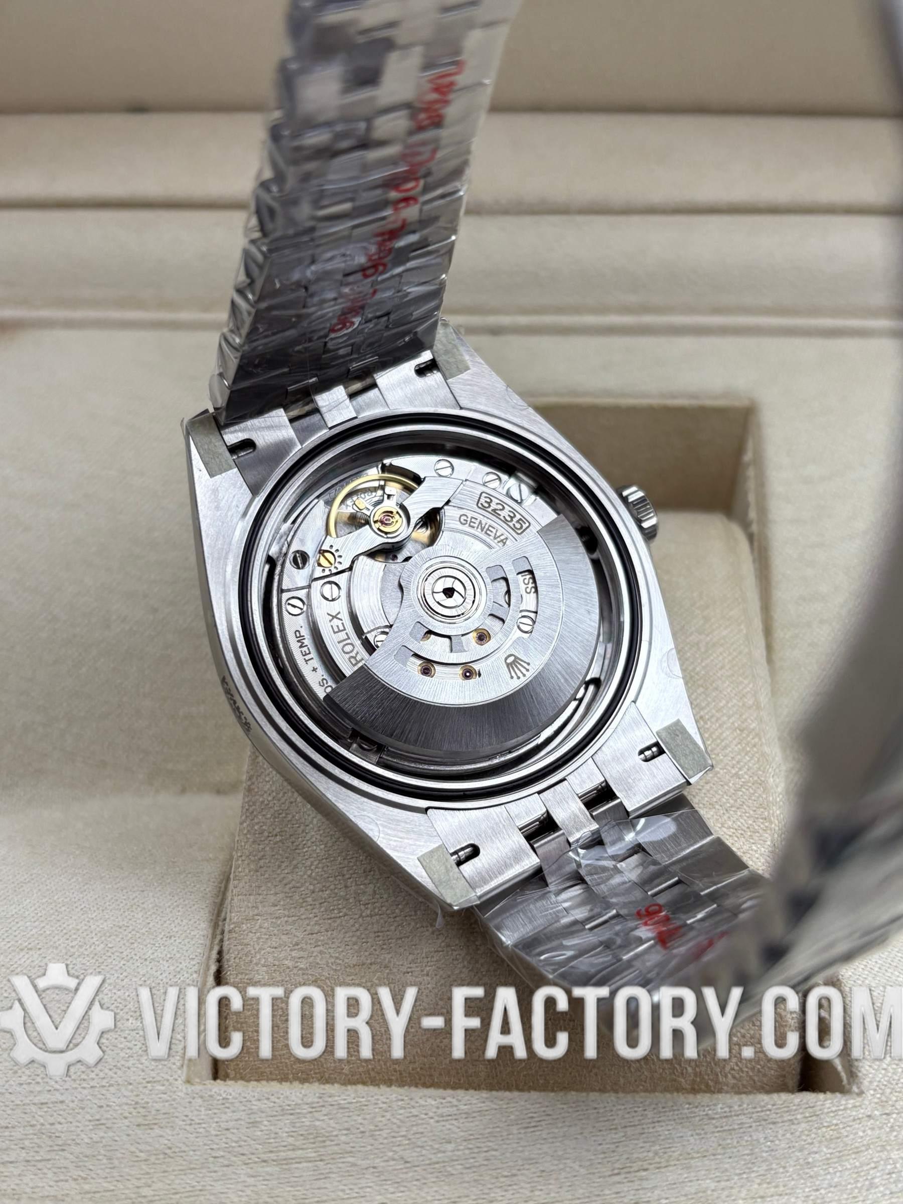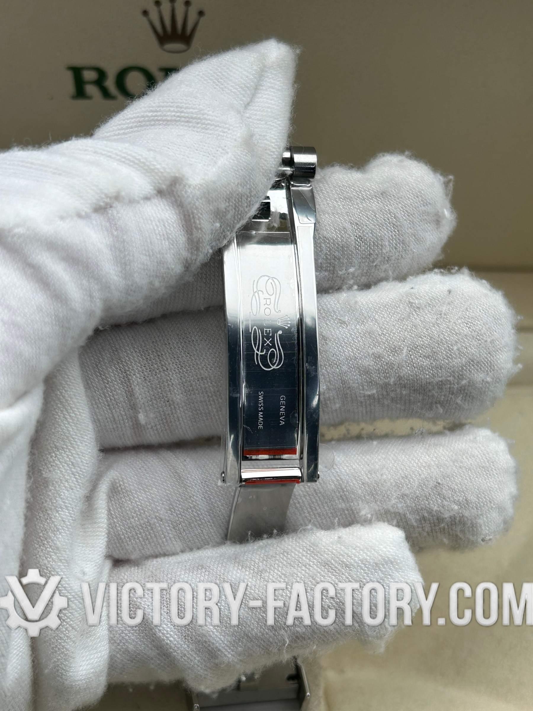 CASE: Our Victory Factory Super Clone watches feature a 41mm solid 904L stainless steel construction, ensuring an exact match to Genuine Rolex 904L steel. It includes a screw-down case-back and a Twinlock double waterproofness system screw-down winding crown for superior water resistance. The ROLEX laser engraving on the Rehaut ring adds authenticity, while a DLC scratch-protection coating ensures durability. Every detail, including dimensions and weight, is faithfully replicated to be 100% identical to genuine Rolex watches, allowing for seamless part interchangeability.