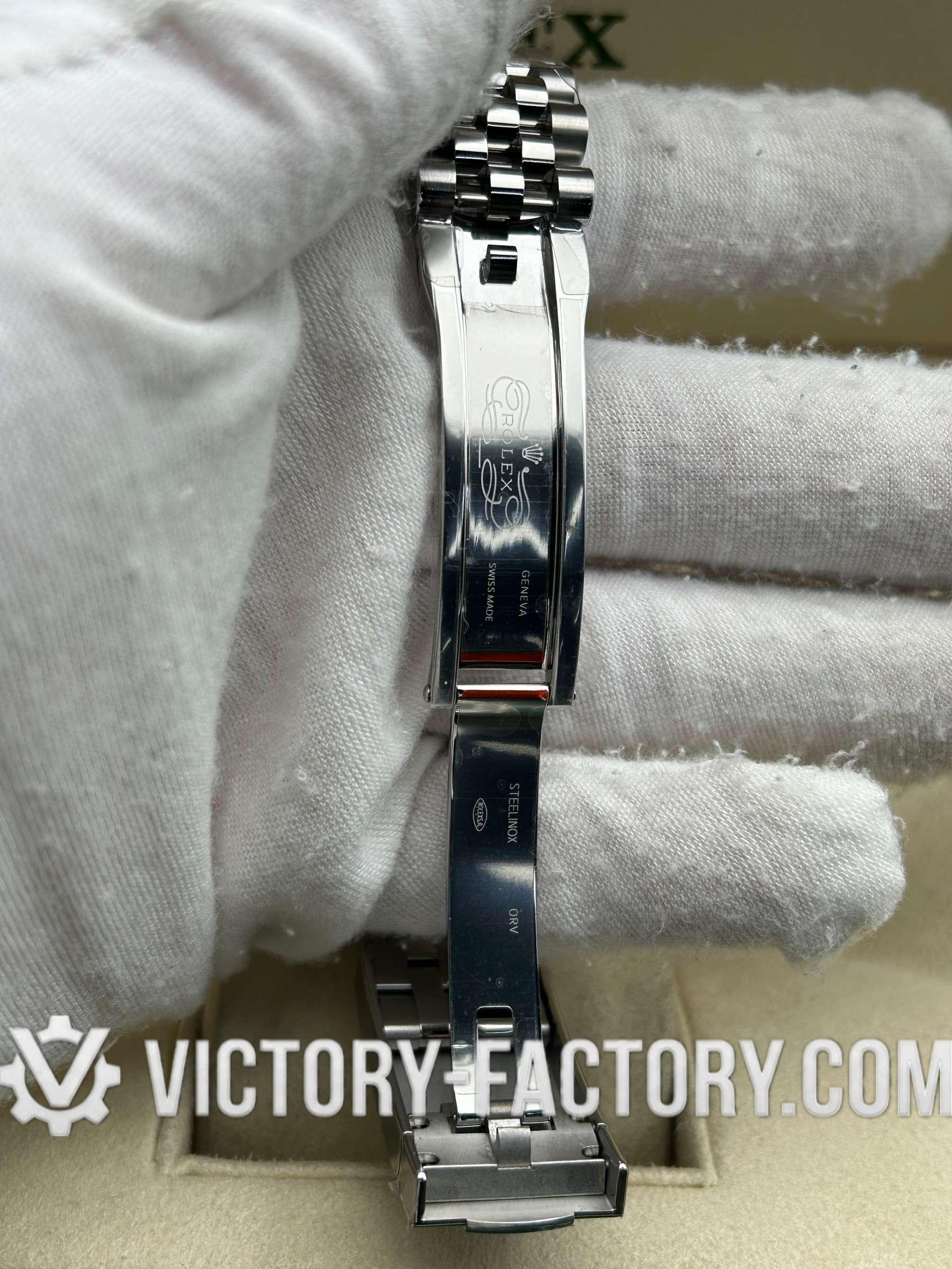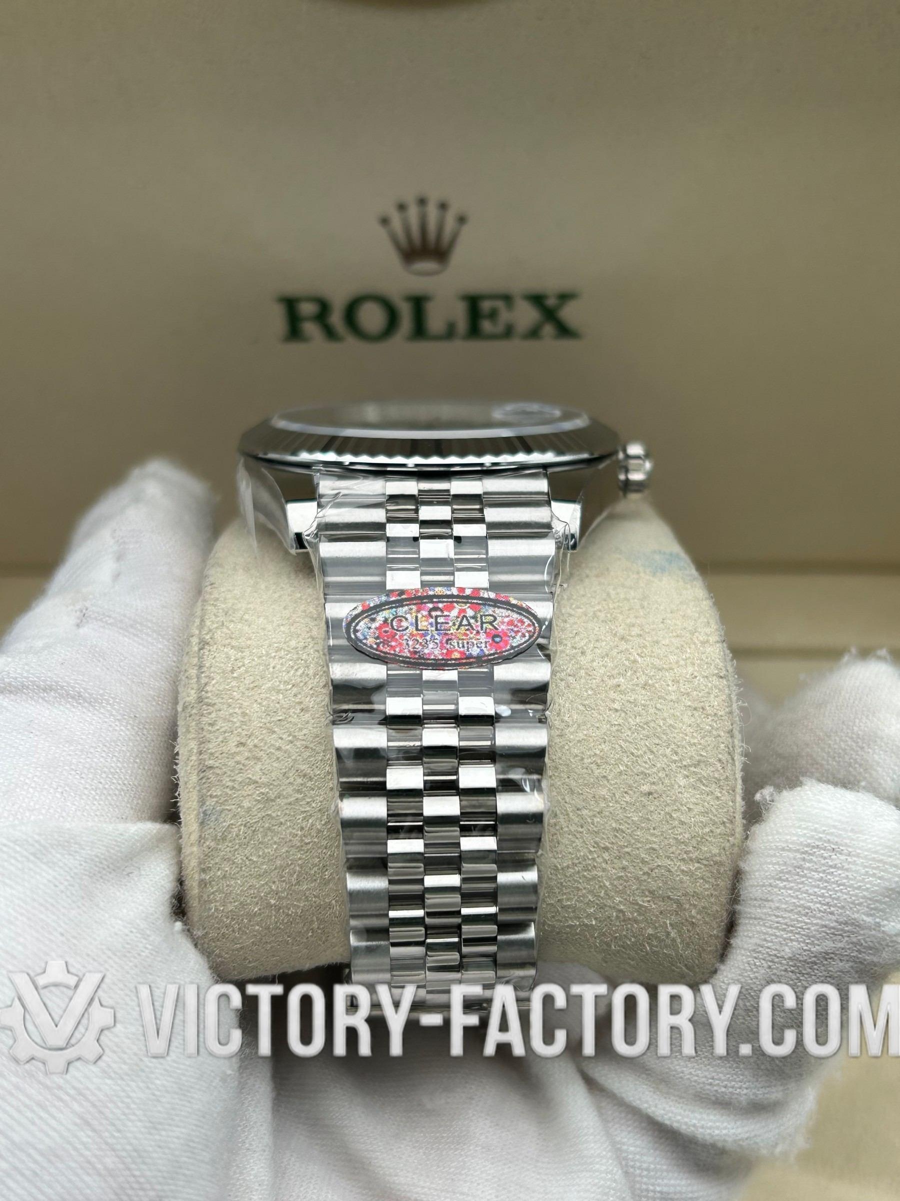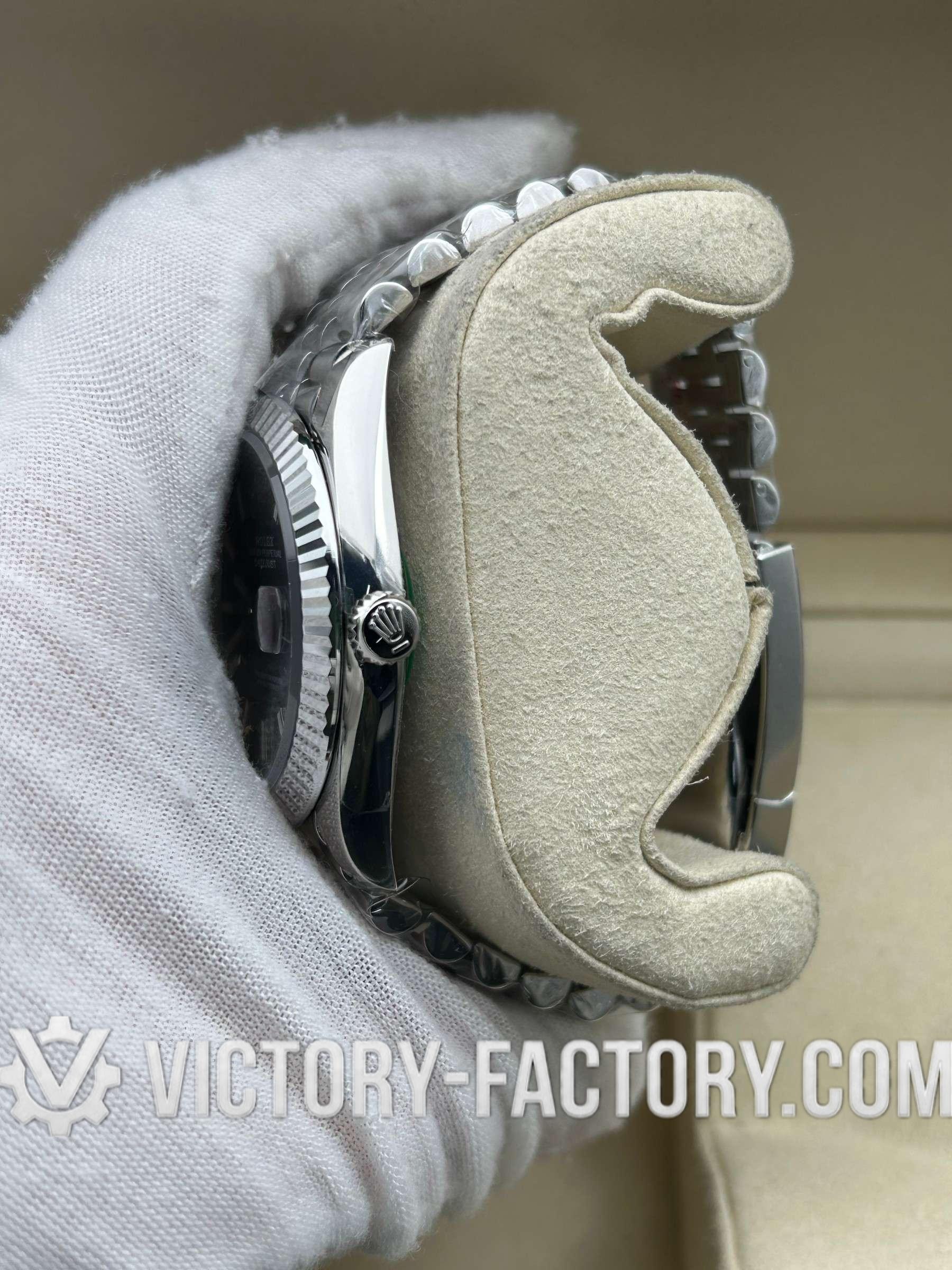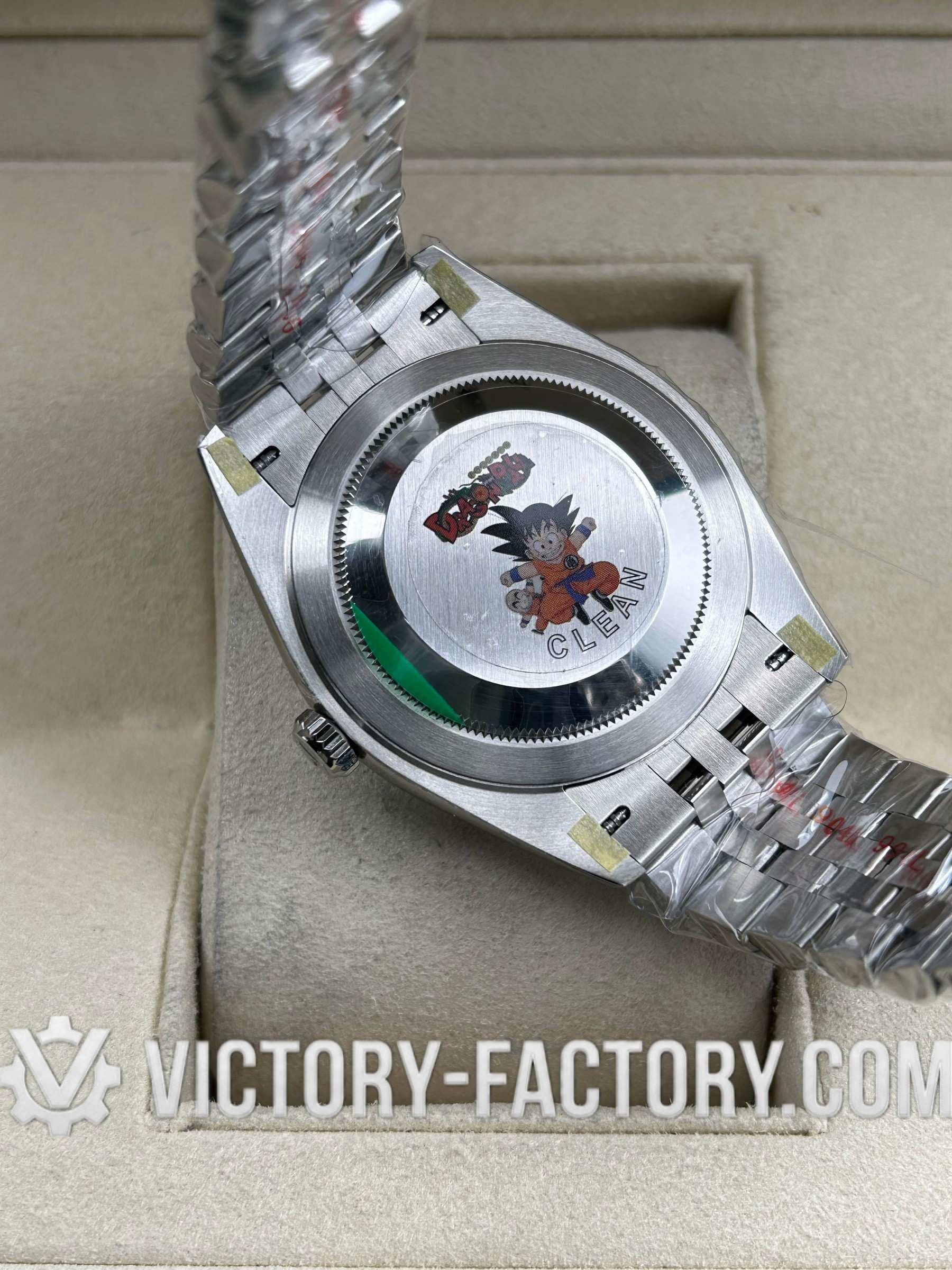 CASE: Our Victory Factory Super Clone watches feature a 41mm solid 904L stainless steel construction, ensuring an exact match to Genuine Rolex 904L steel. It includes a screw-down case-back and a Twinlock double waterproofness system screw-down winding crown for superior water resistance. The ROLEX laser engraving on the Rehaut ring adds authenticity, while a DLC scratch-protection coating ensures durability. Every detail, including dimensions and weight, is faithfully replicated to be 100% identical to genuine Rolex watches, allowing for seamless part interchangeability.