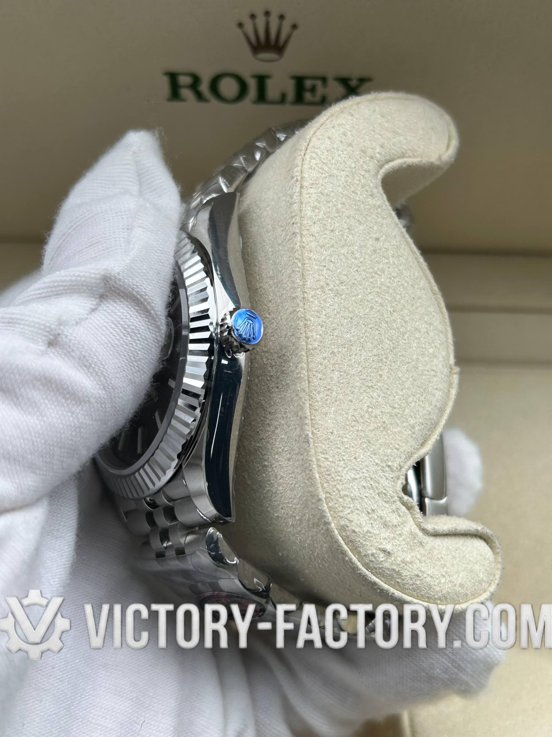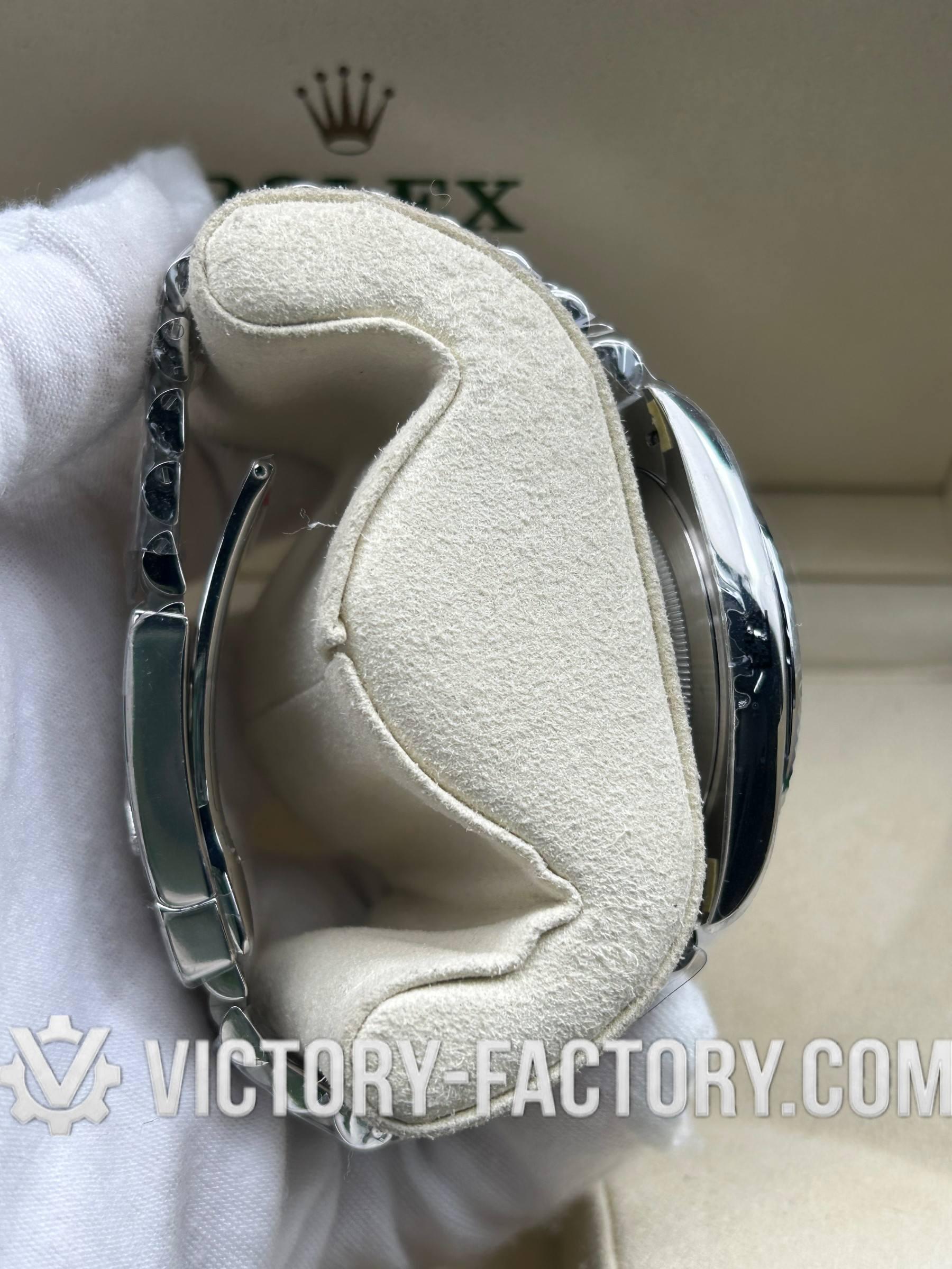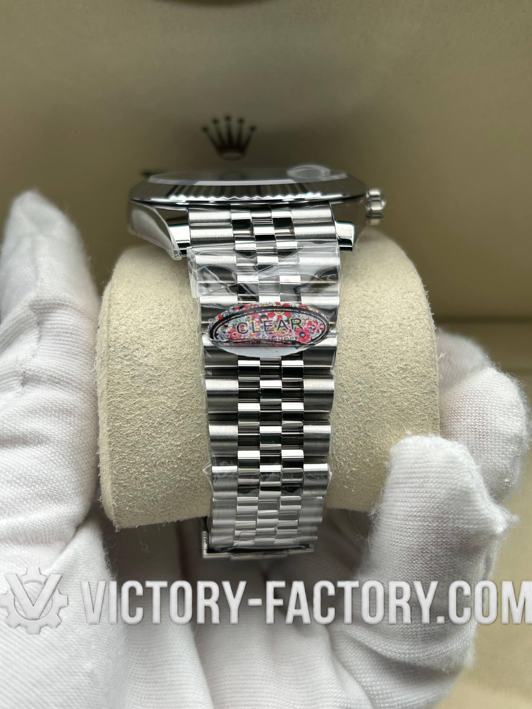 • CASE: Our Victory Factory Super Clone features a 41mm solid 904L stainless steel construction, ensuring an exact match to genuine Rolex 904L steel. It includes a screw-down case-back and a Twinlock double waterproofness system screw-down winding crown for superior water resistance. The ROLEX laser engraving on the Rehaut ring adds authenticity, while a DLC scratch-protection coating ensures long-lasting durability.