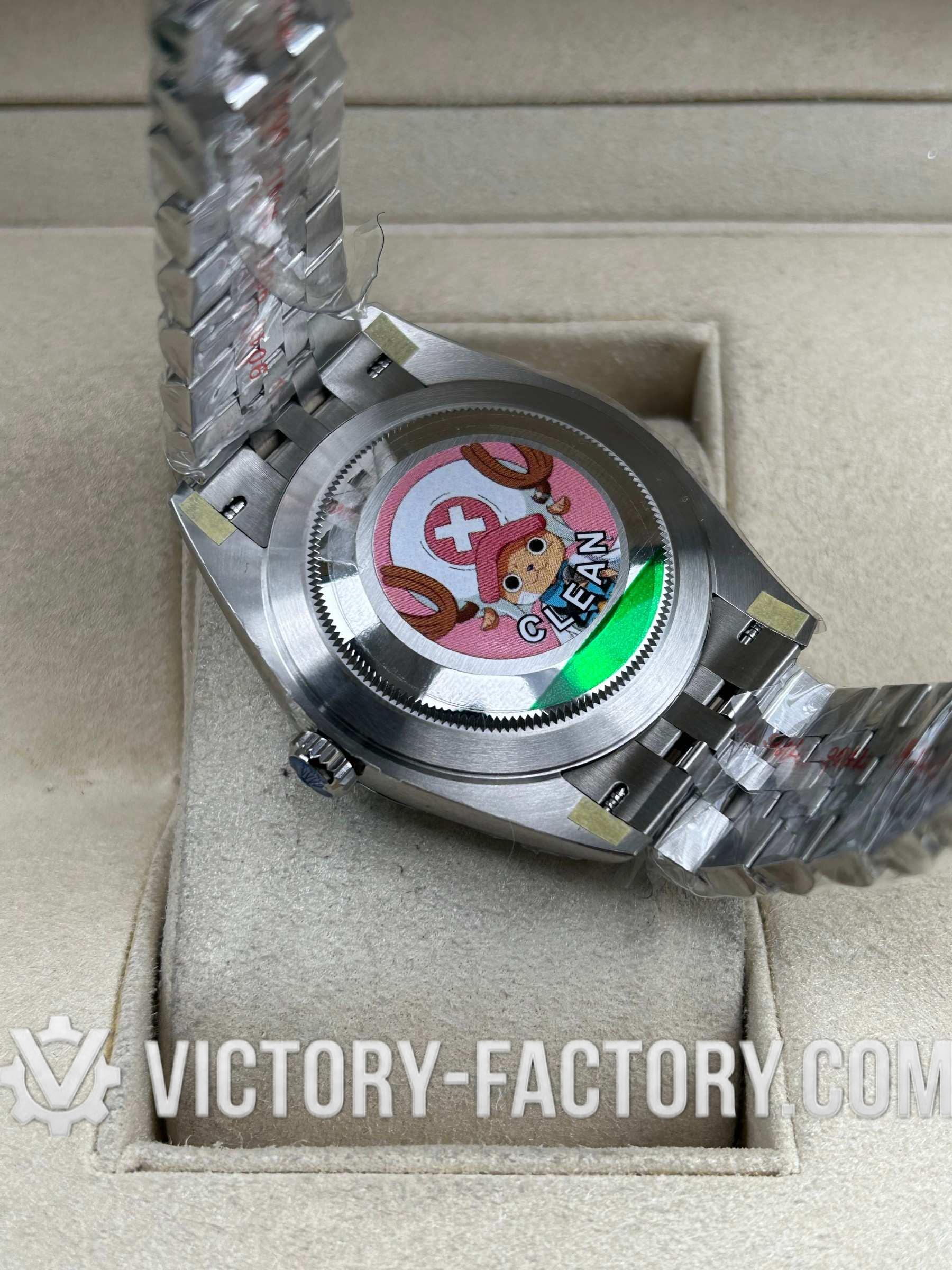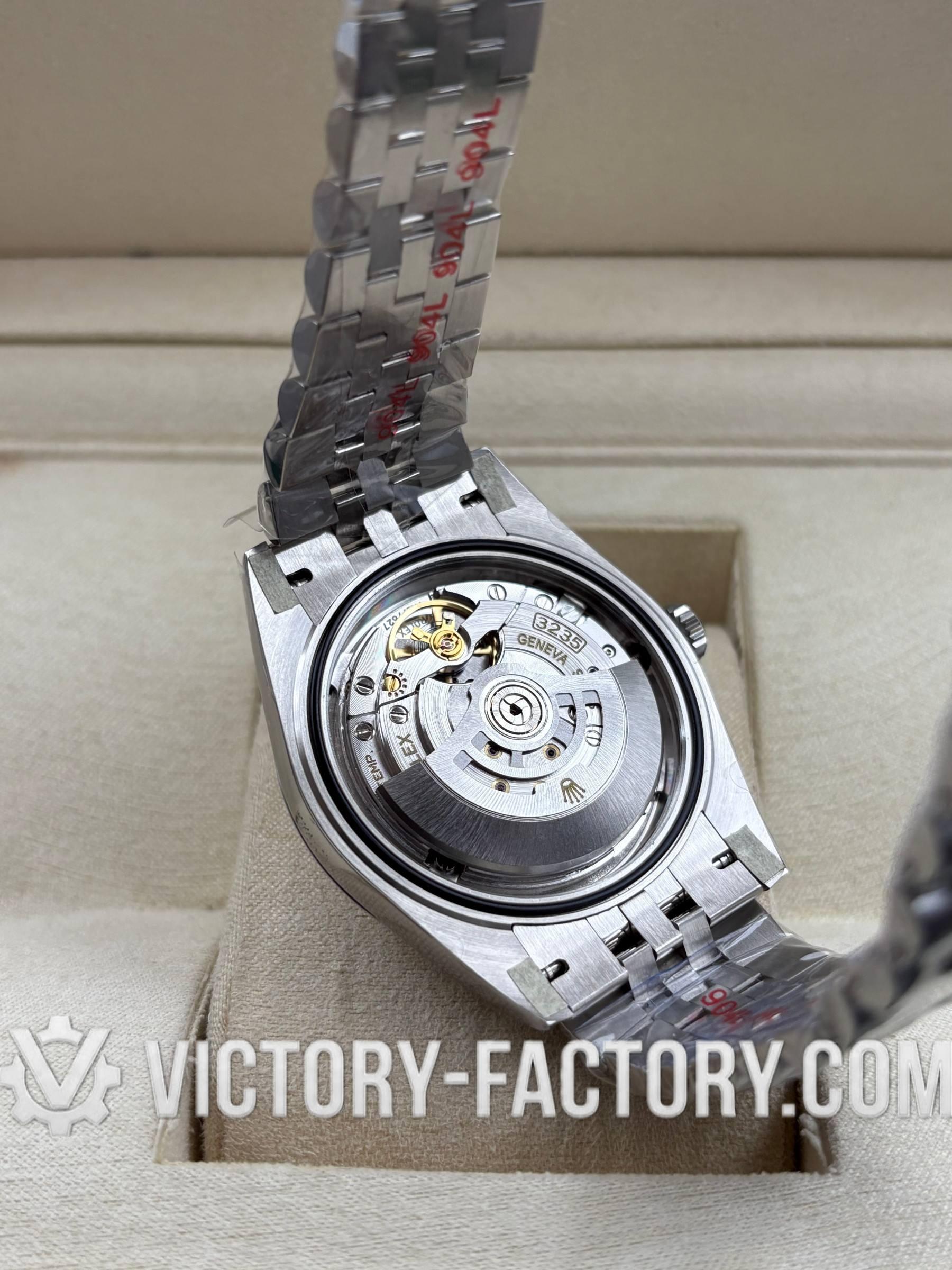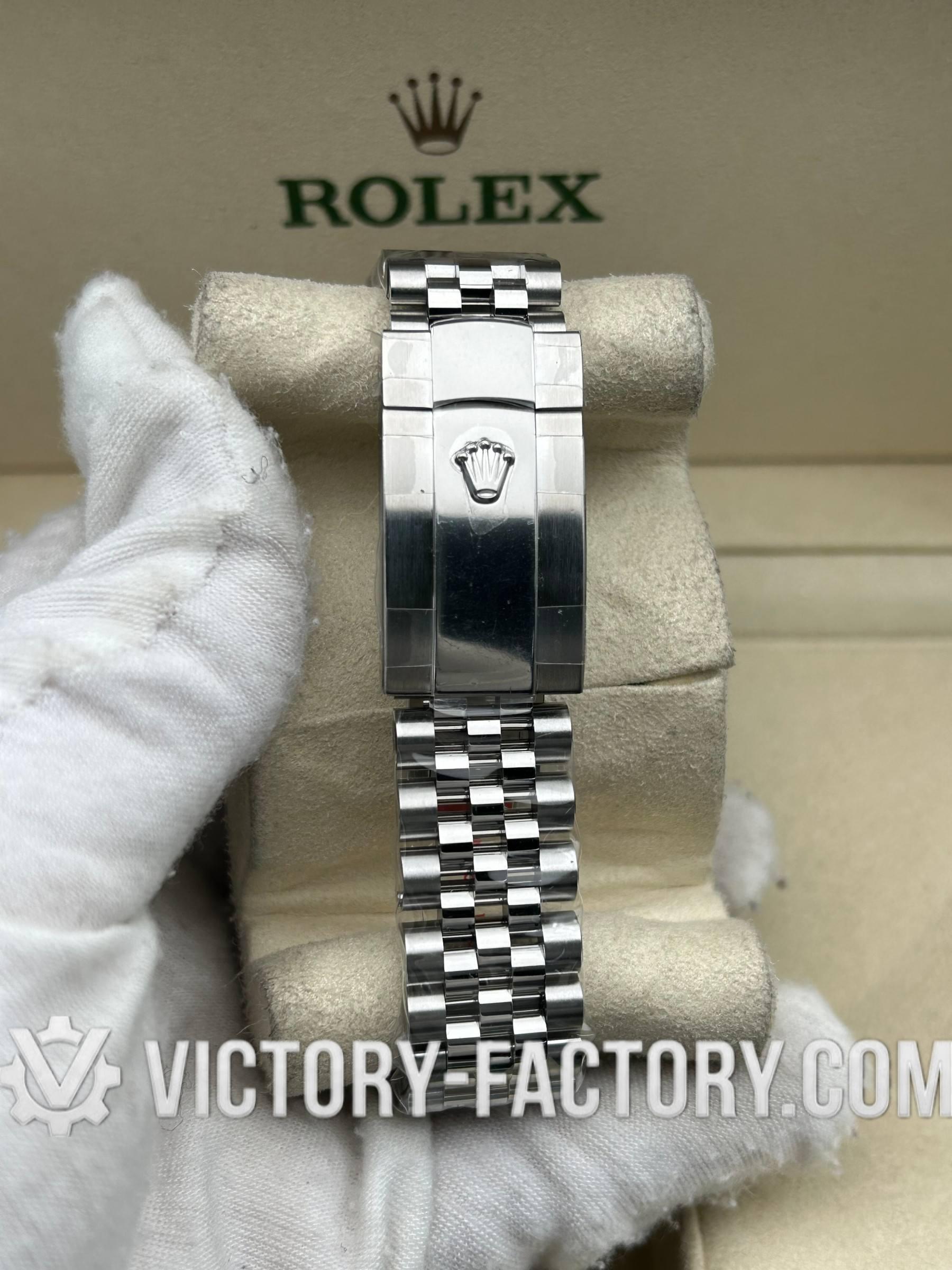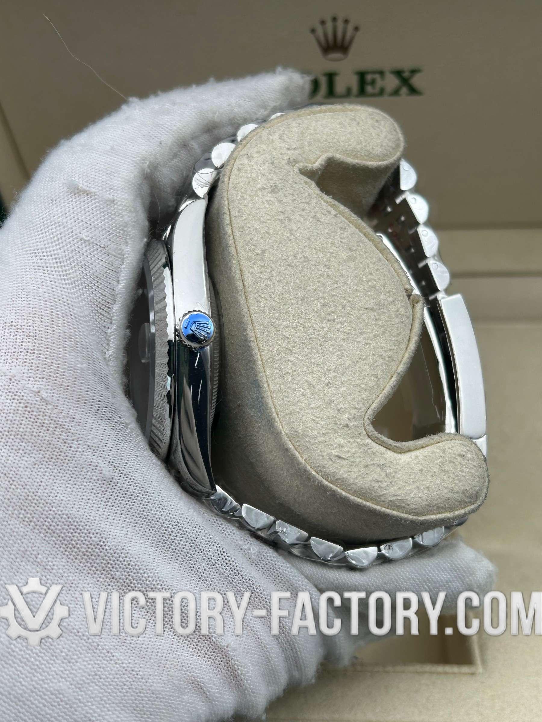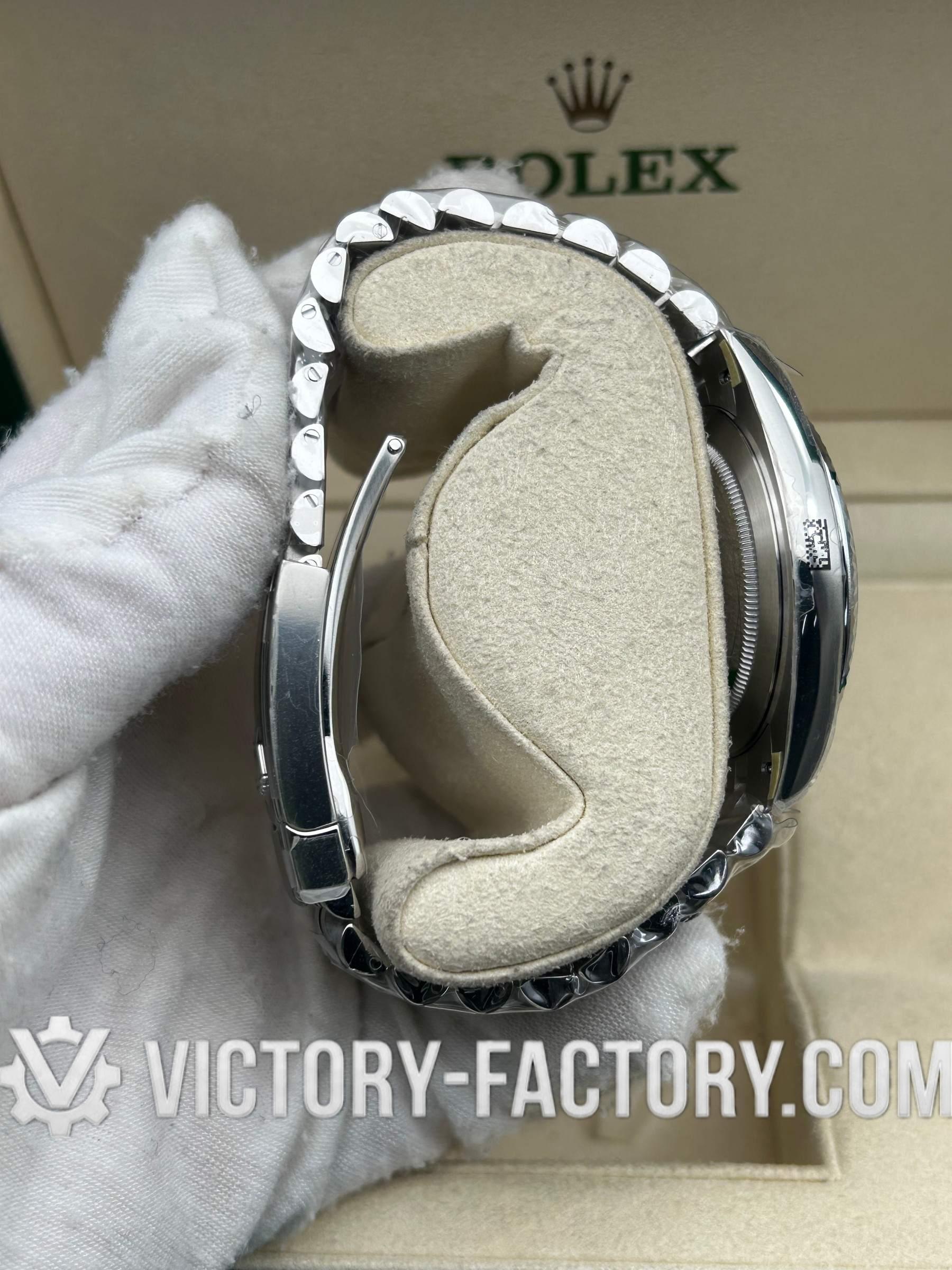 • CASE: Our Victory Factory Super Clone features a 41mm solid 904L stainless steel construction, ensuring an exact match to genuine Rolex 904L steel. It includes a screw-down case-back and a Twinlock double waterproofness system screw-down winding crown for superior water resistance. Every detail, including the ROLEX laser engraving on the Rehaut ring and a DLC scratch-protection coating, is faithfully replicated to be 100% identical to the original.