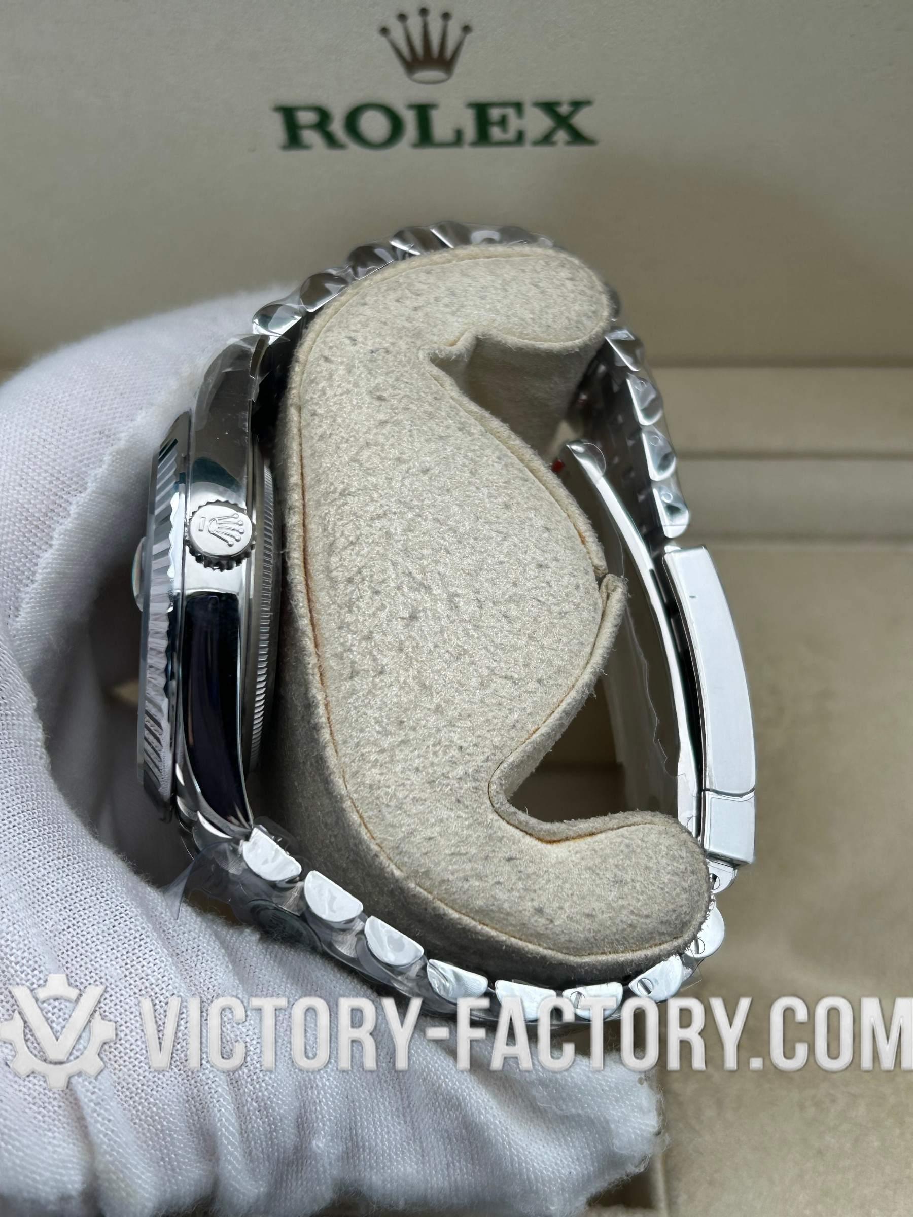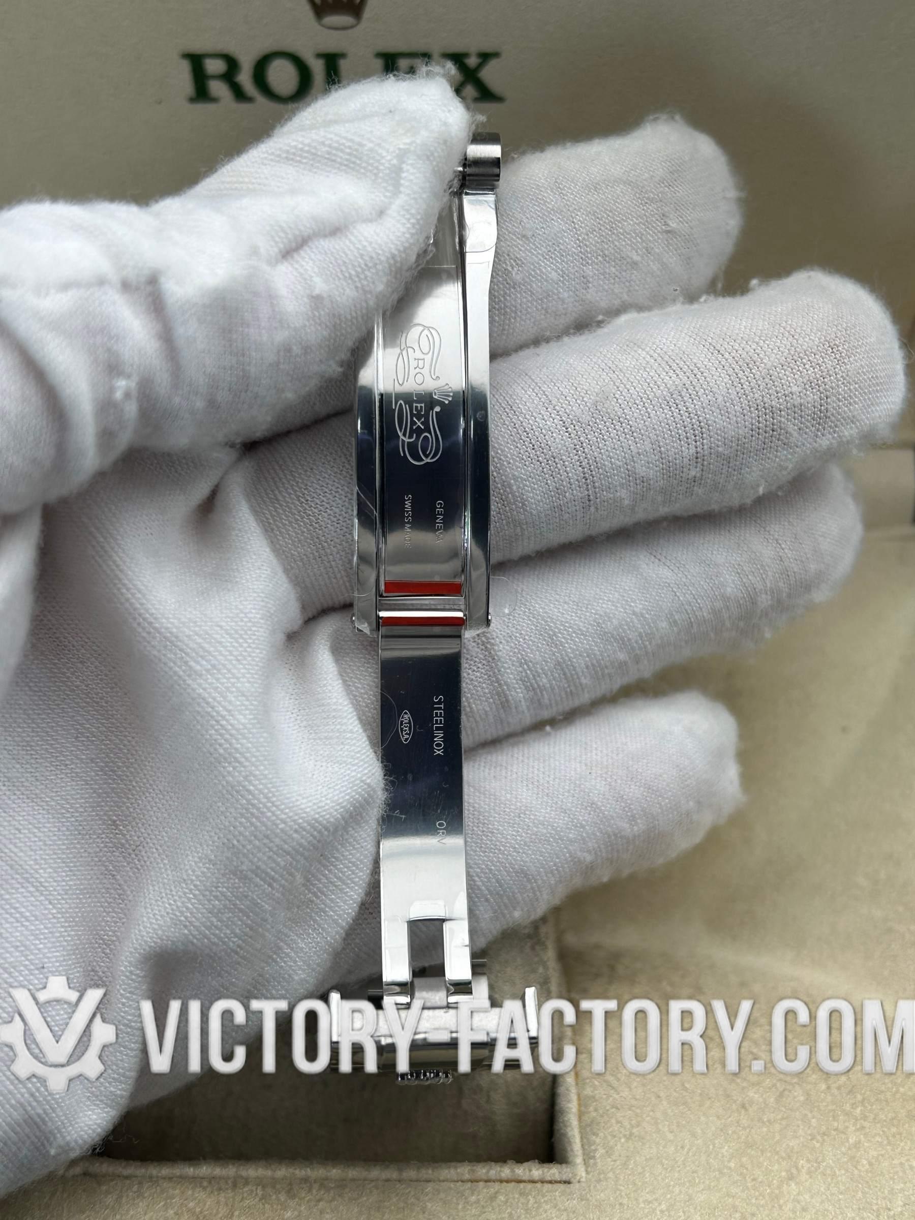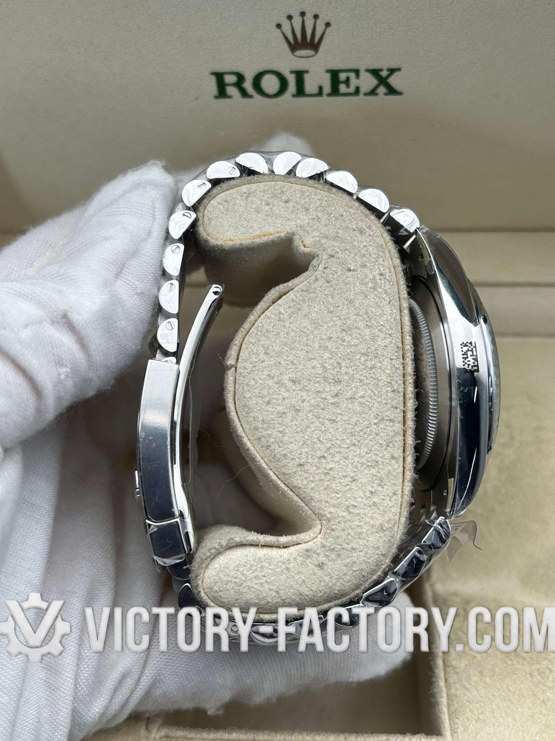 CASE: Our Victory Factory Super Clone features a 41mm solid 904L stainless steel construction, ensuring an exact match to genuine Rolex 904L steel. It includes a screw-down case-back and a Twinlock double waterproofness system screw-down winding crown for superior water resistance. Every detail, including the ROLEX laser engraving on the Rehaut ring and a DLC scratch-protection coating, is faithfully replicated for 100% part interchangeability.
