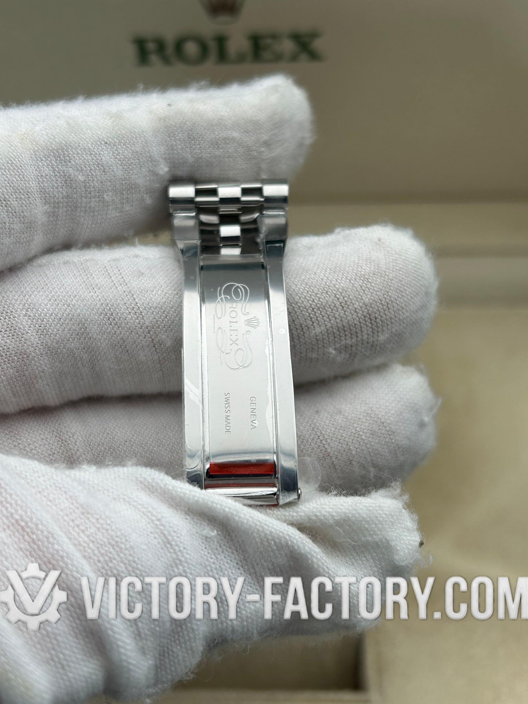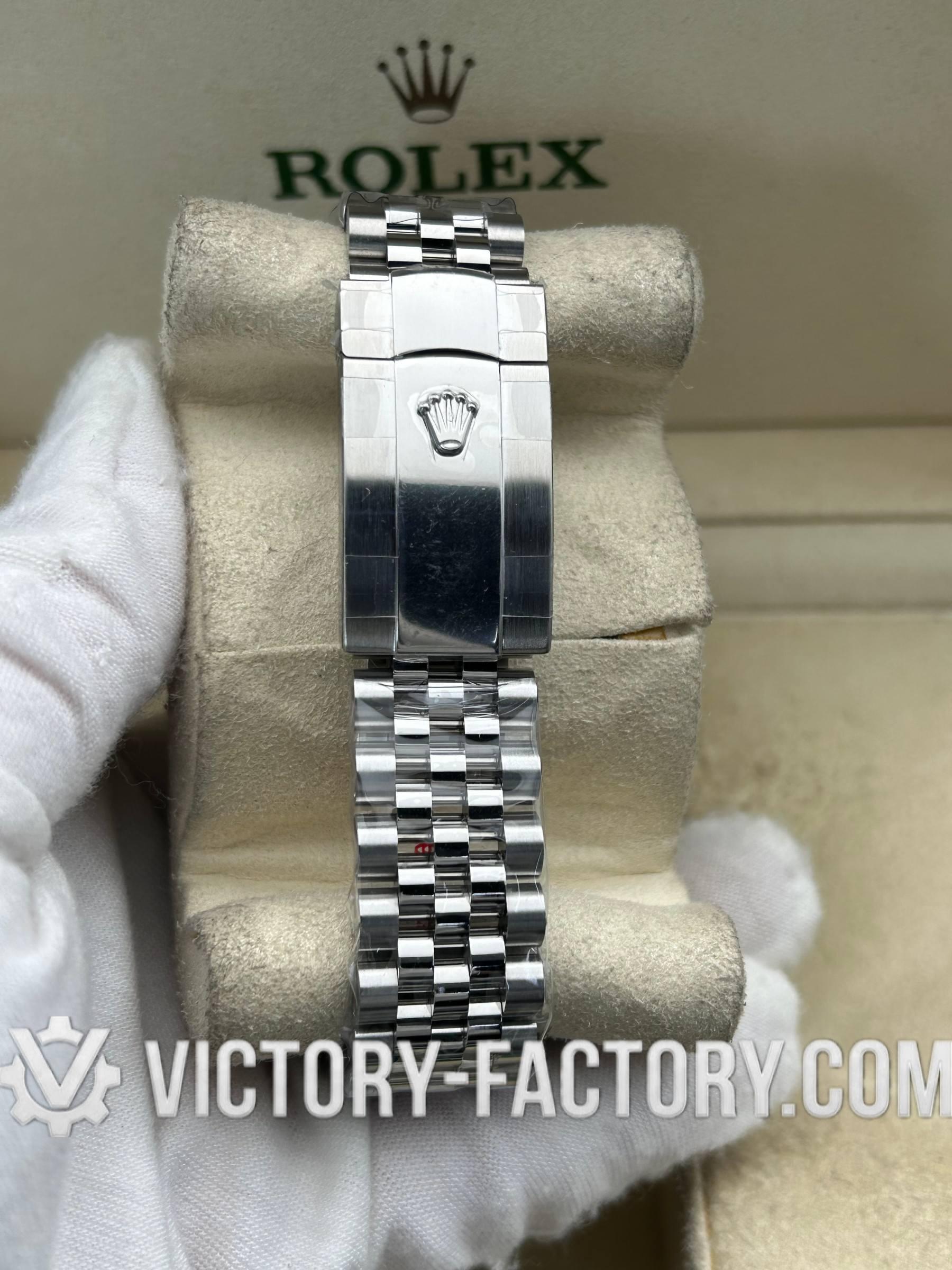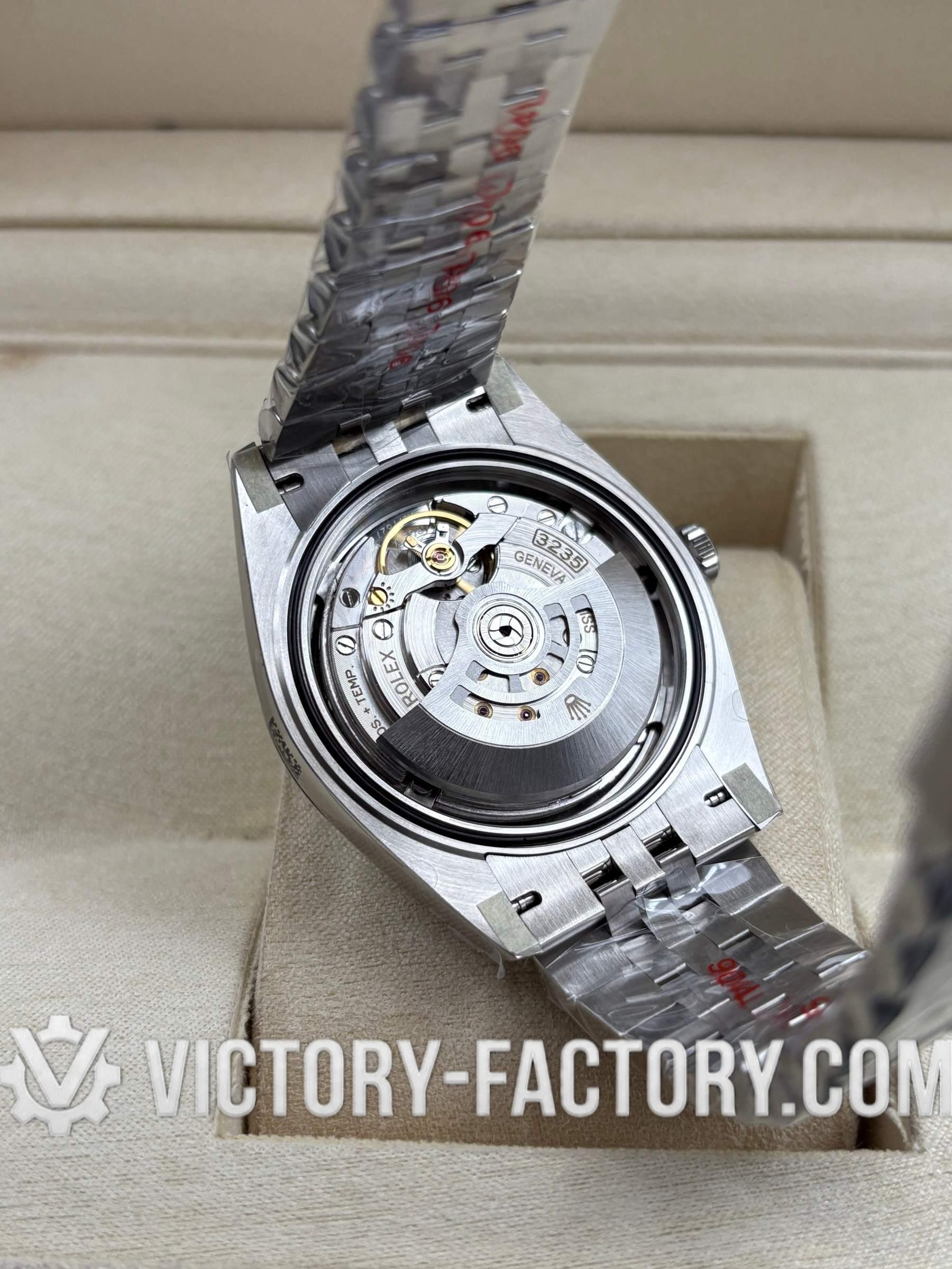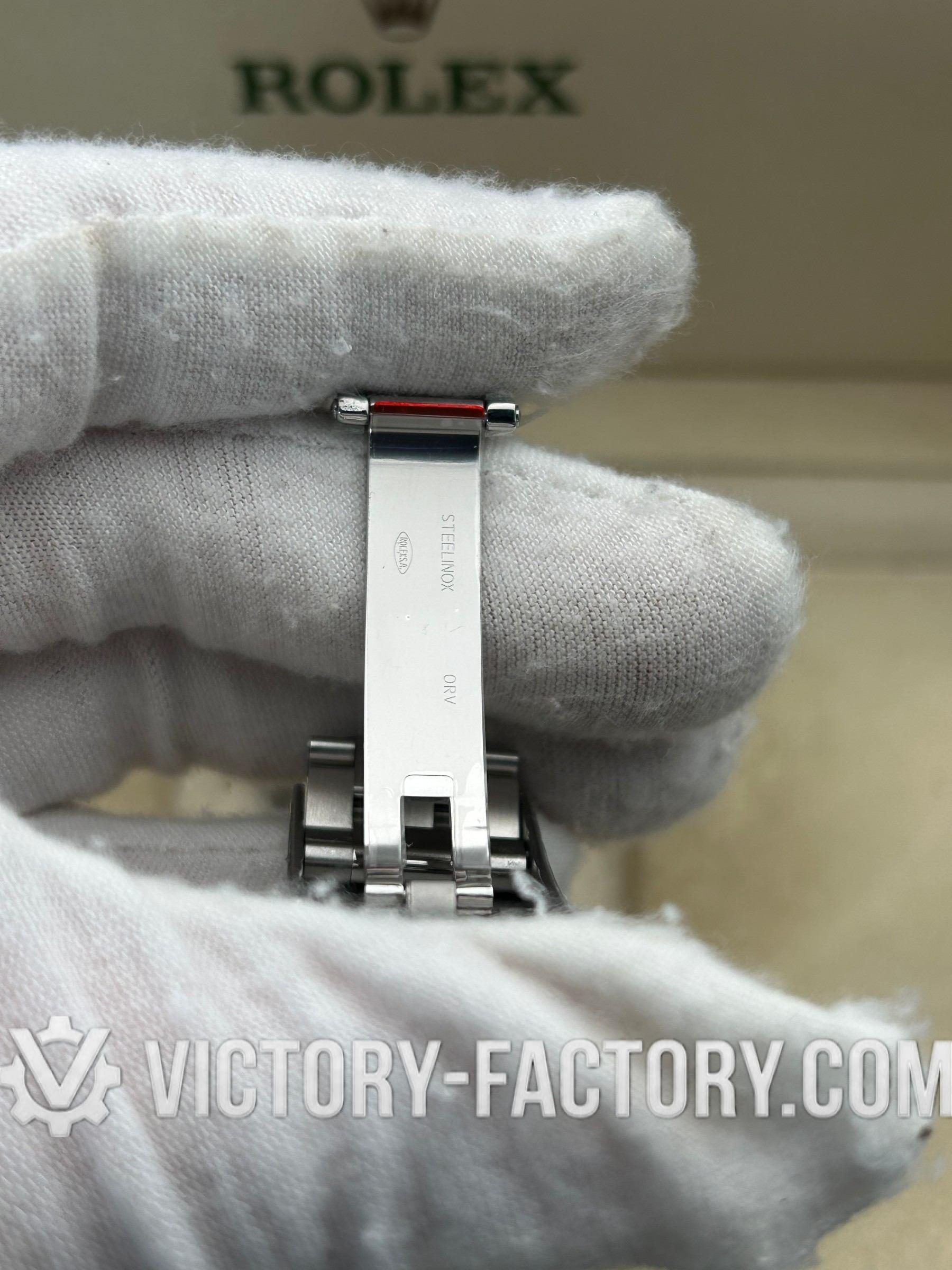 CASE: Our Victory Factory Super Clone features a 41mm solid 904L stainless steel construction, ensuring an exact match to genuine Rolex 904L steel. It includes a screw-down case-back and a Twinlock double waterproofness system screw-down winding crown for superior water resistance. Every detail, including the ROLEX laser engraving on the Rehaut ring and a DLC scratch-protection coating, is faithfully replicated for 100% part interchangeability.