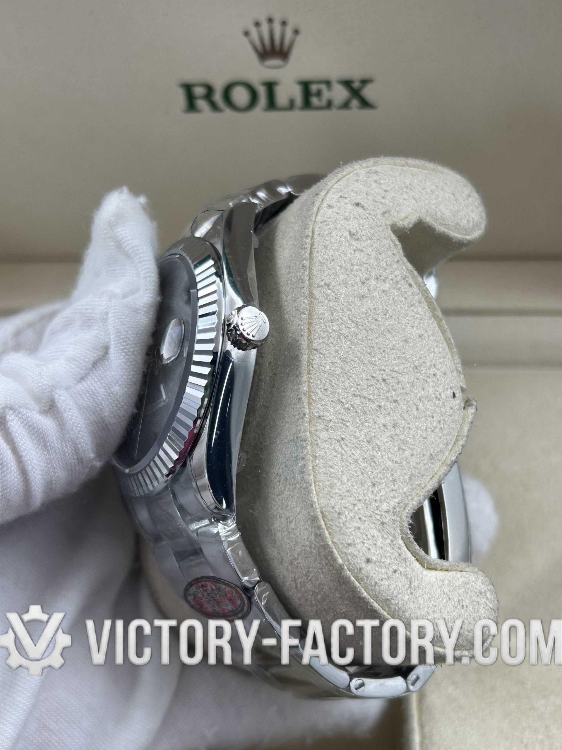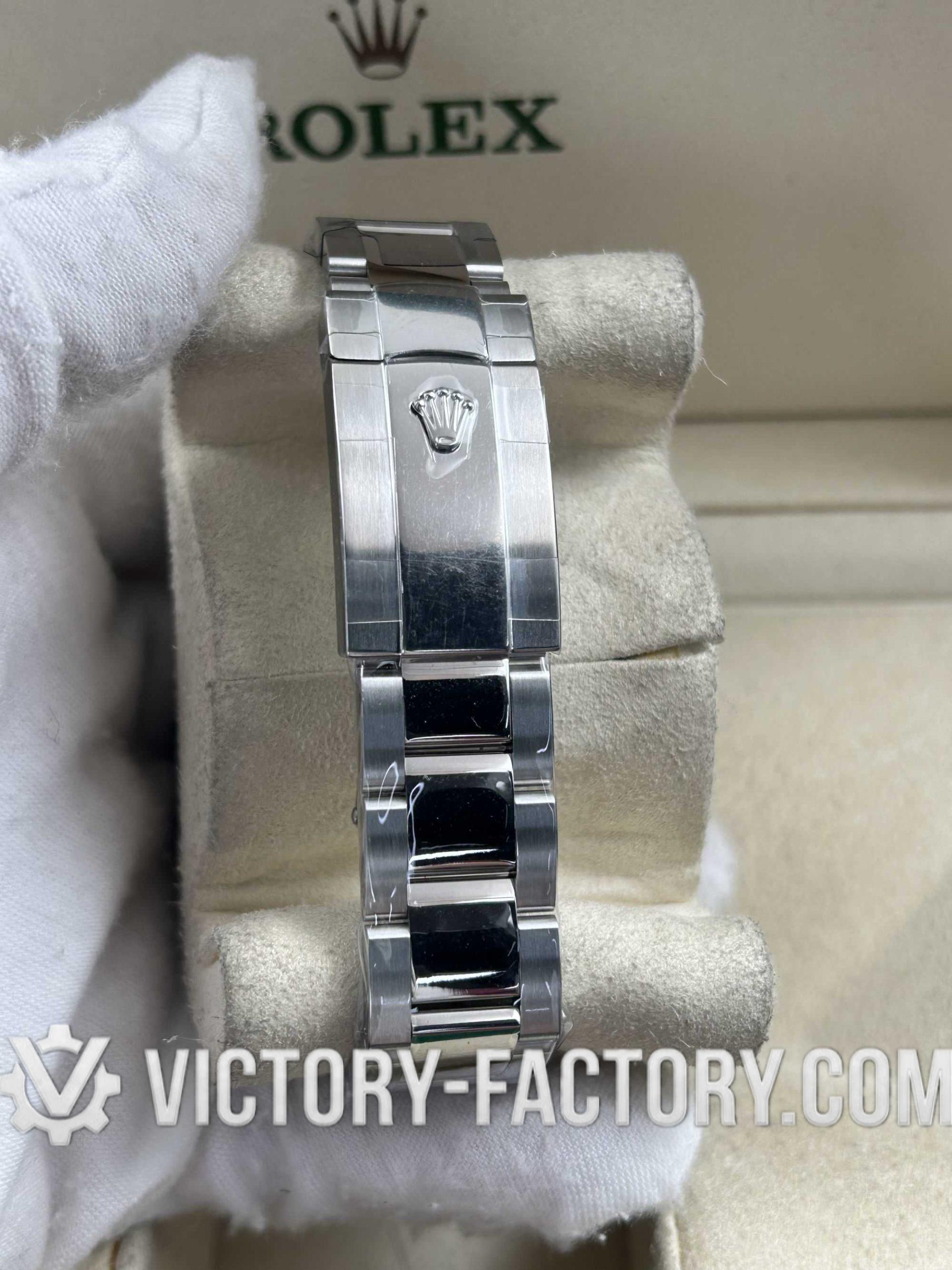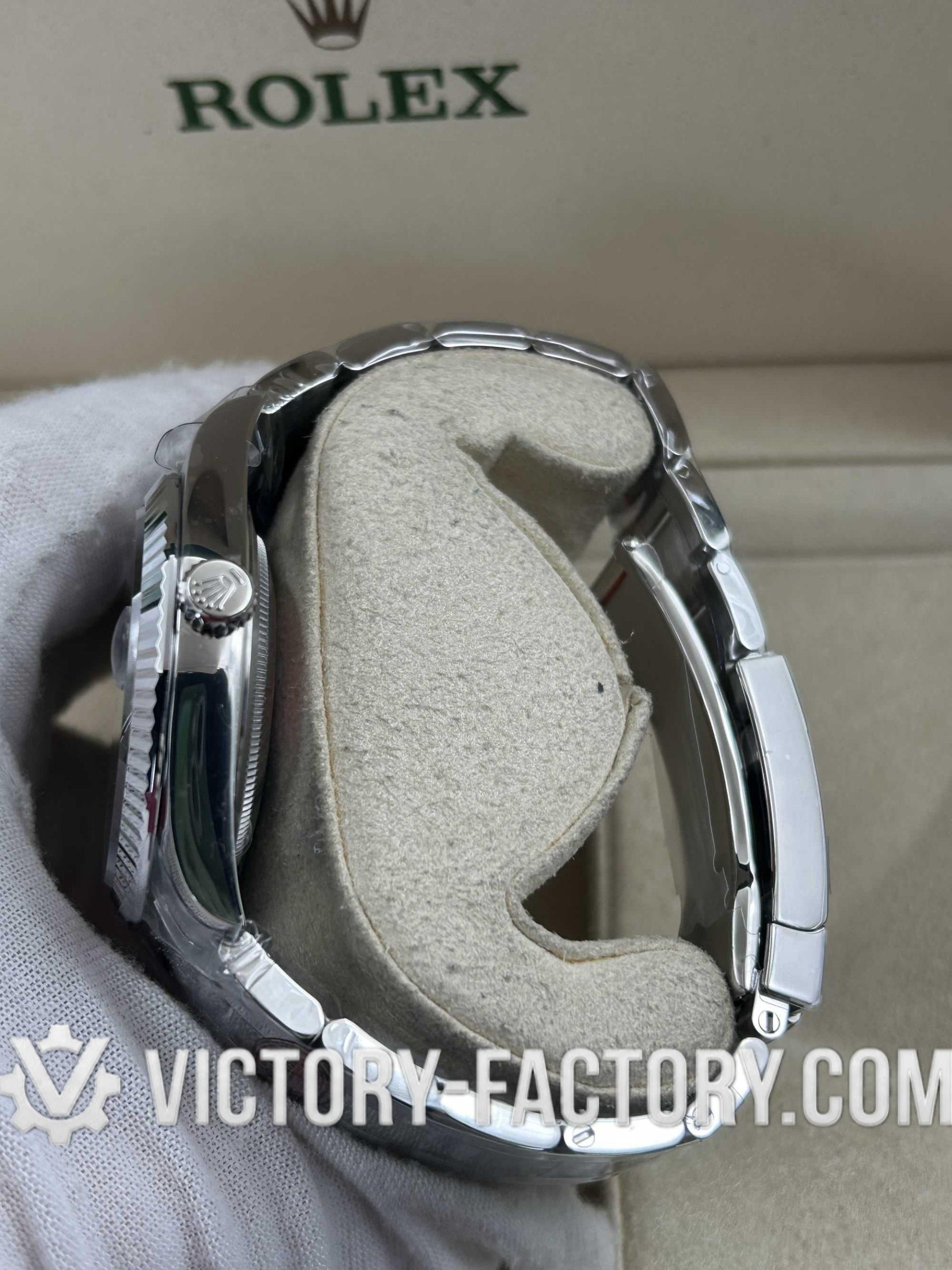 CASE: Our Victory Factory Super Clone features a 41mm solid 904L stainless steel construction, ensuring an exact match to Genuine Rolex 904L steel. It includes a screw-down case-back and a Twinlock double waterproofness system screw-down winding crown for superior water resistance. Every detail, including dimensions, weight, and the ROLEX laser engraving on the Rehaut ring, is faithfully replicated to allow for 100% part interchangeability with the genuine model.