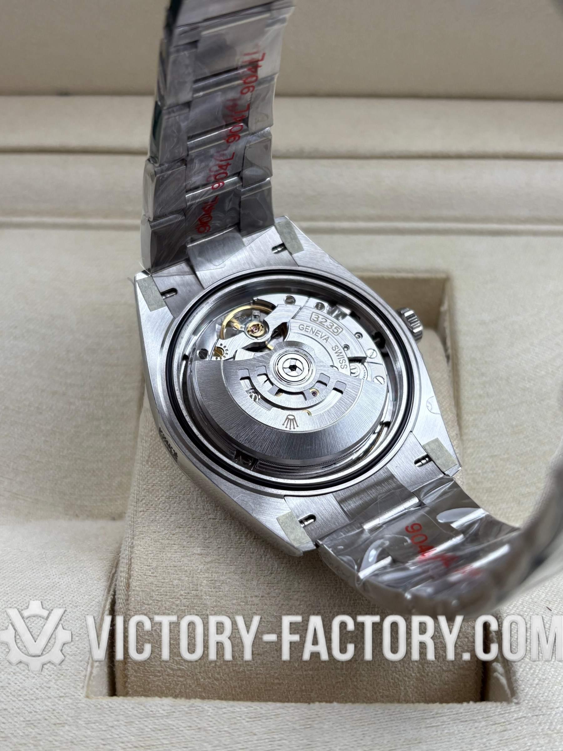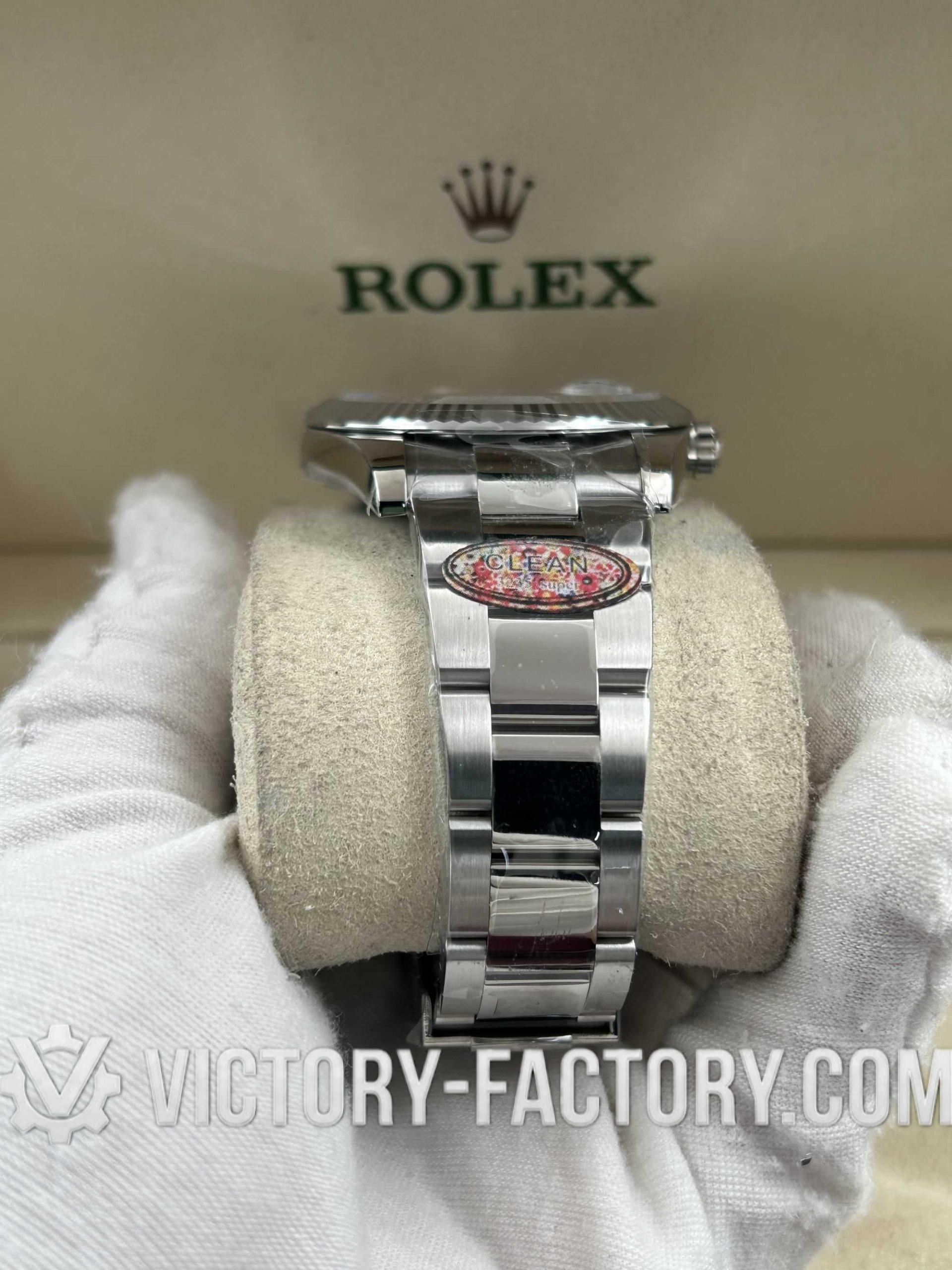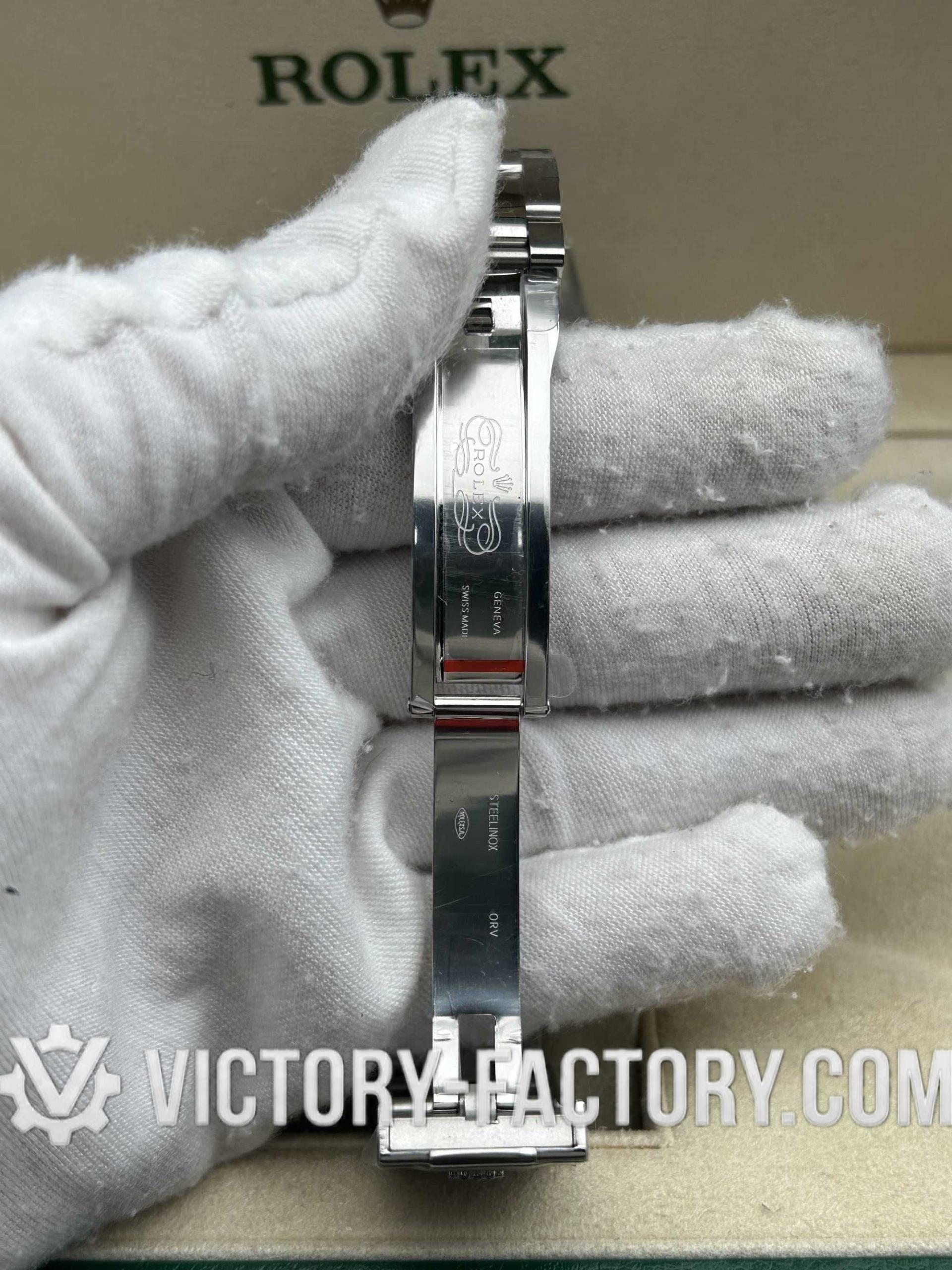 CASE: Our Victory Factory Super Clone features a 41mm solid 904L stainless steel construction, ensuring an exact match to Genuine Rolex 904L steel. It includes a screw-down case-back and a Twinlock double waterproofness system screw-down winding crown for superior water resistance. Every detail, including dimensions, weight, and the ROLEX laser engraving on the Rehaut ring, is faithfully replicated to allow for 100% part interchangeability with the genuine model.