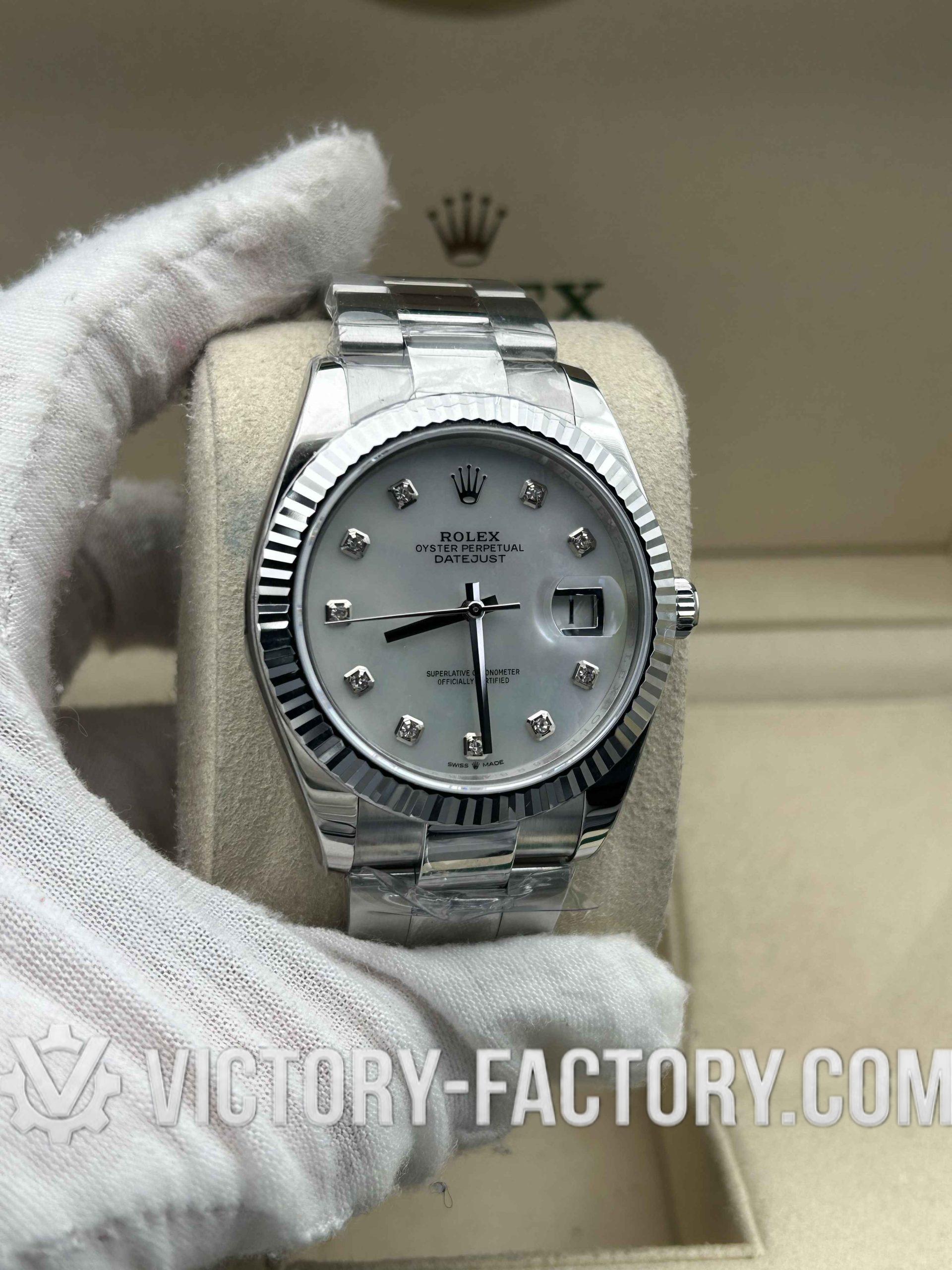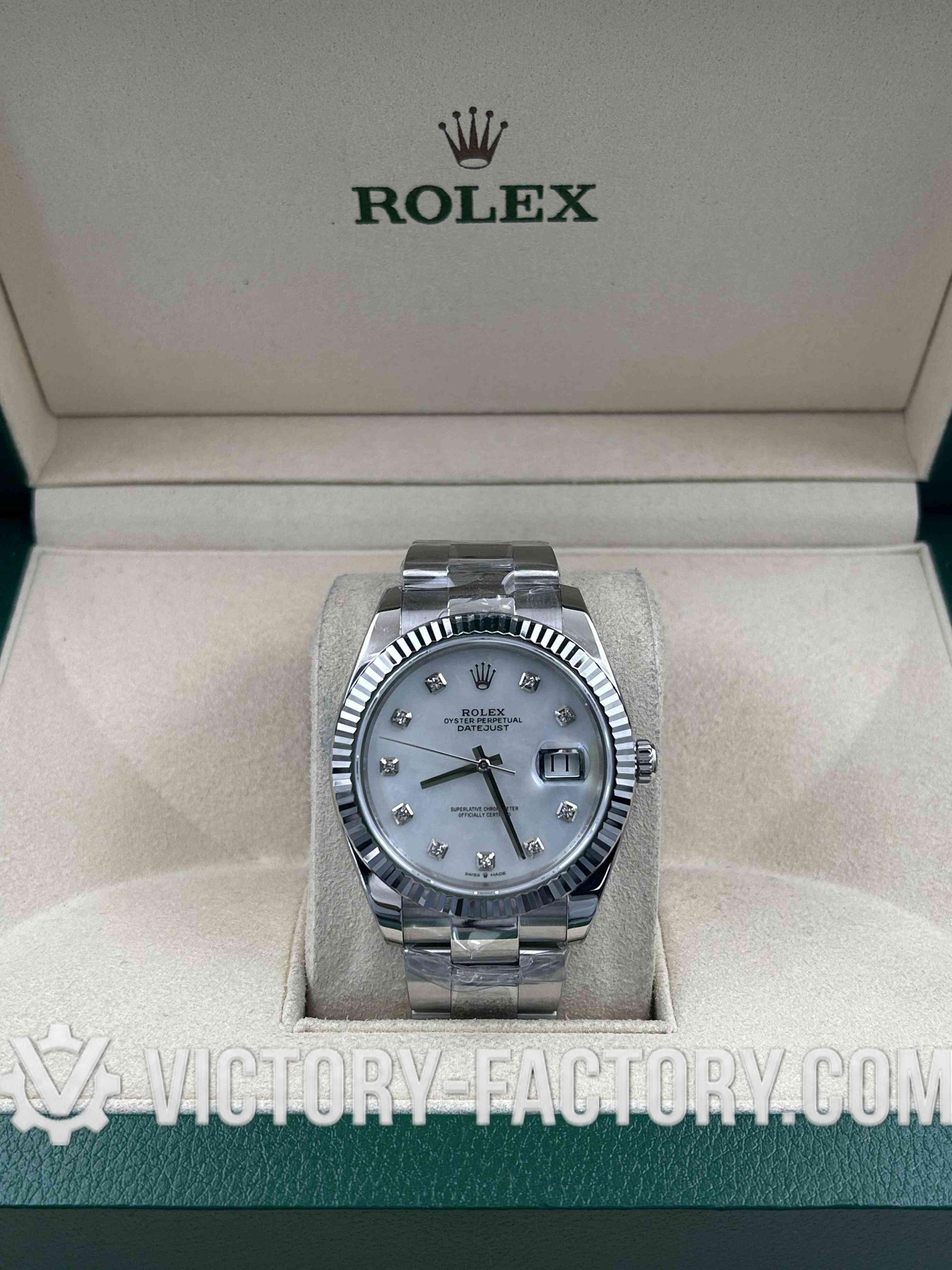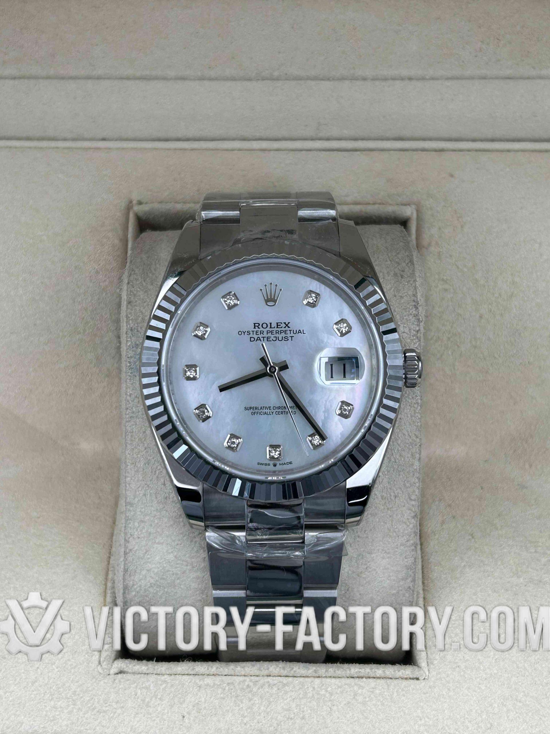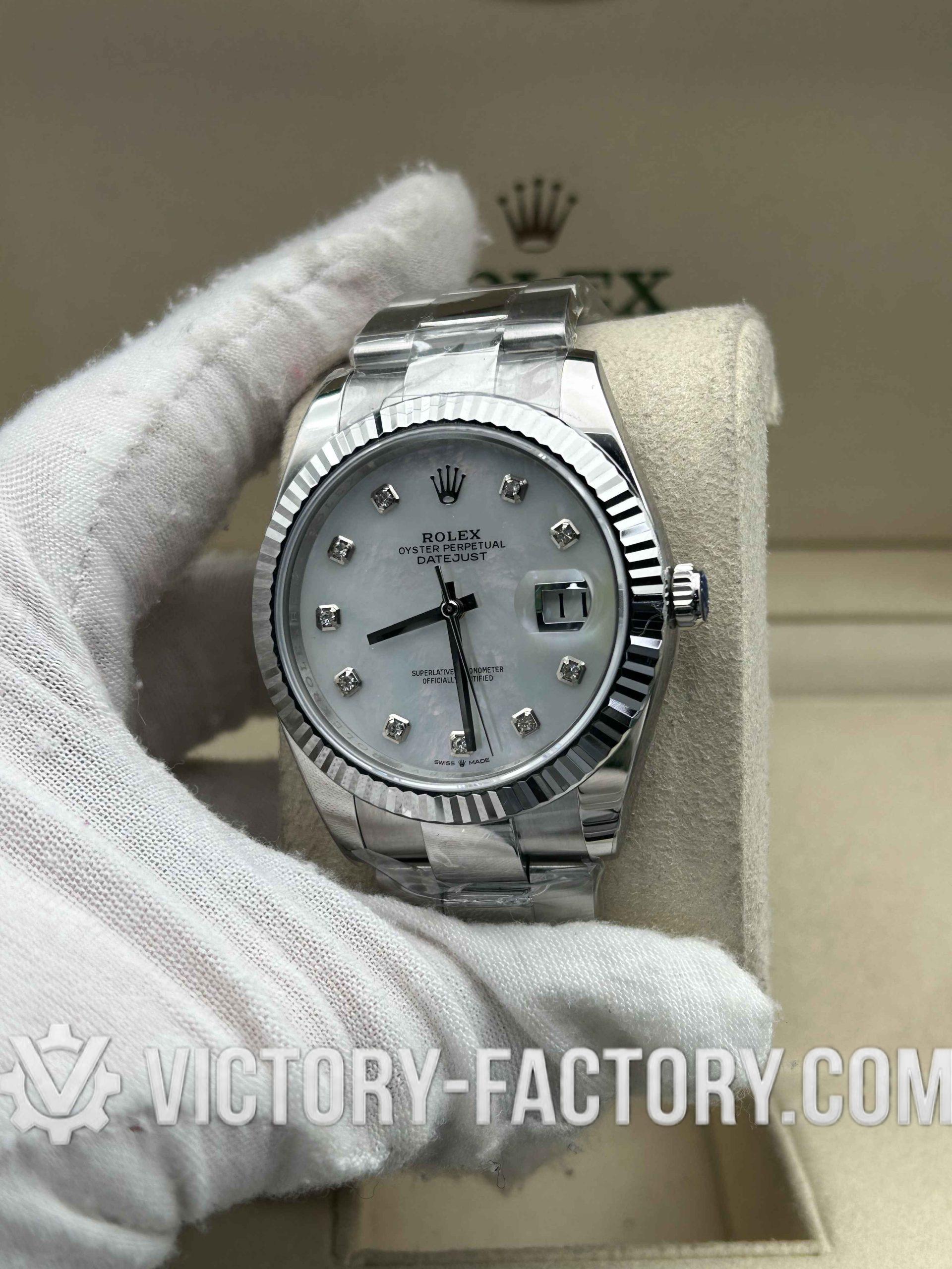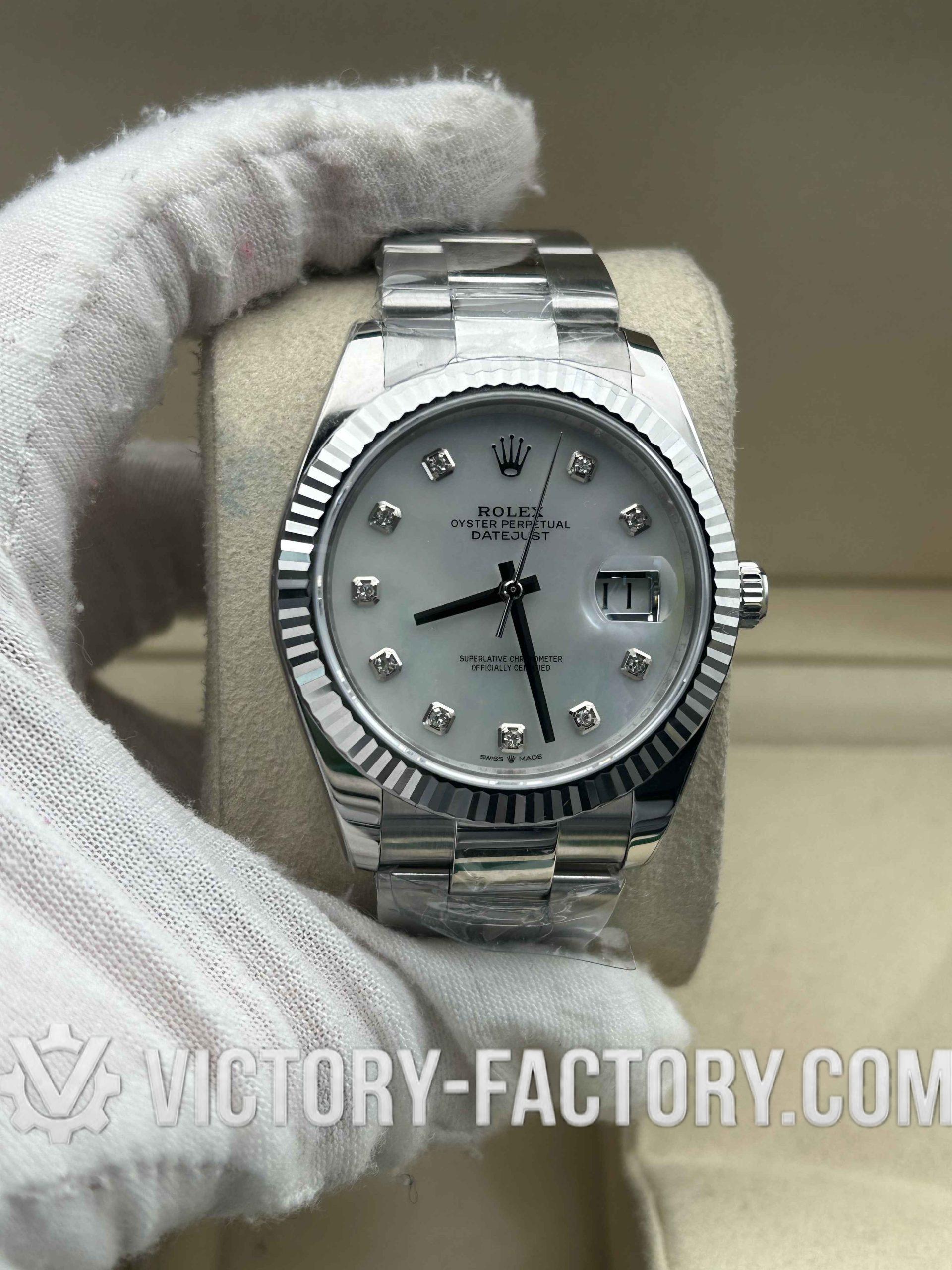 Victory Factory (VF) Rolex Datejust 41mm 126334 White Mother of Pearl Diamond Dial Oyster – Super Clone with Clean Factory Parts & Dandong 3235 Movement