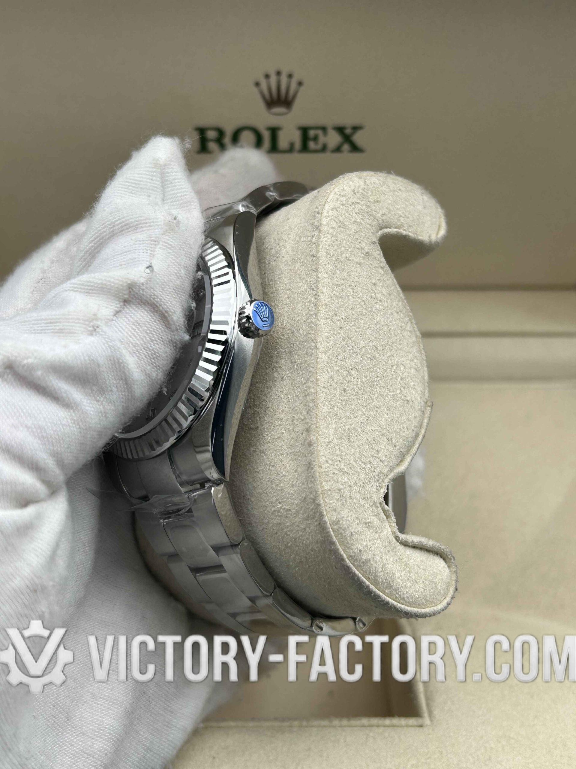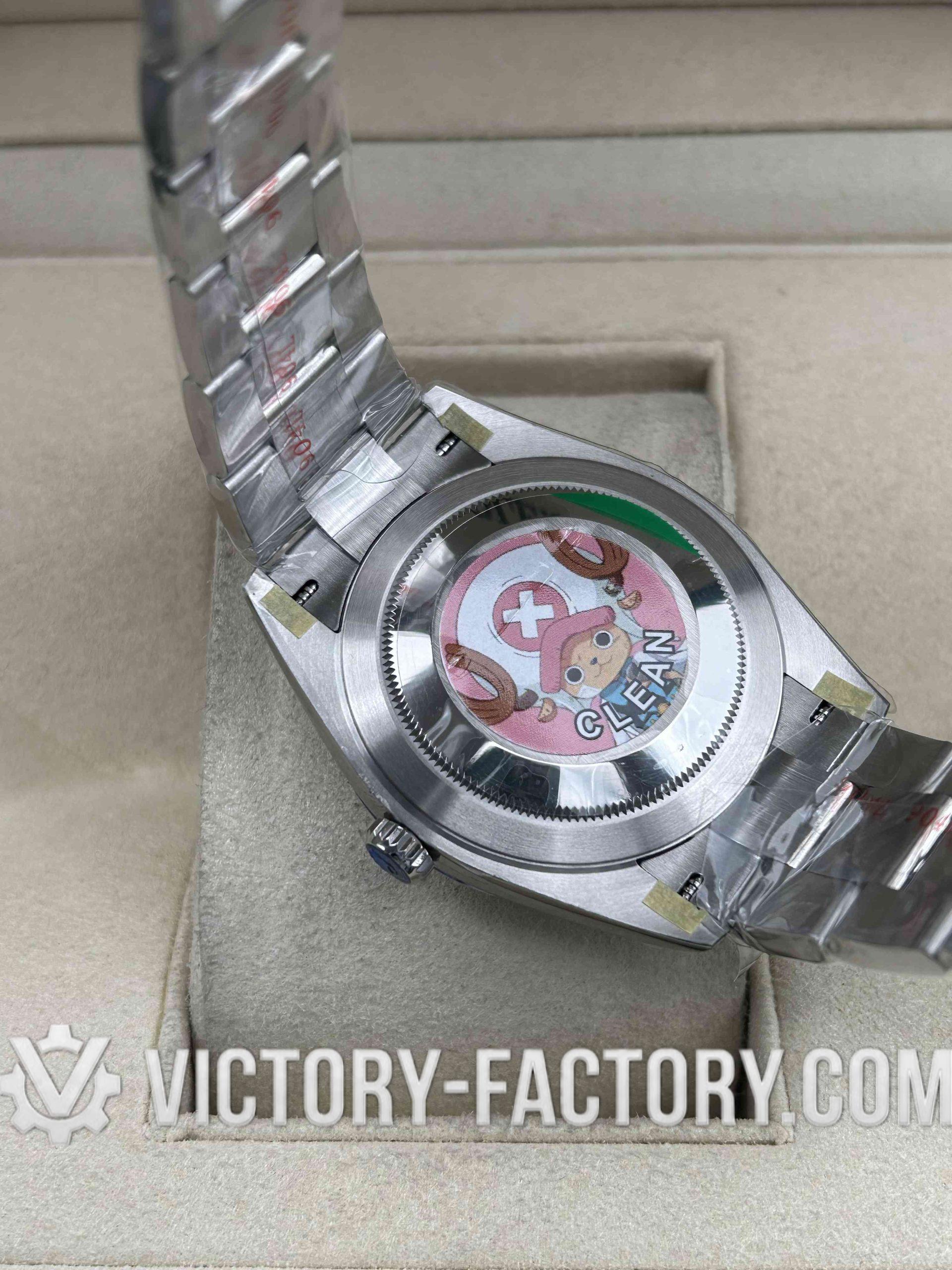 • CASE: Our Victory Factory Super Clone watches feature a 41mm solid 904L stainless steel construction, ensuring an exact match to Genuine Rolex 904L steel. It includes a screw-down case-back and a Twinlock double waterproofness system screw-down winding crown for superior water resistance. The ROLEX laser engraving on the Rehaut ring adds authenticity, while a DLC scratch-protection coating ensures durability. Every detail, including dimensions and weight, is faithfully replicated to be 100% identical to genuine Rolex watches, allowing for seamless part interchangeability.