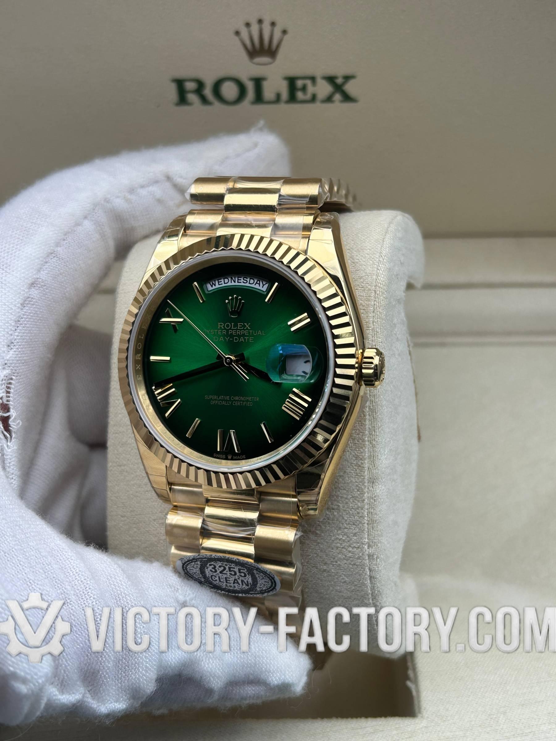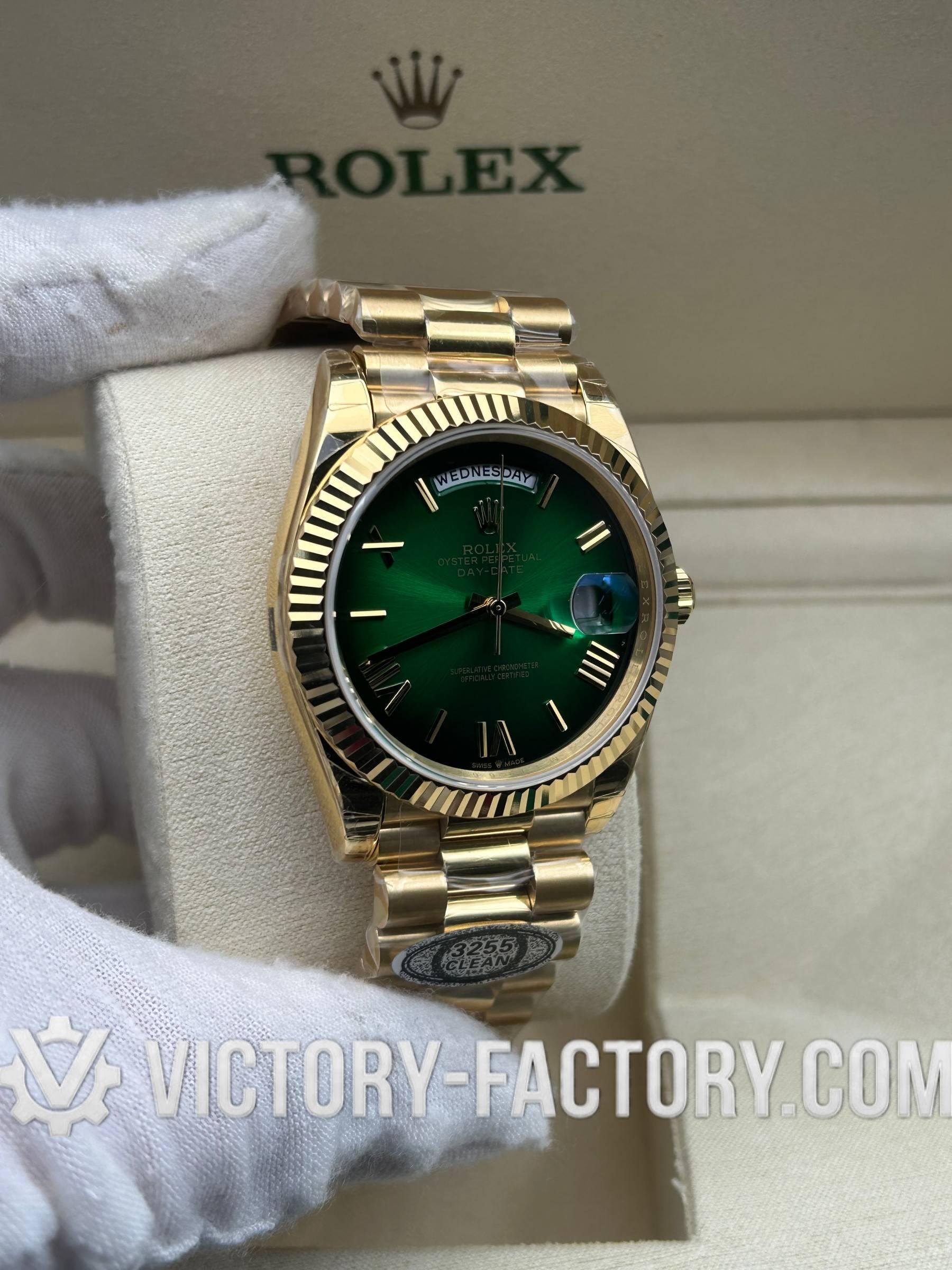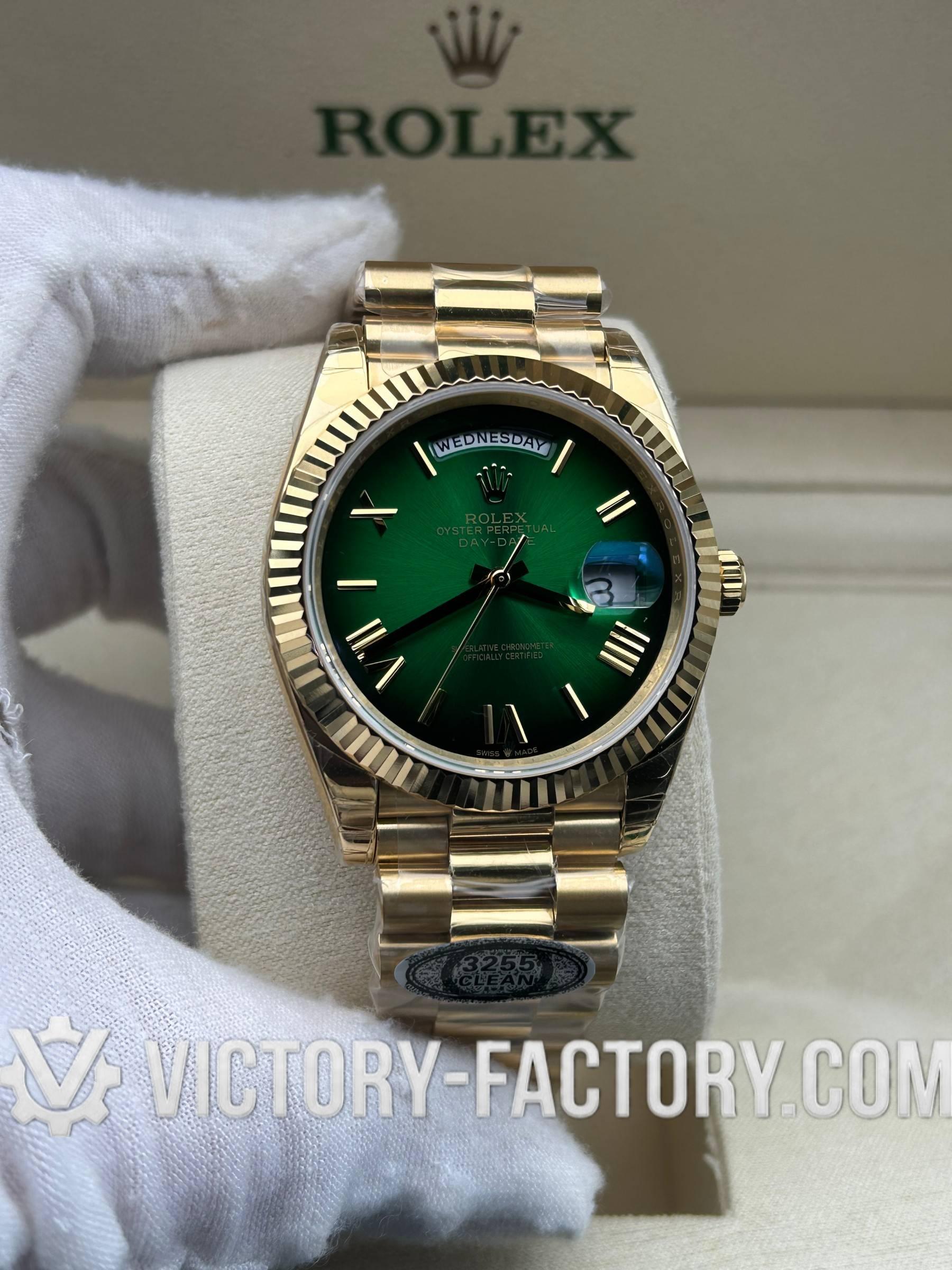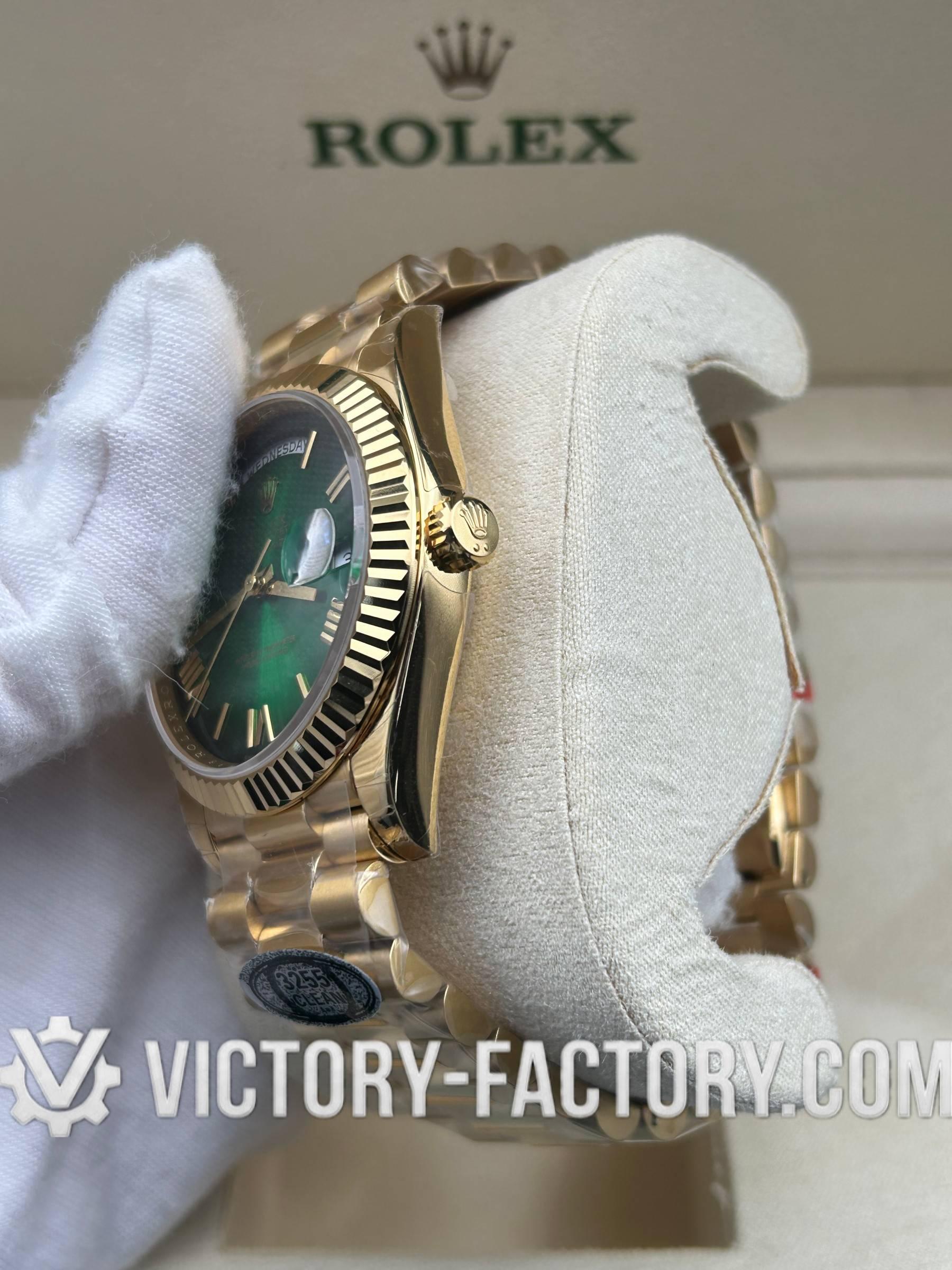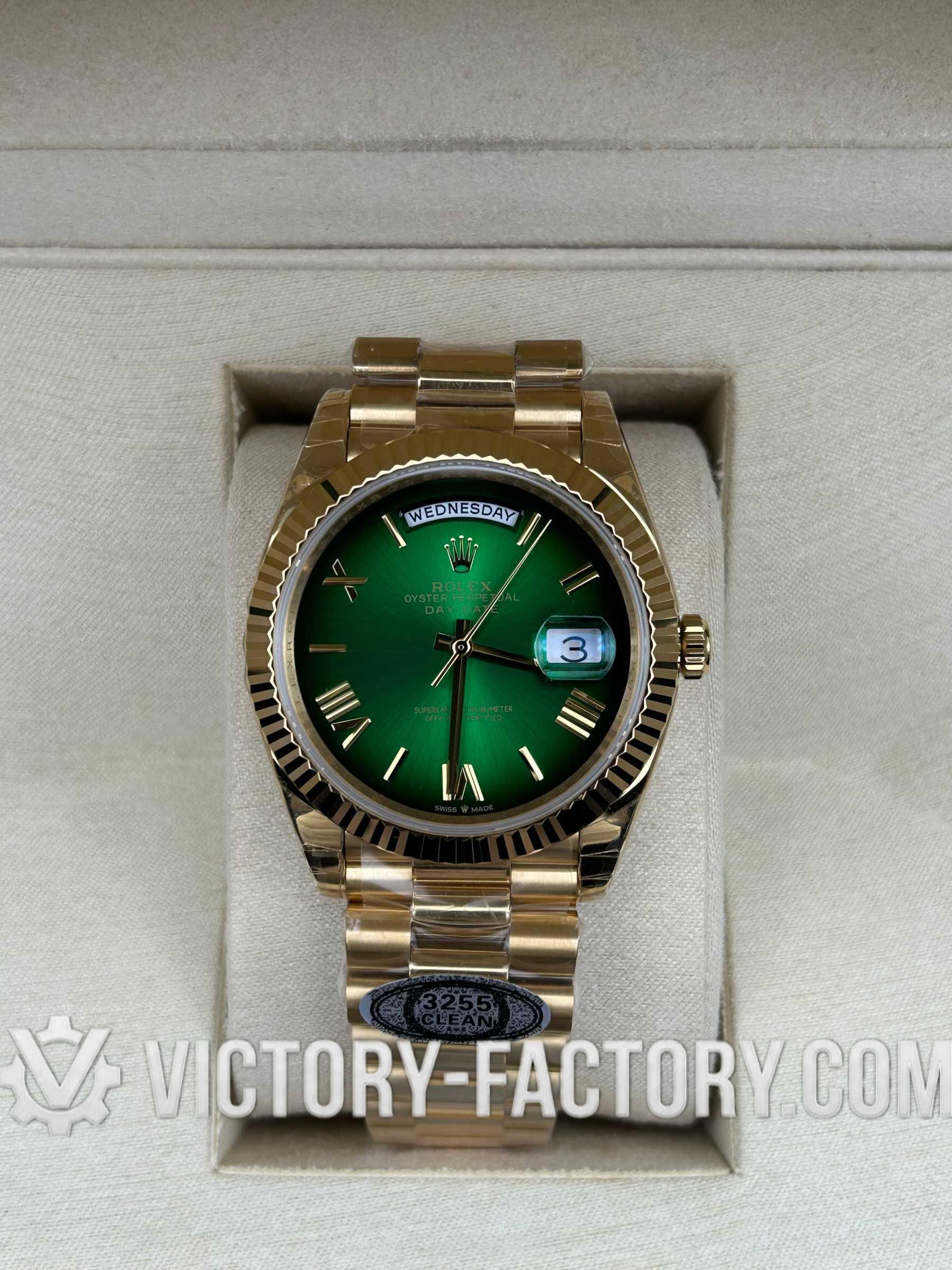 Product Overview: Victory Factory (VF) introduces a masterpiece that bridges the gap between aesthetic perfection and mechanical reliability. This Day-Date 40mm “Green Ombre” is the result of a perfect synergy: it inherits the world-class exterior components from Clean Factory (CF) and pairs them with the legendary Dandong 3255 integrated movement. For collectors who demand a watch that looks, feels, and performs like the original, the VF 228238 is the definitive choice.