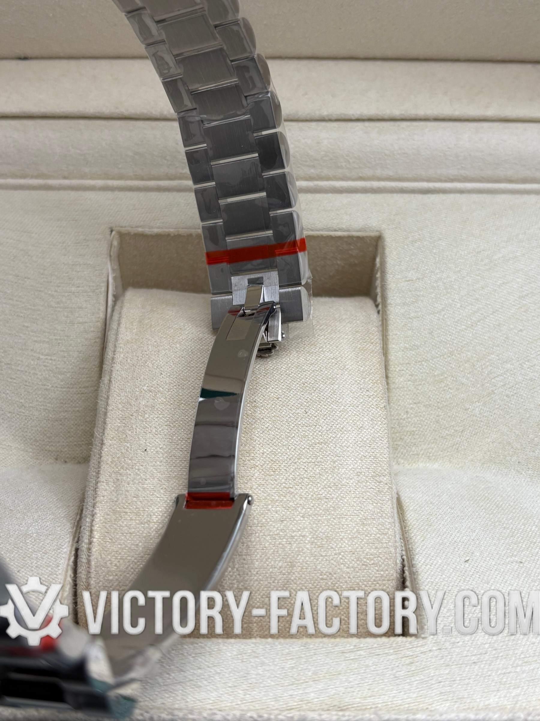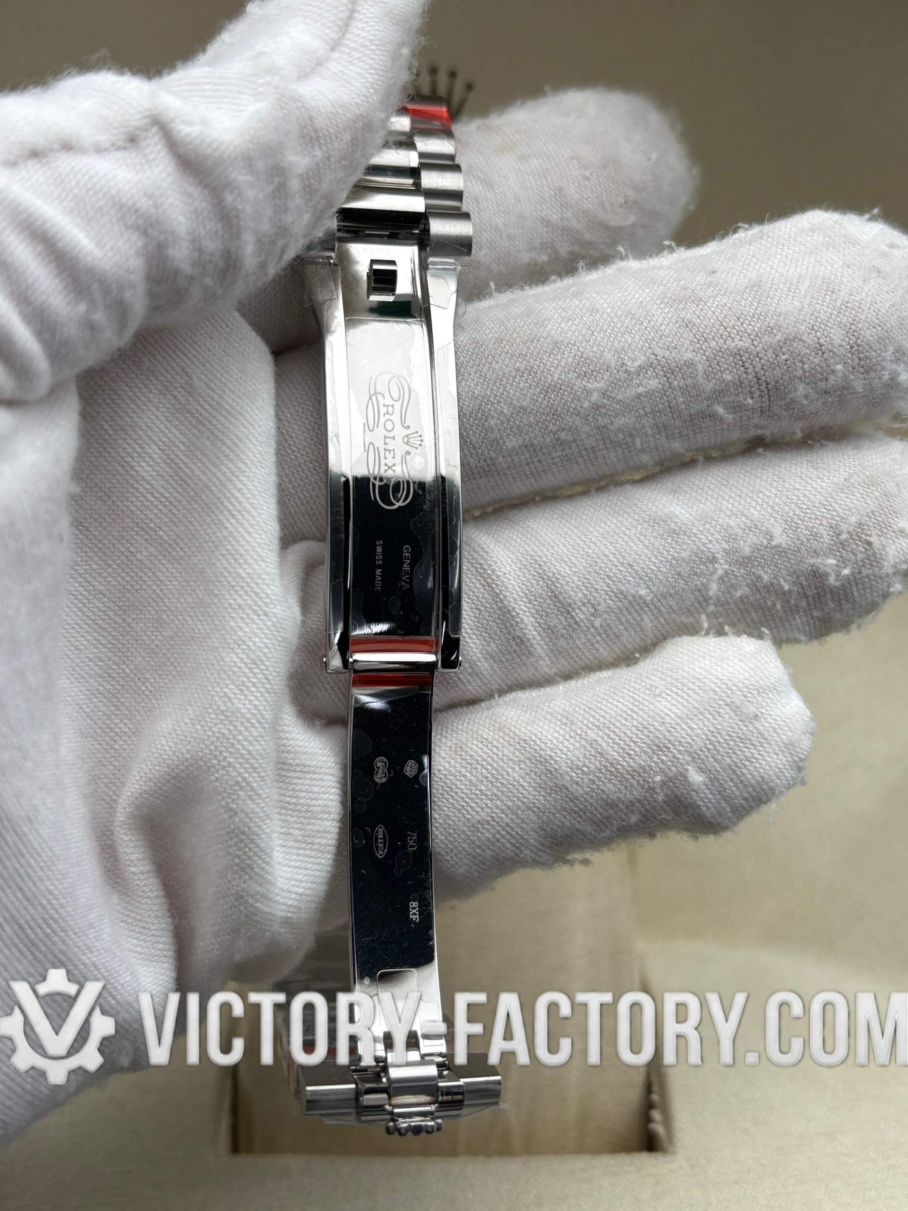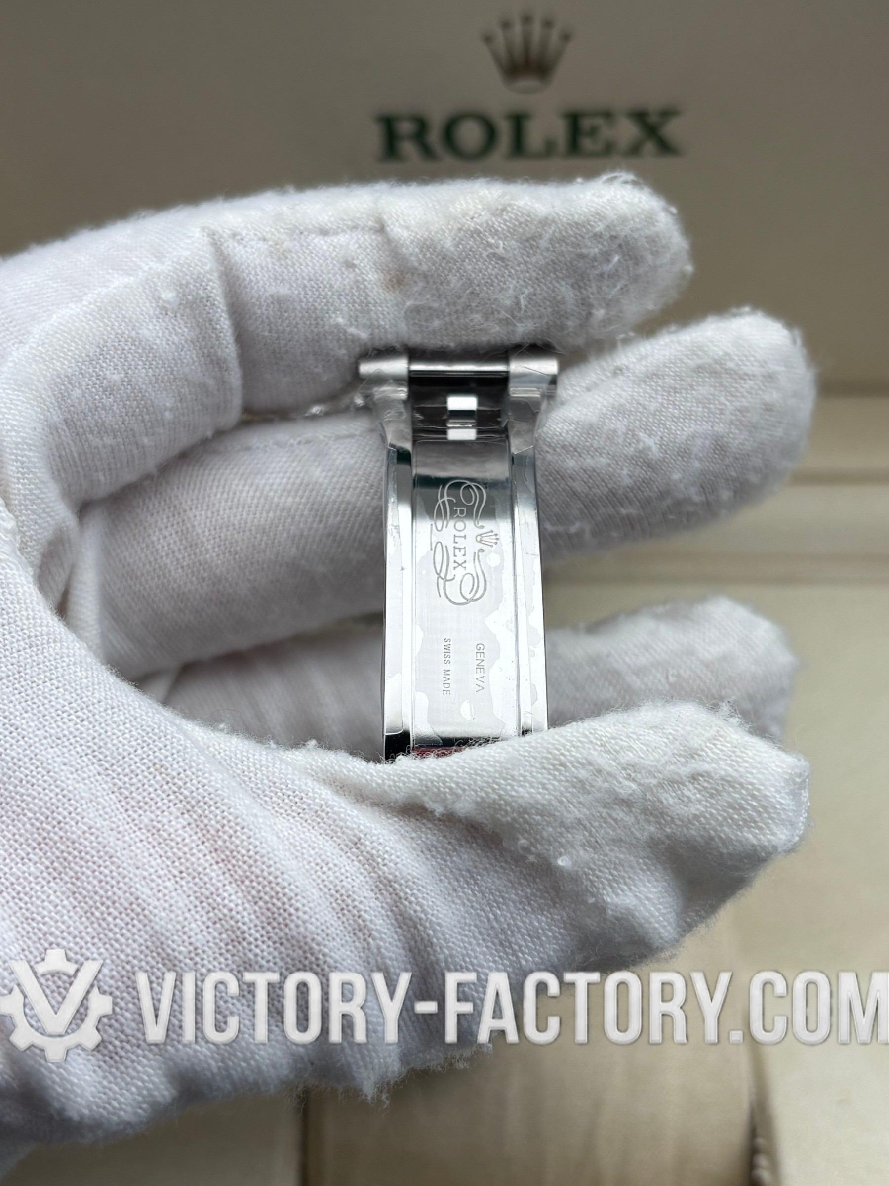 CASE: Precision 18k White Gold/Platinum Finish The 40mm Oyster case is constructed from solid 904L stainless steel, featuring a multi-layer 18k Platinum plating. Every dimension is a 1:1 match to the original, including the screw-down case-back and the iconic “ROLEX ROLEX” laser engraving on the Rehaut ring.