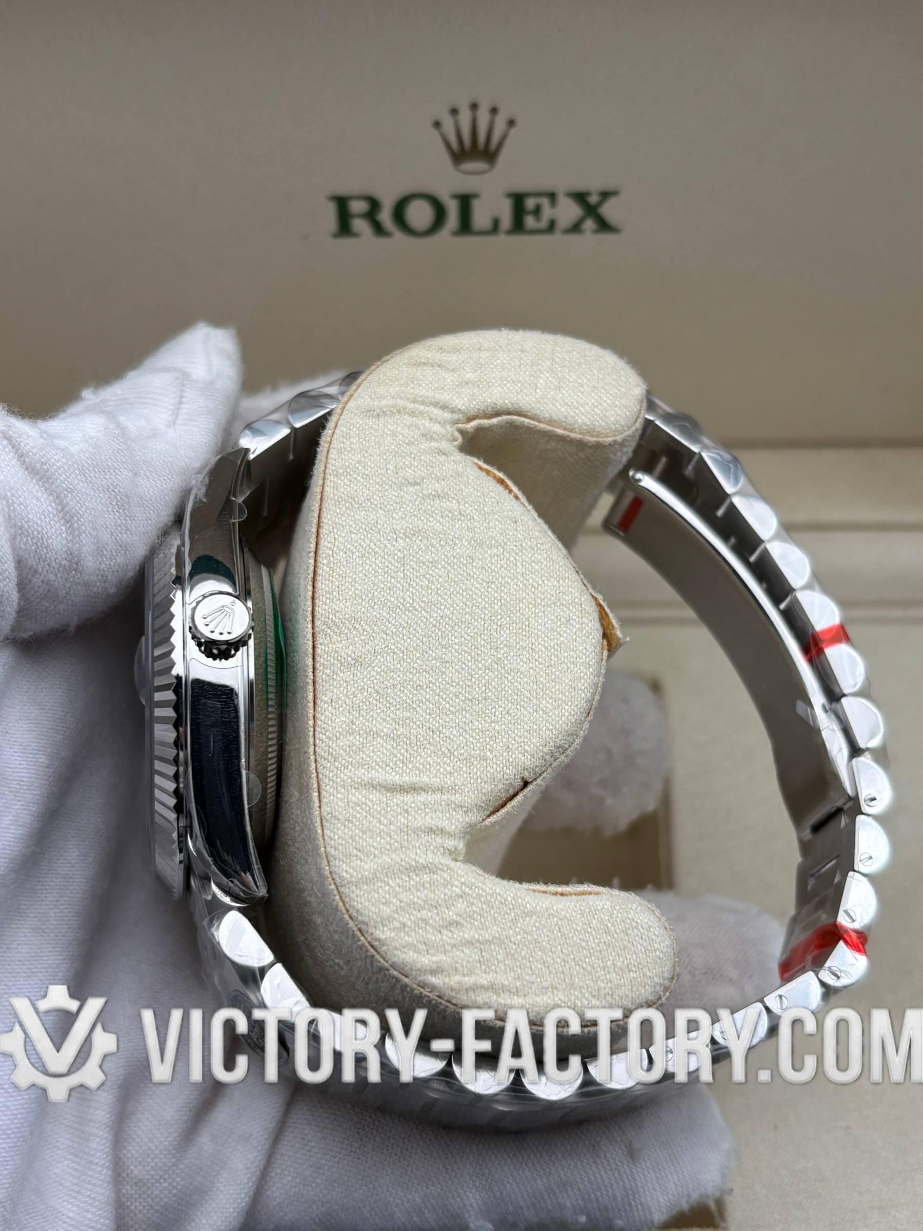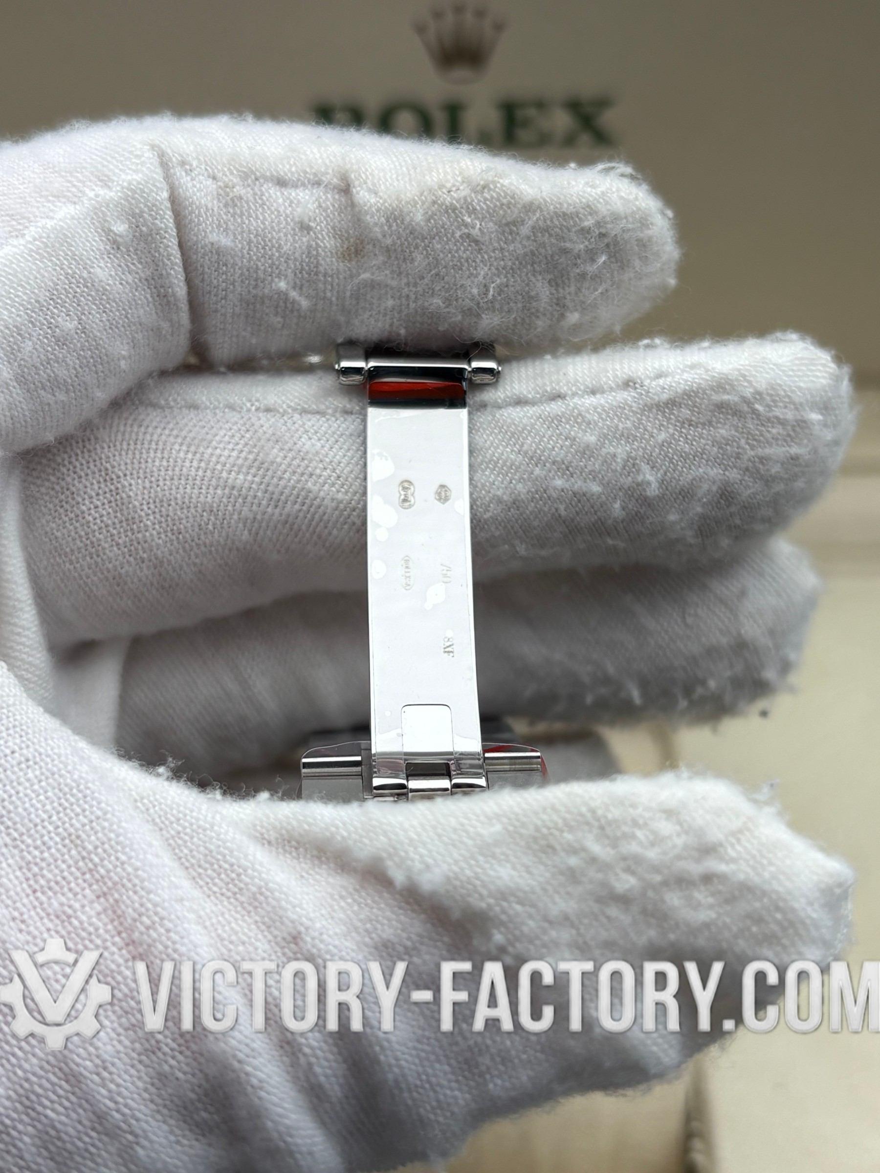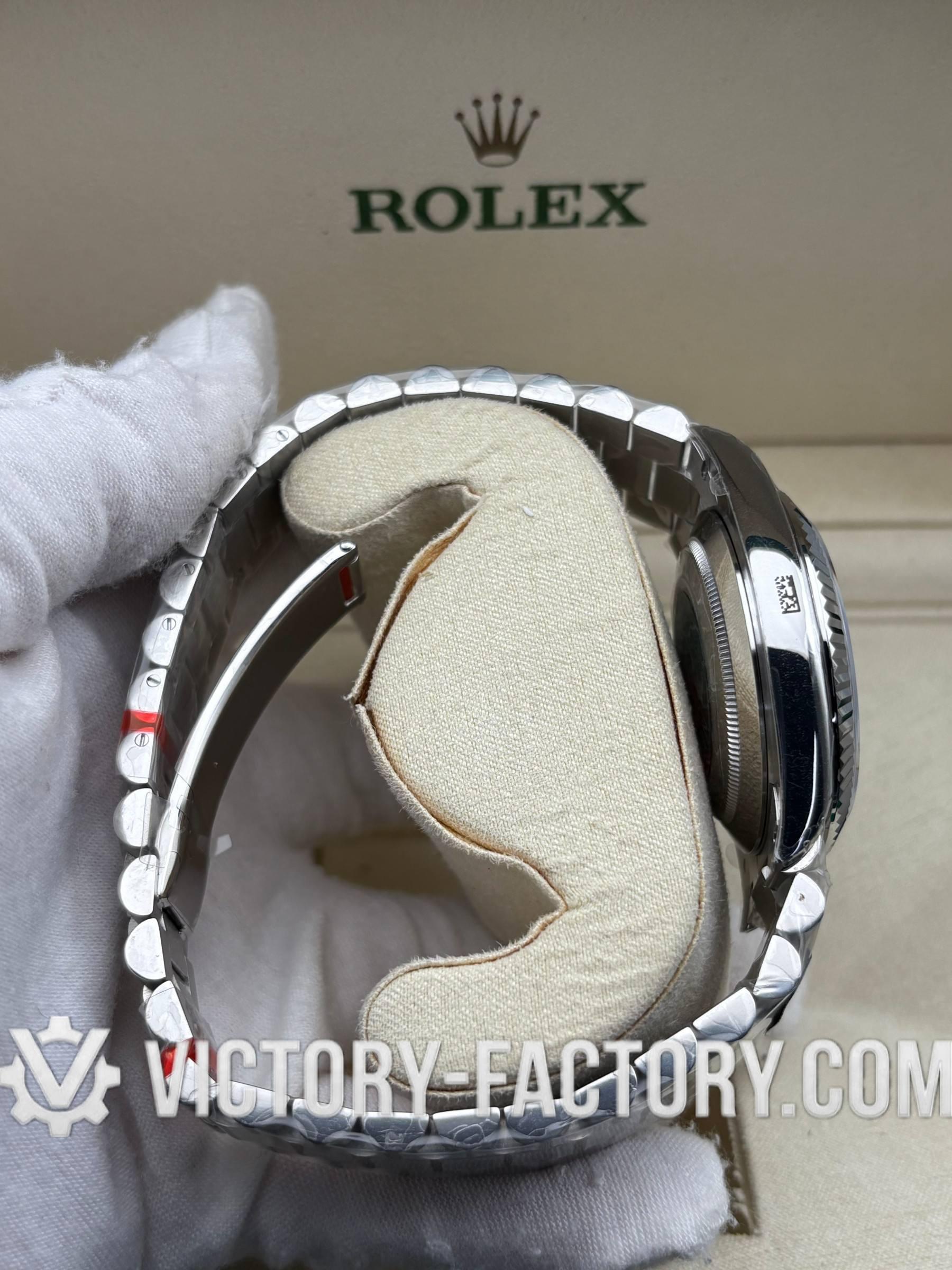 CASE: Precision 18k White Gold/Platinum Finish The 40mm Oyster case is constructed from solid 904L stainless steel, featuring a multi-layer 18k Platinum plating. Every dimension is a 1:1 match to the original, including the screw-down case-back and the iconic “ROLEX ROLEX” laser engraving on the Rehaut ring.