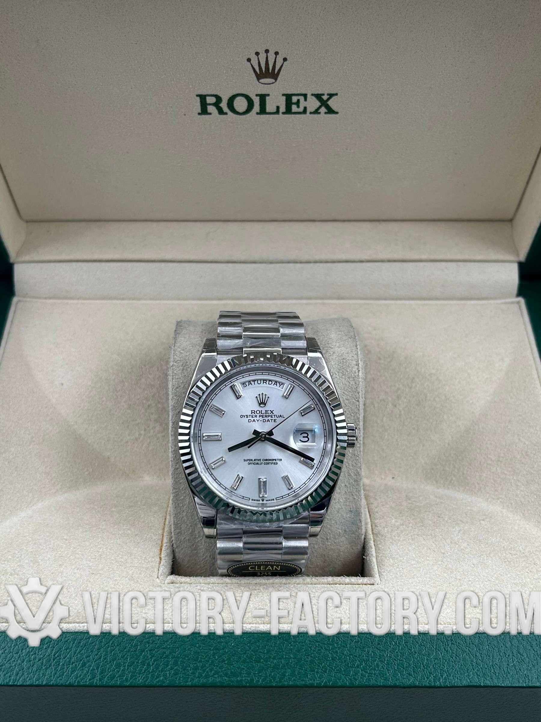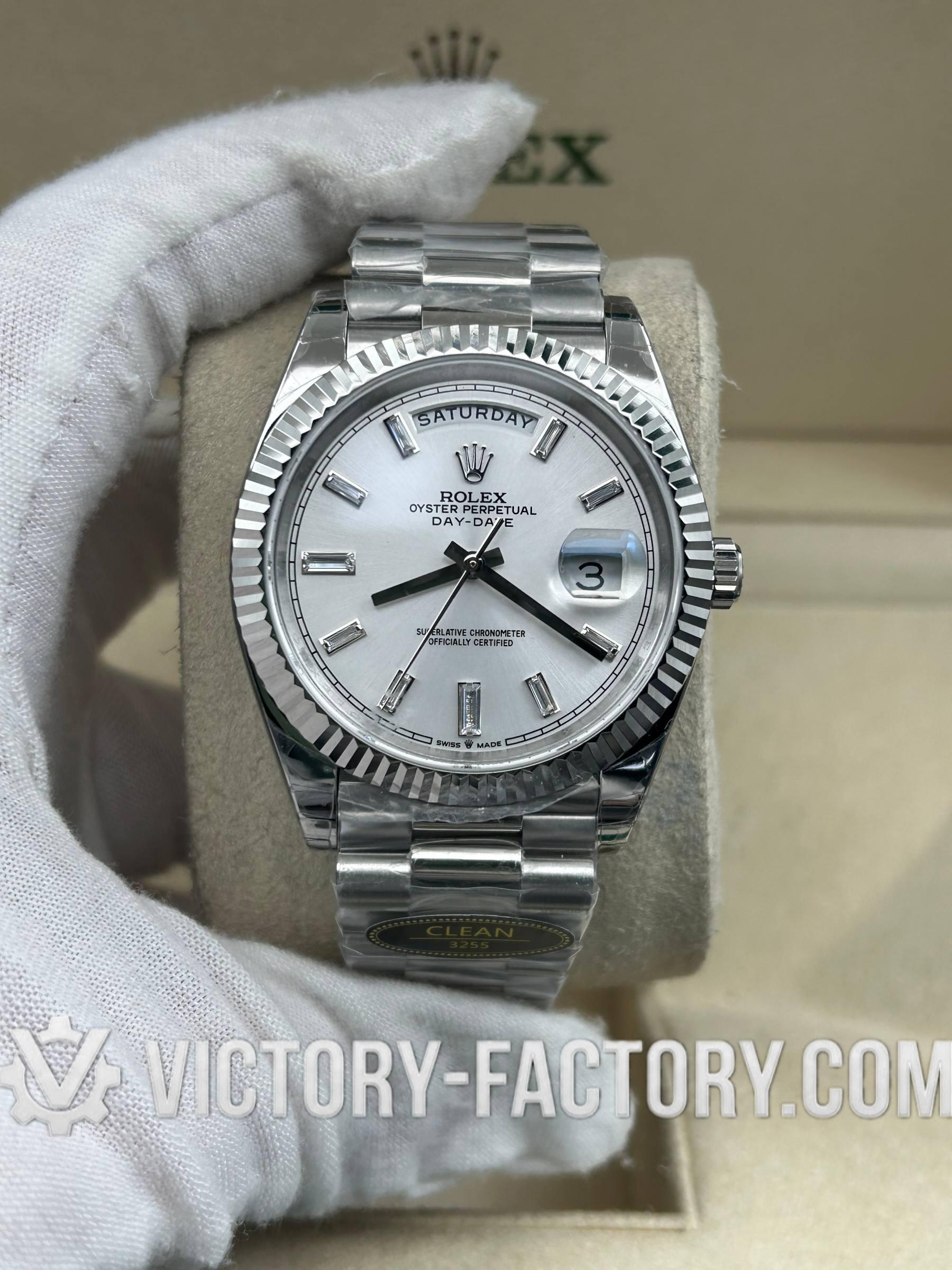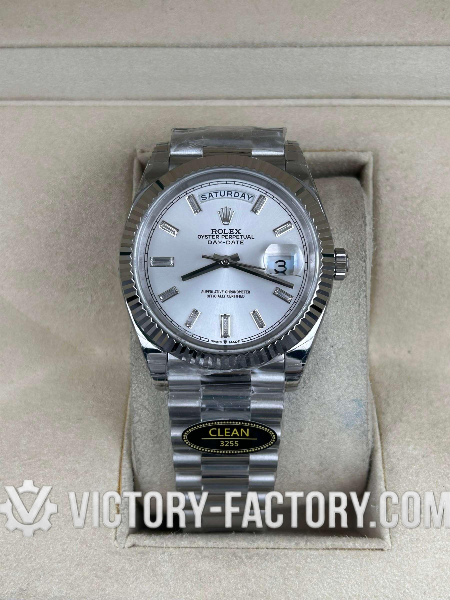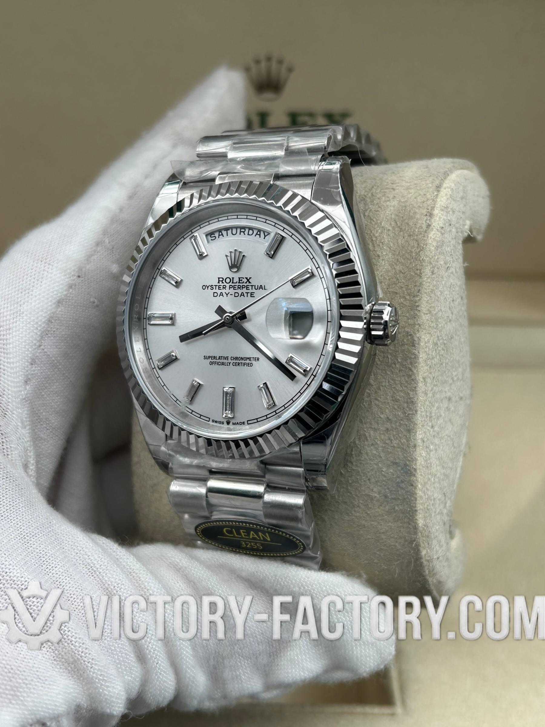 Product Overview: Victory Factory (VF) introduces the next evolution of the Day-Date 40mm Reference 228239. This “Elite Edition” solves the industry’s biggest dilemma by perfectly combining Clean Factory’s (CF) world-class exterior craftsmanship with the legendary stability of the Dandong 3255 Integrated Movement. Crafted using a genuine watch as a sample, every component is cloned using advanced CAD/CAM and CNC Laser Machines for 1:1 perfection.