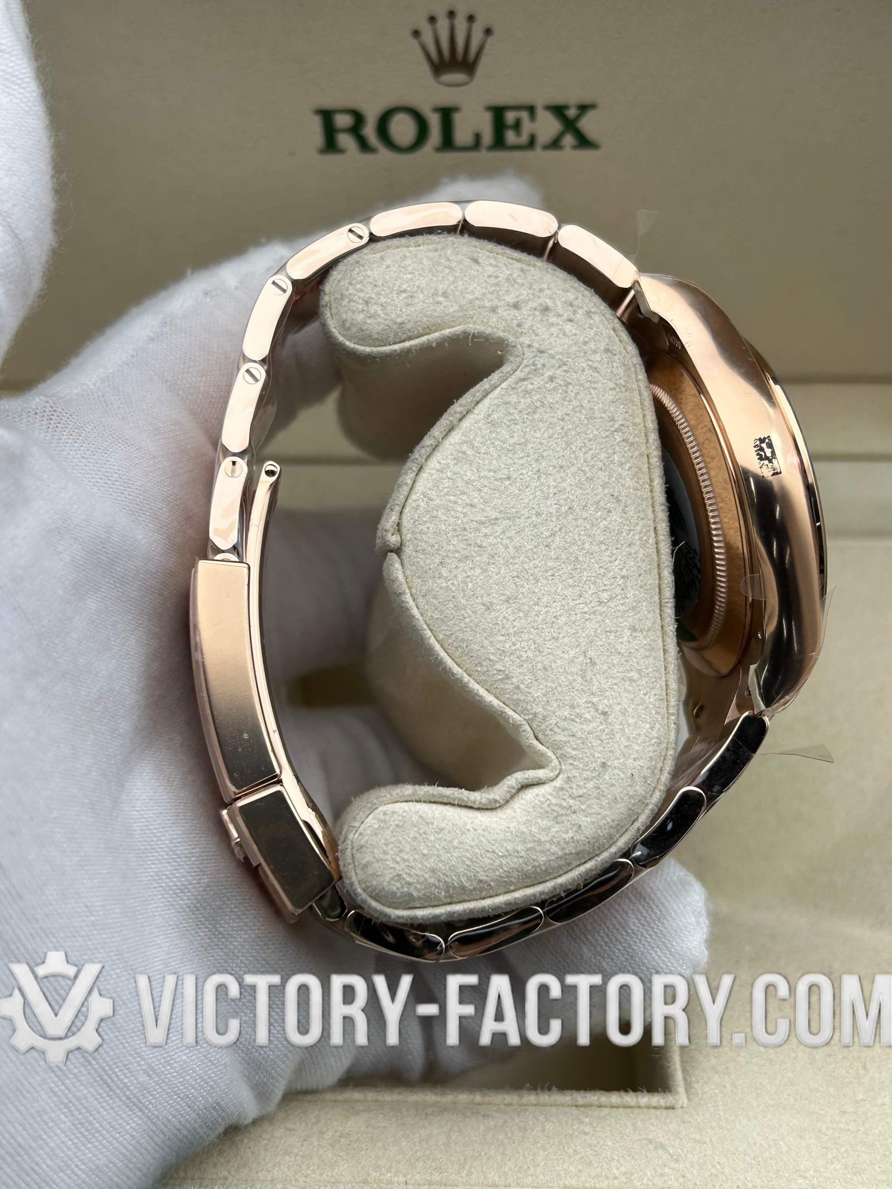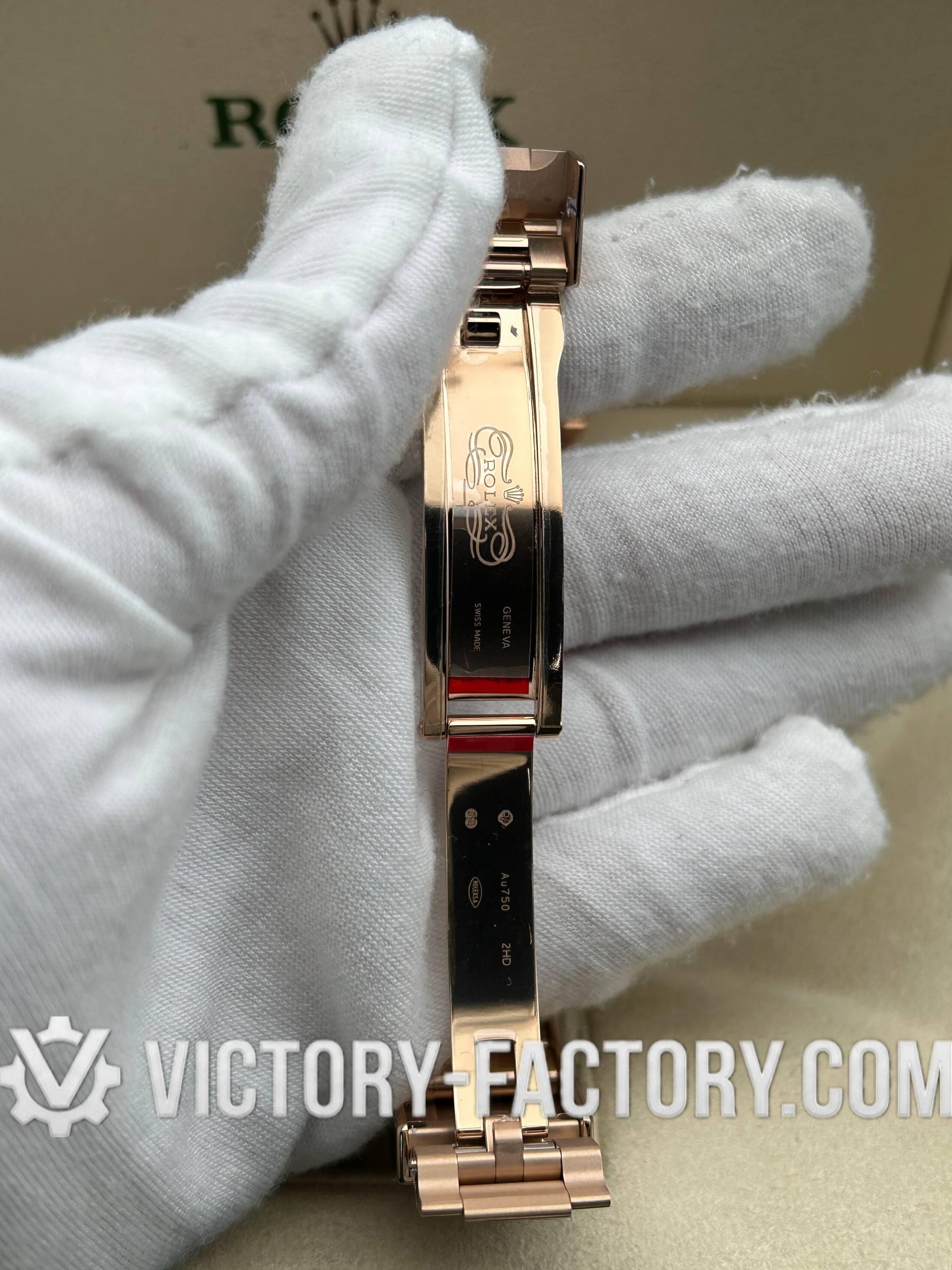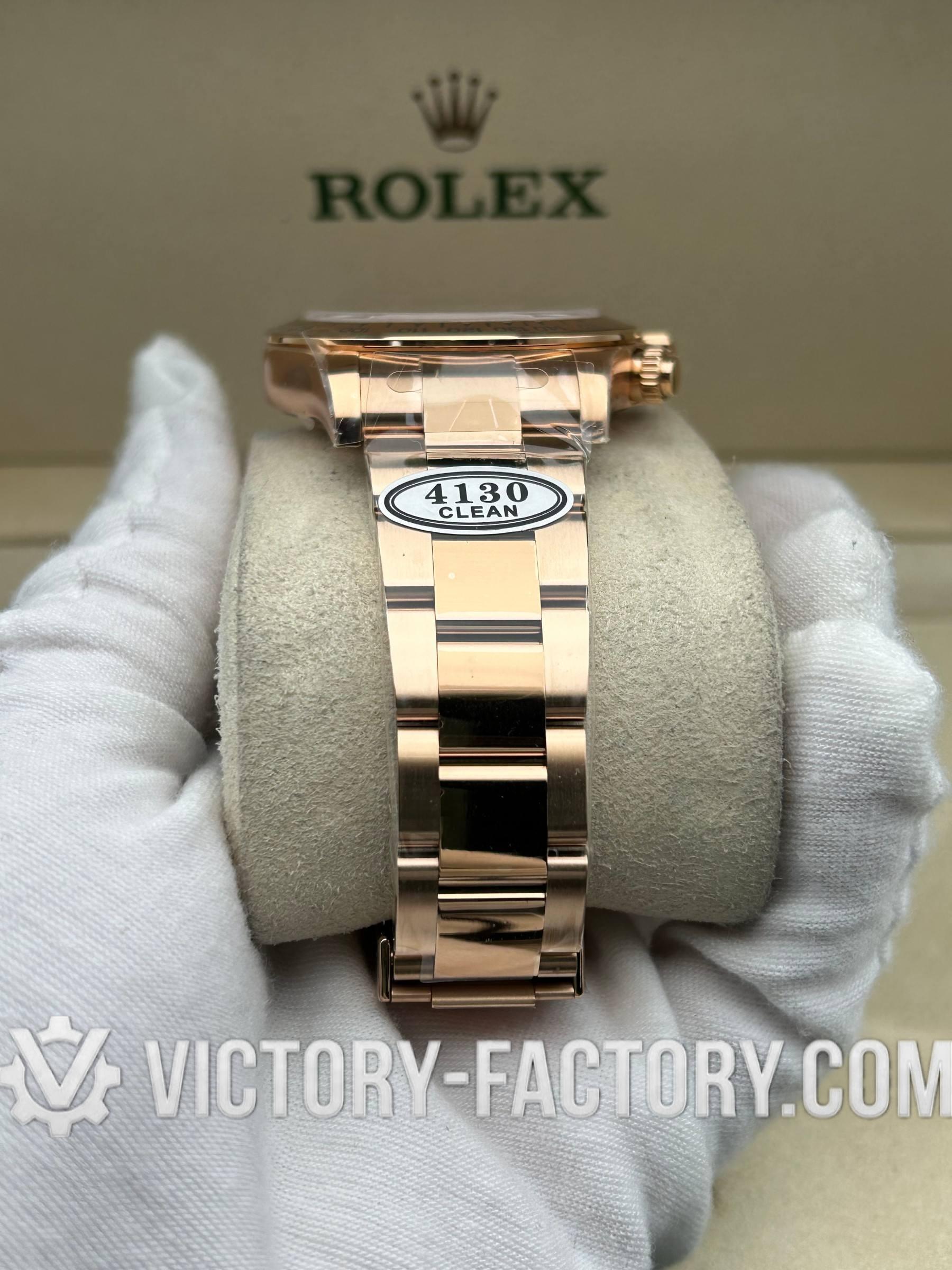 • Bezel: Victory Factory utilizes the genuine Clean Factory bezel, which is fixed and crafted from 18k Rose gold wrap solid 904L stainless steel, with black coated numerals and graduations. This design is a perfect replica of the original Rolex bezel.