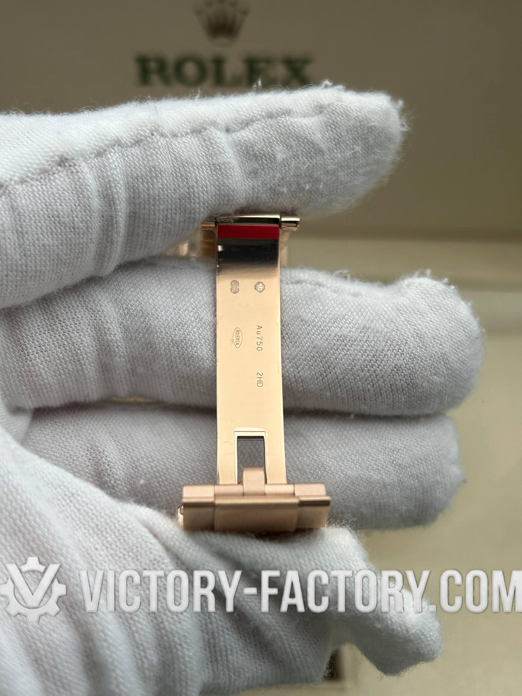 • Bracelet: The bracelet adopts the classic Oyster design with flat three-piece links, crafted from 18k Rose Gold wrapped solid 904L stainless steel and protected with a DLC scratch-protection coating. It includes solid threaded screws and a folding Oysterlock safety clasp with an Easylink 5 mm comfort extension link.