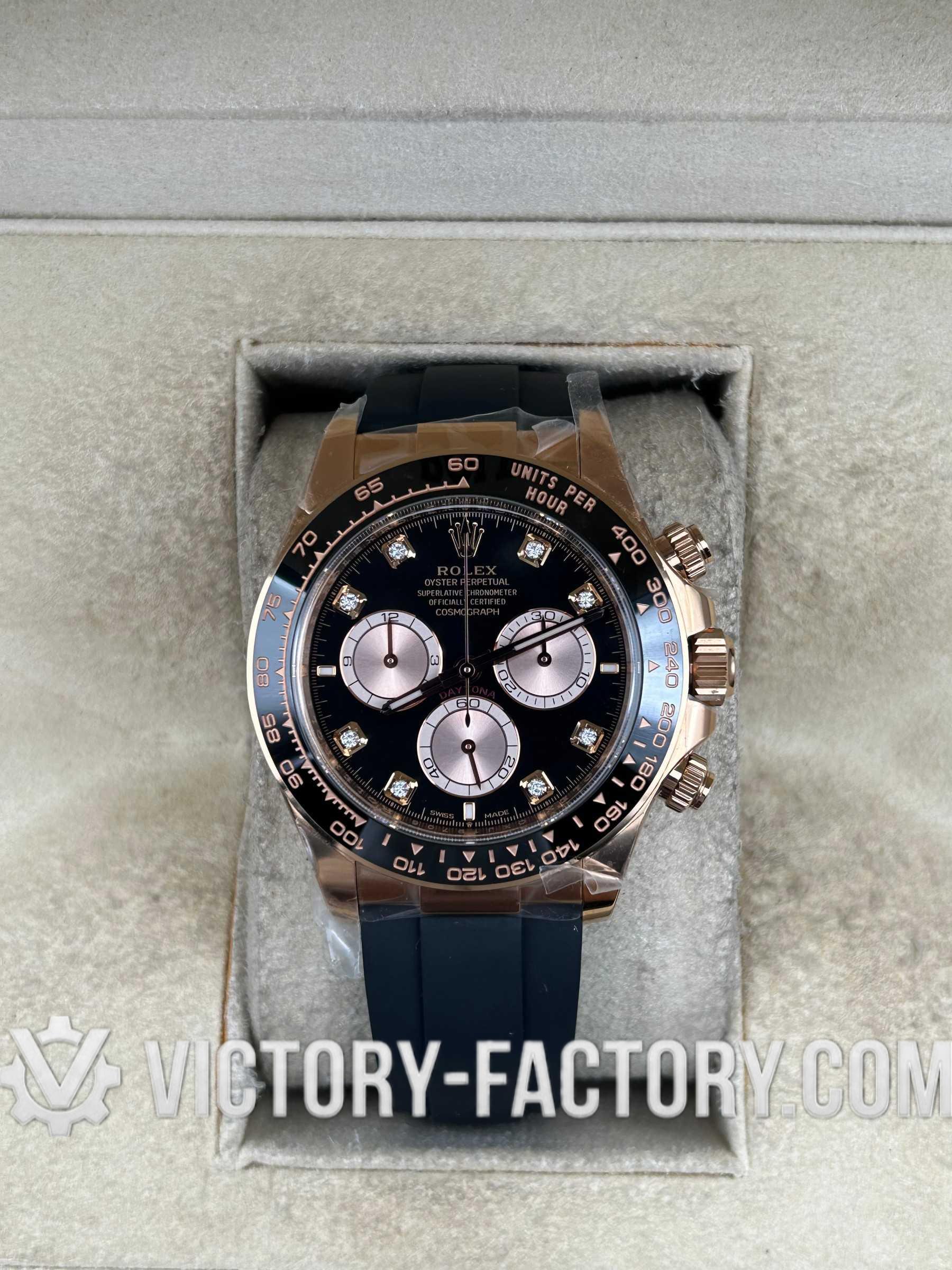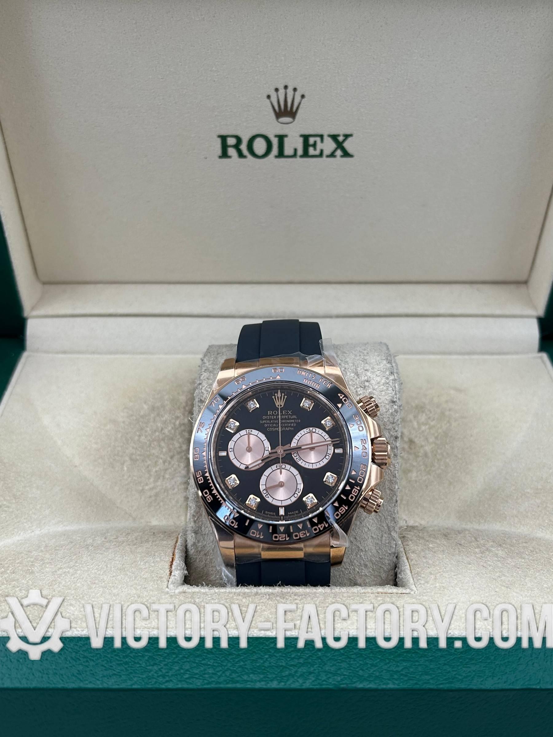 Victory Factory (VF) Rolex Cosmograph Daytona 116505 – 18k Rose Gold Diamond Black Dial