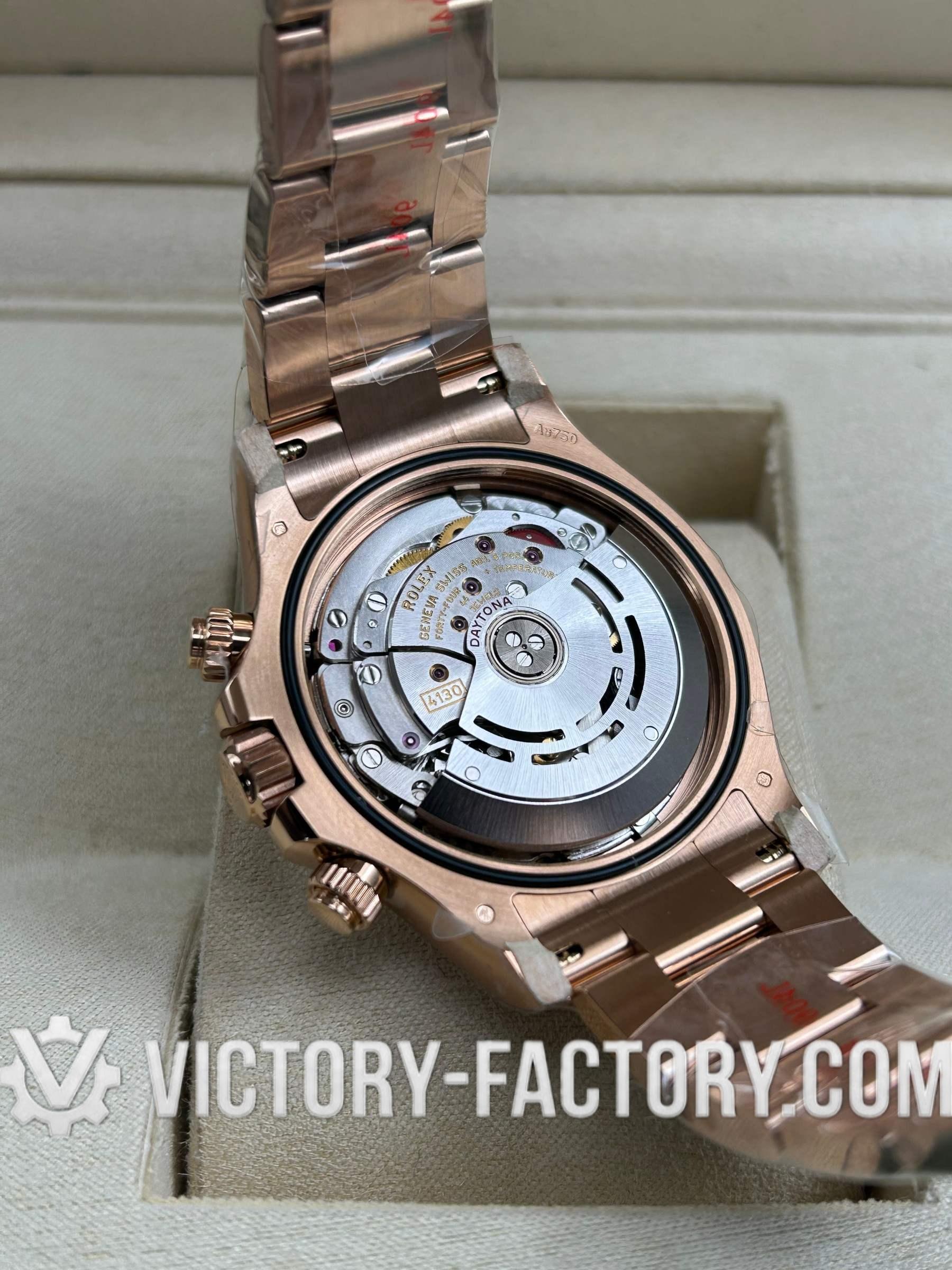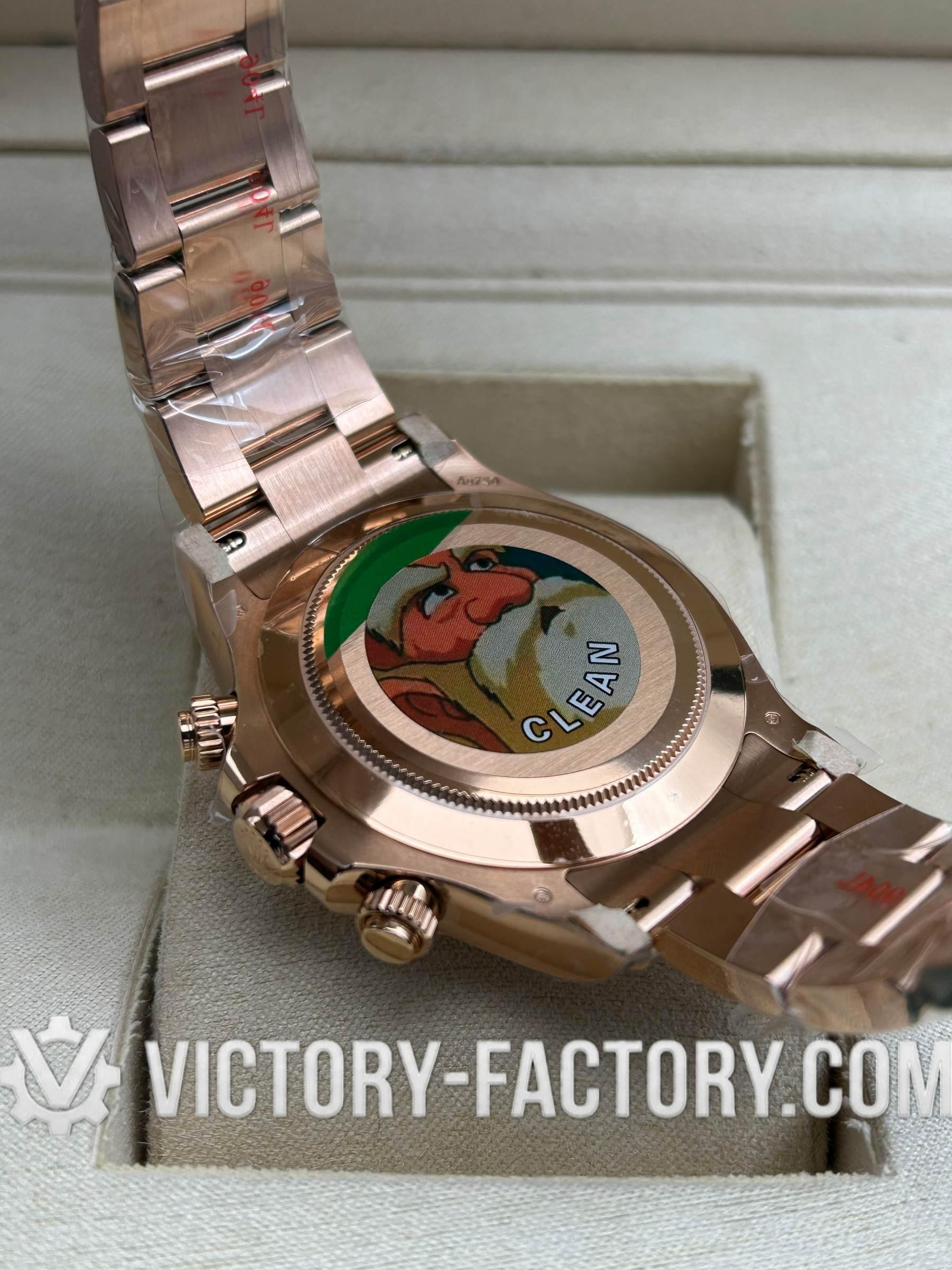 Introduction: Victory Factory (VF) presents the definitive edition of the 116505 Rose Gold Daytona with a Diamond Black dial. This masterpiece represents the absolute peak of the super clone industry, flawlessly integrating Clean Factory’s (CF) world-class exterior craftsmanship with the legendary Dandong 4130 Integrated Chronograph movement. For collectors who demand Clean Factory’s aesthetic perfection paired with the unrivaled reliability of a true Dandong heart, Victory Factory offers the undisputed choice.