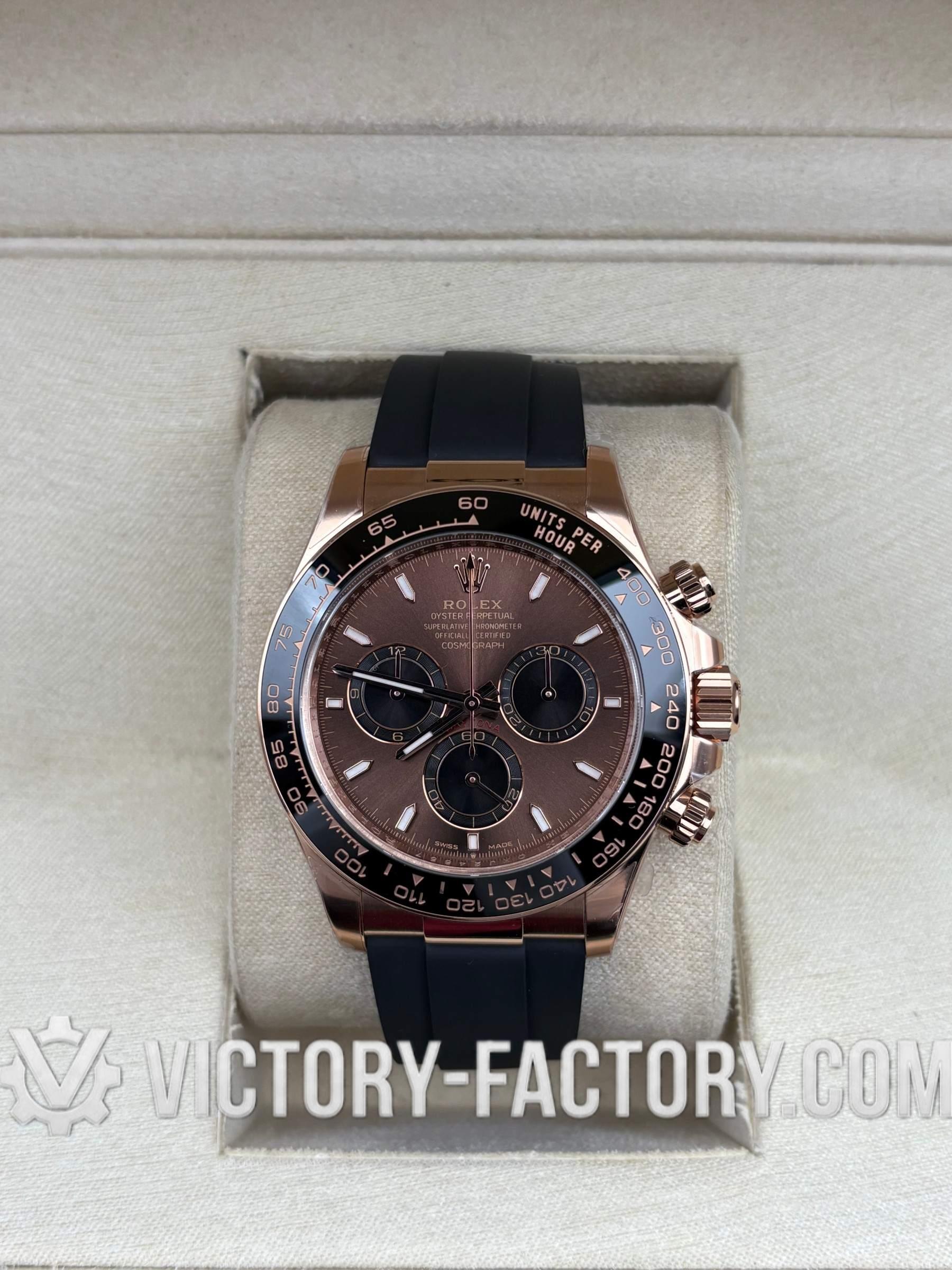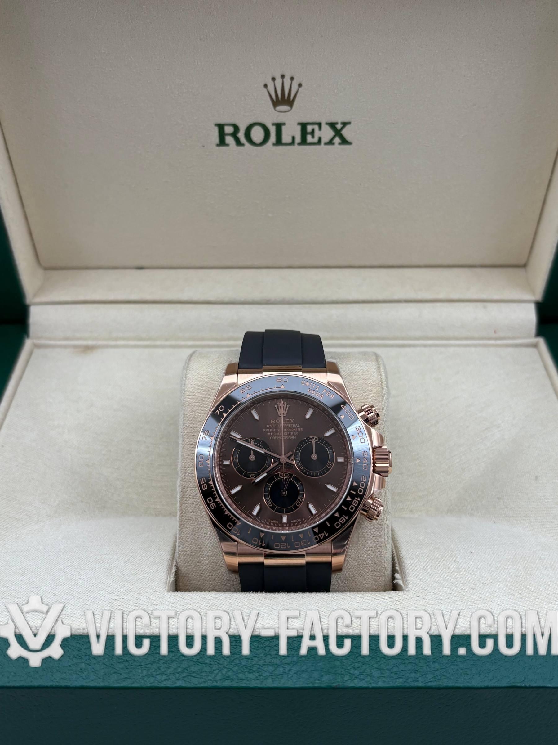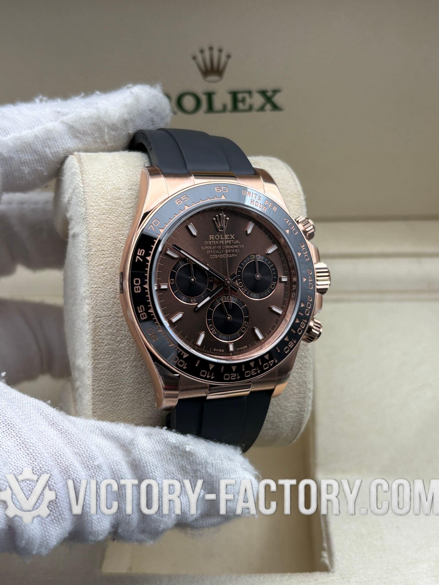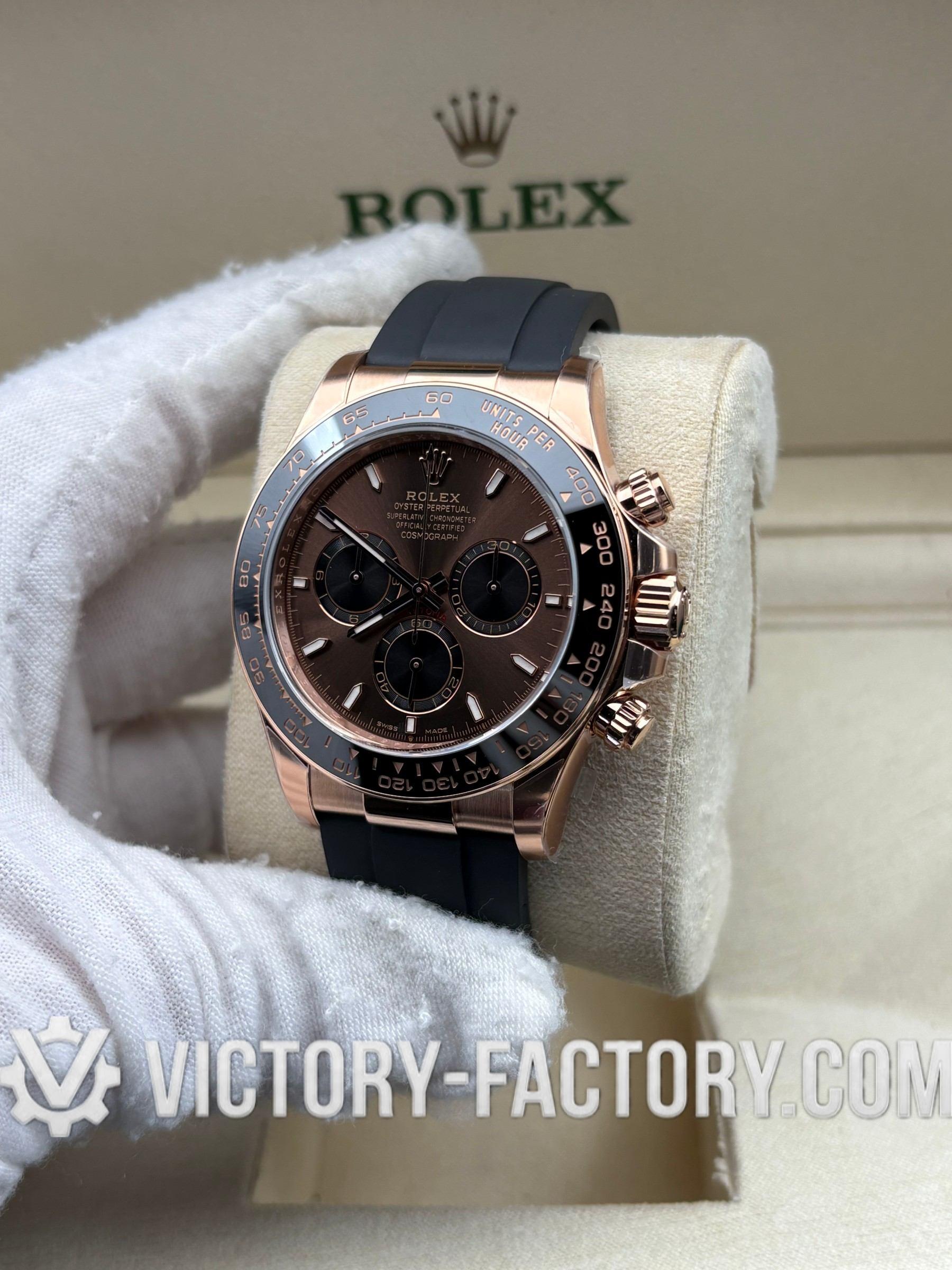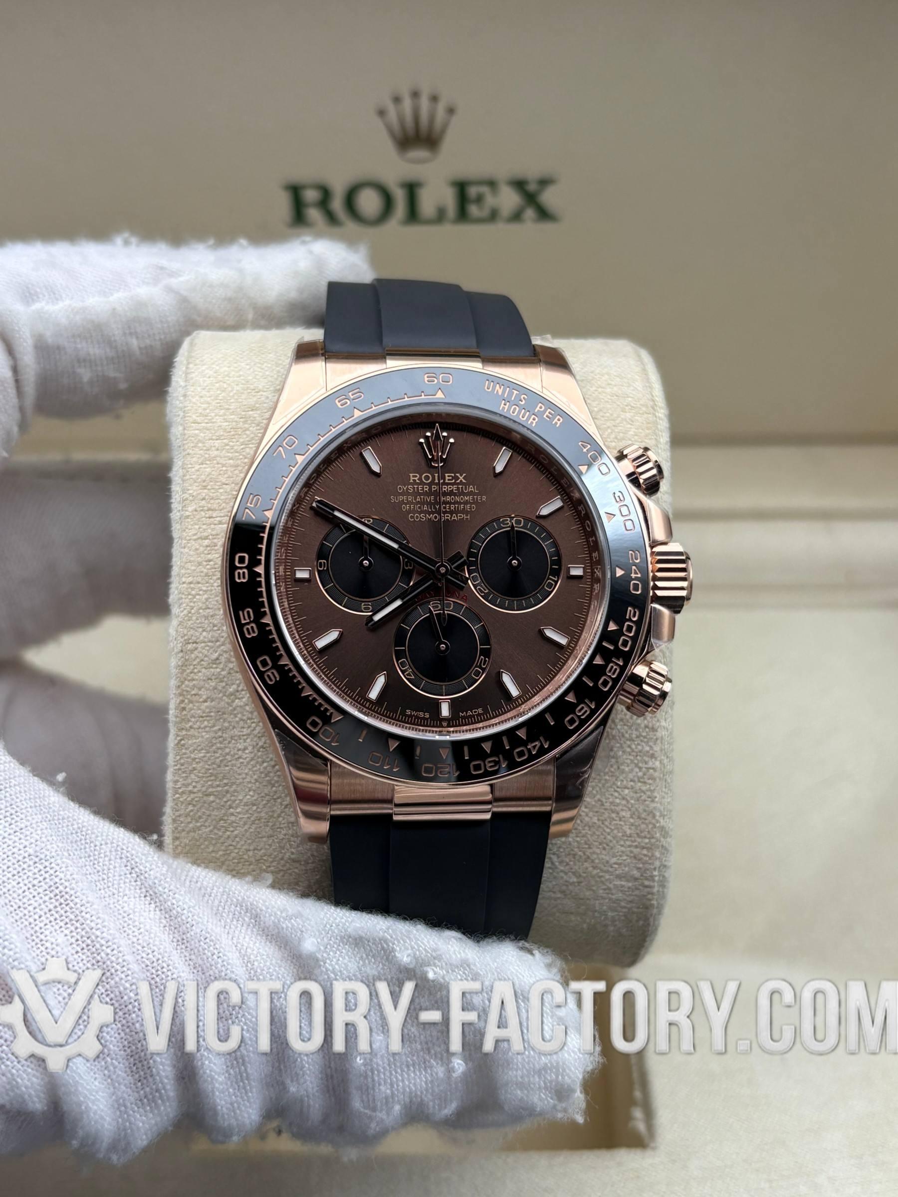 Victory Factory (VF) Rolex Daytona 116515LN Rosegold Chocolate Panda Dial Rubber Strap– Super Clone with Clean Factory Parts & Dandong 4130 Movement