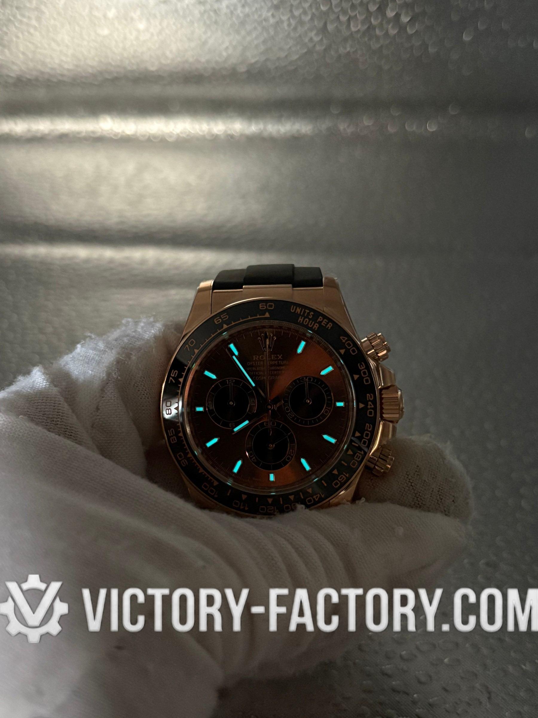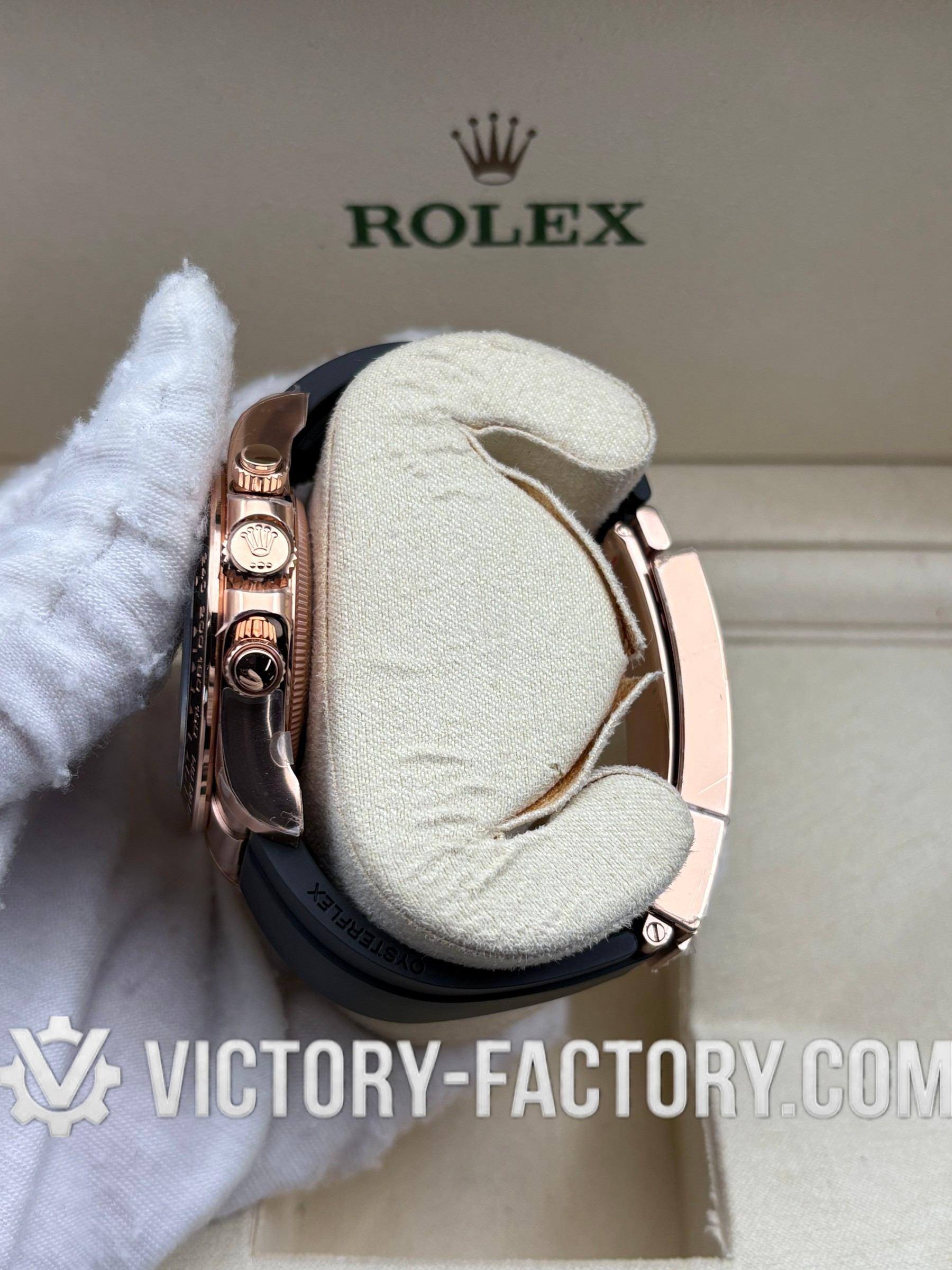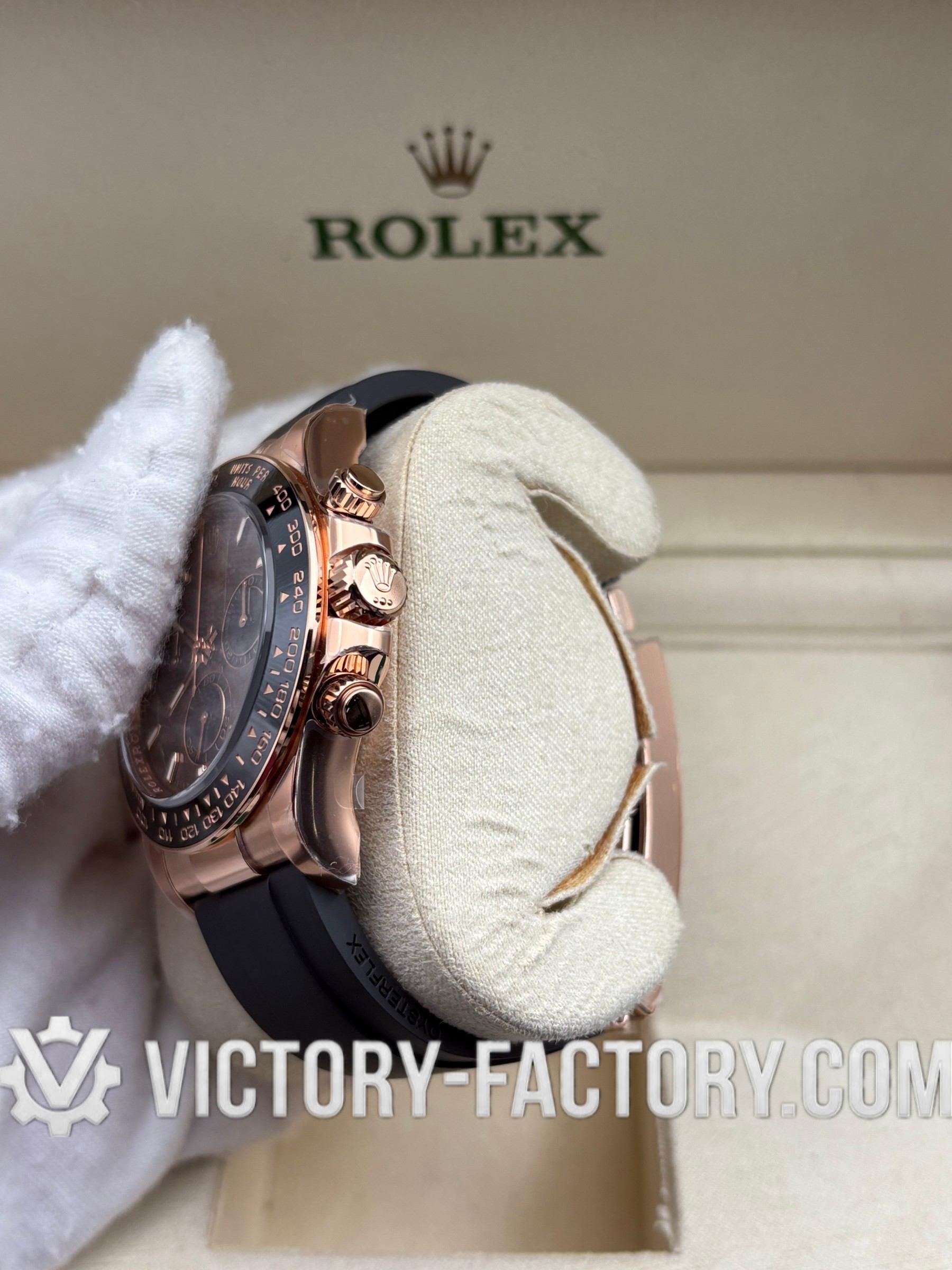 Product Overview: Victory Factory (VF) proudly presents the definitive 116515LN “Chocolate Panda” on Oysterflex. This masterpiece represents a strategic leap in high-end watchmaking, seamlessly integrating the world-renowned external craftsmanship of Clean Factory (CF) with the industry’s most respected heart: the Dandong 4130 Integrated Super Clone Movement. By inheriting CF’s flawless 18k Rose Gold plating and combining it with the mechanical reliability of the Dandong movement, VF delivers a 1:1 replica that is virtually indistinguishable from the original in every aspect, from design to functionality.