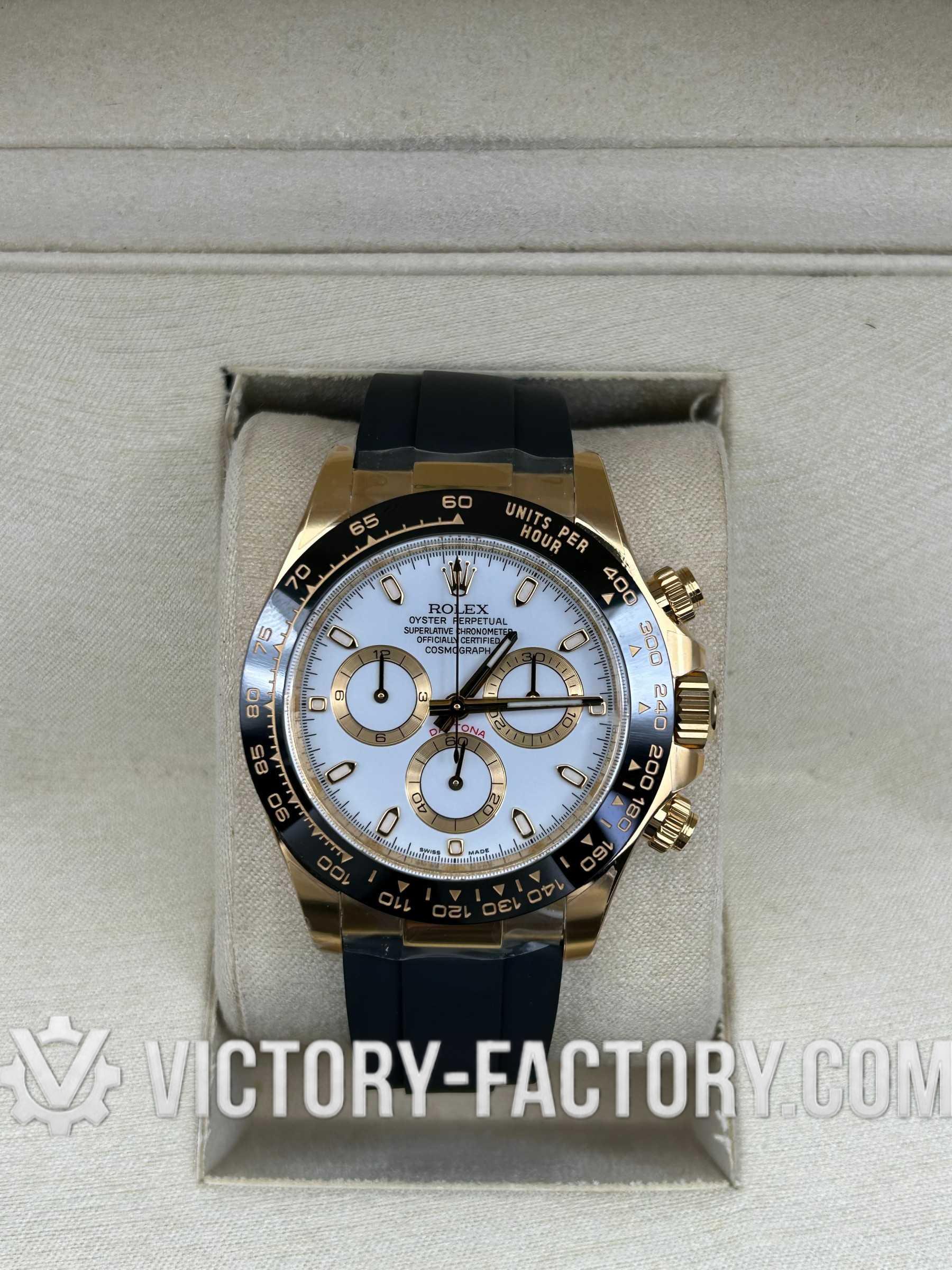 The Perfection of Collaboration Victory Factory (VF) presents the definitive 1:1 replica of the Rolex Cosmograph Daytona 18k Yellow Gold with a White Dial. By inheriting the premium exterior components from Clean Factory and integrating the industry-best Dandong 4130 movement, Victory Factory has created a timepiece that is virtually indistinguishable from the original in both aesthetics and mechanical performance.