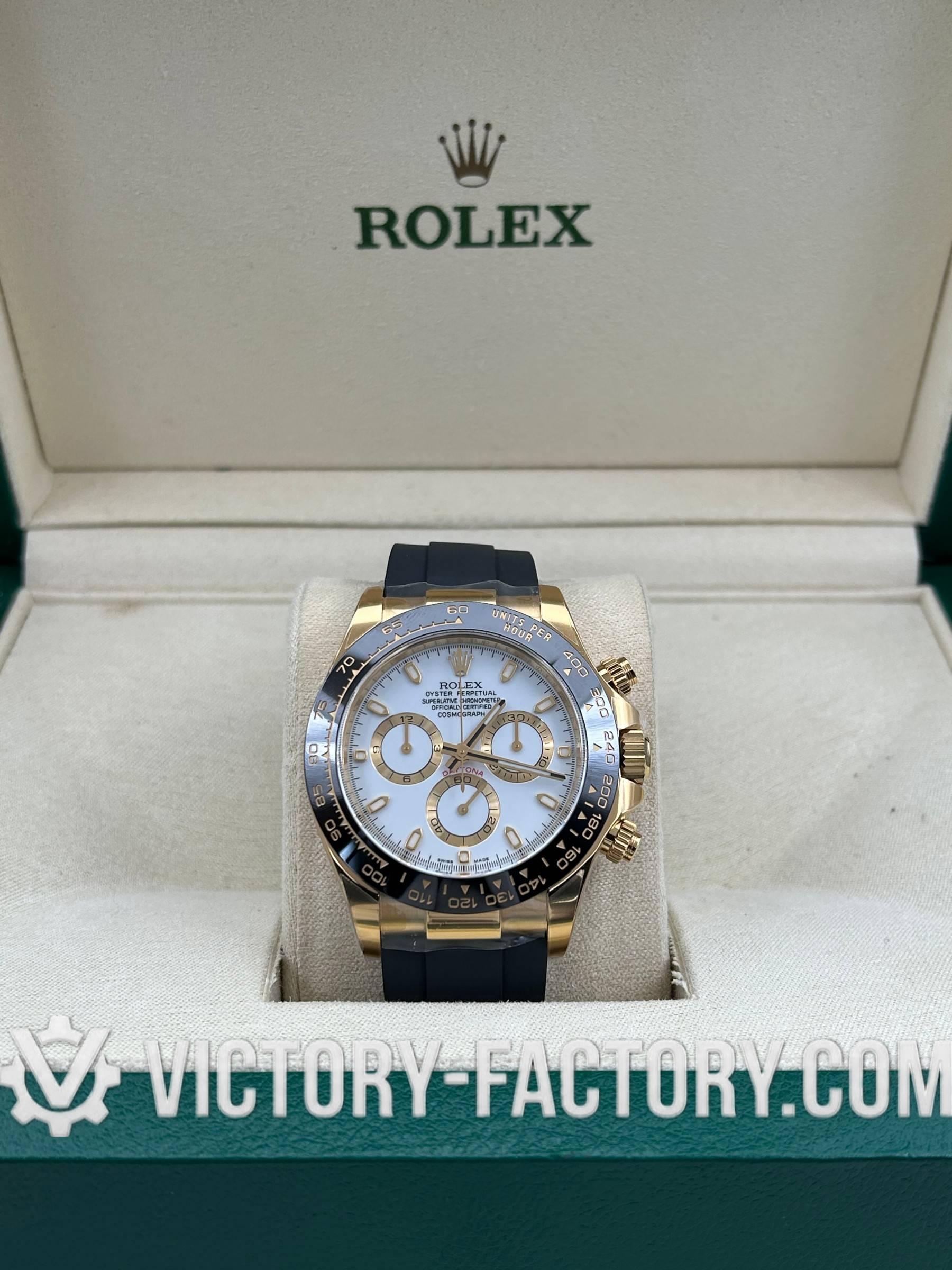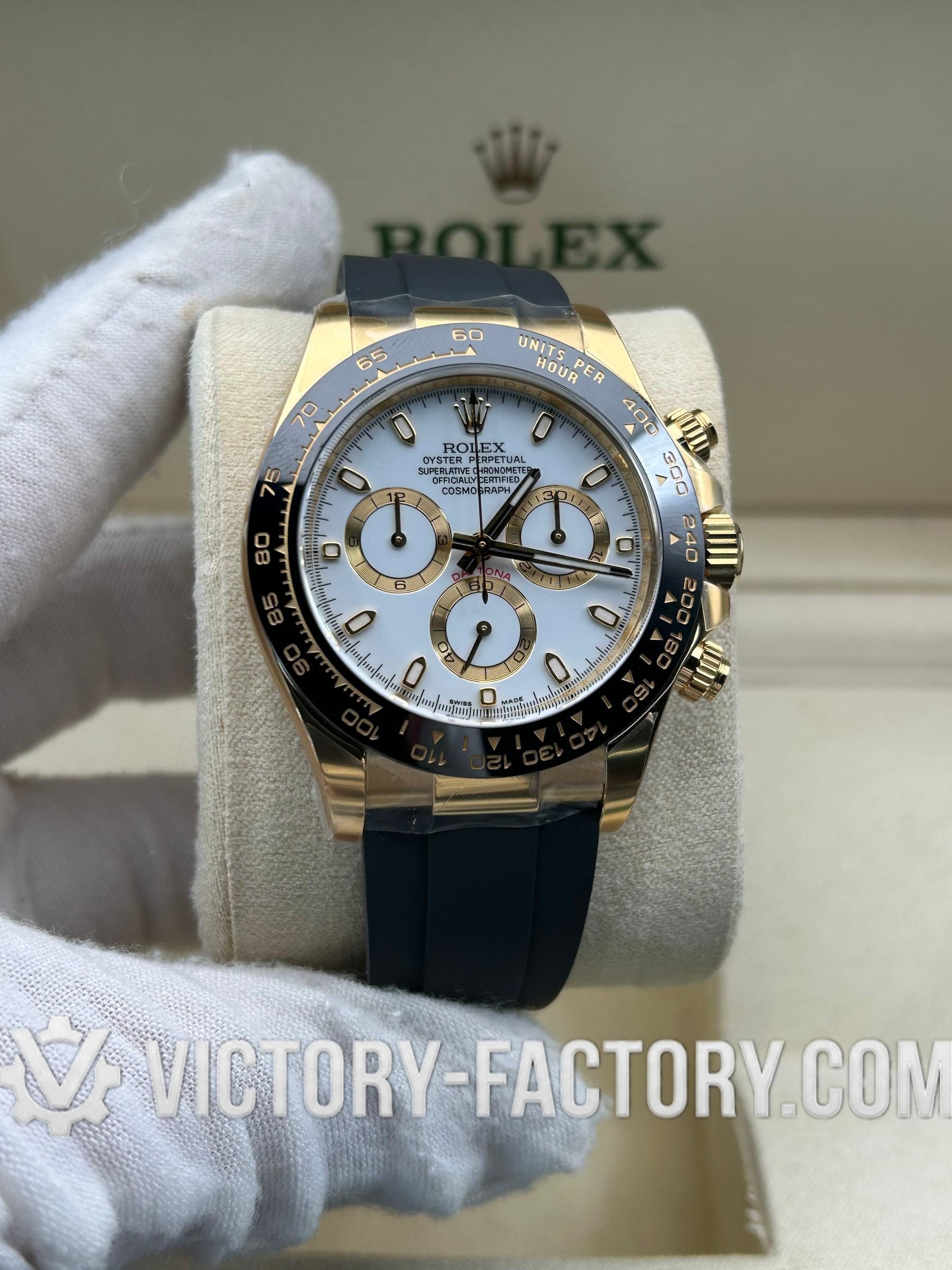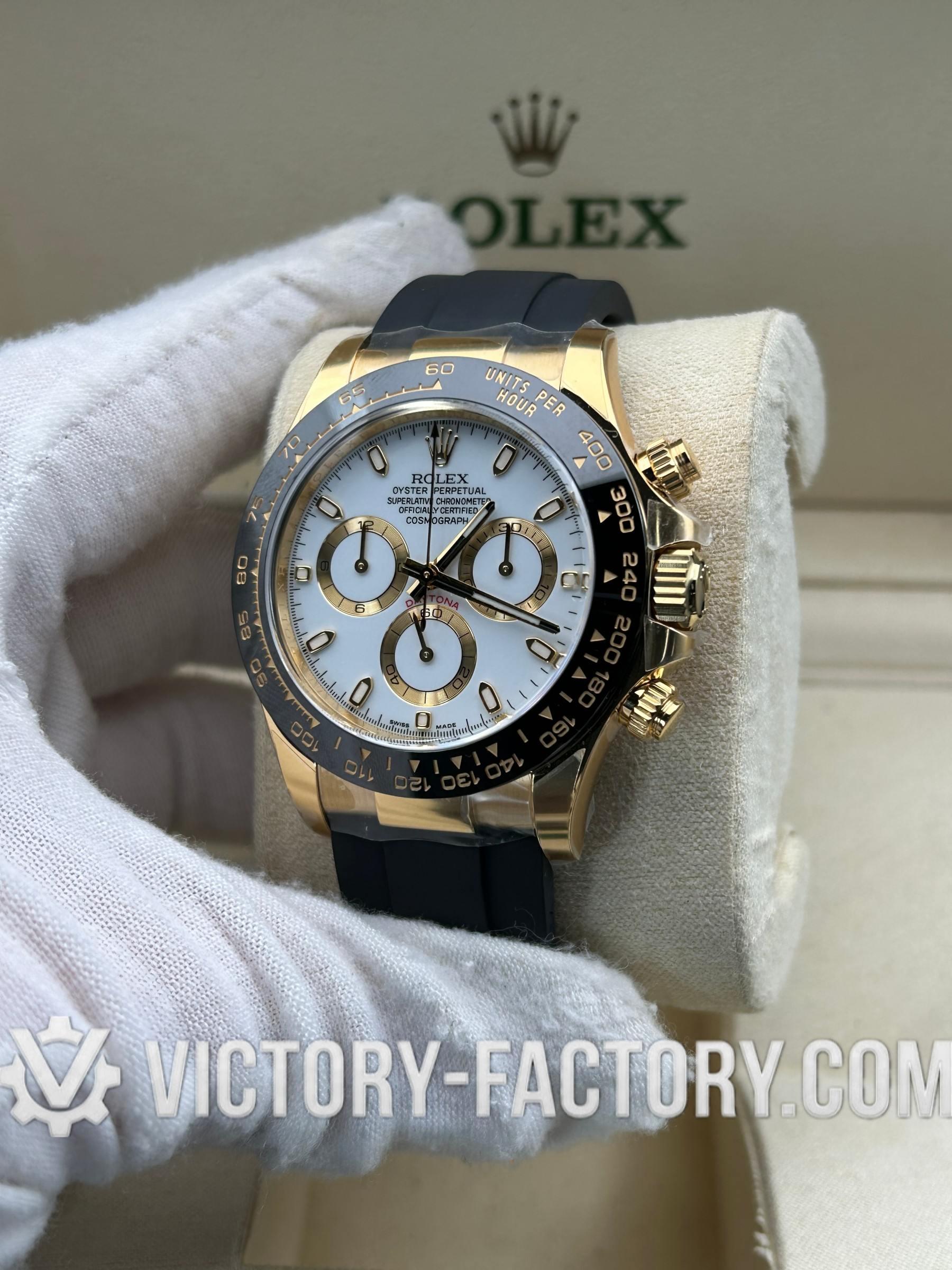 Victory Factory (VF) Rolex Daytona 116518LN Yellow Gold White Dial-Rubber Strap- Super Clone with Clean Factory Parts & Dandong 4130 Movement