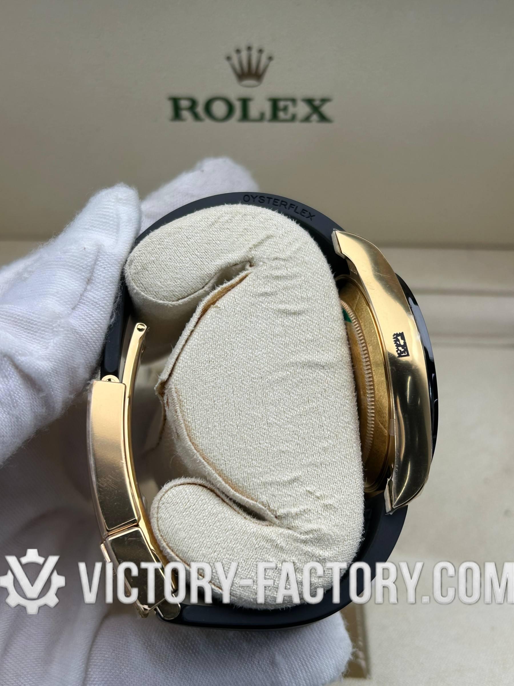 • 【BRACELET】: High-Performance Oysterflex A high-performance Rubber Oysterflex bracelet with a flexible metal blade core, overmoulded with black elastomer for durability and comfort. It includes a folding Oyster safety clasp on 18k gold wrapped solid 904L stainless steel for a secure fit.