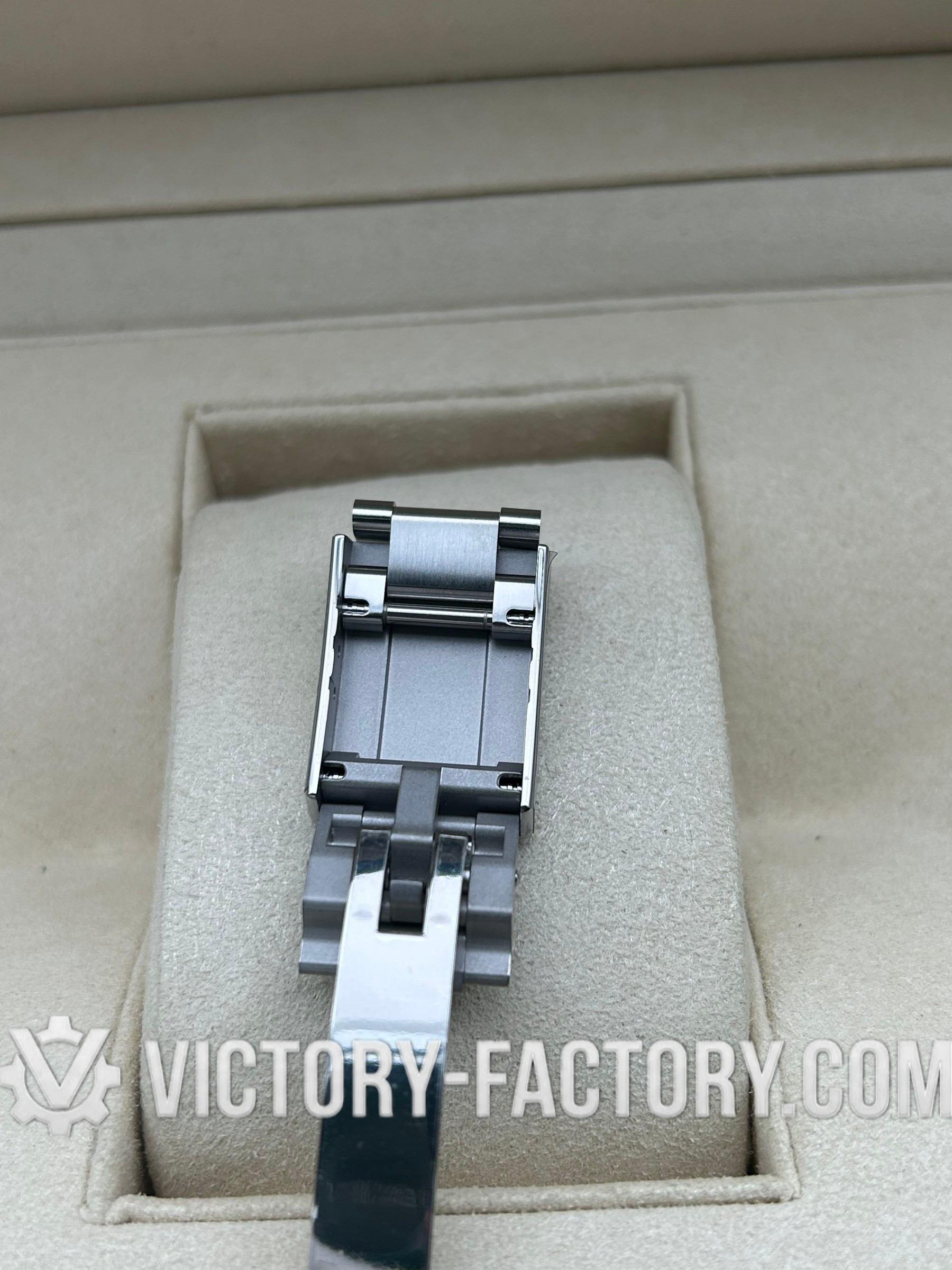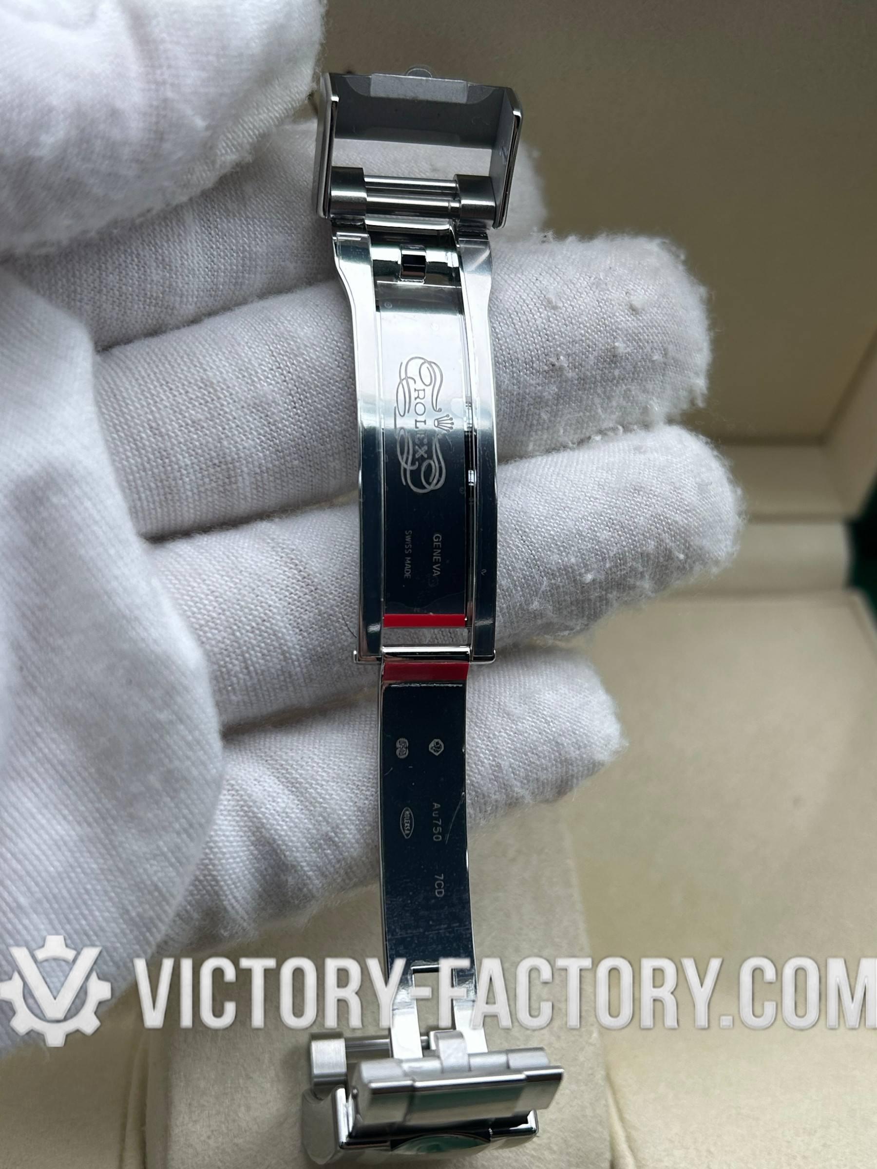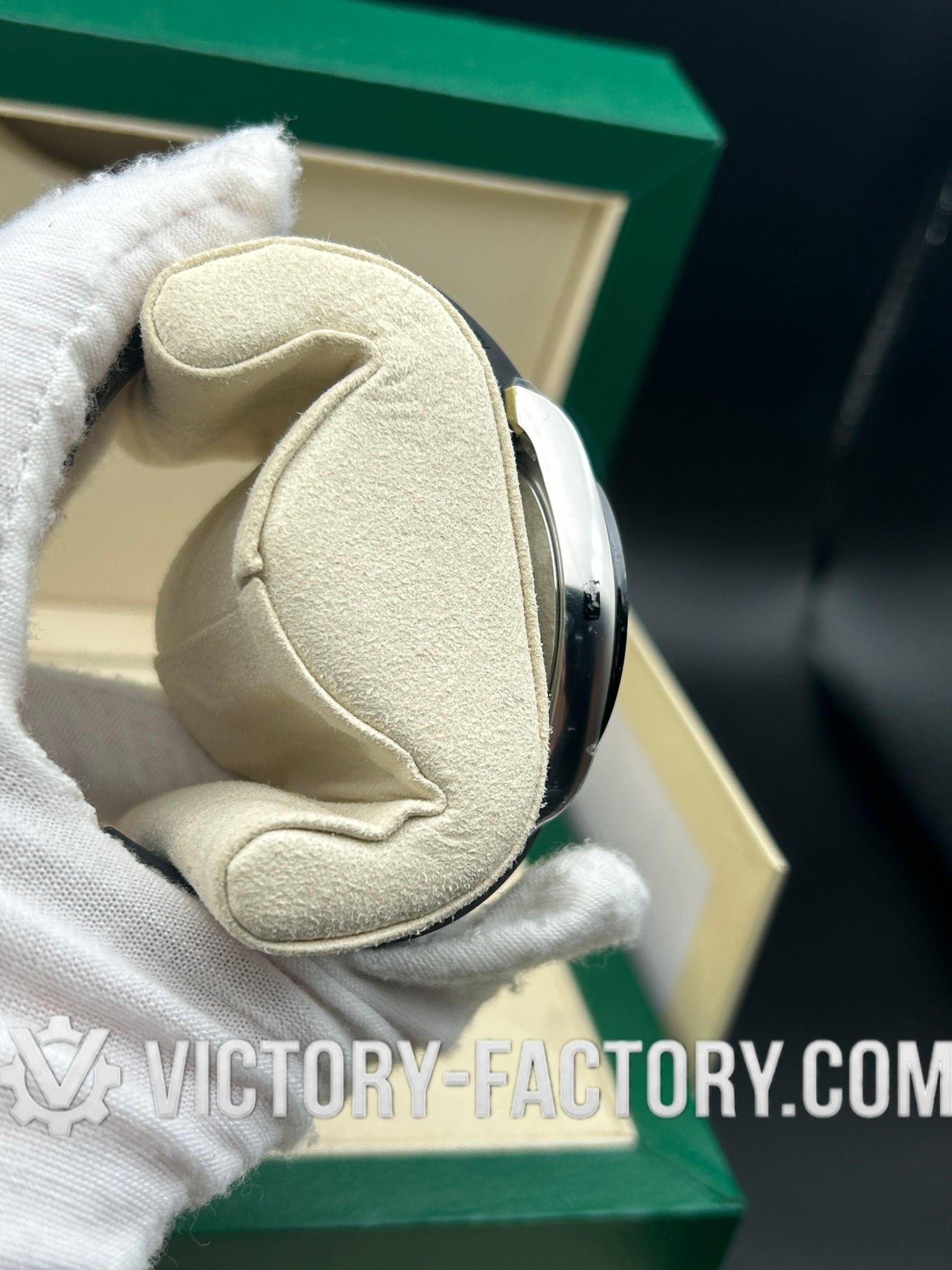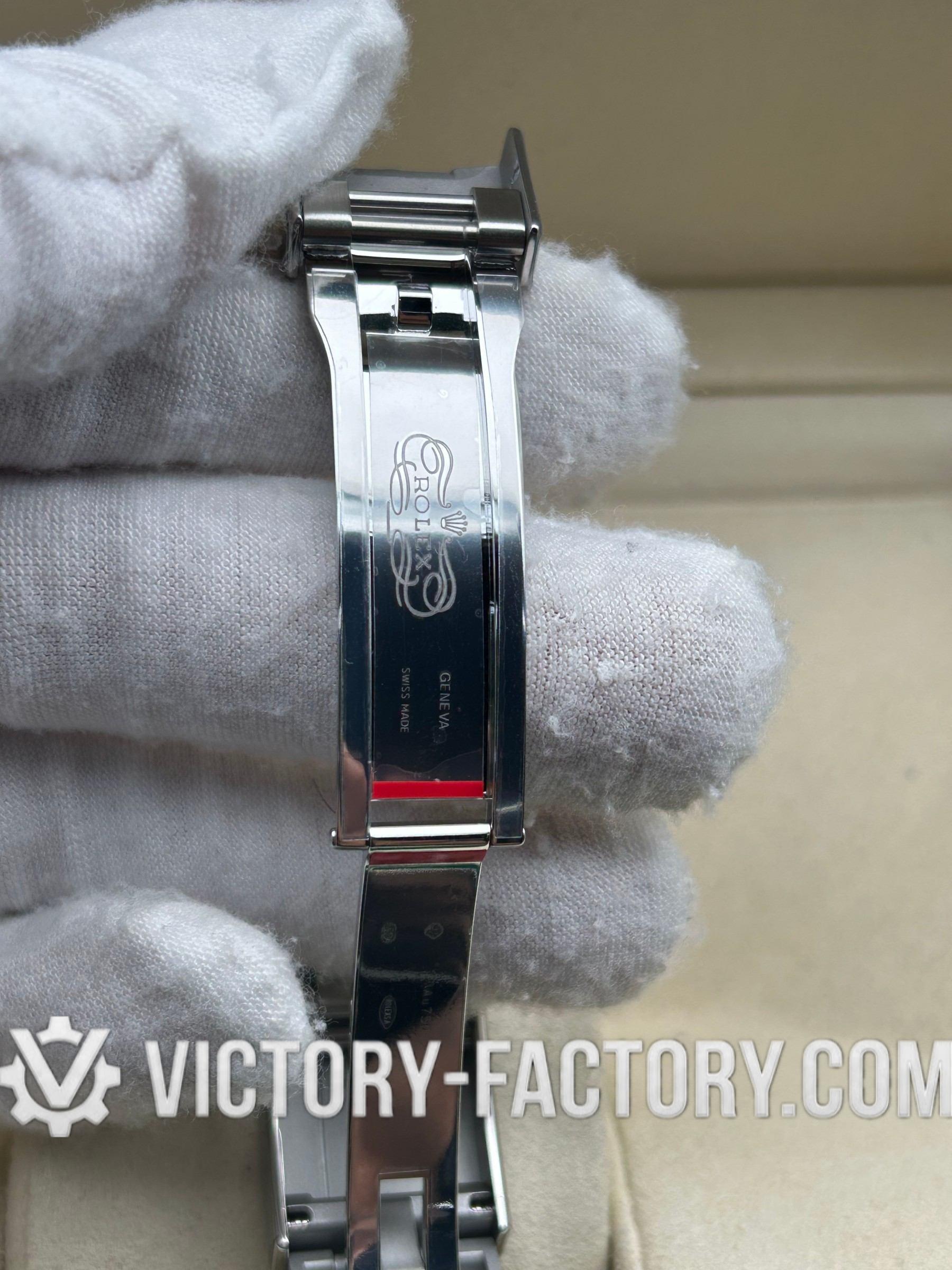 The Rehaut ring is flawlessly laser-engraved with the “ROLEXROLEX” signature, and the case dimensions are precisely matched to the original.