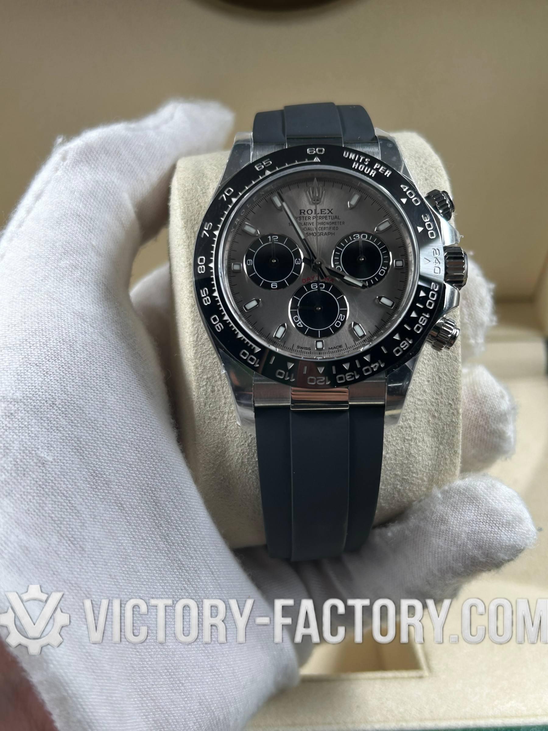 Product Overview: Victory Factory (VF) proudly presents the definitive 116519LN “Grey Panda” Daytona. This masterpiece represents the pinnacle of the super clone industry by seamlessly integrating Clean Factory’s (CF) world-renowned exterior craftsmanship with the legendary Dandong 4130 Chronograph Movement. For collectors who refuse to compromise between aesthetic perfection and mechanical soul, the VF 116519LN is the undisputed choice.
