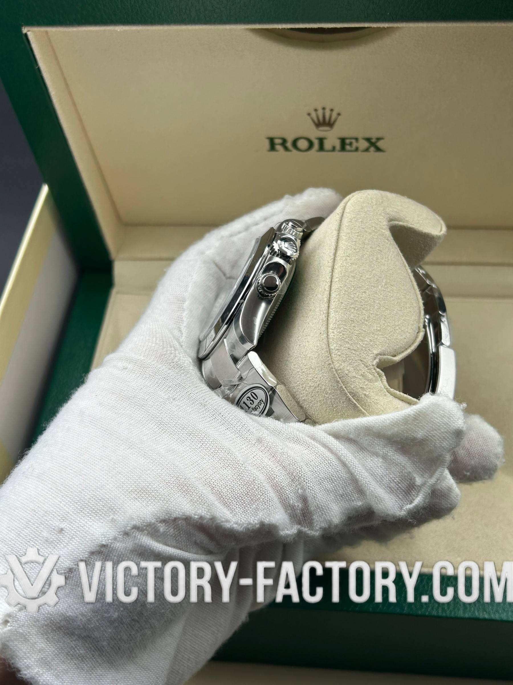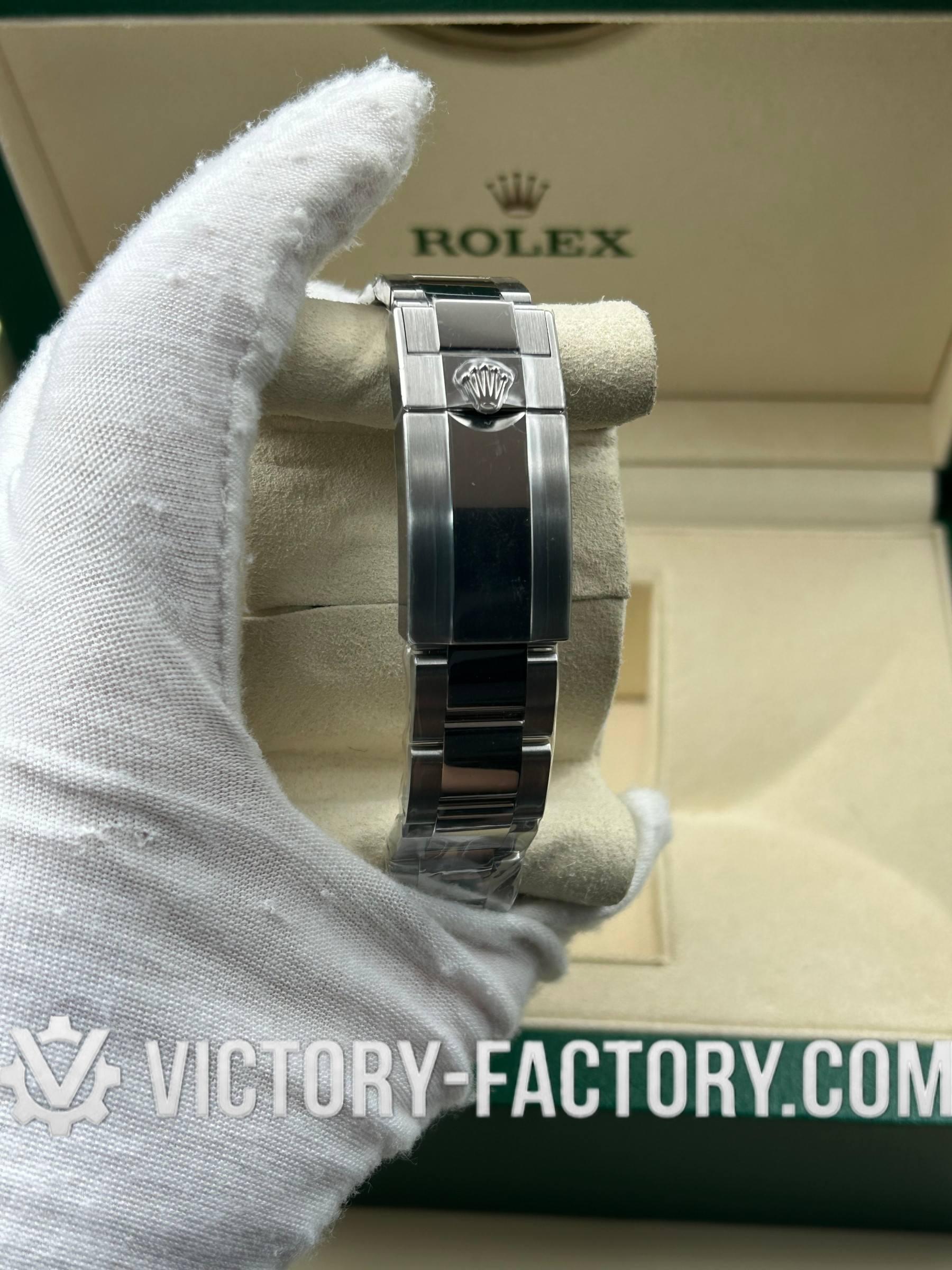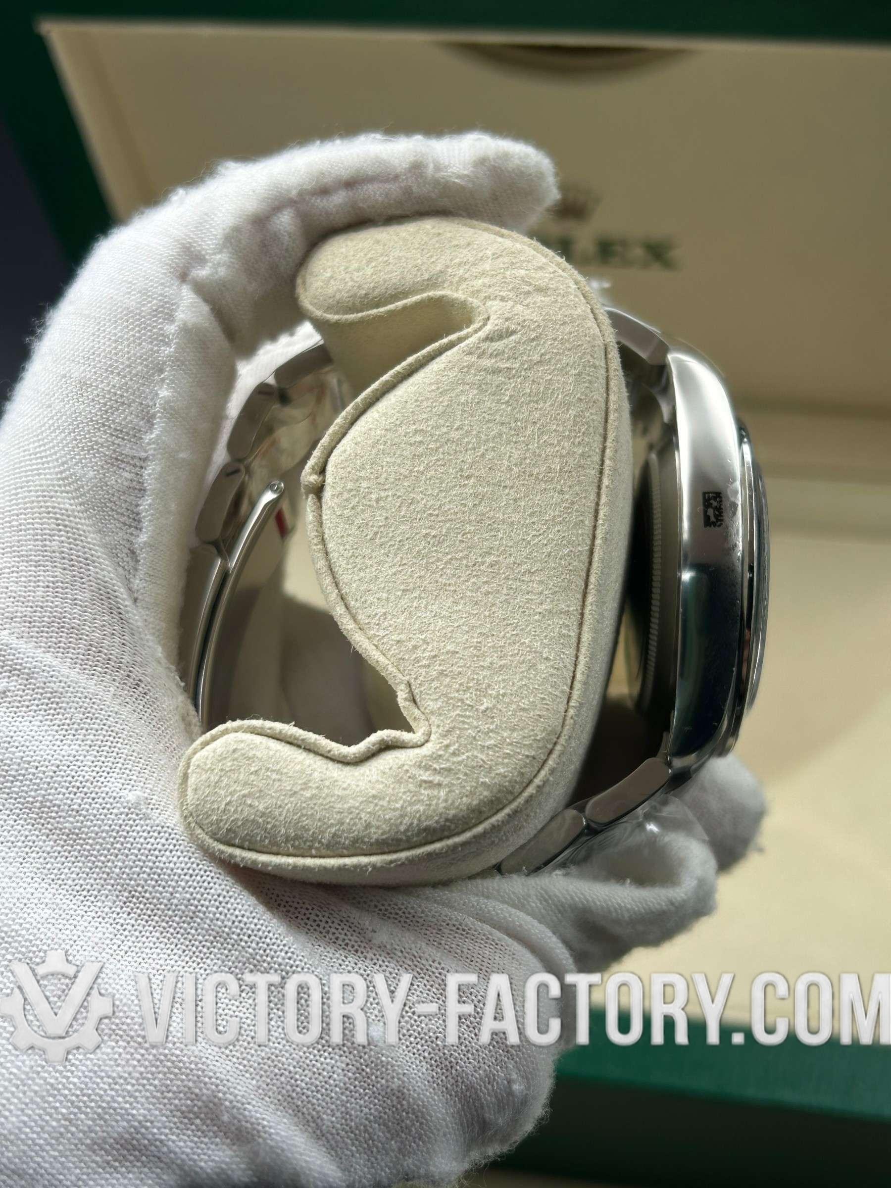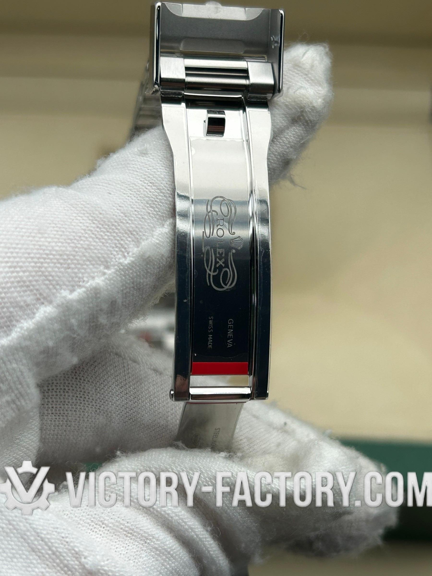 CASE: This exquisite Victory Factory timepiece features a 40mm Solid 904L Stainless steel case, constructed in the same monobloc style as genuine Rolex steel. It boasts a screw-down case-back, push-buttons, and winding crown, all sealed with synthetic rubber for maximum durability. The watch proudly displays the ROLEXROLEX laser engraving on the Rehaut ring and is protected with a DLC scratch-protection coating. The dimensions and weight are precisely matched to the genuine model, with every part interchangeable with an original Rolex.