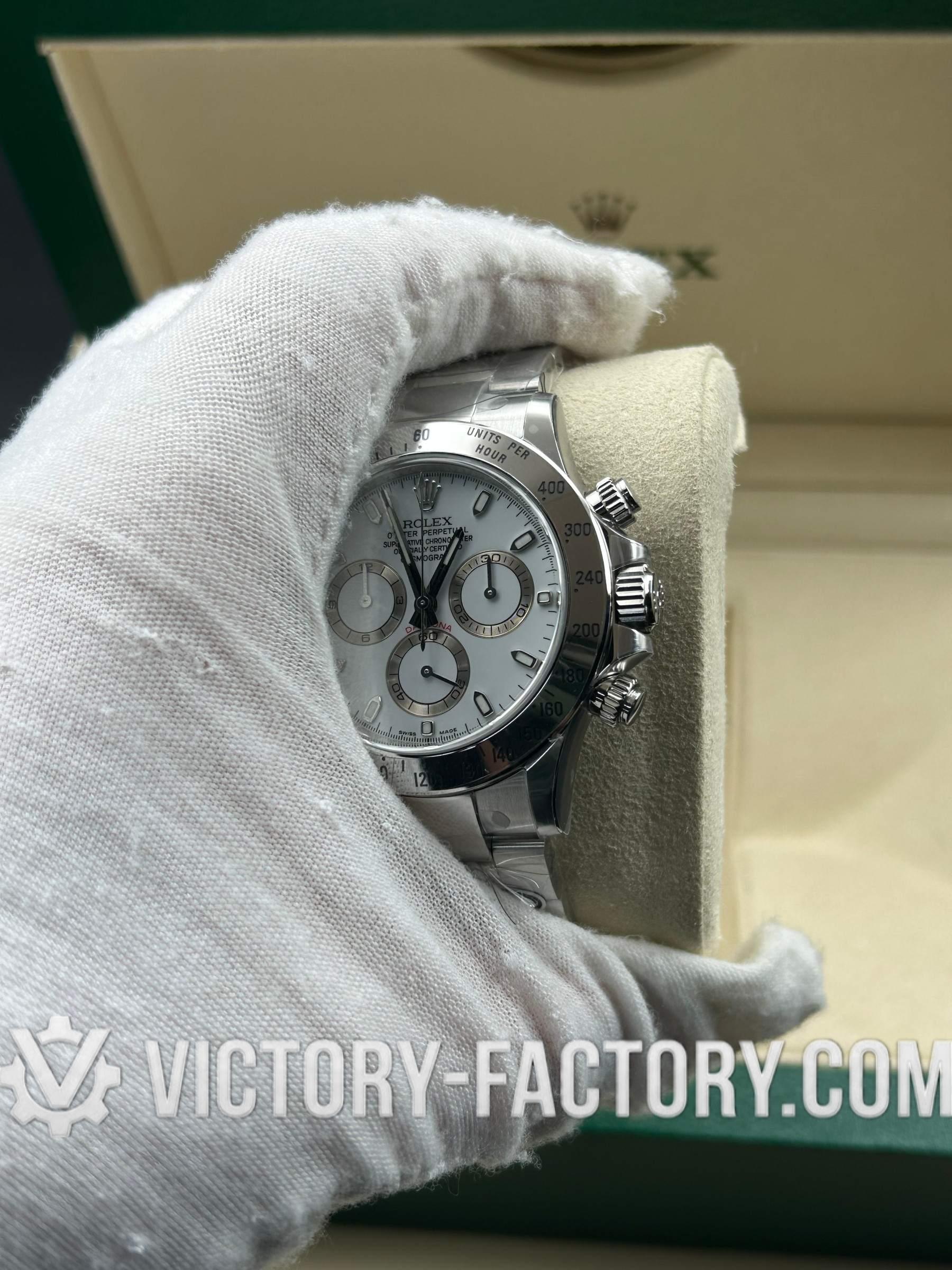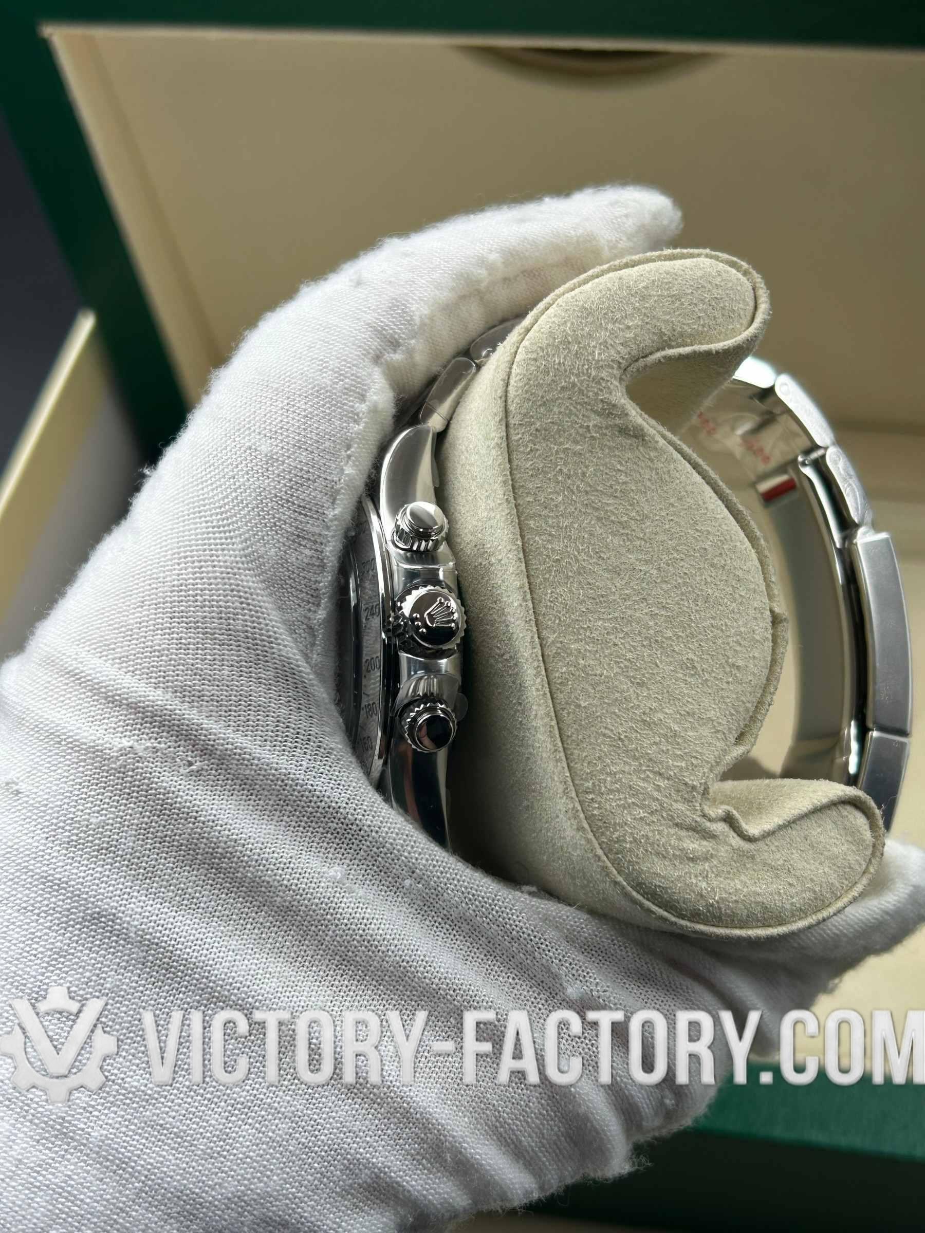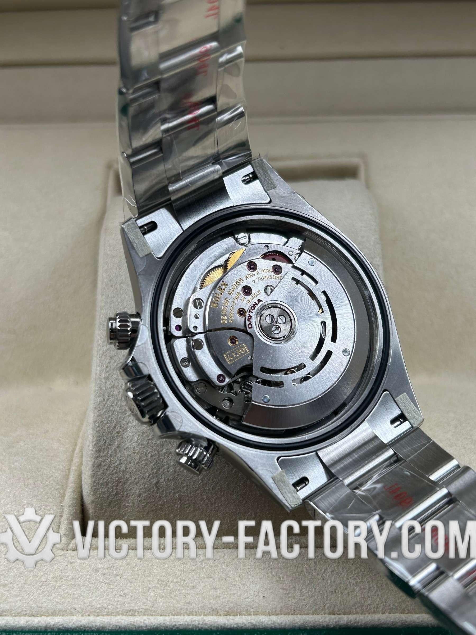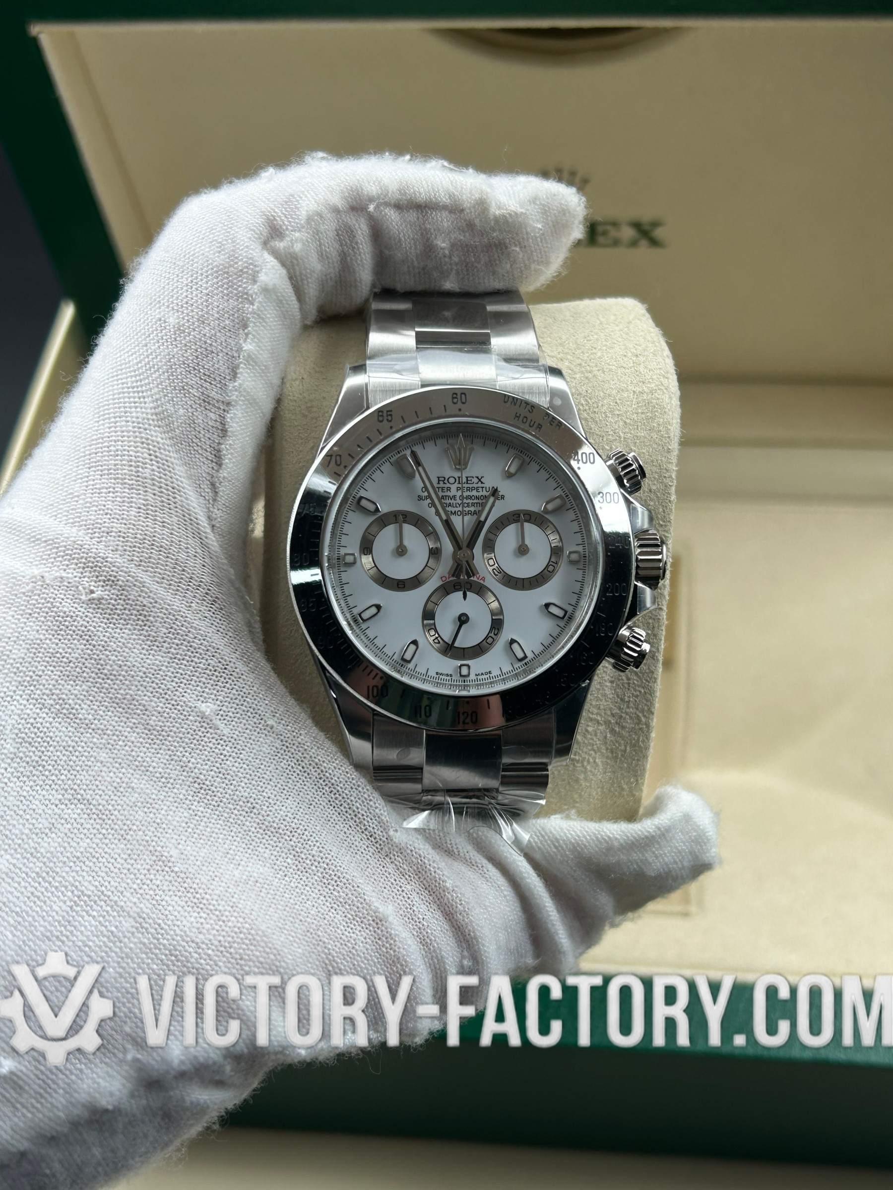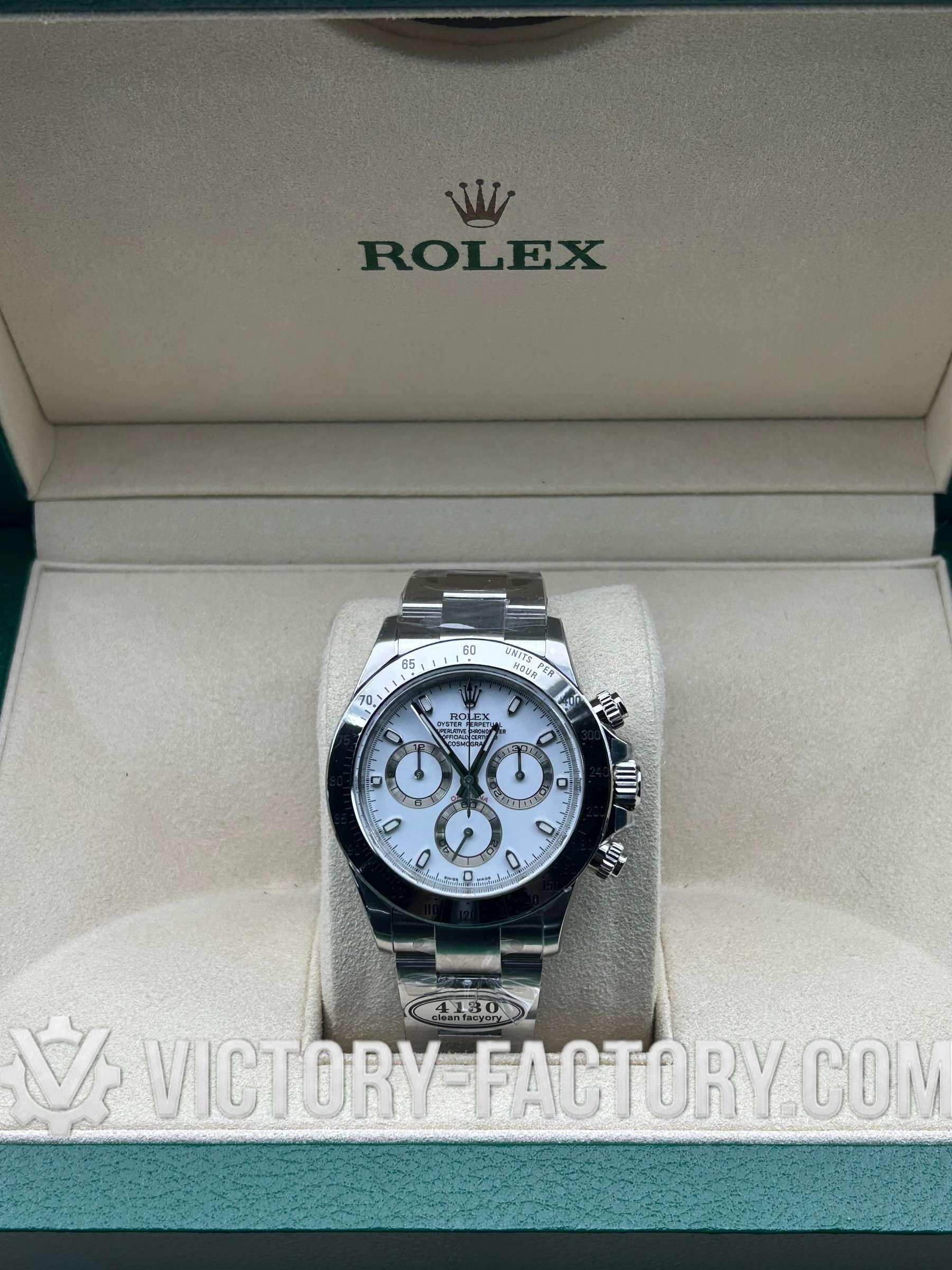 Victory Factory (VF) proudly presents the Rolex Cosmograph Daytona 4130 White Dial Super Replica Watch, a symbol of luxury and precision engineering. This timepiece is expertly crafted to match the original Rolex Cosmograph Daytona in every aspect, from design to functionality, by integrating premium Clean Factory (C-Factory) exterior components with the industry-leading Dandong 4130 movement.