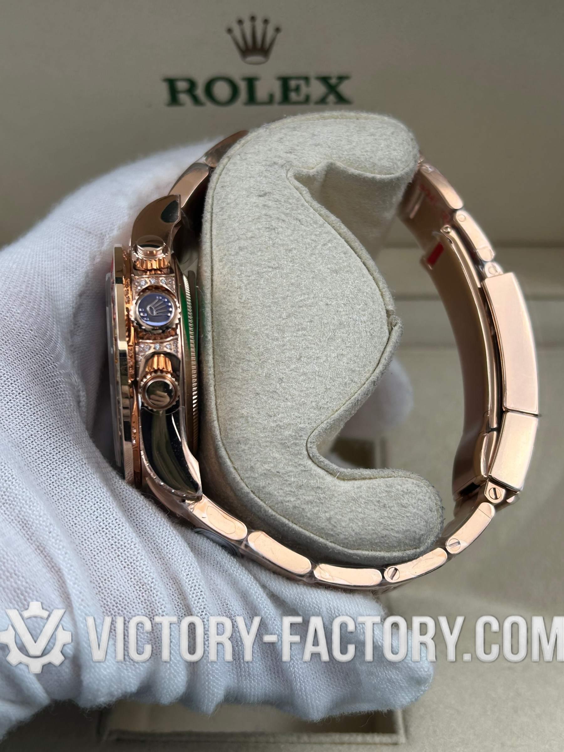 Victory Factory (VF) Rolex Daytona 116595 RBOW Rose Gold Black Dial Diamond&Sapphire Bezel- Super Clone with Clean Factory Parts & Dandong 4130 Movement