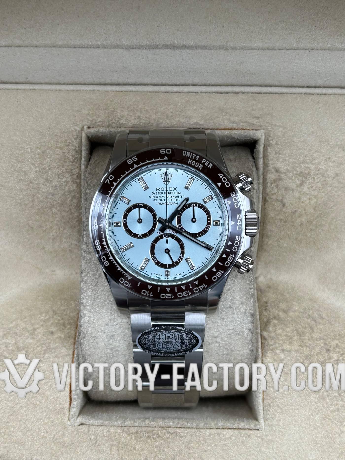 Product Overview: Victory Factory (VF) sets a new benchmark in the super clone industry with the release of the Daytona 126506 Ice Blue Dial. This masterpiece is the ultimate hybrid, seamlessly integrating Clean Factory’s (CF) world-renowned exterior craftsmanship with the legendary Dandong 4131 Integrated Movement. For collectors seeking perfection, VF offers the most authentic look, feel, and mechanical reliability available on the market today.
