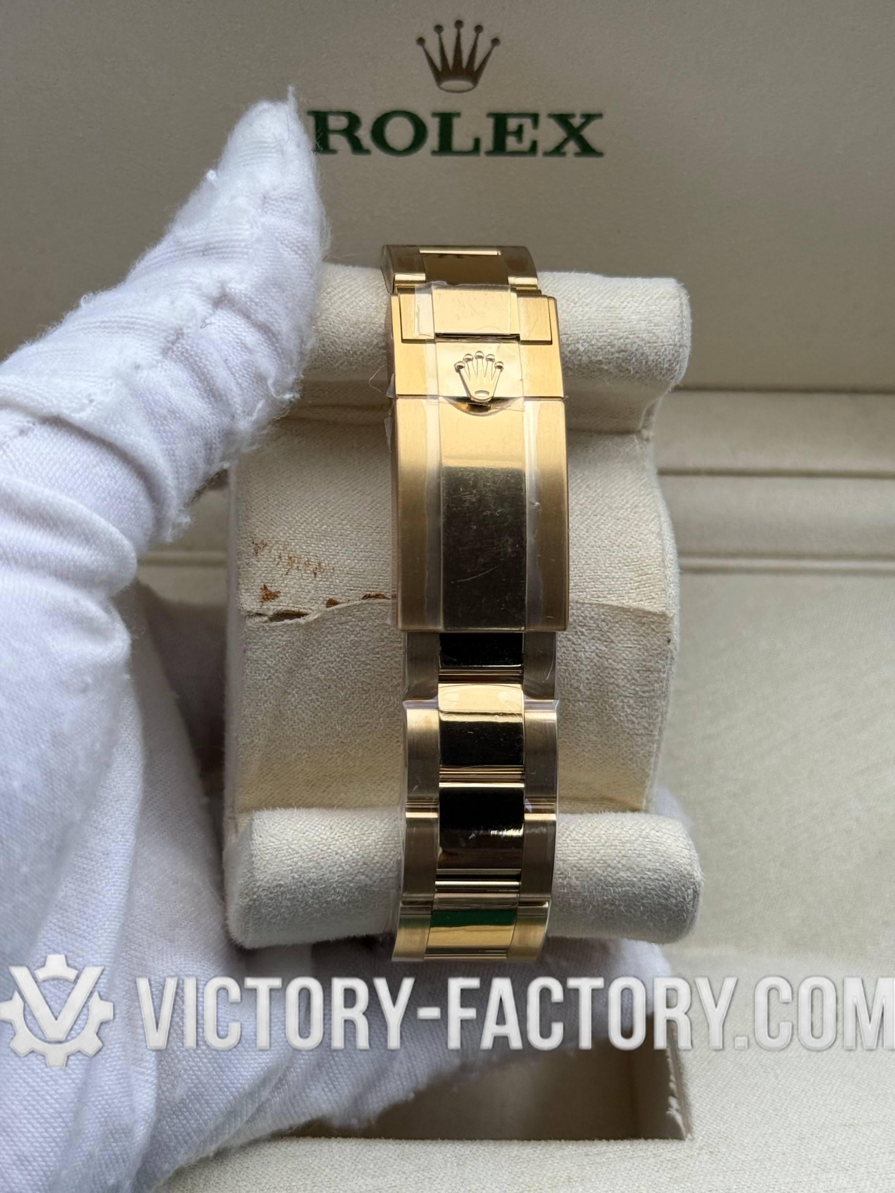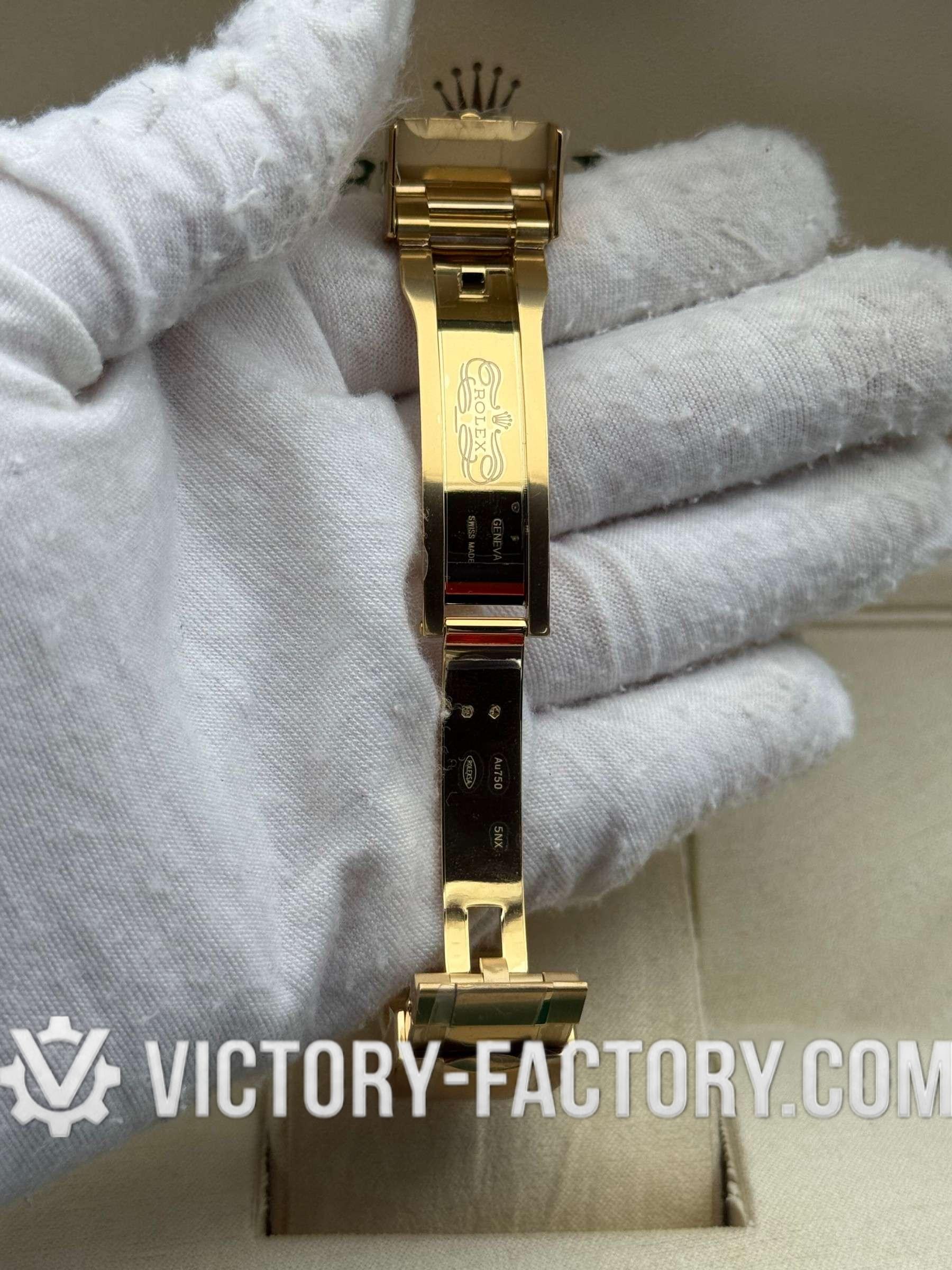 The 18k yellow gold wrapped Oyster bracelet includes solid threaded screws and a DLC protection coating.