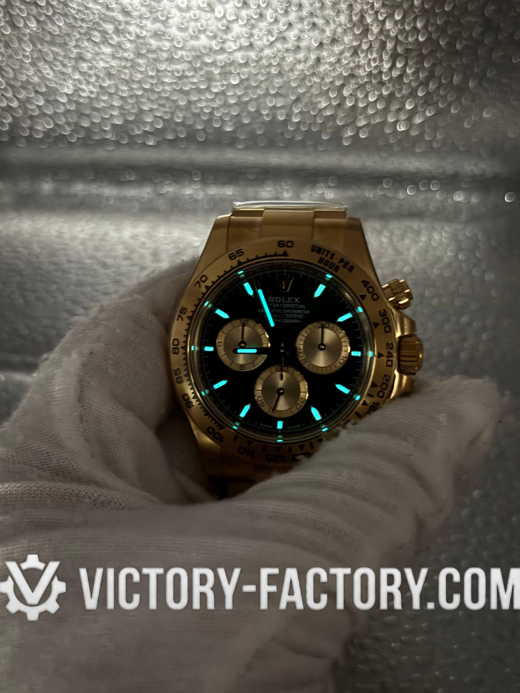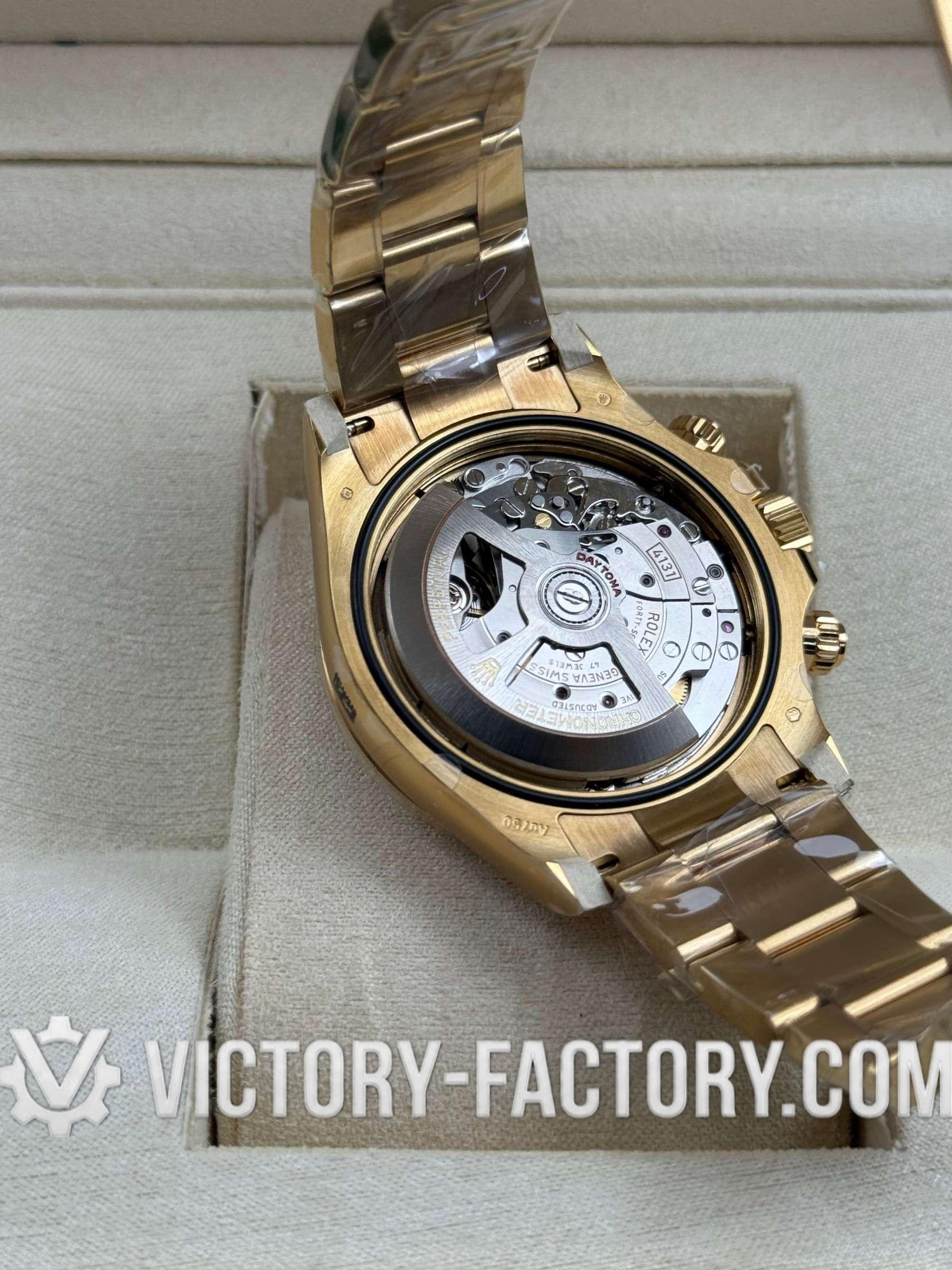 Product Overview: Victory Factory (VF) introduces the definitive edition of the “John Mayer” Daytona 126508. This masterpiece is a strategic fusion of the industry-leading external components from Clean Factory (CF) and the most stable mechanical heart available today: the Dandong 4131 Integrated Super Clone Movement. By inheriting Clean Factory’s perfected 18k yellow gold PVD plating and combining it with the superior power reserve of the Dandong movement, VF delivers a 1:1 replica that stands unparalleled in the market.