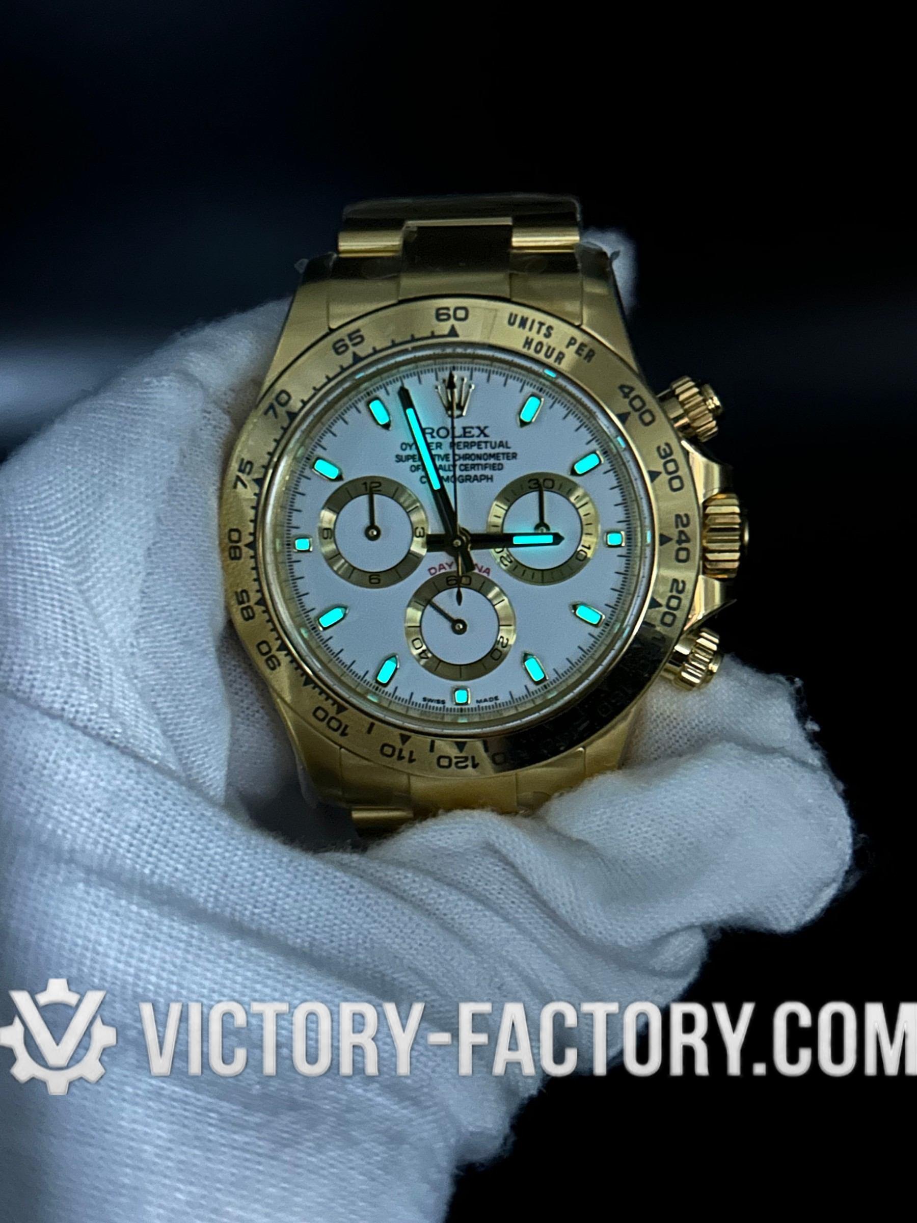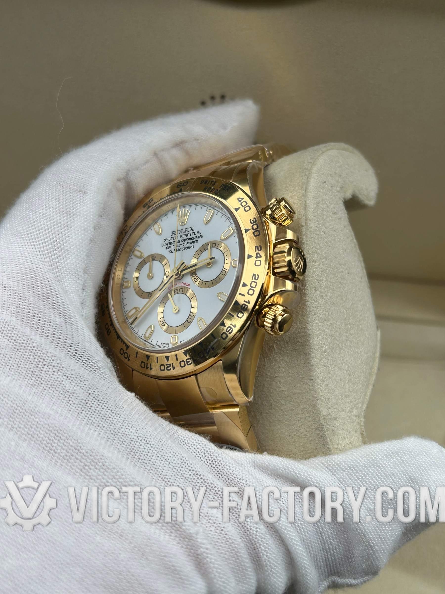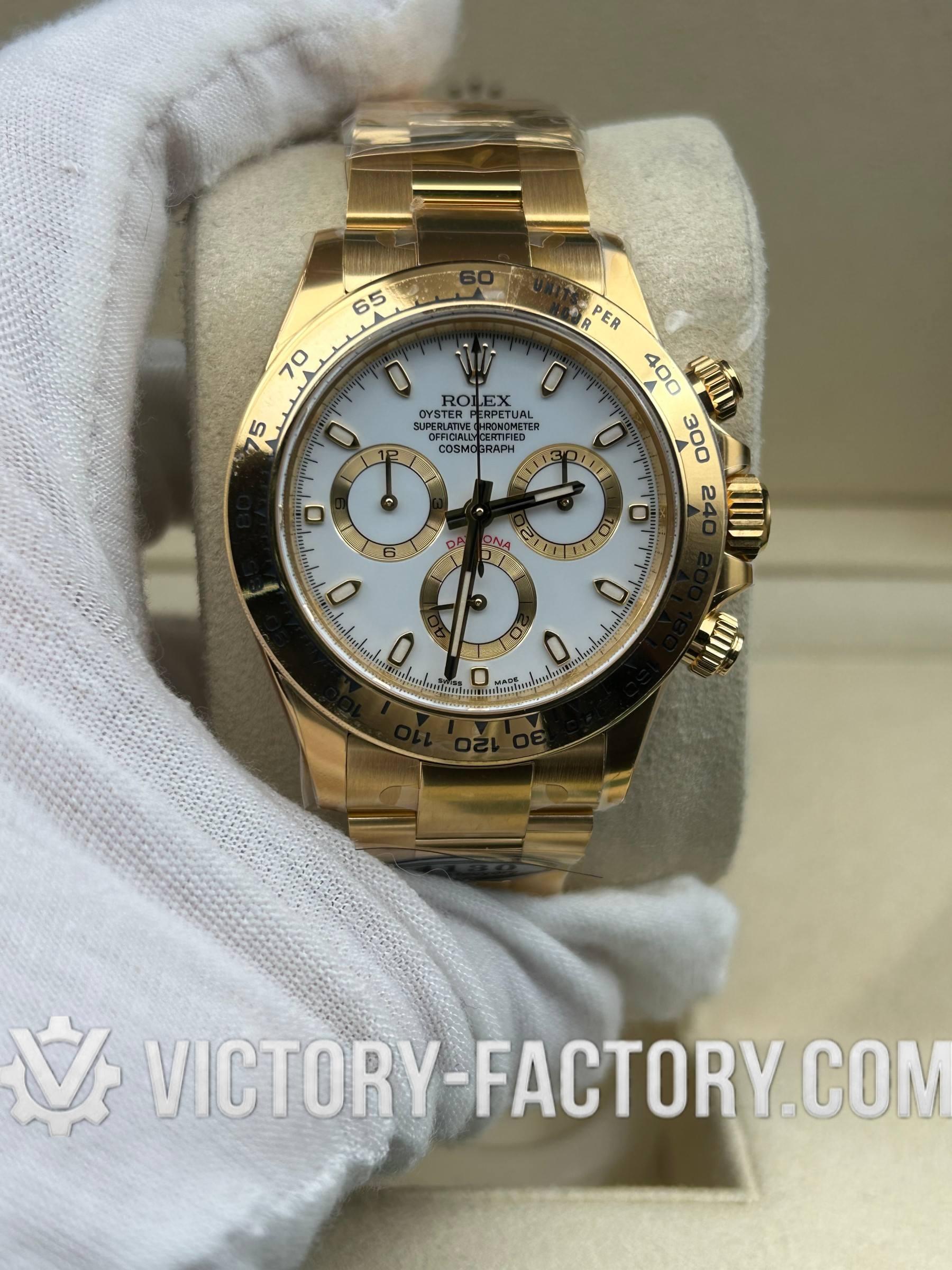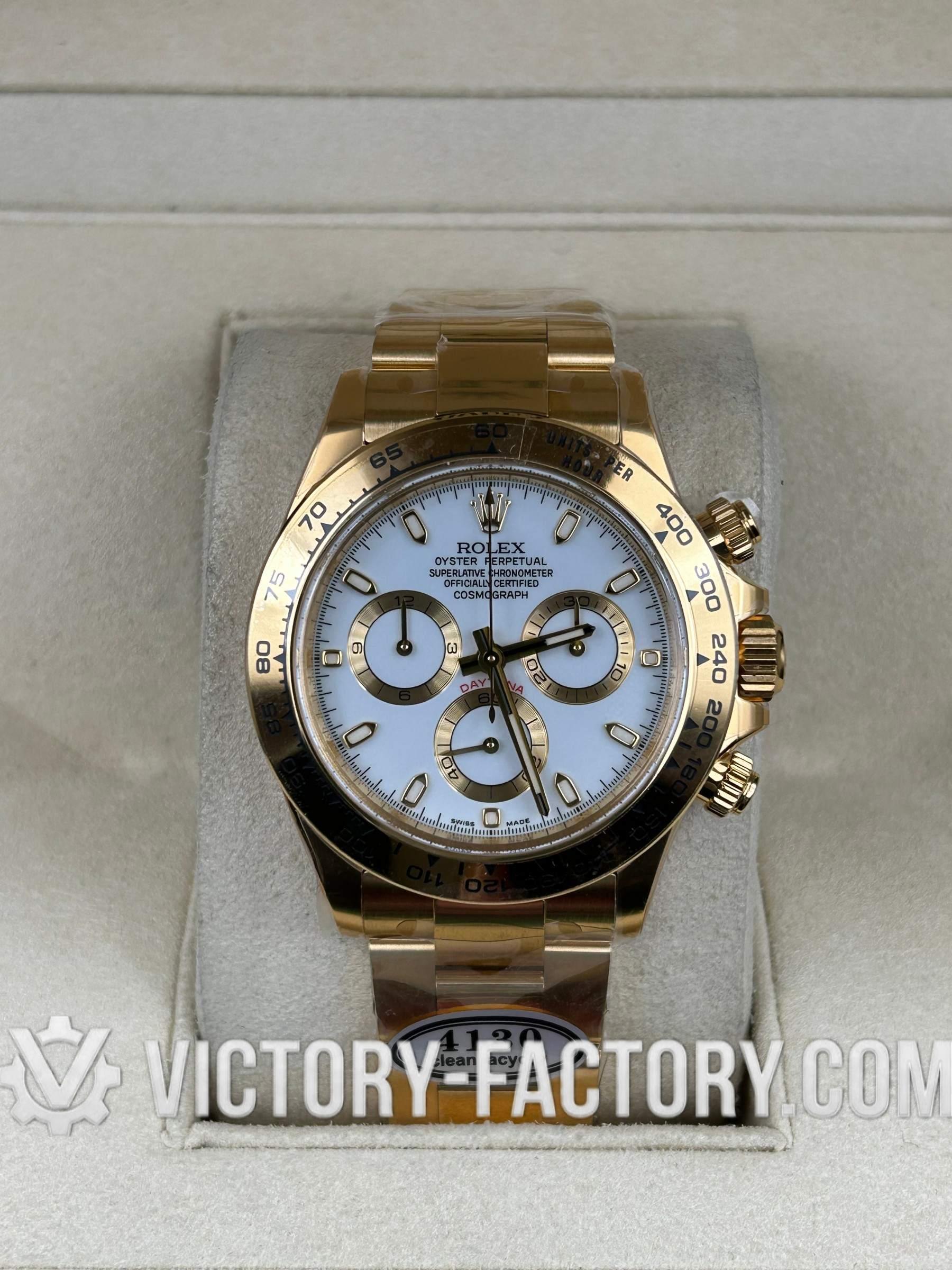 Victory Factory (VF) Rolex Daytona 116508 18k Yellow Gold White Dial - Super Clone with Clean Factory Parts & Dandong 4130 Movement
