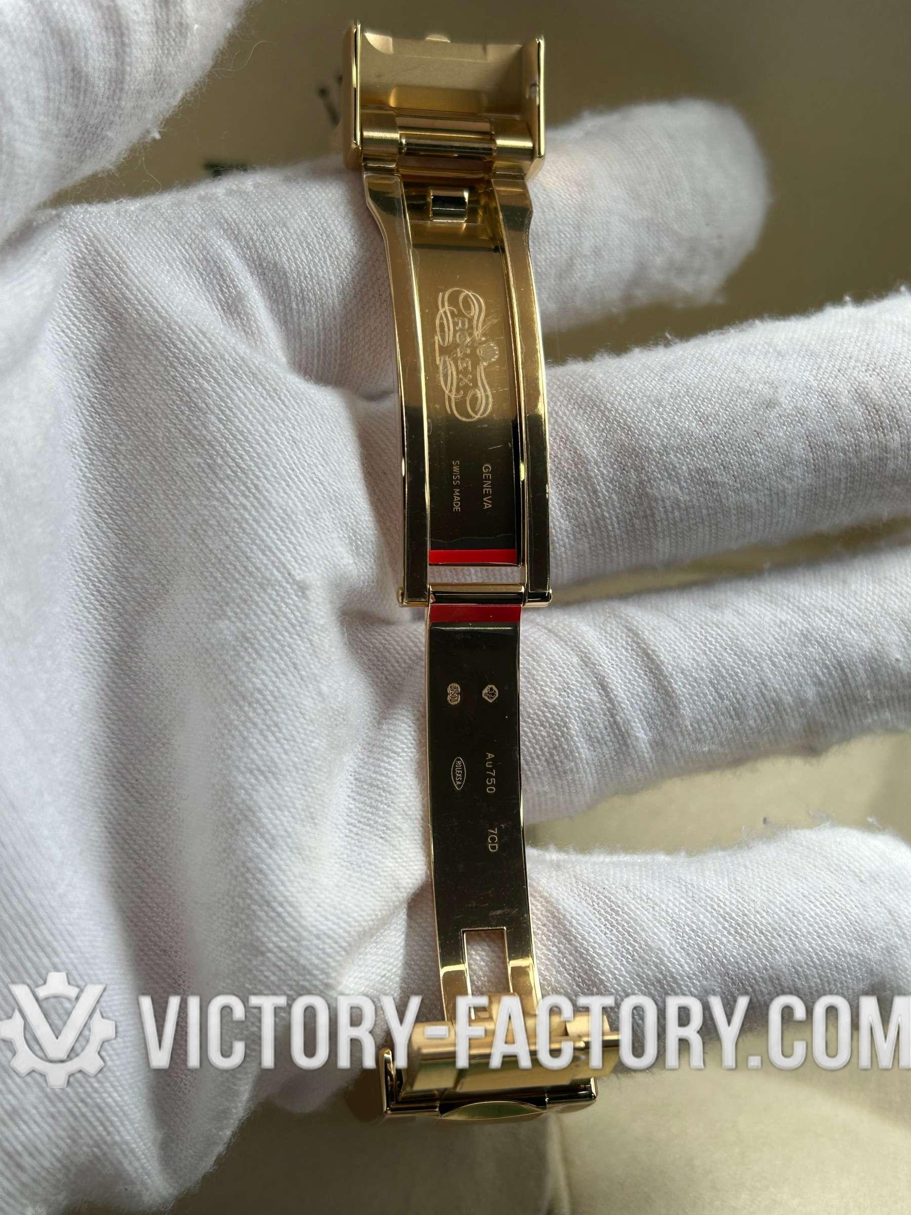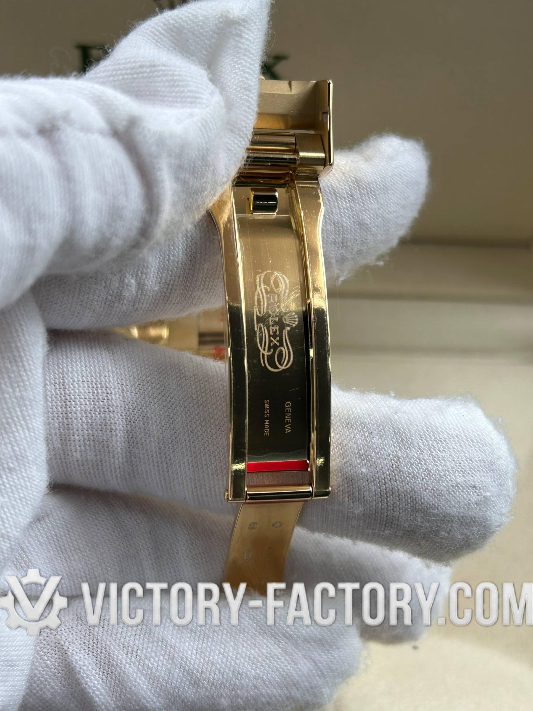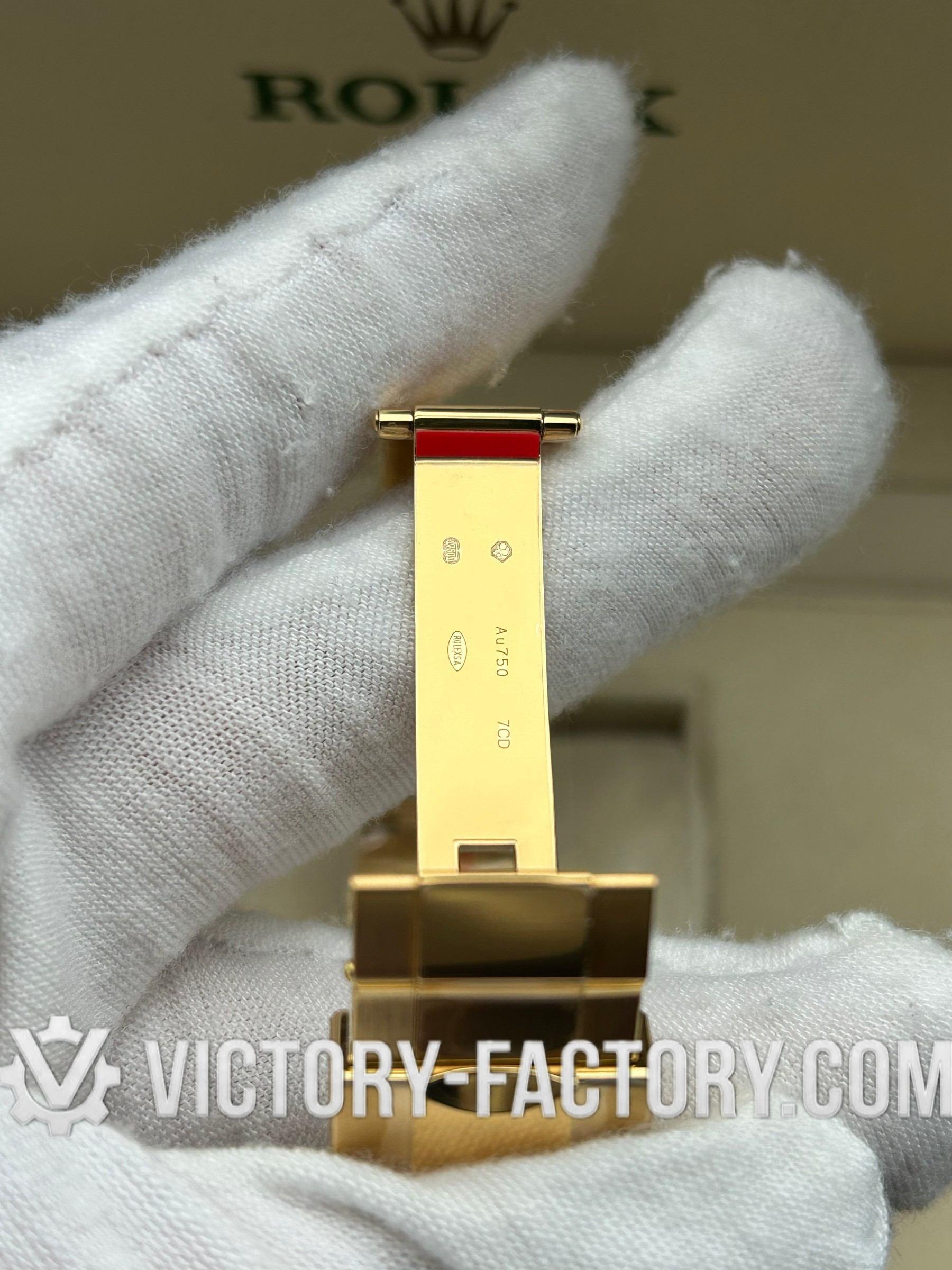 • **Bezel**: Clean Factory bezel is fixed, crafted from 18k Yellow gold wrap solid 904L stainless steel, with black coated numerals and graduations. This design is a perfect replica of the original Rolex.