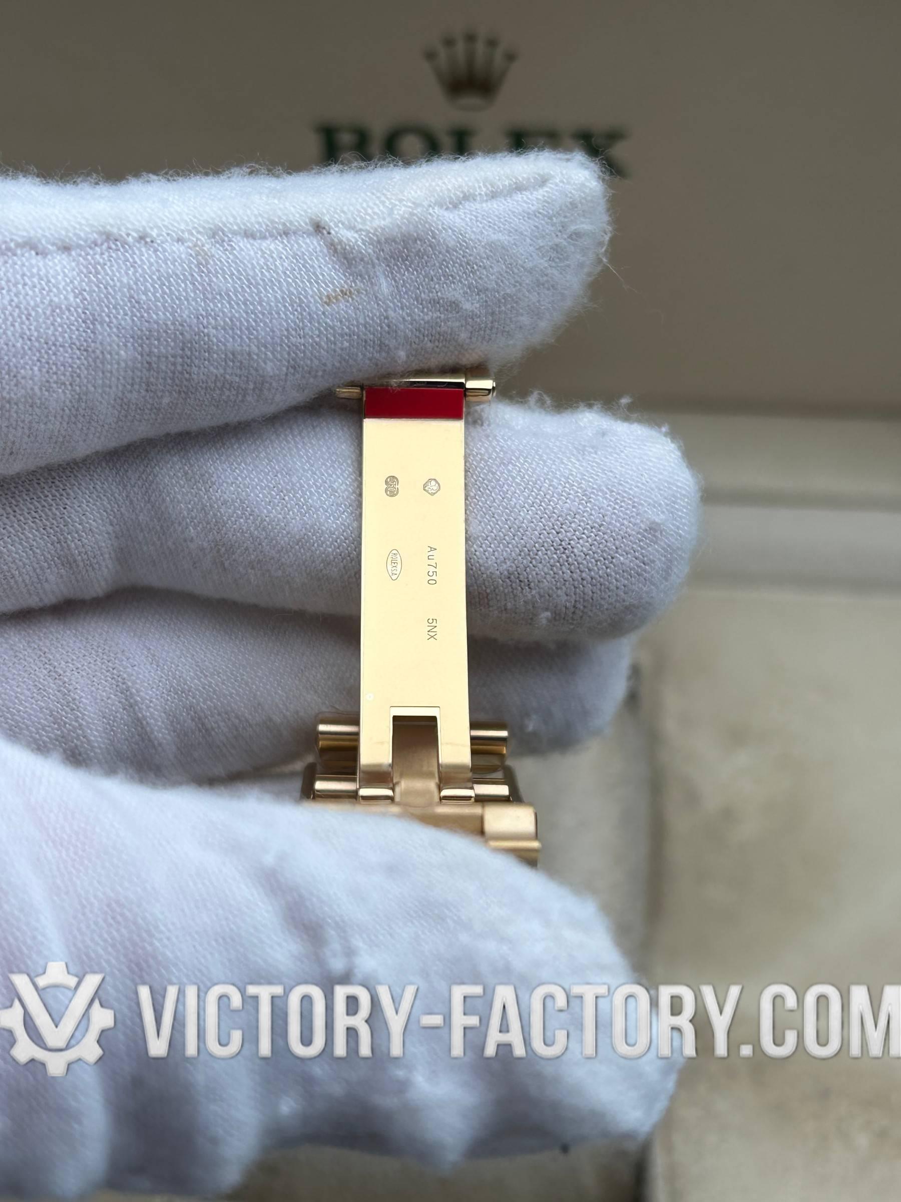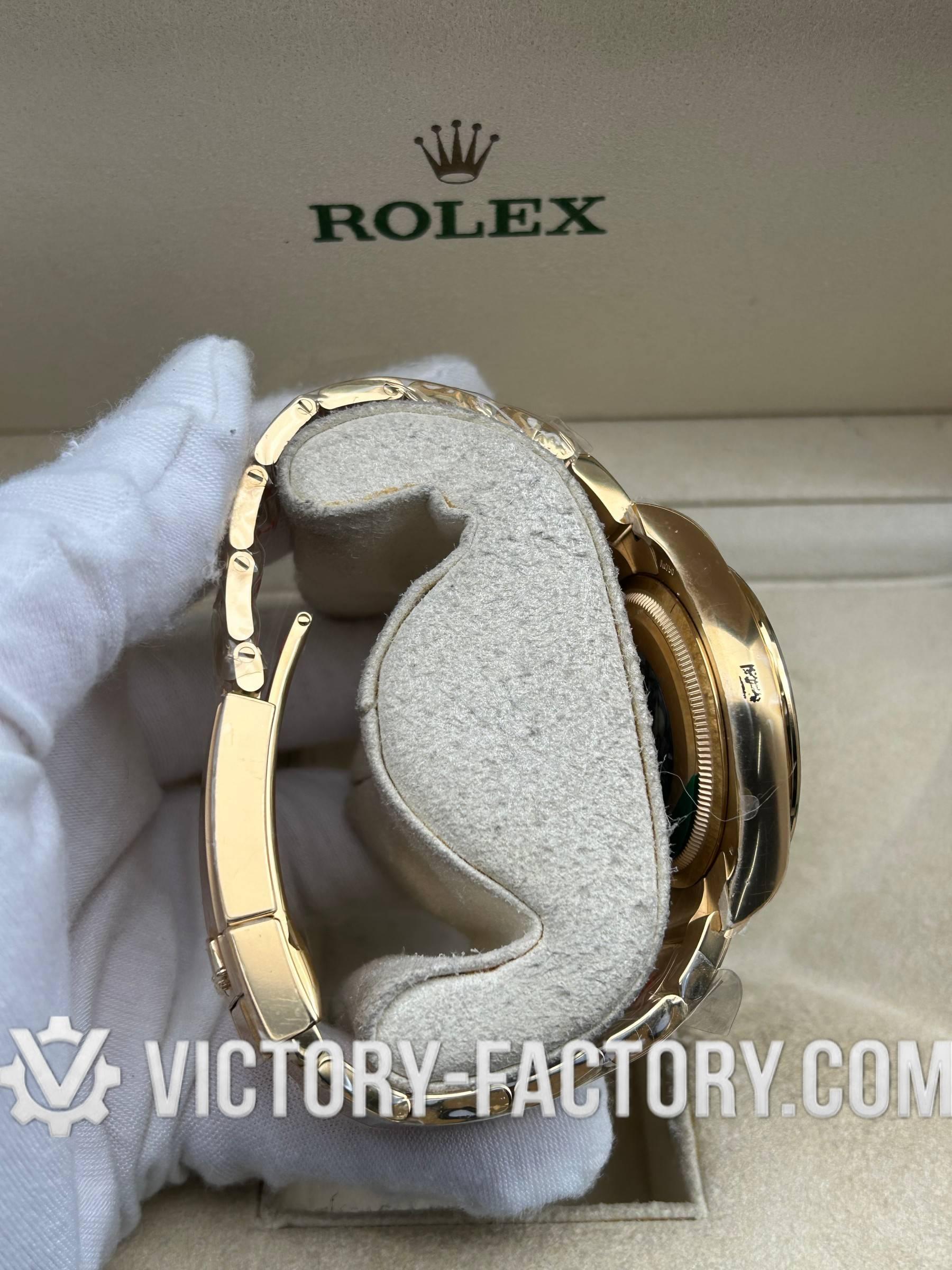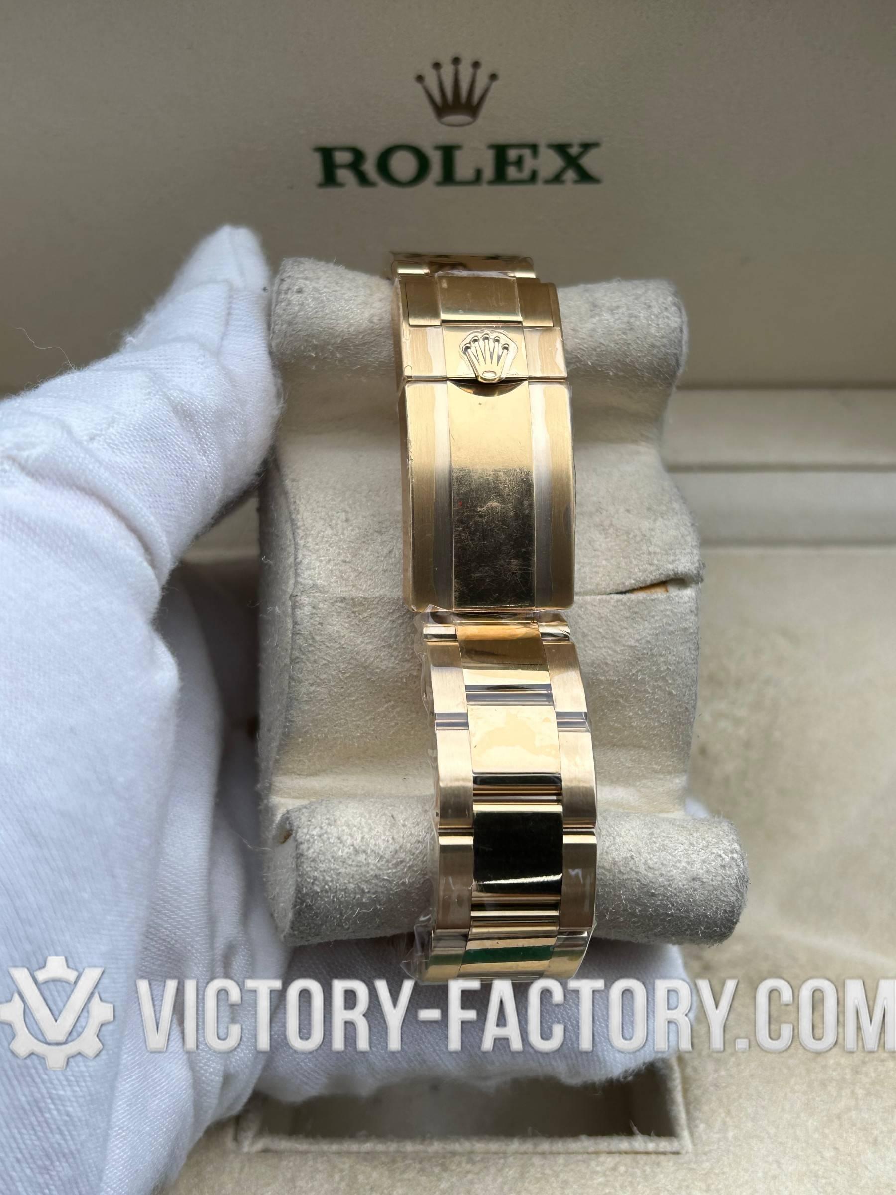 CASE: Superior 904L Steel with 18k Gold PVD The 40mm case is forged from robust 904L stainless steel, featuring a multi-layer 18k yellow gold PVD coating for a deep, genuine gold luster. The one-piece forged process ensures smooth, refined edges and a weight profile that mirrors the original. The rehaut is precision-engraved with ‘ROLEXROLEX’ for total authenticity.