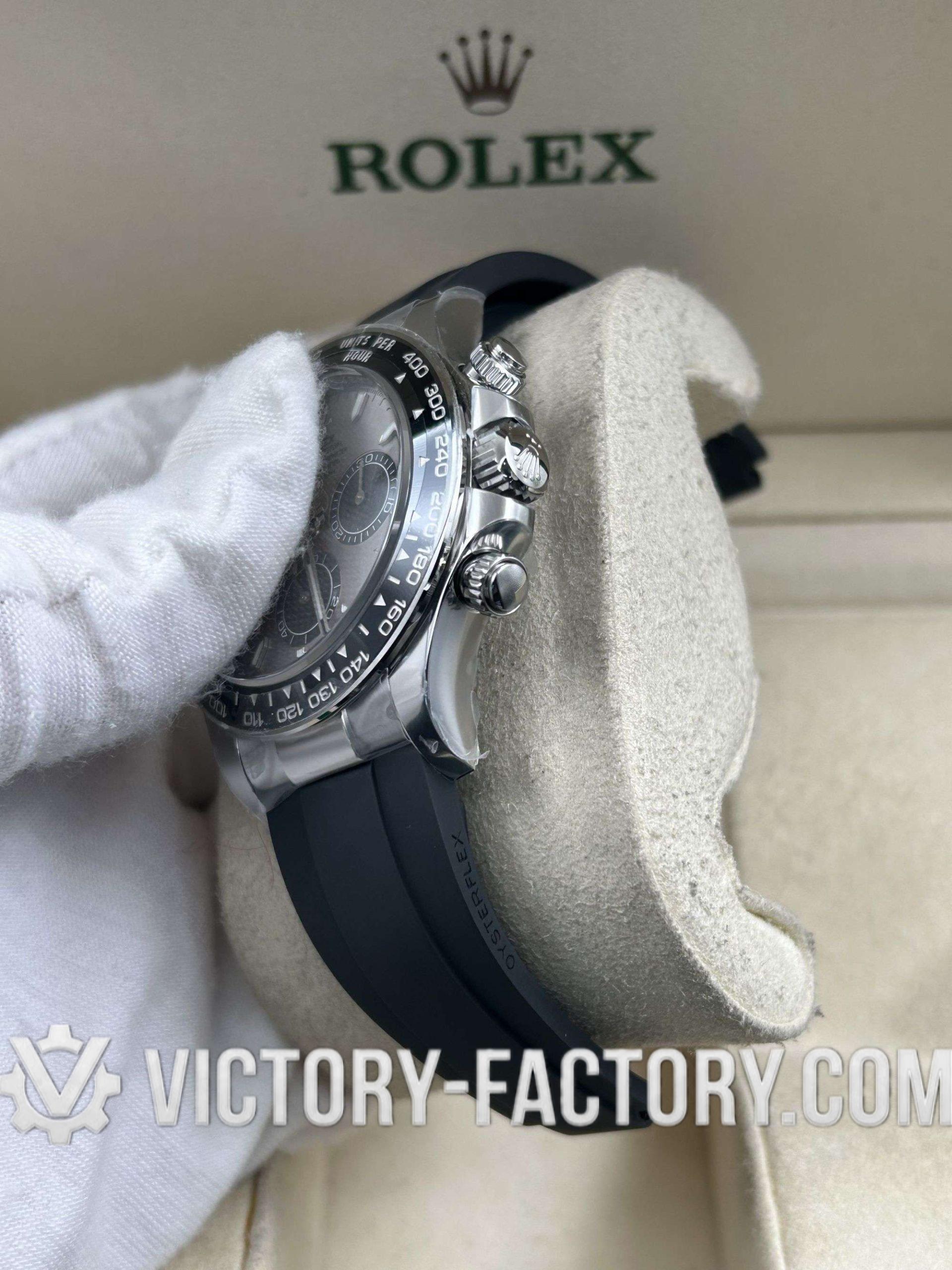 Product Overview: Victory Factory (VF) presents the definitive 126519LN “Grey Panda” on Oysterflex. This masterpiece seamlessly integrates the world-class external craftsmanship of Clean Factory (CF) with the most advanced internal heart in the industry: the Dandong 4131 Integrated Super Clone Movement. While Clean Factory set the standard for aesthetics, Victory Factory elevates the experience by providing a movement with superior power reserve and mechanical stability.