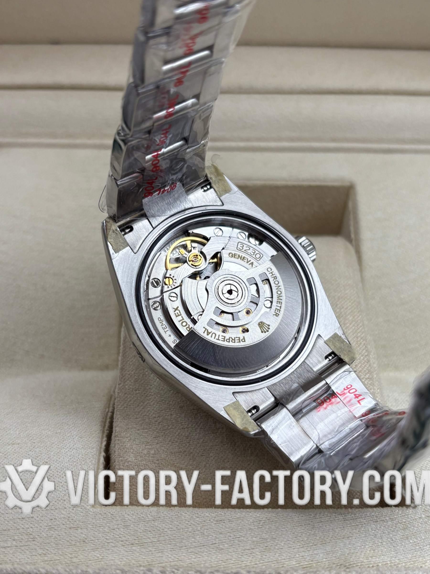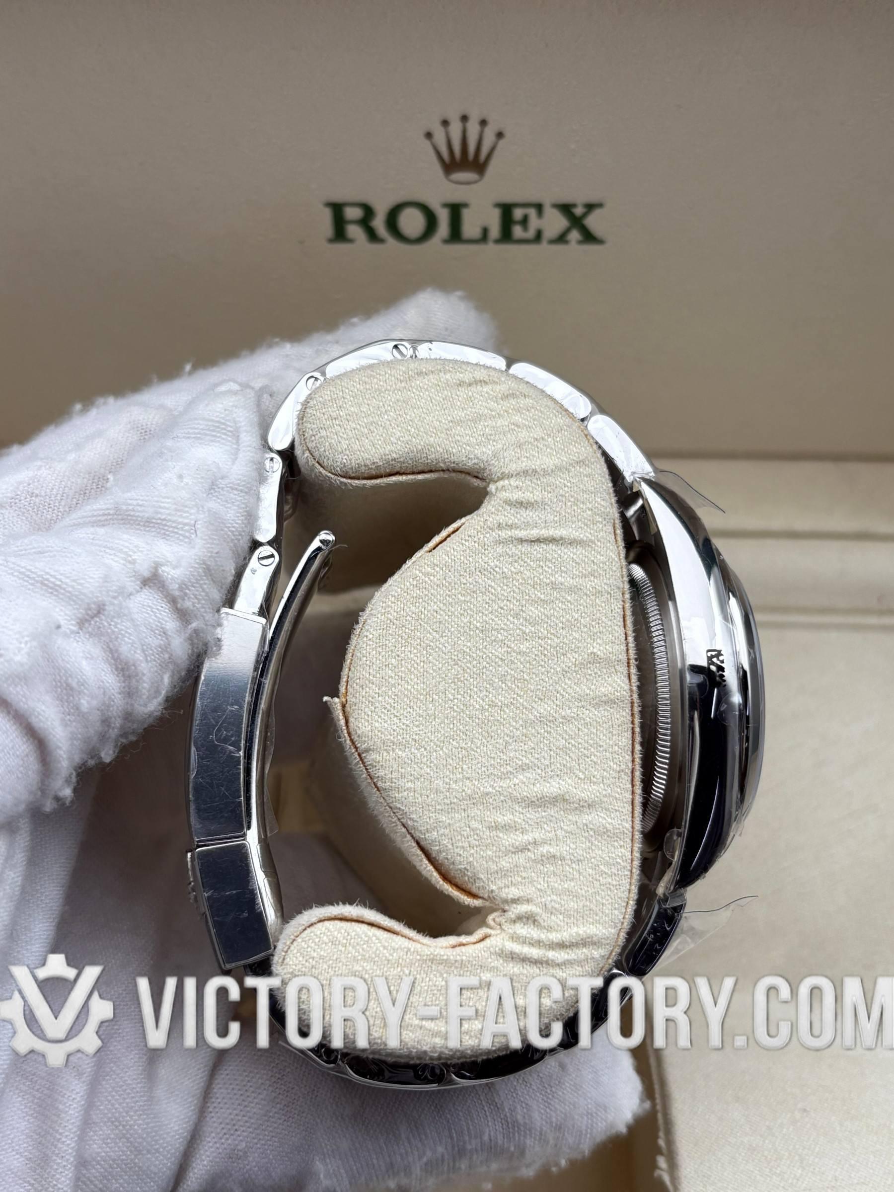 CASE: Meticulously crafted with a 36mm solid 904L stainless steel monobloc construction, matching the genuine Rolex dimensions and weight. It includes a screw-down case-back and a Twinlock double waterproofness system for maximum durability. The rehaut features precision “ROLEXROLEX” laser engraving and a DLC scratch-protection coating.
